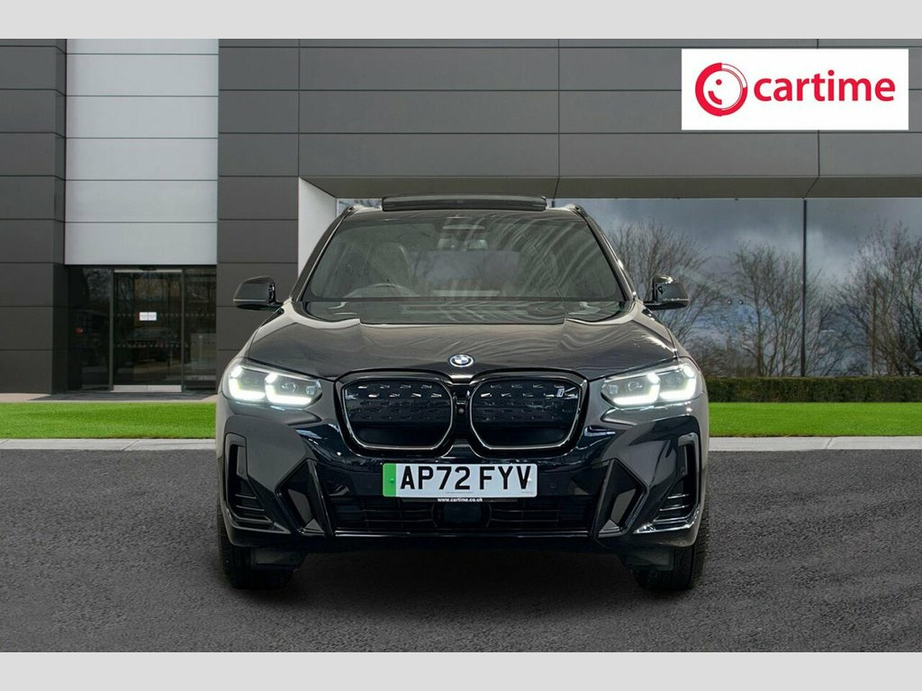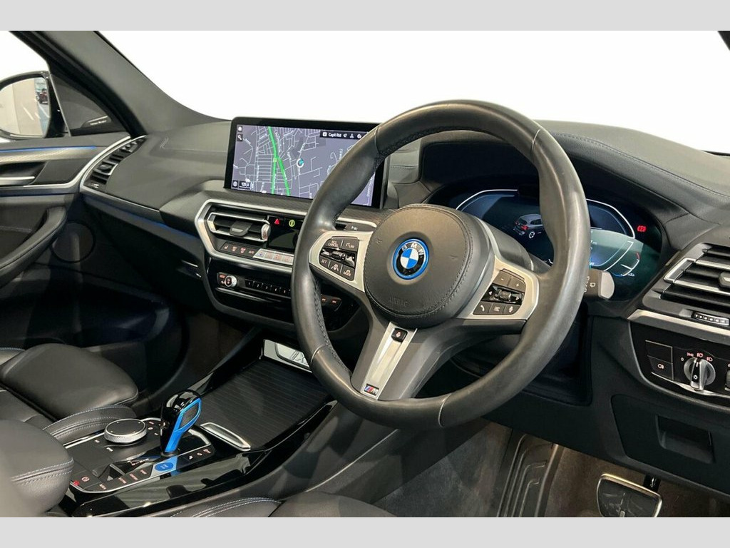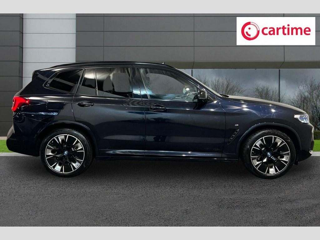 With only one owner and exceptionally low mileage for its age, this 2023 BMW iX3 M Sport Pro presents a superb ownership proposition. As a fully electric vehicle, it offers a compelling blend of performance and efficiency, boasting a substantial 80 kWh battery that provides a maximum range of 288 miles when new. This particular example benefits from an MOT valid until November 2026, ensuring peace of mind for the foreseeable future. Notable features include advanced Laserlights and Adaptive LED Headlights for superior visibility, a Head Up Display to keep your eyes on the road, a Heated Steering Wheel for comfort in colder weather, and a Reversing Assist Camera to aid with parking. Experience the thrill of instant electric power with the iX3 M Sport Pro's impressive 0-60mph acceleration in just 6.8 seconds, a figure that highlights its dynamic capability compared to many other electric SUVs. Charging is convenient, with a full charge at home taking approximately 11 hours and 20 minutes using a 7kW charger, while rapid public charging can replenish the battery from empty to 80% in as little as 32 minutes. Furthermore, you'll appreciate the generous boot space, offering ample room for luggage or shopping, making this BMW iX3 a practical and exhilarating choice for your next vehicle. 20in Alloy Wheels - M Aerodynamic - Bi-C, ABS - Anti Lock Braking System, Acoustic Glazing, Active Guard Plus, Active Protection, Adaptive LED Headlights, Adaptive Suspension, Air Breather with BMW M logo, Air Conditioning - Automatic, Airbags - Driver and Front Passenger, Airbags - Front Side for Driver and Pass, Airbags - Head - Front and Rear, Alarm System, Ambient Lighting, Armrests, Attentiveness Assistant, Automatic Operation of Tailgate, Automatic Start-Stop Button, Blue Ring Around BMW Logos, BMW Connected Package Professional, BMW ConnectedDrive Online Services, BMW Gesture Control, BMW Iconic Sounds - Electric, BMW Individual Lights - Shadowline, BMW Legal Emergency Call, BMW Live