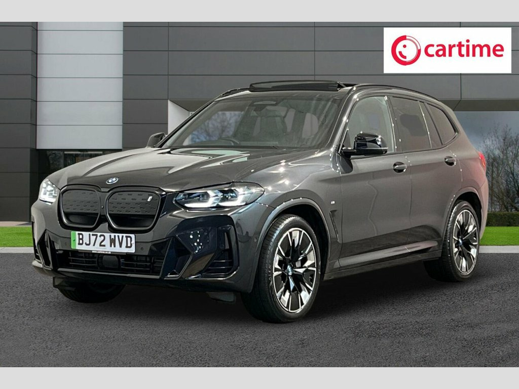 With only one owner and an MOT valid until January 2027, this 2023 BMW iX3 M Sport Pro presents a compelling proposition. This electric vehicle boasts a substantial 80 kWh battery, offering a maximum range of 288 miles when new, ensuring your journeys are both extensive and efficient. Its provenance is further strengthened by a clear vehicle history check and a modest 23055 miles on the clock, indicating low mileage for its age. Inside, you'll find a host of premium features designed for comfort and convenience, including a heated steering wheel, automatic air conditioning, the impressive Harman Kardon loudspeaker system, and comfort access for keyless entry. Navigating tight spots is made easy with front and rear parking sensors. The BMW iX3 M Sport Pro stands out with its impressive performance, achieving 0-60mph in just 6.8 seconds, a testament to its electric power. This acceleration capability surpasses many comparable vehicles, offering a dynamic driving experience. Furthermore, the large boot space provides ample room for all your luggage or shopping needs, making it a practical choice for families and individuals alike. Charging is also convenient, with a full charge at home taking approximately 11 hours and 20 minutes using a 7kW charger, while rapid public charging can take you from empty to 80% in as little as 32 minutes. 20in Alloy Wheels - M Aerodynamic - Bi-C, ABS - Anti Lock Braking System, Acoustic Glazing, Active Guard Plus, Active Protection, Adaptive LED Headlights, Adaptive Suspension, Air Breather with BMW M logo, Air Conditioning - Automatic, Airbags - Driver and Front Passenger, Airbags - Front Side for Driver and Pass, Airbags - Head - Front and Rear, Alarm System, Ambient Lighting, Armrests, Attentiveness Assistant, Automatic Operation of Tailgate, Automatic Start-Stop Button, Backrest Width Adjustment for Driver, Blue Ring Around BMW Logos, BMW Connected Package Professional, BMW ConnectedDrive Online Services, BMW Gesture Control, BMW Iconic Sounds - Electric, BMW iDrive, BMW Individual Lights