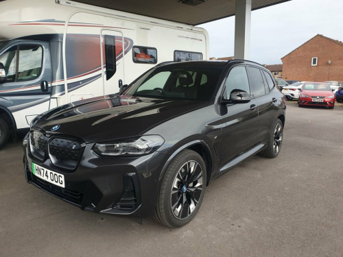 TEL 01225 705200, just arrived this stunning example of the-BMW IX3 80kWh M Sport Pro SUV 5dr Electric Auto (286 ps) finished in this very nice grey And covered 7,781 miles with the one owner from new -210 kw M-sport pro 80kwh , just arrived so for more details please ring us on (01225 705200) Thanks , this vehicle is located at our car sales site- VICTORIA MOTORS OLD BROUGHTON ROAD MELKSHAM WILTSHIRE SN128BX TEL 01225 705200.pictures soon. 20in Alloy Wheels - M Aerodynamic - Bi-C, ABS - Anti Lock Braking System, Acoustic Glazing, Active Guard Plus, Active Protection, Adaptive LED Headlights, Adaptive Suspension, Air Breather with BMW M logo, Air Conditioning - Automatic, Airbags - Driver and Front Passenger, Airbags - Front Side for Driver and Pass, Airbags - Head - Front and Rear, Alarm System, Ambient Lighting, Armrests, Attentiveness Assistant, Automatic Operation of Tailgate, Automatic Start-Stop Button, BMW Connected Package Professional, BMW ConnectedDrive Online Services, BMW Gesture Control, BMW Iconic Sounds - Electric, BMW Individual Lights - Shadowline, BMW Legal Emergency Call, BMW Live Cockpit Professional, BMW Te