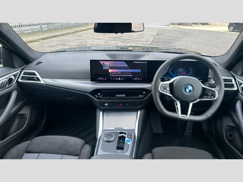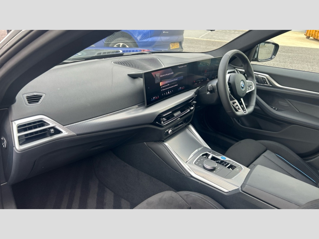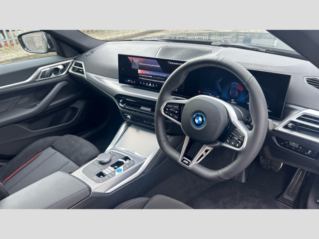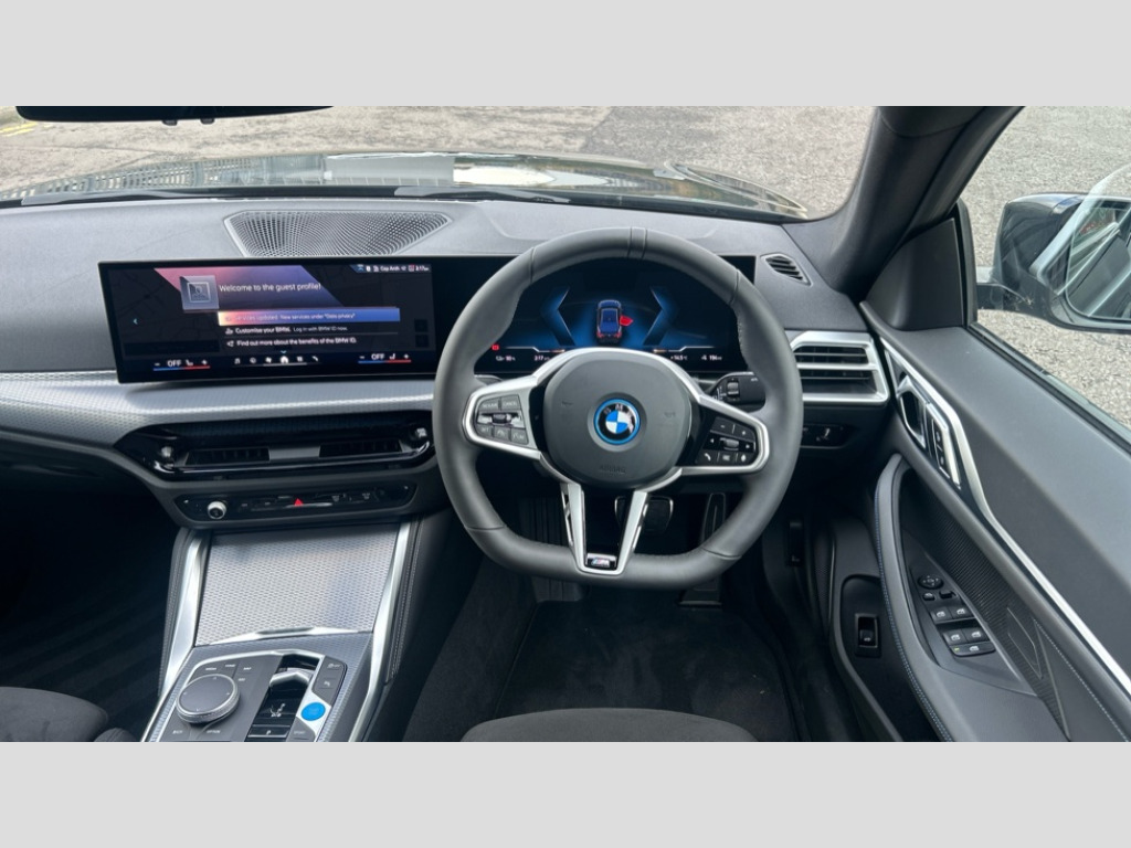 BMW I4 210kW eDrive35 M Sport 70kWh 5dr Auto 4G LTE connectivity, Active guard plus, Attentiveness assist, Automatic tailgate operation, Bluetooth Wi-Fi interface, BMW ConnectedDrive online services, BMW legal emergency call, BMW Maps, BMW remote services, BMW Teleservices, Drive off assistant, Driver profile, Driving experience switch, Electric boot lid, Engine start/stop button, iDrive touch controller, Integrated owners handbook, Language version English, Live cockpit plus with nav function 12.3" instrument cluster and 14.9" centre display, Personal Profile - automatic lock when driving away selectable, Service interval indicator, Widescreen display, AC charging up to 11kW, DC charging up to 150kW, eDrive exterior sound, Electric drive unit, Electronic differential lock, High voltage battery, Plug and charge, Public charging cable Mode 3, Safety battery terminal clamp, Silicon carbide inverter, 1x USB type A with data transfer and 1.5 Amp charging function in the centre console, 1x USB type C with 3 Amp charging function in the front centre armrest, DAB tuner, Personal eSim, BMW badge on bonnet and tailgate with blue ring around the badge, BMW radiator grille with mesh grille/end face of the nuggets in quartz silver matt, Body colour door handles, Body colour mirror caps with bottom segment in matt black, Electric adjustable exterior mirrors, Electric windows with trap release and convenient opening/closing feature, Electrochromic rear view mirror, Exterior mirror heated, Fading support, Follow me home headlights, Front and rear bumper system, Front apron plastic in body colour, Fuel filler flap - right rear in body colour, Headlight beam throw control, Heat protection glazing on front windows and windscreen, Heated washer jets, High gloss black mirror triangles, High gloss shadow line exterior trim, I badge with blue highlight on front ornamental grille, I4 charging socket flap, right, rear in body colour, Integrated outside door handles, flush design, flush integrated, handle recess indirectly illuminated, Lateral blue accent including air breather, LED 3rd brake light, LED daytime running lights, LED direction indicator lenses, LED eyebrow light, LED front fog lights, LED rear fog light, LED rear lights, M entry sills, Mirror glass aspheric on driver's side, convex on passenger side, Model logo - Rear and right model designation, Rear left i4 inscription, Number plate panel integrated into front bumper and tailgate, One piece front bumper cover including towing eye cover in body colour, Radiator grille frame in chrome matt, Rain sensor including auto headlights activation, Rear bumper with blue accent, Rear side wing doors, Rear wiper, Reversing light, Roof fin in body colour, Side frame trim strip in black matt, Side LED indicators, Side sills in high-gloss black with airbreathers in black, Trailer stabilisation logic, Turn indicators in side mirrors, Visible VIN plate, Welcome lighting, Window recess finisher strip in matt black, 12V power socket in front centre console with blanking plug, 2 front cupholder in centre console with clamping elements and matt black inlay, 3 seat bench in 2nd row, 3 spoke flat bottom M sport leather steering wheel, 40:20:40 split folding rear seat and rear centre armrest with two cupholders, Adjustable steering column, Aluminium door sill strips front with BMW i inscription, Ambient inside door handle light, Ambient light design projected onto the left and right entering and exiting area, Ambient lighting front and rear with 9 selectable colours, Ambient storage compartment lighting in the centre console, Anthracite headlining, Automatic air conditioning with 3 zone control, Battery in luggage compartment, BMW ID, Contour lighting in instrument panel and door trim panel, Dynamic function of contour lighting - welcome, goodbye, open doors, phone call, Front ambient footwell lighting, Front and rear armrest with integrated door trim, Front and rear door exit lights, Front and rear door pockets, Glovebox light, Headrests for all seats, Illuminated armrest storage compartment, Interior light and reading light, Lashing eyelets in boot, Light projection of an ambient lighting graphic, Luggage compartment light, Multifunction steering wheel, Rear storage compartment, Single front passenger seat, Storage tray and compartment with cover in centre console, Sunvisors with illuminated vanity mirrors and ticket pocket, Through loading system, Toolkit in luggage compartment, Velour floor mats, Connected package professional - I4, Interior and exterior mirror pack - I4, M Sport exterior styling pack - I4, Parking assistant pack - I4, 3 point seatbelts on all seats, Acoustic protection for pedestrians, Active protection, Anti lock braking system (ABS) with brake assist, Automatic Stability Control (ASC), Battery safety cut-off, Brake drying, Brake energy regeneration, Brake pretensioning, Child lock button on rear side window, Cornering brake control (CBC), Crash sensor, Driver and front passenger airbags, Driver and passenger side airbags, Driver/passenger seat occupancy sensor, DSC - Dynamic Stability Control, Dynamic brake control, Dynamic Traction Control - DTC, Electromechanical parking brake, Front and rear ventilated brake disc, Front passenger airbag deactivation, Head airbags for all 4 outer seats, Hill start assistant, ISOFIX child seat mounting on rear outer seats, M sport blue brake calipers, Recuperation system, Side impact protection, Sport brake calipers, Twin horns, Tyre pressure sensor, Warning triangle and first aid kit, Alarm system, Central locking including 2 vehicle keys with integrated emergency key, Central locking switch, Electronic vehicle immobiliser, Locking wheel bolts, Sensatec dashboard, Tyre repair kit plus