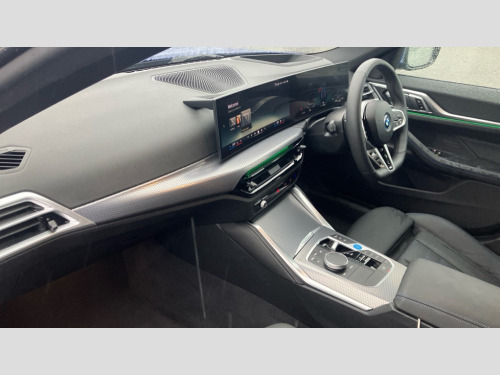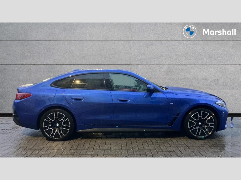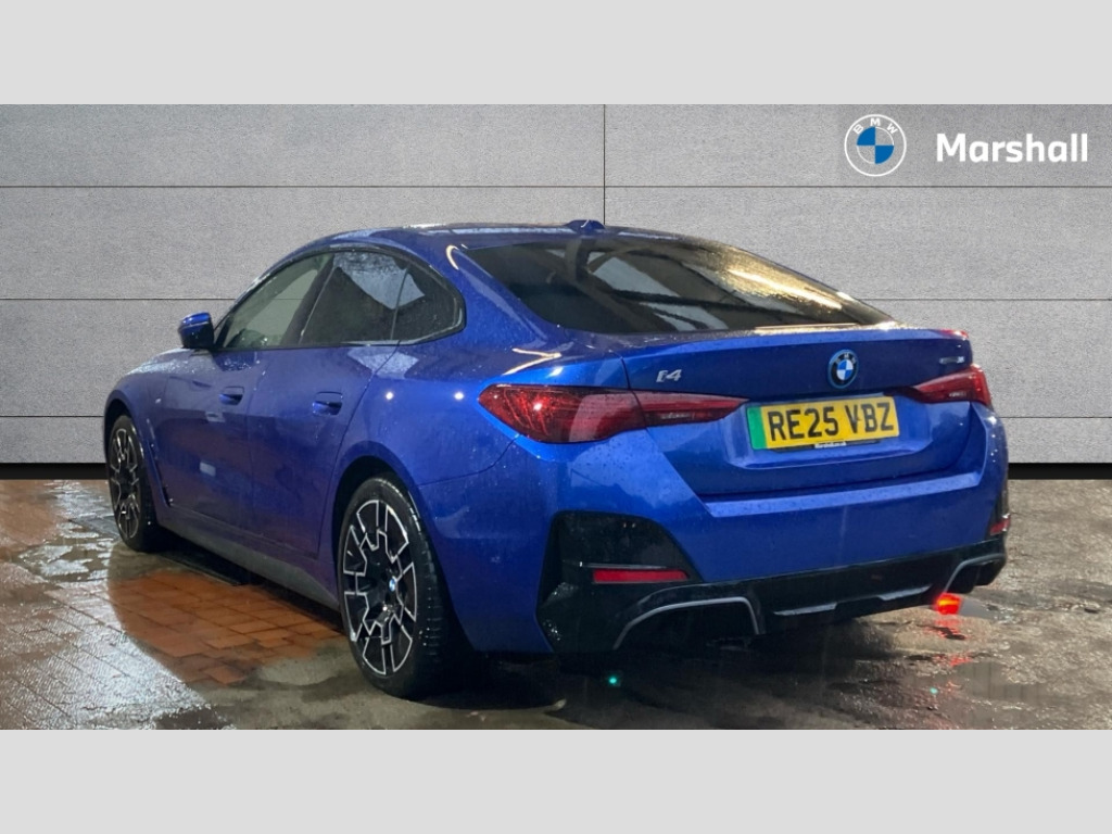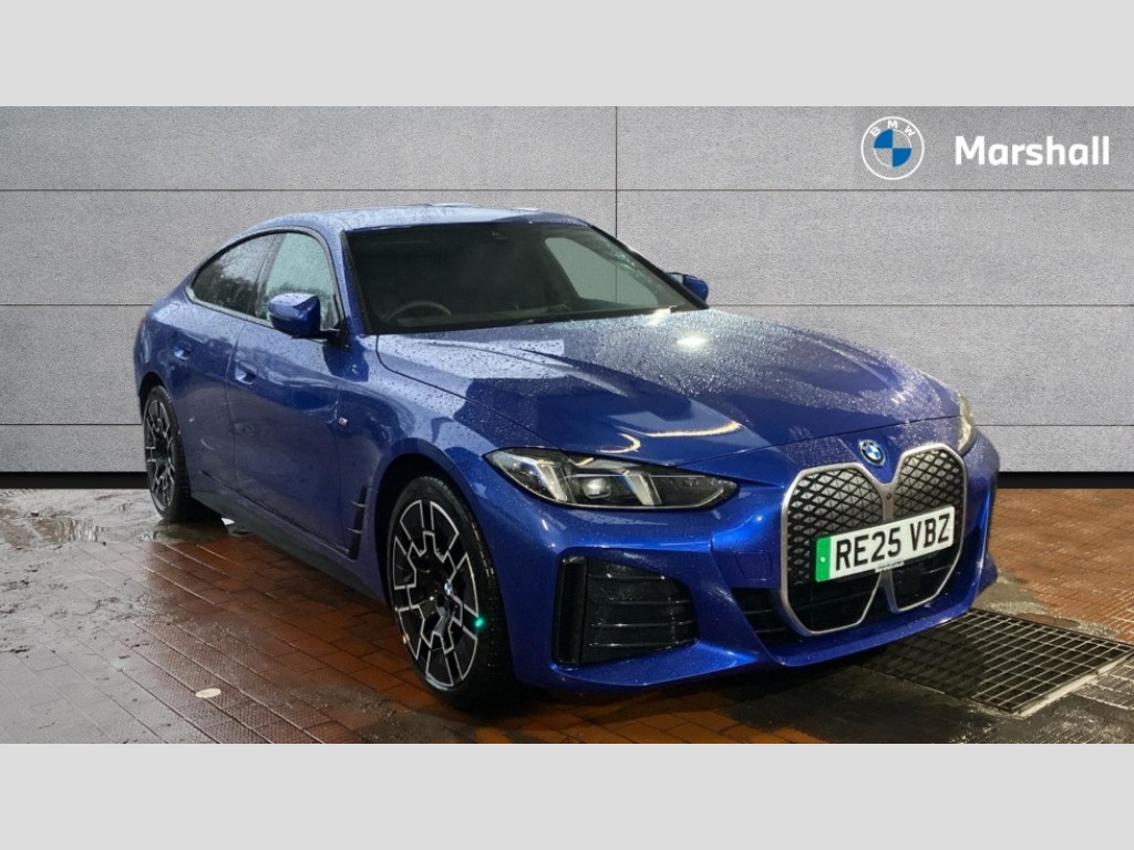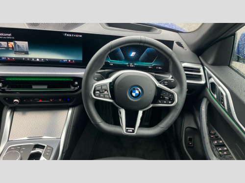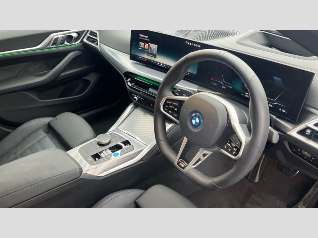 BMW I4 210kW eDrive35 M Sport 70kWh 5dr Auto 4G LTE connectivity, Active guard plus, Attentiveness assist, Automatic tailgate operation, Bluetooth Wi-Fi interface, BMW ConnectedDrive online services, BMW legal emergency call, BMW Maps, BMW remote services, BMW Teleservices, Drive off assistant, Driver profile, Driving experience switch, Electric boot lid, Engine start/stop button, iDrive touch controller, Integrated owners handbook, Language version English, Live cockpit plus with nav function 12.3" instrument cluster and 14.9" centre display, Personal Profile - automatic lock when driving away selectable, Service interval indicator, Widescreen display, AC charging up to 11kW, DC charging up to 150kW, eDrive exterior sound, Electric drive unit, Electronic differential lock, High voltage battery, Plug and charge, Public charging cable Mode 3, Safety battery terminal clamp, Silicon carbide inverter, 1x USB type A with data transfer and 1.5 Amp charging function in the centre console, 1x USB type C with 3 Amp charging function in the front centre armrest, DAB tuner, Personal eSim, BMW badge on bonnet and tailgate with blue ring around the badge, BMW radiator grille with mesh grille/end face of the nuggets in quartz silver matt, Body colour door handles, Body colour mirror caps with bottom segment in matt black, Electric adjustable exterior mirrors, Electric windows with trap release and convenient opening/closing feature, Electrochromic rear view mirror, Exterior mirror heated, Fading support, Follow me home headlights, Front and rear bumper system, Front apron plastic in body colour, Fuel filler flap - right rear in body colour, Headlight beam throw control, Heat protection glazing on front windows and windscreen, Heated washer jets, High gloss black mirror triangles, High gloss shadow line exterior trim, I badge with blue highlight on front ornamental grille, I4 charging socket flap, right, rear in body colour, Integrated outside door handles, flush design, flush integrated, handle recess indirectly illuminated, Lateral blue accent including air breather, LED 3rd brake light, LED daytime running lights, LED direction indicator lenses, LED eyebrow light, LED front fog lights, LED rear fog light, LED rear lights, M entry sills, Mirror glass aspheric on driver's side, convex on passenger side, Model logo - Rear and right model designation, Rear left i4 inscription, Number plate panel integrated into front bumper and tailgate, One piece front bumper cover including towing eye cover in body colour, Radiator grille frame in chrome matt, Rain sensor including auto headlights activation, Rear bumper with blue accent, Rear side wing doors, Rear wiper, Reversing light, Roof fin in body colour, Side frame trim strip in black matt, Side LED indicators, Side sills in high-gloss black with airbreathers in black, Trailer stabilisation logic, Turn indicators in side mirrors, Visible VIN plate, Welcome lighting, Window recess finisher strip in matt black, 12V power socket in front centre console with blanking plug, 2 front cupholder in centre console with clamping elements and matt black inlay, 3 seat bench in 2nd row, 3 spoke flat bottom M sport leather steering wheel, 40:20:40 split folding rear seat and rear centre armrest with two cupholders, Adjustable steering column, Aluminium door sill strips front with BMW i inscription, Ambient inside door handle light, Ambient light design projected onto the left and right entering and exiting area, Ambient lighting front and rear with 9 selectable colours, Ambient storage compartment lighting in the centre console, Anthracite headlining, Automatic air conditioning with 3 zone control, Battery in luggage compartment, BMW ID, Contour lighting in instrument panel and door trim panel, Dynamic function of contour lighting - welcome, goodbye, open doors, phone call, Front ambient footwell lighting, Front and rear armrest with integrated door trim, Front and rear door exit lights, Front and rear door pockets, Glovebox light, Headrests for all seats, Illuminated armrest storage compartment, Interior light and reading light, Lashing eyelets in boot, Light projection of an ambient lighting graphic, Luggage compartment light, Multifunction steering wheel, Rear storage compartment, Single front passenger seat, Storage tray and compartment with cover in centre console, Sunvisors with illuminated vanity mirrors and ticket pocket, Through loading system, Toolkit in luggage compartment, Velour floor mats, Connected package professional - I4, Interior and exterior mirror pack - I4, M Sport exterior styling pack - I4, Parking assistant pack - I4, 3 point seatbelts on all seats, Acoustic protection for pedestrians, Active protection, Anti lock braking system (ABS) with brake assist, Automatic Stability Control (ASC), Battery safety cut-off, Brake drying, Brake energy regeneration, Brake pretensioning, Child lock button on rear side window, Cornering brake control (CBC), Crash sensor, Driver and front passenger airbags, Driver and passenger side airbags, Driver/passenger seat occupancy sensor, DSC - Dynamic Stability Control, Dynamic brake control, Dynamic Traction Control - DTC, Electromechanical parking brake, Front and rear ventilated brake disc, Front passenger airbag deactivation, Head airbags for all 4 outer seats, Hill start assistant, ISOFIX child seat mounting on rear outer seats, M sport blue brake calipers, Recuperation system, Side impact protection, Sport brake calipers, Twin horns, Tyre pressure sensor, Warning triangle and first aid kit, Alarm system, Central locking including 2 vehicle keys with integrated emergency key, Central locking switch, Electronic vehicle immobiliser, Locking wheel bolts, Sensatec dashboard, Tyre repair kit plus