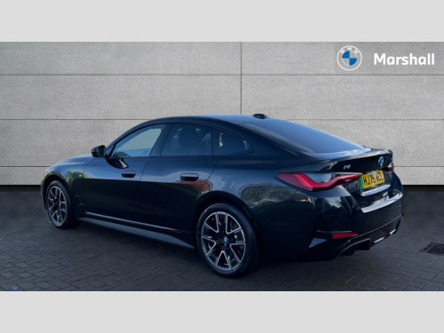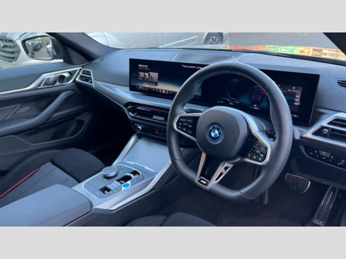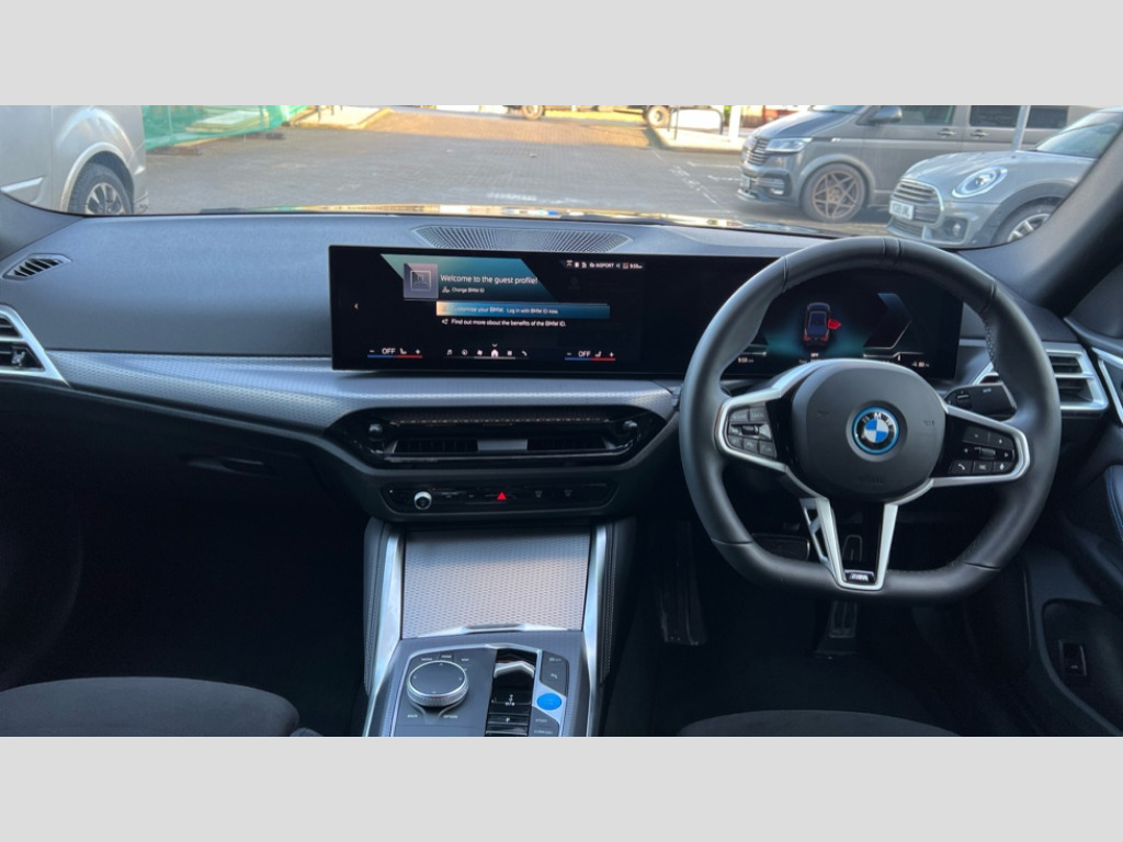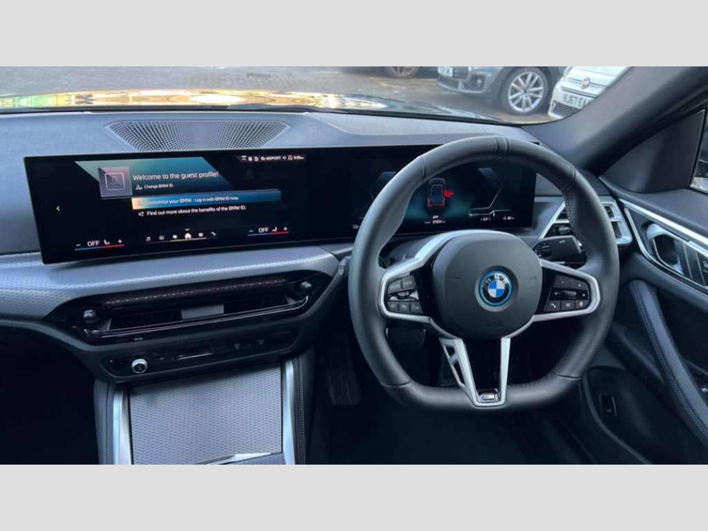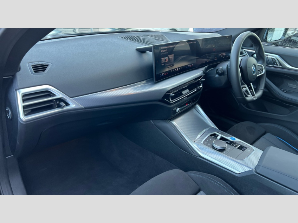 BMW I4 250kW eDrive40 M Sport 83.9kWh 5dr Auto 4G LTE connectivity, Active guard plus, Attentiveness assist, Automatic tailgate operation, Bluetooth Wi-Fi interface, BMW ConnectedDrive online services, BMW legal emergency call, BMW Maps, BMW remote services, BMW Teleservices, Drive off assistant, Driver profile, Driving experience switch, Electric boot lid, Engine start/stop button, iDrive touch controller, Integrated owners handbook, Language version English, Live cockpit plus with nav function 12.3" instrument cluster and 14.9" centre display, Personal Profile - automatic lock when driving away selectable, Service interval indicator, Widescreen display, AC charging up to 11kW, DC charging up to 150kW, eDrive exterior sound, Electric drive unit, Electronic differential lock, High voltage battery, Plug and charge, Public charging cable Mode 3, Safety battery terminal clamp, Silicon carbide inverter, 1x USB type A with data transfer and 1.5 Amp charging function in the centre console, 1x USB type C with 3 Amp charging function in the front centre armrest, DAB tuner, Personal eSim, BMW badge on bonnet and tailgate with blue ring around the badge, BMW radiator grille with mesh grille/end face of the nuggets in quartz silver matt, Body colour door handles, Body colour mirror caps with bottom segment in matt black, Electric adjustable exterior mirrors, Electric windows with trap release and convenient opening/closing feature, Electrochromic rear view mirror, Exterior mirror heated, Fading support, Follow me home headlights, Front and rear bumper system, Front apron plastic in body colour, Fuel filler flap - right rear in body colour, Headlight beam throw control, Heat protection glazing on front windows and windscreen, Heated washer jets, High gloss black mirror triangles, High gloss shadow line exterior trim, I badge with blue highlight on front ornamental grille, I4 charging socket flap, right, rear in body colour, i4 inscription at the rear left, Integrated outside door handles, flush design, flush integrated, handle recess indirectly illuminated, LED 3rd brake light, LED daytime running lights, LED direction indicator lenses, LED eyebrow light, LED front fog lights, LED rear fog light, LED rear lights, M entry sills, Mirror glass aspheric on driver's side, convex on passenger side, Number plate panel integrated into front bumper and tailgate, One piece front bumper cover including towing eye cover in body colour, Radiator grille frame in chrome matt, Rain sensor including auto headlights activation, Rear side wing doors, Rear wiper, Reversing light, Roof fin in body colour, Side frame trim strip in black matt, Side LED indicators, Side sills in high-gloss black with airbreathers in black, Trailer stabilisation logic, Turn indicators in side mirrors, Visible VIN plate, Welcome lighting, Window recess finisher strip in matt black, 12V power socket in front centre console with blanking plug, 2 front cupholder in centre console with clamping elements and matt black inlay, 3 seat bench in 2nd row, 3 spoke flat bottom M sport leather steering wheel, 40:20:40 split folding rear seat and rear centre armrest with two cupholders, Adjustable steering column, Ambient inside door handle light, Ambient light design projected onto the left and right entering and exiting area, Ambient lighting front and rear with 9 selectable colours, Ambient storage compartment lighting in the centre console, Anthracite headlining, Automatic air conditioning with 3 zone control, Battery in luggage compartment, Black trailer tow hitch button on right, BMW ID, Contour lighting in instrument panel and door trim panel, Dynamic function of contour lighting - welcome, goodbye, open doors, phone call, Front ambient footwell lighting, Front and rear armrest with integrated door trim, Front and rear door exit lights, Front and rear door pockets, Glovebox light, Headrests for all seats, Illuminated armrest storage compartment, Interior light and reading light, Lashing eyelets in boot, Light projection of an ambient lighting graphic, Luggage compartment light, Multifunction steering wheel, Rear storage compartment, Single front passenger seat, Storage tray and compartment with cover in centre console, Sunvisors with illuminated vanity mirrors and ticket pocket, Through loading system, Toolkit in luggage compartment, Velour floor mats, Connected package professional - I4, Interior and exterior mirror pack - I4, M Sport exterior styling pack - I4, Parking assistant pack - I4, 3 point seatbelts on all seats, Acoustic protection for pedestrians, Active protection, Anti lock braking system (ABS) with brake assist, Automatic Stability Control (ASC), Battery safety cut-off, Brake drying, Brake energy regeneration, Brake pretensioning, Child lock button on rear side window, Cornering brake control (CBC), Crash sensor, Driver and front passenger airbags, Driver and passenger side airbags, Driver/passenger seat occupancy sensor, DSC - Dynamic Stability Control, Dynamic brake control, Dynamic Traction Control - DTC, Electromechanical parking brake, Front and rear ventilated brake disc, Front passenger airbag deactivation, Head airbags for all 4 outer seats, Hill start assistant, ISOFIX child seat mounting on rear outer seats, M sport blue brake calipers, Recuperation system, Side impact protection, Sport brake calipers, Twin horns, Tyre pressure sensor, Warning triangle and first aid kit, Alarm system, Central locking including 2 vehicle keys with integrated emergency key, Central locking switch, Electronic vehicle immobiliser, Locking wheel bolts, Sensatec dashboard, Tyre repair kit plus