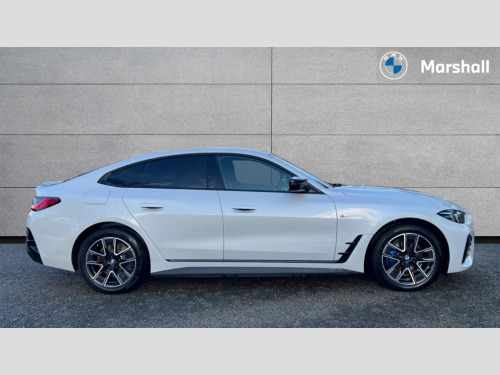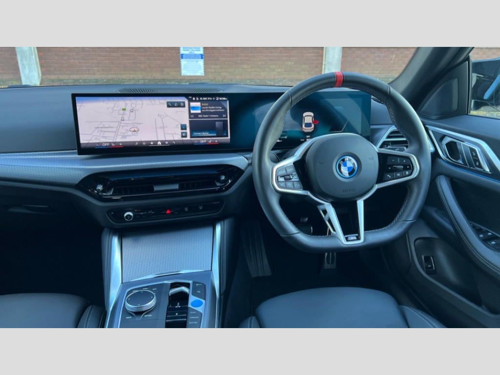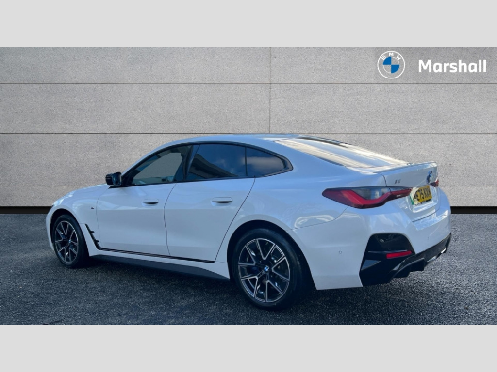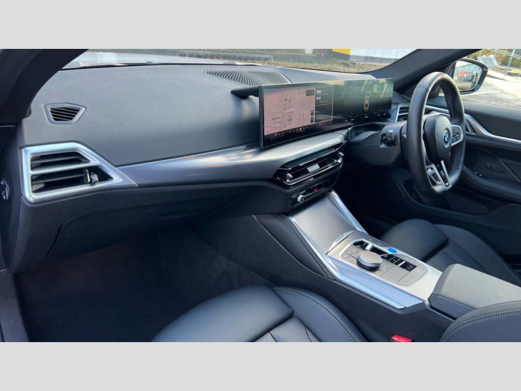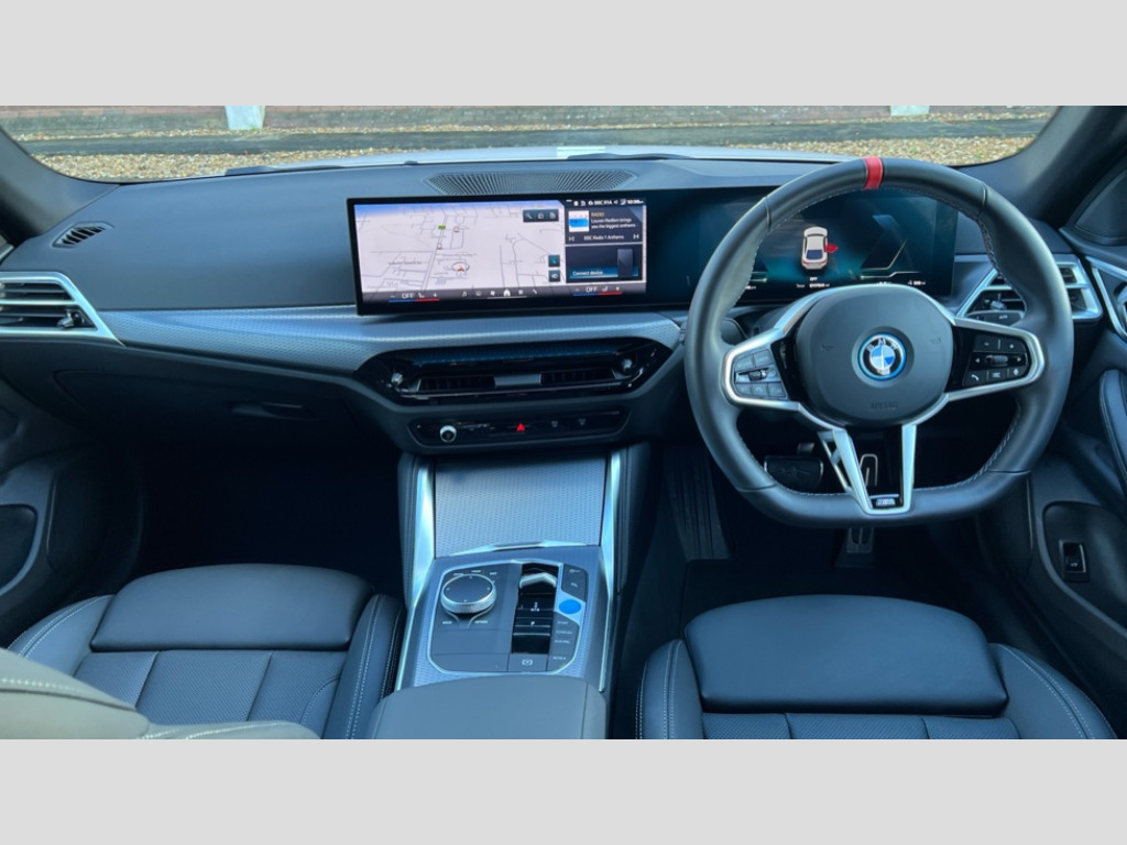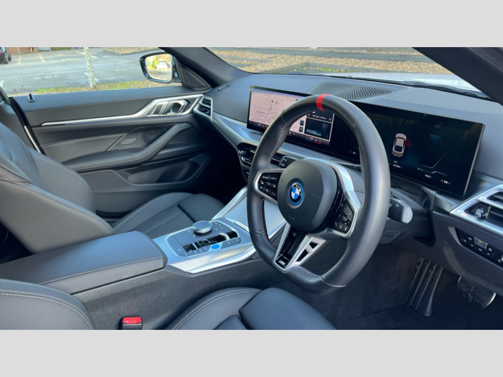 BMW I4 400kW M50 83.9kWh 5dr Auto [18 Alloy] 4G LTE connectivity, Active guard plus, Attentiveness assist, Automatic tailgate operation, Bluetooth Wi-Fi interface, BMW ConnectedDrive online services, BMW legal emergency call, BMW Maps, BMW remote services, BMW Teleservices, Drive off assistant, Driver profile, Driving experience switch, Electric boot lid, Engine start/stop button, iDrive touch controller, Integrated owners handbook, Language version English, Personal Profile - automatic lock when driving away selectable, Service interval indicator, Variable sports power steering, Widescreen display, AC charging up to 11kW, Adaptive M suspension, DC charging up to 150kW, eDrive exterior sound, Electric drive unit, Electronic differential lock, High voltage battery, Plug and charge, Public charging cable Mode 3, Safety battery terminal clamp, 1x USB type A with data transfer and 1.5 Amp charging function in the centre console, 1x USB type C with 3 Amp charging function in the front centre armrest, BMW iconic sound electric, DAB tuner, Personal eSim, BMW badge on bonnet and tailgate with blue ring around the badge, BMW radiator grille with mesh grille/end face of the nuggets in quartz silver matt, Body colour door handles, Diffuser panel highlights in frozen grey, Electric adjustable exterior mirrors, Electric windows with trap release and convenient opening/closing feature, Extended high gloss shadow line exterior trim, Exterior air inlets in front bumper in high gloss black, Exterior mirror heated, Fading support, Follow me home headlights, Front and rear bumper system, Front apron plastic in body colour, Fuel filler flap - right rear in body colour, Headlight beam throw control, Heat protection glazing on front windows and windscreen, Heated washer jets, High gloss black radiator grille frame, High gloss shadow line exterior trim, I badge with blue highlight on front ornamental grille, I4 charging socket flap, right, rear in body colour, Integrated outside door handles, flush design, flush integrated, handle recess indirectly illuminated, Lateral blue accent including air breather, LED 3rd brake light, LED daytime running lights, LED direction indicator lenses, LED eyebrow light, LED front fog lights, LED rear fog light, LED rear lights, M entry sills, M logo on radiator grille and front side panel, Mirror glass aspheric on driver's side, convex on passenger side, Model badge and M badge in pearl chrome, Model logo - Rear and right model designation, Rear left i4 inscription, Number plate panel integrated into front bumper and tailgate, One piece front bumper cover including towing eye cover in body colour, Rain sensor including auto headlights activation, Rear bumper with blue accent, Rear side wing doors, Rear wiper, Reversing light, Roof fin in body colour, Side frame trim strip in high gloss black, Side LED indicators, Sun protection glass, Trailer stabilisation logic, Turn indicators in side mirrors, Visible VIN plate, Welcome lighting, Window recess finisher strip in high gloss black, 12V power socket in front centre console with blanking plug, 2 front cupholder in centre console with clamping elements and matt black inlay, 3 seat bench in 2nd row, 3 spoke flat bottom M sport leather steering wheel, 40:20:40 split folding rear seat and rear centre armrest with two cupholders, Adjustable steering column, Aluminium door sill strips front with BMW i inscription, Ambient inside door handle light, Ambient light design projected onto the left and right entering and exiting area, Ambient lighting front and rear with 9 selectable colours, Ambient storage compartment lighting in the centre console, Anthracite headlining, Automatic air conditioning with 3 zone control, Battery in luggage compartment, BMW ID, Contour lighting in instrument panel and door trim panel, Dynamic function of contour lighting - welcome, goodbye, open doors, phone call, Electric memory seats and electrically adjustable seat height, backrest tilt, seat position, seat base tilt, memory for driver seat, exterior mirror, Front ambient footwell lighting, Front and rear armrest with integrated door trim, Front and rear door exit lights, Front and rear door pockets, Glovebox light, Headrests for all seats, Illuminated armrest storage compartment, Interior light and reading light, Lashing eyelets in boot, Light projection of an ambient lighting graphic, Luggage compartment light, Multifunction steering wheel, Rear storage compartment, Single front passenger seat, Storage tray and compartment with cover in centre console, Sunvisors with illuminated vanity mirrors and ticket pocket, Through loading system, Toolkit in luggage compartment, Velour floor mats, Connected package professional - I4, Interior and exterior mirror pack - I4, M Sport exterior styling pack - I4, 3 point seatbelts on all seats, Acoustic protection for pedestrians, Active protection, Anti lock braking system (ABS) with brake assist, Automatic Stability Control (ASC), Battery safety cut-off, Brake drying, Brake energy regeneration, Brake pretensioning, Child lock button on rear side window, Cornering brake control (CBC), Crash sensor, Driver and front passenger airbags, Driver and passenger side airbags, Driver/passenger seat occupancy sensor, DSC - Dynamic Stability Control, Dynamic brake control, Dynamic Traction Control - DTC, Electromechanical parking brake, Front and rear ventilated brake disc, Front passenger airbag deactivation, Head airbags for all 4 outer seats, Hill start assistant, ISOFIX child seat mounting on rear outer seats, Recuperation system, Side impact protection, Twin horns, Tyre pressure sensor, Warning triangle and first aid kit, Alarm system, Central locking including 2 vehicle keys with integrated emergency key, Central locking switch, Electronic vehicle immobiliser, Locking wheel bolts, Sensatec dashboard, Tyre repair kit plus