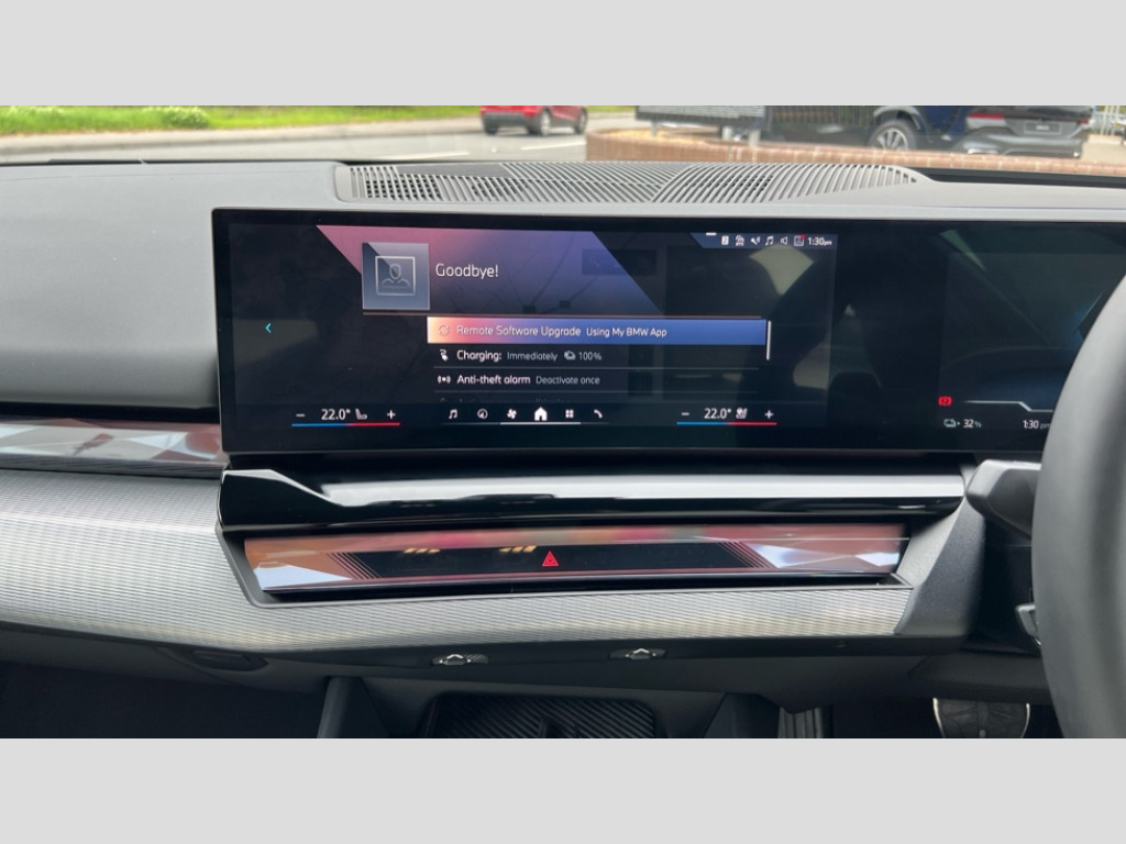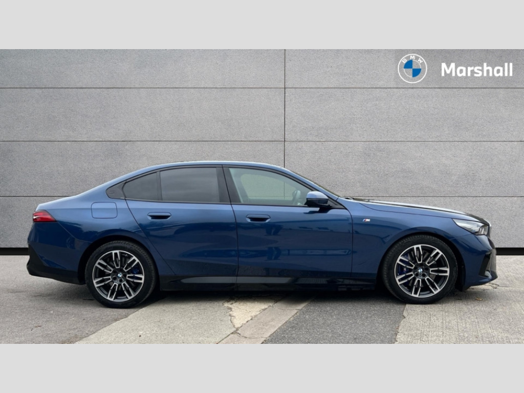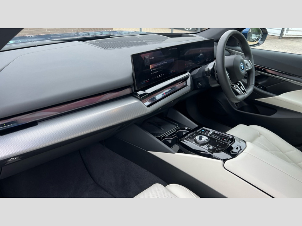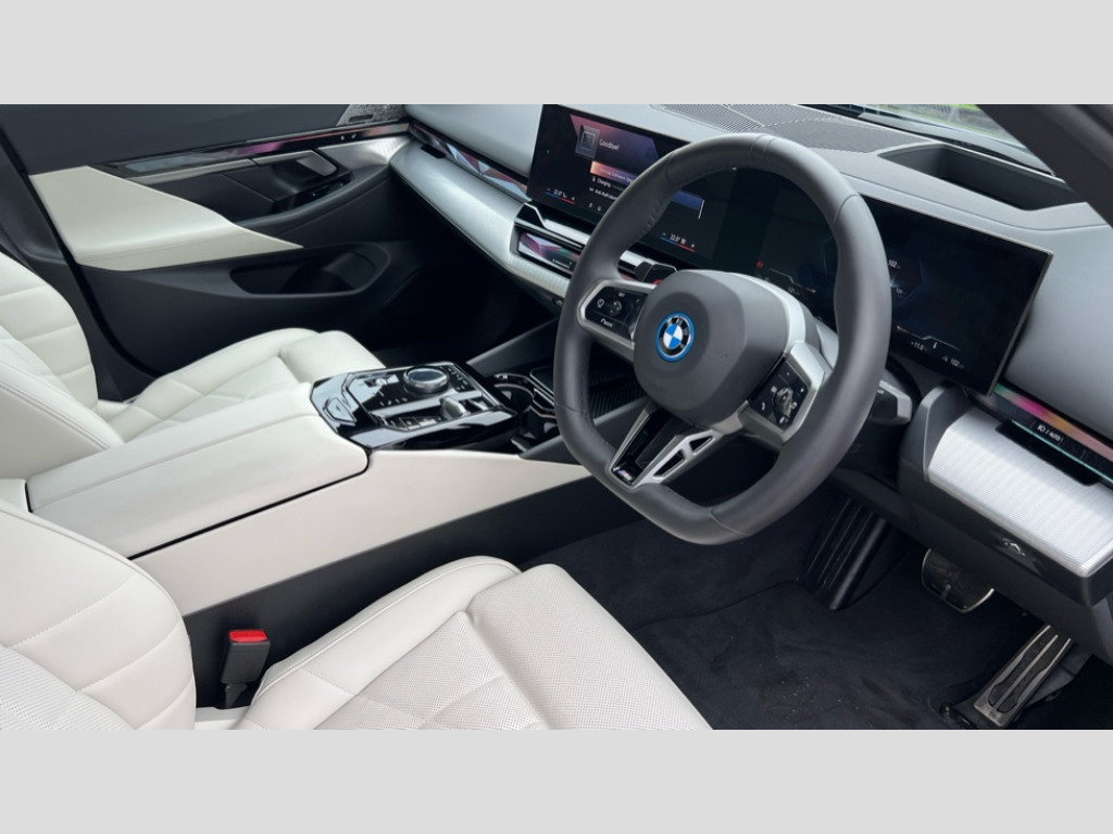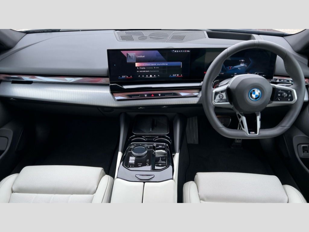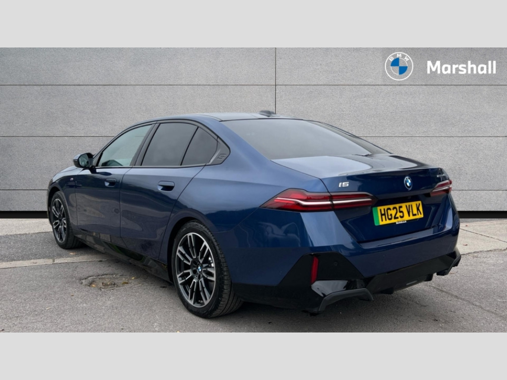 BMW I5 250kW eDrive40 M Sport 84kWh 4dr Auto BMW ConnectedDrive online services, BMW Iconic sounds electric, BMW legal emergency call, BMW Teleservices, Brake pad wear indicator, Cruise control with brake assist, Driving Assistant Plus Preparation, Front collision warning with brake intervention, Lane departure warning with active return, Left turn warning with brake function, Multifunctional instrument panel, Oil sensor for level and grade, On board computer inc. average speed, fuel consumption, liquid crystal Info display, journey computer, outside temperature display, personal profile, On-board diagnosis - OBD, PAS, Personal e-SIM, Powered by Operating System 7.0, Run flat indicator, Service interval indicator, Speed limit Info with manual speed limit assist, AC charging cable professional (mode 3) for public charging, AC charging up to 11kW, DAB tuner, Acoustic glazing, Adaptive LED Headlights, Automatic cornering lights, Automatic windscreen wipers and automatic headlight, BMW selective beam, Body colour door handles, Body coloured bumpers, Dynamic brake lights with LED technology, Electric front and rear windows with fingertip open/close + anti-trap facility and comfort closing function, Follow me home headlight function, Headlight elements in blue, Heated windscreen washer jets, LED daytime running lights, LED third brake light, Light colour close to that of ordinary daylight, Optimum, homogeneous illumination of the road, Rear boot, Rear side wing doors, 2 zone automatic air conditioning, 3 seat bench in 2nd row, 3 spoke leather M steering wheel in BMW M specific design with M badge, Armrest - front and rear integrated door trim, centre console includes storage compartment, rear centre includes 2 cupholders, Electric adjustable front sports seats, Electrically adjustable lumbar support for driver and front passenger, Heated driver and front passenger seats, High-gloss black door switch cluster, power window switch and tailgate button on first and second row seat, M Anthracite headlining, M Sport pedal covers in stainless steel, Rear headrests, Single front passenger seat, Through loading system with 40/20/40 rear seat backrest split, Velour floormats, Wireless charging tray, Ambient lighting pack - 5 Series/I5, Connected package professional - 5 Series/I5, Driving assistance pack - 5 Series/I5, Expanded exterior mirror package - 5 series/I5, M high gloss shadow line pack - 5 Series/ I5, M Sport exterior styling pack - 5 Series/I5, 3 rear three point seatbelts, Acoustic protection for pedestrians, Active protection, Airbag deployment is controlled with respect to the intensity and scope, Anti-lock braking system (ABS), Brake assist, Brake energy regeneration, Cornering brake control (CBC), Crash sensor activating central locking release, hazard warning lights, fuel cut off and interior lighting, Driver and front passenger airbags, Driver central airbag, Driver/front passenger side airbags, DSC - Dynamic Stability Control, Dynamic brake control, Dynamic Traction Control - DTC, Electromechanical parking brake with automatic drive away release and auto hold function, Electronic brake force distribution, Engine drag torque control, Front and rear brake discs with interior ventilation, Front and rear curtain airbags, Front head restraints with anti-whiplash, Head airbags for first and second row seats, Hill start assist, Locking of doors after driving off, M Sport brake in blue high gloss painted brake callipers with monochrome logo on front calliper, Mechanical child proof lock on rear doors, PC iBrake PostCrash approach control warning with light braking function, Side impact protection, Trailer stability control, Two tone horn, Tyre pressure monitoring system, Warning triangle and first aid kit, Alarm system, Locking wheel bolts including wheel bolt adapter, Tyre repair kit plus
