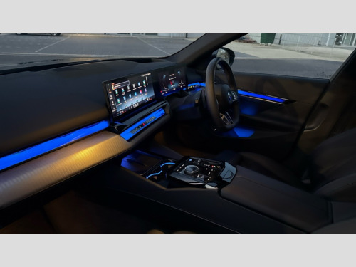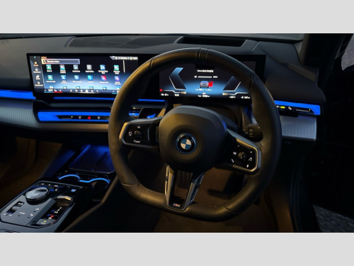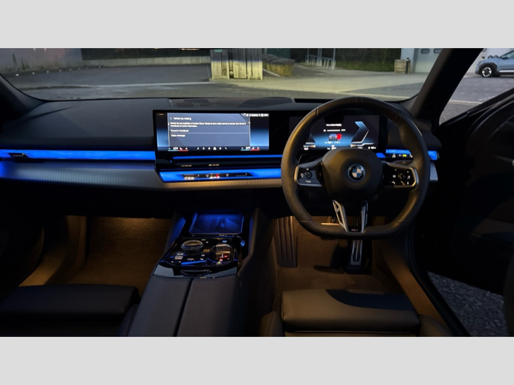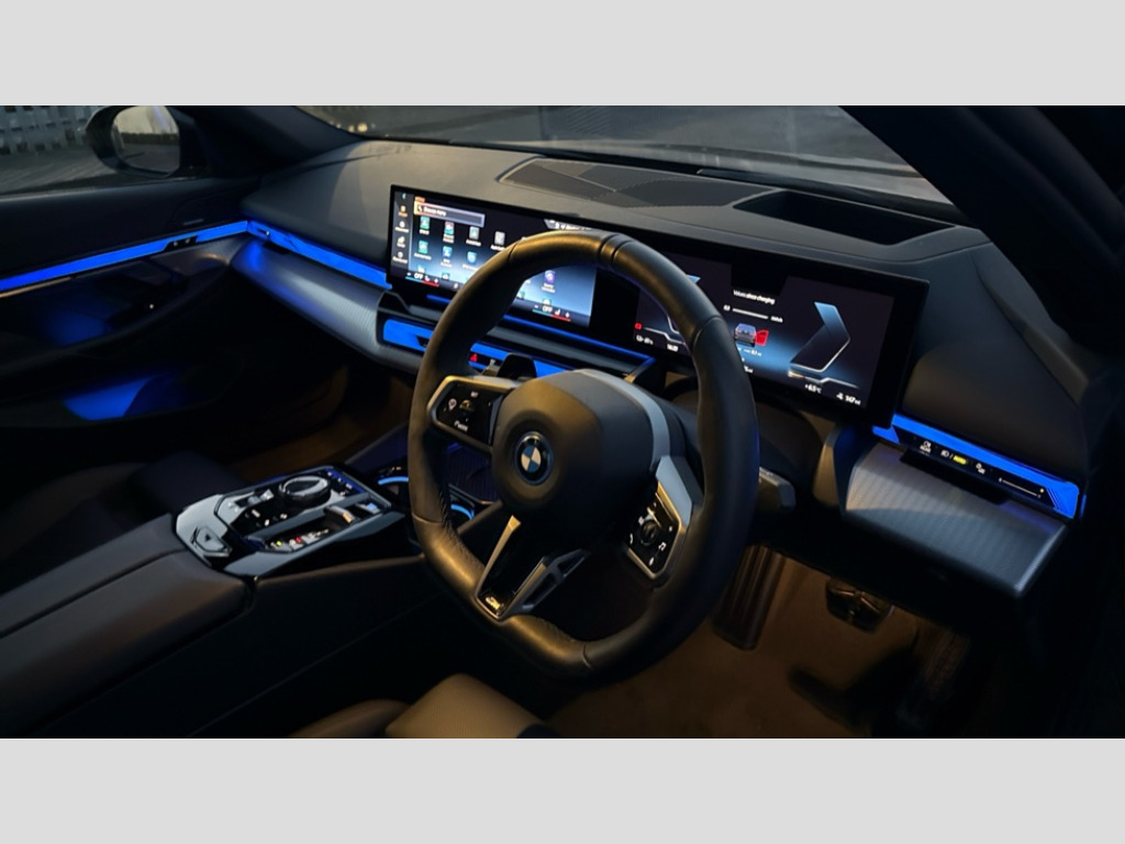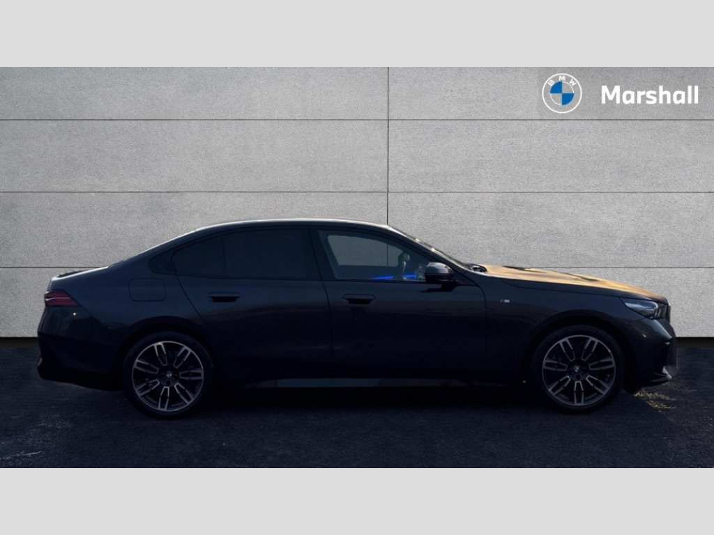 BMW I5 250kW eDrive40 M Sport 84kWh 4dr Auto BMW ConnectedDrive online services, BMW Iconic sounds electric, BMW legal emergency call, BMW Teleservices, Brake pad wear indicator, Cruise control with brake assist, Driving Assistant Plus Preparation, Front collision warning with brake intervention, Lane departure warning with active return, Left turn warning with brake function, Multifunctional instrument panel, Oil sensor for level and grade, On board computer inc. average speed, fuel consumption, liquid crystal Info display, journey computer, outside temperature display, personal profile, On-board diagnosis - OBD, PAS, Personal e-SIM, Powered by Operating System 7.0, Run flat indicator, Service interval indicator, Speed limit Info with manual speed limit assist, AC charging cable professional (mode 3) for public charging, AC charging up to 11kW, DAB tuner, Acoustic glazing, Adaptive LED Headlights, Automatic cornering lights, Automatic windscreen wipers and automatic headlight, BMW selective beam, Body colour door handles, Body coloured bumpers, Dynamic brake lights with LED technology, Electric front and rear windows with fingertip open/close + anti-trap facility and comfort closing function, Follow me home headlight function, Headlight elements in blue, Heated windscreen washer jets, LED daytime running lights, LED third brake light, Light colour close to that of ordinary daylight, Optimum, homogeneous illumination of the road, Rear boot, Rear side wing doors, 2 zone automatic air conditioning, 3 seat bench in 2nd row, 3 spoke leather M steering wheel in BMW M specific design with M badge, Armrest - front and rear integrated door trim, centre console includes storage compartment, rear centre includes 2 cupholders, Electric adjustable front sports seats, Electrically adjustable lumbar support for driver and front passenger, Heated driver and front passenger seats, High-gloss black door switch cluster, power window switch and tailgate button on first and second row seat, M Anthracite headlining, M Sport pedal covers in stainless steel, Rear headrests, Single front passenger seat, Through loading system with 40/20/40 rear seat backrest split, Velour floormats, Wireless charging tray, Ambient lighting pack - 5 Series/I5, Connected package professional - 5 Series/I5, Driving assistance pack - 5 Series/I5, Expanded exterior mirror package - 5 series/I5, M high gloss shadow line pack - 5 Series/ I5, M Sport exterior styling pack - 5 Series/I5, 3 rear three point seatbelts, Acoustic protection for pedestrians, Active protection, Airbag deployment is controlled with respect to the intensity and scope, Anti-lock braking system (ABS), Brake assist, Brake energy regeneration, Cornering brake control (CBC), Crash sensor activating central locking release, hazard warning lights, fuel cut off and interior lighting, Driver and front passenger airbags, Driver central airbag, Driver/front passenger side airbags, DSC - Dynamic Stability Control, Dynamic brake control, Dynamic Traction Control - DTC, Electromechanical parking brake with automatic drive away release and auto hold function, Electronic brake force distribution, Engine drag torque control, Front and rear brake discs with interior ventilation, Front and rear curtain airbags, Front head restraints with anti-whiplash, Head airbags for first and second row seats, Hill start assist, Locking of doors after driving off, M Sport brake in blue high gloss painted brake callipers with monochrome logo on front calliper, Mechanical child proof lock on rear doors, PC iBrake PostCrash approach control warning with light braking function, Side impact protection, Trailer stability control, Two tone horn, Tyre pressure monitoring system, Warning triangle and first aid kit, Alarm system, Locking wheel bolts including wheel bolt adapter, Tyre repair kit plus