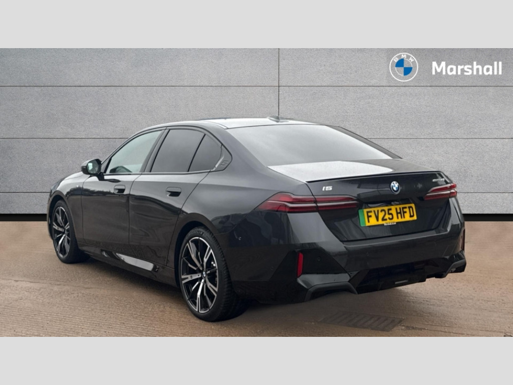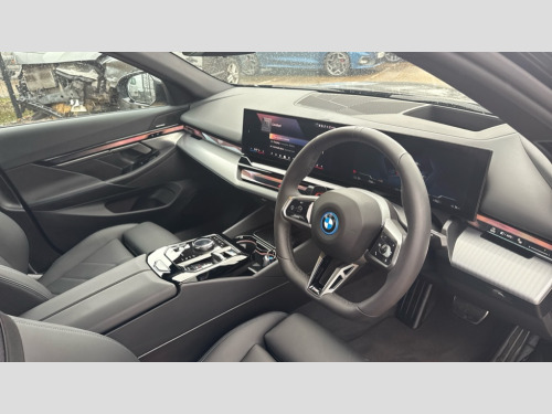 BMW I5 250kW eDrive40 M Sport Pro 84kWh 4dr Auto BMW ConnectedDrive online services, BMW Iconic sounds electric, BMW legal emergency call, BMW Teleservices, Brake pad wear indicator, Cruise control with brake assist, Driving Assistant Plus Preparation, Front collision warning with brake intervention, Lane departure warning with active return, Left turn warning with brake function, Multifunctional instrument panel, Oil sensor for level and grade, On board computer inc. average speed, fuel consumption, liquid crystal Info display, journey computer, outside temperature display, personal profile, On-board diagnosis - OBD, PAS, Personal e-SIM, Powered by Operating System 7.0, Run flat indicator, Service interval indicator, Speed limit Info with manual speed limit assist, AC charging cable professional (mode 3) for public charging, AC charging up to 11kW, Launch control, DAB tuner, Acoustic glazing, Adaptive LED Headlights, Automatic cornering lights, Automatic windscreen wipers and automatic headlight, BMW selective beam, Body colour door handles, Body coloured bumpers, Dynamic brake lights with LED technology, Electric front and rear windows with fingertip open/close + anti-trap facility and comfort closing function, Follow me home headlight function, Headlight elements in blue, Heated windscreen washer jets, LED daytime running lights, LED third brake light, Light colour close to that of ordinary daylight, M high gloss shadow line with extended contents - Radiator grille frame, struts and strip in rear light, M light shadowline - Dark design of selected elements of the headlight and rear lights, Optimum, homogeneous illumination of the road, Rear boot, Rear side wing doors, 2 zone automatic air conditioning, 3 seat bench in 2nd row, 3 spoke leather M steering wheel in BMW M specific design with M badge, Armrest - front and rear integrated door trim, centre console includes storage compartment, rear centre includes 2 cupholders, Electric adjustable front sports seats, Electrically adjustable lumbar support for driver and front passenger, Heated driver and front passenger seats, High-gloss black door switch cluster, power window switch and tailgate button on first and second row seat, M Anthracite headlining, M Sport pedal covers in stainless steel, Rear headrests, Single front passenger seat, Through loading system with 40/20/40 rear seat backrest split, Velour floormats, Wireless charging tray, Ambient lighting pack - 5 Series/I5, BMW Iconic glow kidney grille exterior package, Connected package professional - 5 Series/I5, Driving assistance pack - 5 Series/I5, Expanded exterior mirror package - 5 series/I5, M high gloss shadow line pack - 5 Series/ I5, M Sport exterior styling pack - 5 Series/I5, 3 rear three point seatbelts, Acoustic protection for pedestrians, Active protection, Airbag deployment is controlled with respect to the intensity and scope, Anti-lock braking system (ABS), Brake assist, Brake energy regeneration, Cornering brake control (CBC), Crash sensor activating central locking release, hazard warning lights, fuel cut off and interior lighting, Driver and front passenger airbags, Driver central airbag, Driver/front passenger side airbags, DSC - Dynamic Stability Control, Dynamic brake control, Dynamic Traction Control - DTC, Electromechanical parking brake with automatic drive away release and auto hold function, Electronic brake force distribution, Engine drag torque control, Front and rear brake discs with interior ventilation, Front and rear curtain airbags, Front head restraints with anti-whiplash, Head airbags for first and second row seats, Hill start assist, Locking of doors after driving off, M seat belts, Mechanical child proof lock on rear doors, PC iBrake PostCrash approach control warning with light braking function, Side impact protection, Trailer stability control, Two tone horn, Tyre pressure monitoring system, Warning triangle and first aid kit, Alarm system, Locking wheel bolts including wheel bolt adapter, Tyre repair kit plus
