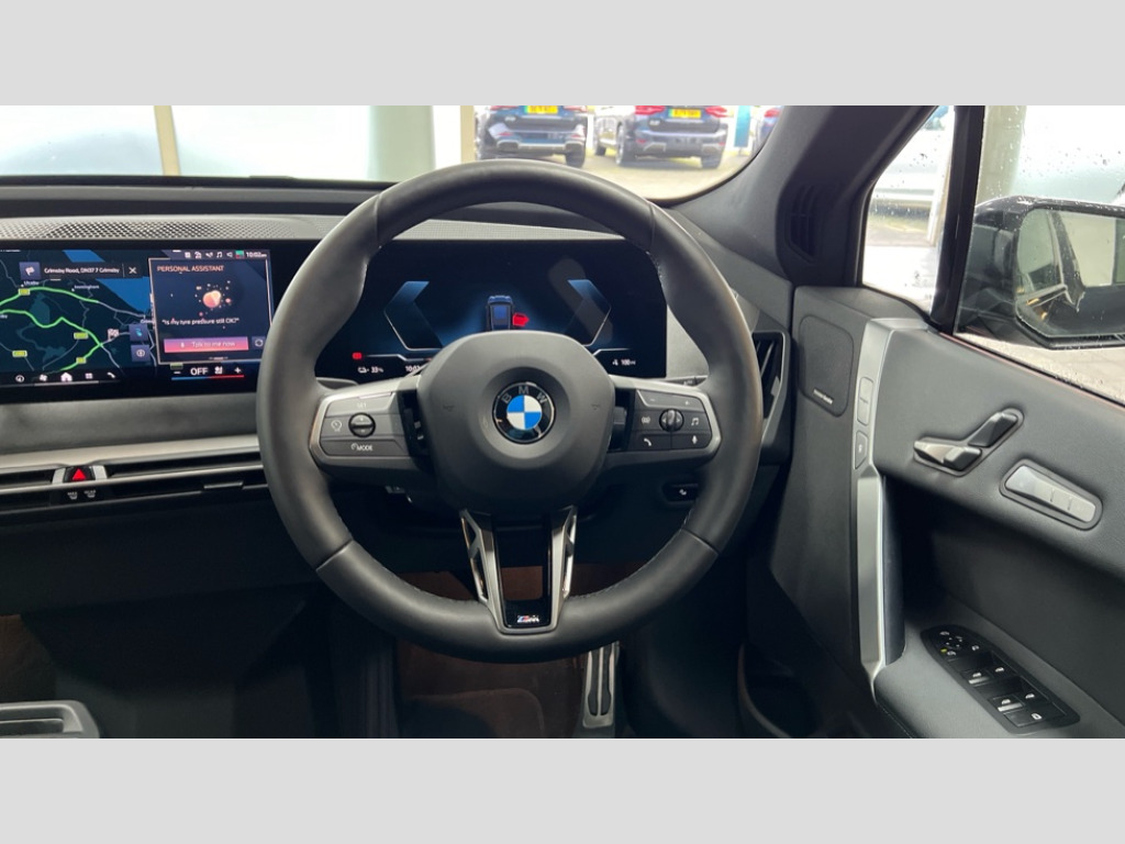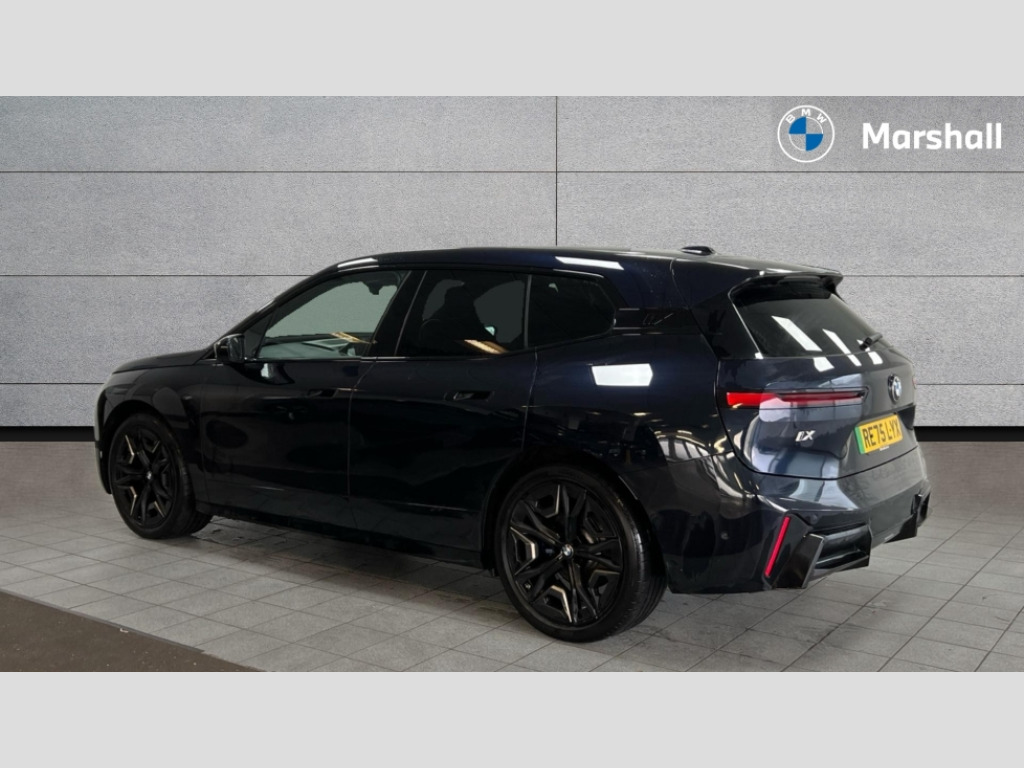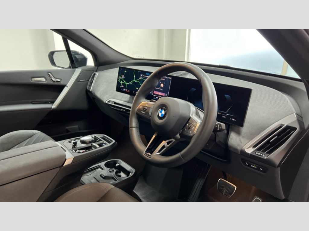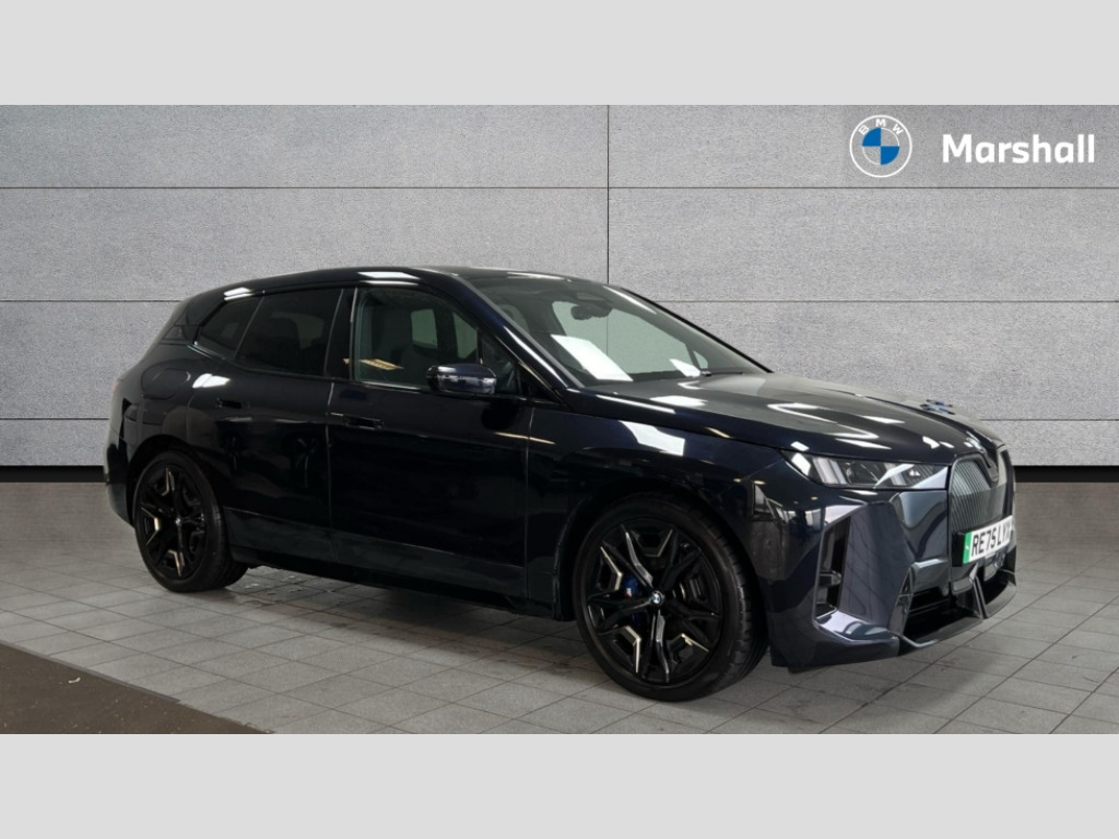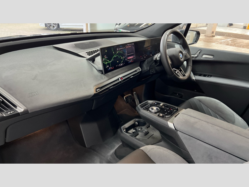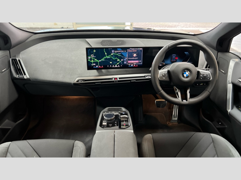 BMW Ix 300kW xDrive45 M Sport 101kWh 5dr Auto Attentiveness assist, BMW ConnectedDrive online services, BMW Iconic sounds electric, BMW Live cockpit plus with navigation function and BMW maps, BMW Natural interaction, BMW Teleservices, Brake pad wear indicator warning light, Condition based service, Drive off assistant, Electric Power Steering (EPS) with Servotronic, Electric tailgate, Engine start/stop button, Great Britian/Ireland verison, iDrive controller, Integrated owners handbook, Language version English, Live Cockpit Professional with head up display including 12.3" instrument cluster and 14.9" central display, On board documentation English, Parking assistant with ultrasound based assistance system, reversing assistant, lateral parking aid and rear view camera, Service interval indicator, Speed limiter, AC charging up to 11kW, BMW xDrive system, DC charging up to 150kW, Double wishbone front axle, eDrive exterior sound, Electric drive unit, High voltage 71kWh battery, Mode 3 charging cable, DAB Tuner enables digital radio reception, Personal eSim, USB connections (2 x Type C in cupholder area and 2 x Type C on rear of front seats), Adaptive LED headlights with high beam assist, Automatic beam throw control, BMW emblem on engine compartment lid and tailgate, Body colour door mirrors, Body colour plastic front apron, Body colour roof fin, Body coloured bumpers, Charging flap in rear right side panel, Dynamic brake lights, Electric integrated door handles flush with the door surface, Fading support, Follow me home headlight function, Frameless interior mirror, Front and rear bumper system with replaceable deformation elements, Front and rear electric windows, Fuel filler flap - right rear in body colour, Heated windscreen washer jets, Integrated direction indicators, LED daytime running lights, LED licence plate lights, LED rear lights, Licence plate panel integrated into front bumper and tailgate, M Sport exterior styling, M sport specific bumpers, Mirror base in black matt, Model logo - iX on left of tailgate and xDrive model inscription and model designation on right of tailgate, One piece front bumper cover including towing eye cover in body colour, Rain sensor + automatic driving lights control, Rear side wing doors, Rear window wiper, Side frame decorative moulding black high gloss, Third brake light featuring LED technology, Trailer stabilisation logic, Welcome light carpet, Window cavity cover in black high gloss, 12V - Power sockets with front centre console and luggage compartment, 2 Integrated head restraints in the outer seats, one height-adjustable head restraint for the centre seat, 3 seat bench in 2nd row, 3 spoke M sport leather multifunction steering wheel, 40:20:40 split folding rear seat backrests, Ambient door pocket lighting in front, Ambient interior lighting, Anthracite headlining, Area lighting in the door trim panel, BMW ID, Door entry lights in the front door trim panel, Driver and front passenger heated seats, Dynamic function of contour lighting - welcome, goodbye, open doors, phone call, Electric adjustable steering column, Fixed luggage compartment cover, Four cupholders (2 front and 2 in rear centre arm rest), Four lashing eyes in luggage compartment, Front and rear door pockets, Glove box with electric unlocking (button next to glove box lid), Headrests for all seats, Interior door handle lighting in front and rear, Interior light - Front/rear reading light, glovebox, centre console storage, front footwell, makeup mirro, Luggage compartment and Fire place light, Luggage compartment floor panel with integral storage tray, Luggage compartment separating nets, M Interior accents in dark silver, Mobile phone tray in the front centre console in good view of the driver, Multifunction hooks, Rear centre armrest, Seat back with flap pocket, Single front passenger seat, Split folding rear seats, Stationary cooling, Storage space underneath the floor insert, Storage tray and compartment with cover in centre console, Sun visors, Velour floor mats, Wireless charging tray, Connected package professional - iX, Driving assistant professional pack - iX, Expanded exterior mirror pack - iX, Active protection, Anti-lock braking system (ABS), Automatic Stability Control (ASC), BMW emergency call, Brake drying, Brake energy regeneration, Child locks on rear doors, Child seat ISOFIX attachment rear outer seats, Cornering brake control (CBC), Crash sensor, Driver and front passenger airbags, Driver and passenger side airbags, DSC - Dynamic Stability Control with extended contents, Dynamic brake control, Dynamic Traction Control - DTC, Electromechanical parking brake, Electronic differential lock control (EDLC), Front brake discs with interior ventilation, Head airbags for 1st and 2nd seat row, Hill descent control, Hill start assistant, Integrated brake system, Integrated sport braking system, Passive protection for pedestrians, Rear brake discs with interior ventilation, Recuperation system, Seat occupancy detection for driver and passenger side, Side impact protection, Three point seat belts for all four seats, Two tone horn, Tyre pressure sensor, Warning triangle and first aid kit, Alarm system, Closing system with central locking, Comfort access system with BMW digital key plus, Engine immobiliser, Interior camera, Interior centre lock switch, Keyless engine start, Locking wheel bolts, Diagonal stitching on seats, Tool kit, Tyre repair kit