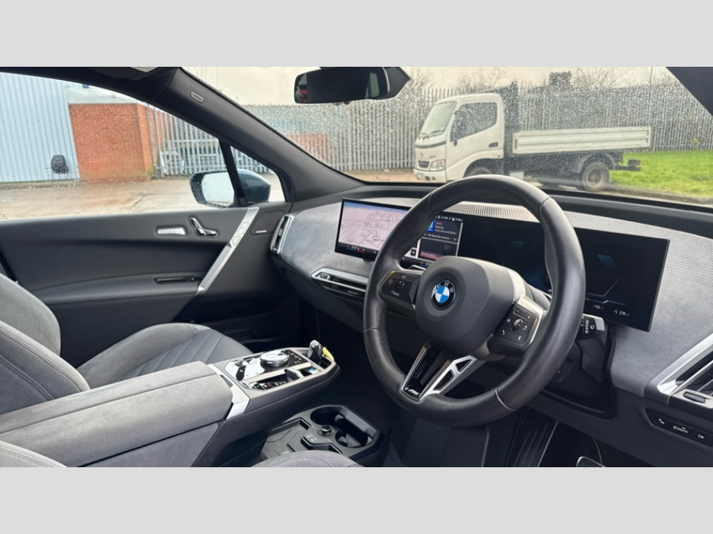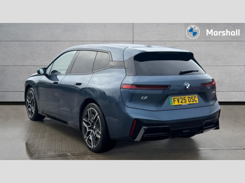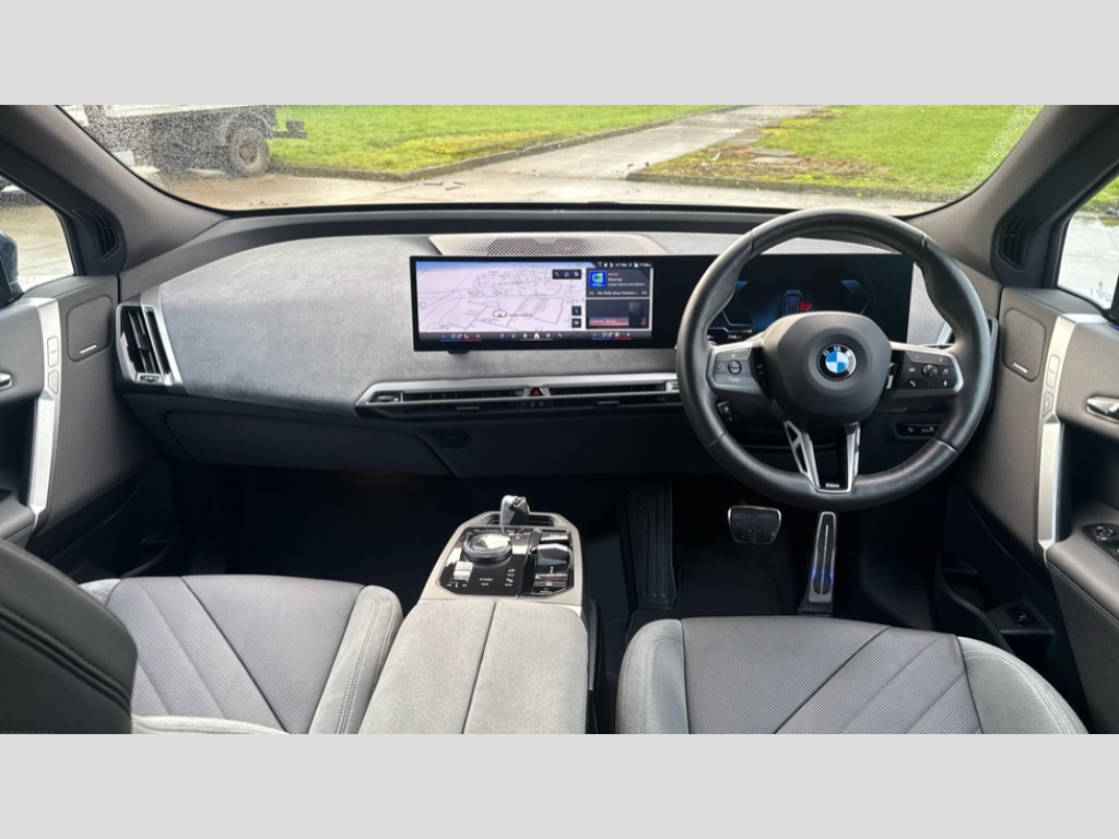 BMW Ix 400kW xDrive60 M Sport 112kWh 5dr Auto Attentiveness assist, BMW ConnectedDrive online services, BMW Iconic sounds electric, BMW Live cockpit plus with navigation function and BMW maps, BMW Natural interaction, BMW Teleservices, Brake pad wear indicator warning light, Condition based service, Electric Power Steering (EPS) with Servotronic, Electric tailgate, Engine start/stop button, Great Britian/Ireland verison, iDrive controller, Integrated owners handbook, Language version English, Live Cockpit Professional with head up display including 12.3" instrument cluster and 14.9" central display, On board documentation English, Parking assistant with ultrasound based assistance system, reversing assistant, lateral parking aid and rear view camera, Service interval indicator, Speed limiter, AC charging up to 11kW, BMW xDrive system, DC charging up to 150kW, Double wishbone front axle, eDrive exterior sound, Electric drive unit, High voltage 71kWh battery, Mode 3 charging cable, DAB Tuner enables digital radio reception, Personal eSim, USB connections (2 x Type C in cupholder area and 2 x Type C on rear of front seats), Adaptive LED headlights with high beam assist, Automatic beam throw control, BMW emblem on engine compartment lid and tailgate, Body colour door mirrors, Body colour plastic front apron, Body colour roof fin, Body coloured bumpers, Charging flap in rear right side panel, Climate comfort windscreen, Dynamic brake lights, Electric integrated door handles flush with the door surface, Follow me home headlight function, Frameless interior mirror, Front and rear bumper system with replaceable deformation elements, Front and rear electric windows, Fuel filler flap - right rear in body colour, Heated windscreen washer jets, High beam assistant, Integrated direction indicators, LED daytime running lights, LED licence plate lights, LED rear lights, Licence plate panel integrated into front bumper and tailgate, M Sport exterior styling, M sport specific bumpers, Mirror base in black matt, Model logo - iX on left of tailgate and xDrive model inscription and model designation on right of tailgate, One piece front bumper cover including towing eye cover in body colour, Rain sensor + automatic driving lights control, Rear side wing doors, Rear window wiper, Side frame decorative moulding black high gloss, Third brake light featuring LED technology, Welcome light carpet, Window cavity cover in black high gloss, 12V - Power sockets with front centre console and luggage compartment, 2 Integrated head restraints in the outer seats, one height-adjustable head restraint for the centre seat, 3 seat bench in 2nd row, 3 spoke M sport leather multifunction steering wheel, 40:20:40 split folding rear seat backrests, Ambient door pocket lighting in front, Ambient interior lighting, Anthracite headlining, Area lighting in the door trim panel, BMW ID, Door entry lights in the front door trim panel, Dynamic function of contour lighting - welcome, goodbye, open doors, phone call, Electric adjustable steering column, Fixed luggage compartment cover, Four cupholders (2 front and 2 in rear centre arm rest), Four lashing eyes in luggage compartment, Front and rear door pockets, Glove box with electric unlocking (button next to glove box lid), Headrests for all seats, Interior door handle lighting in front and rear, Interior light - Front/rear reading light, glovebox, centre console storage, front footwell, makeup mirro, Luggage compartment and Fire place light, Luggage compartment floor panel with integral storage tray, M Interior accents in dark silver, Mobile phone tray in the front centre console in good view of the driver, Multifunction hooks, Rear centre armrest, Seat back with flap pocket, Single front passenger seat, Split folding rear seats, Stationary cooling, Storage space underneath the floor insert, Storage tray and compartment with cover in centre console, Sun visors, Velour floor mats, Wireless charging tray, Connected package professional - iX, Driving assistant professional pack - iX, Expanded exterior mirror pack - iX, Active protection, Anti-lock braking system (ABS), BMW emergency call, Brake energy regeneration, Child locks on rear doors, Child seat ISOFIX attachment rear outer seats, Cornering brake control (CBC), Crash sensor, Driver and front passenger airbags, Driver and passenger side airbags, DSC - Dynamic Stability Control with extended contents, Electromechanical parking brake, Front brake discs with interior ventilation, Head airbags for 1st and 2nd seat row, Hill start assistant, Integrated brake system, Integrated sport braking system, Passive protection for pedestrians, Rear brake discs with interior ventilation, Recuperation system, Seat occupancy detection for driver and passenger side, Side impact protection, Three point seat belts for all four seats, Two tone horn, Tyre pressure sensor, Warning triangle and first aid kit, Alarm system, Closing system with central locking, Comfort access system with BMW digital key plus, Engine immobiliser, Interior camera, Interior centre lock switch, Keyless engine start, Locking wheel bolts, Diagonal stitching on seats, Tool kit, Tyre repair kit