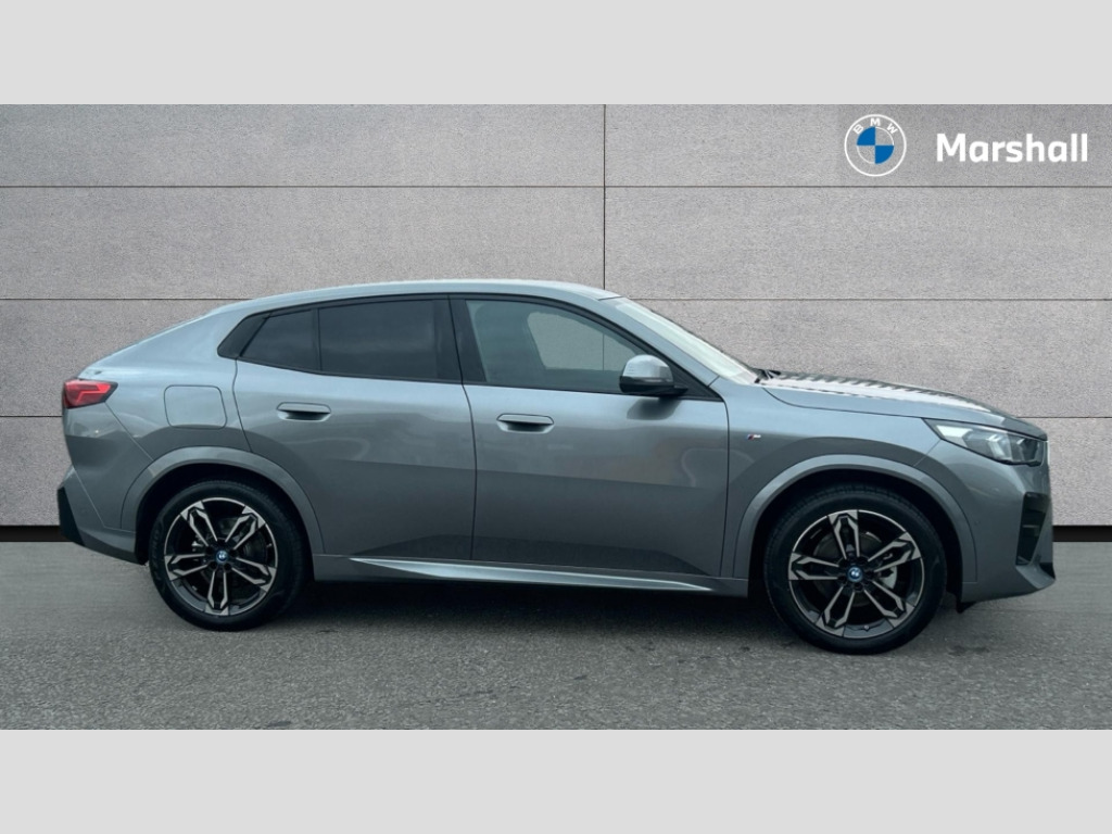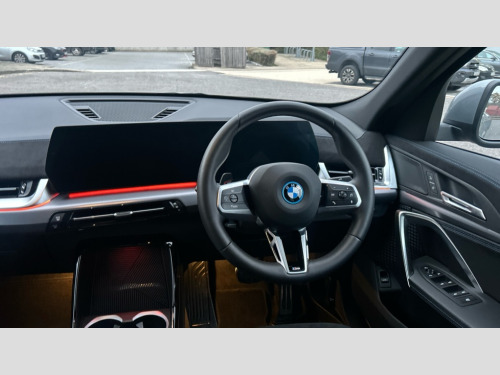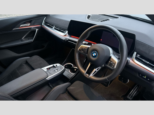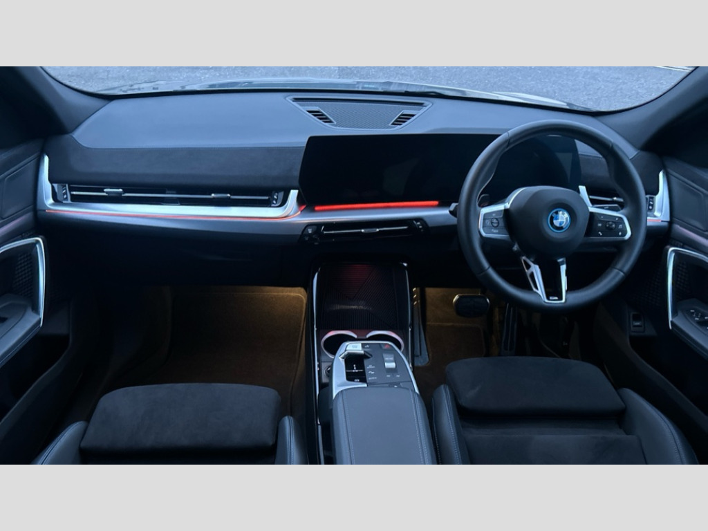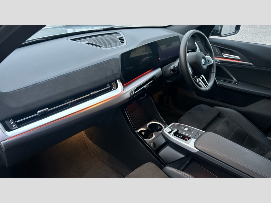 BMW Ix2 150kW eDrive20 M Sport 65kWh 5dr Auto 4G LTE connectivity, Attentiveness assist, Bluetooth / Wi-Fi interface with hands free system, BMW ConnectedDrive store and BMW Remote softwre upgrade, BMW Intelligent Personal Assistant, BMW Live Cockpit Plus - Widescreen display with 10.25" instrument cluster and 10.7" CID display, BMW Maps, BMW Operating System 9 with variable, confirgurable widgets, BMW Teleservices, Brake pad wear indicator, Condition based service, Connected drive services, Drive off assistant, Electrically opening/closing tailgate with opening/closing with remote control and contactless opening and closing, Gear display in instrument cluster including recommended gear, iDrive controller, Language version English, My modes (Personal / Efficient / Sport), Parking assistant with reversing assistant, active PDC, lateral parking aid and rear view camera, Personal Profile, Servotronic PAS, Smartphone integration for Apple CarPlay/Android Auto, Speed limiter, Touch operation on control display, Dynamic stability control, eDrive exterior sound, Fast charging cable professional mode 3 for public charging, M Adaptive suspension, Performance Control, BMW Personal eSim, DAB Digital radio, Tuner with diversity reception and RDS, AM radio and FM radio, B-pillar and front/rear door trim panels and exterior mirrors in matt black with mirror cap in vehicle colour, BMW radiator grille with mesh grid in black high gloss, radiator grille frame in pearl chrome, Dynamic brake lights, Electric adjustable heated door mirrors, Electric windows - front and rear, with open/close fingertip control, anti-trap facility and comfort closing, Folding door handles integrated flush with surface, Front bumper cover with air inlet trims for air curtains in matt black, Front door exit lights, Heated rear window, High Gloss Black rear spoiler, Home light, Invisible exhaust tailpipe, LED 3rd brake light integrated in rear window frame, LED daytime running lights, LED number plate light, Matt black roof strips, Model badge X2 on left tailgate, motorisation on right, Rain sensor including auto headlights activation, Rear side wing doors, Rear wiper, Side sill trim panel in black matt grained, Trailer stabilisation logic, Welcome lighting, Window recess finisher strips and side window frames in matt black, Window washer nozzle for rear view camera, Windscreen wipers front with heated washer nozzles, 12V - Power sockets with front centre console and luggage compartment, 12V socket in right side trim panel, 2 bag hooks in luggage compartment, 2 cup holders in front centre console, 2 front reading lights, 2 x USB Type C ports for charging and data transmission (front centre console) and 1 USB Type C ports for charging (rear centre console), 3 rear headrests, 3 seat bench in 2nd row, 3 upper retaining strap clips integrated into rear panels of seat backrests, 40:20:40 split folding rear seats, Ambient interior lighting, Anthracite front and rear floor mats, Bottle trays in all doors, Child seat ISOFIX attachment for two outer rear seats and front passenger seat with anchorage points, Driver and front passenger heated seats, Dual zone automatic air conditioning, Flat air vents on instrument panel in high gloss black, adjustable seats with elements in pearl chrome, Footrest and pedals in stainless steel look, Front and rear door pockets, Front and rear footwell lights, Front armrest with integrated control panel, Front centre console storage compartment, Front/rear adjustable head restraints, Glove compartment, Interior door handle recess light on all doors, Light on right in luggage compartment, M headliner Anthracite-A pillar trim panels,headliner in anthracite & B,C,D pillar upper trim panels,sun visors,grab handles,microphone cover in black, M leather steering wheel, Map pockets on the seats (version depending on equipment), Middle centre console storage compartment, One piece parcel shelf opens together with tailgate and removable, Rear armrest in door trim panel, Rear coat hooks, Selector lever with toggle operation, Single front passenger seat, Storage compartment lighting in centre console and storage tray in centre stack, Storage compartment net in left side trim panel, Storage compartment with folding cover under centre console armrest cushion, Storage tray in right side trim panel, Sun visors with illuminated vanity mirrors, Tilt adjustment incl. cargo function of 2nd row of seats, ABS, Automatic hold function, BMW emergency call, Braking readiness, Child lock for rear electric windows, Cornering brake control (CBC), Crash Sensor - activates hazard/interior lighting + unlocks doors, Driver/Front Passenger airbags, Driver/front passenger side airbags, Dry braking, Dynamic brake control, Electromechanical parking brake, Energy recovery system, First aid kit, Front and rear brake discs, Front centre airbag between driver and front passenger seats, Front passenger airbag deactivation, Head airbags for all 4 outer seats, Integrated brake system, Locking of doors after driving off, PC iBrake PostCrash approach control warning with light braking function, Rear door child safety locks, Three point seat belts in all seats, Tyre pressure monitor, Warning triangle, Alarm system with tilt sensor, monitoring doors, bonnet interior and tailgate, Closing system with central locking including 2 vehicle keys with integrated emergency key, Locking wheel bolts, Front centre console trim in high gloss black, Luxury instrument panel, Tyre repair kit plus