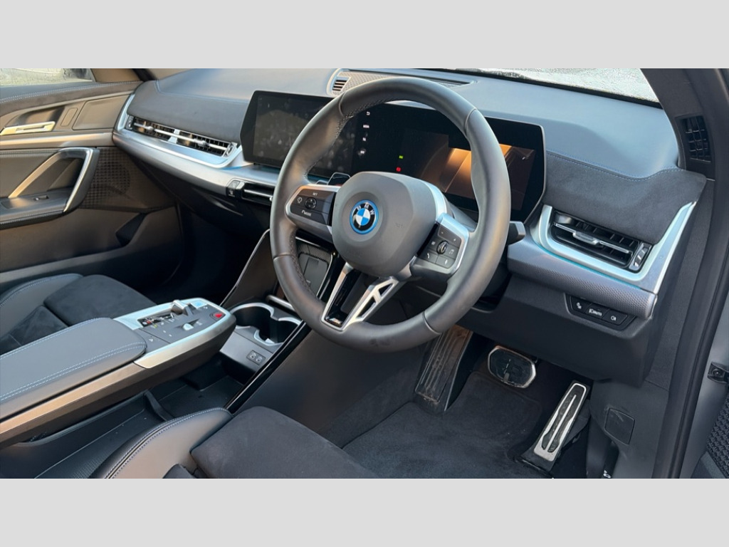 BMW Ix2 230kW xDrive30 M Sport 65kWh 5dr Auto 4G LTE connectivity, Attentiveness assist, Bluetooth / Wi-Fi interface with hands free system, BMW ConnectedDrive store and BMW Remote softwre upgrade, BMW Intelligent Personal Assistant, BMW Live Cockpit Plus - Widescreen display with 10.25" instrument cluster and 10.7" CID display, BMW Maps, BMW Operating System 9 with variable, confirgurable widgets, BMW Teleservices, Brake pad wear indicator, Condition based service, Connected drive services, Drive off assistant, Electrically opening/closing tailgate with opening/closing with remote control and contactless opening and closing, Gear display in instrument cluster including recommended gear, iDrive controller, Language version English, My modes (Personal / Efficient / Sport), Parking assistant with reversing assistant, active PDC, lateral parking aid and rear view camera, Personal Profile, Servotronic PAS, Smartphone integration for Apple CarPlay/Android Auto, Speed limiter, Touch operation on control display, Dynamic stability control, eDrive exterior sound, Fast charging cable professional mode 3 for public charging, M Adaptive suspension, Performance Control, BMW iconic sound electric, BMW Personal eSim, DAB Digital radio, Tuner with diversity reception and RDS, AM radio and FM radio, B-pillar and front/rear door trim panels and exterior mirrors in matt black with mirror cap in vehicle colour, BMW radiator grille with mesh grid in black high gloss, radiator grille frame in pearl chrome, Dynamic brake lights, Electric adjustable heated door mirrors, Electric windows - front and rear, with open/close fingertip control, anti-trap facility and comfort closing, Folding door handles integrated flush with surface, Front bumper cover with air inlet trims for air curtains in matt black, Front door exit lights, Heated rear window, High Gloss Black rear spoiler, Home light, Invisible exhaust tailpipe, LED 3rd brake light integrated in rear window frame, LED daytime running lights, LED number plate light, Matt black roof strips, Rain sensor including auto headlights activation, Rear side wing doors, Rear wiper, Side sill trim panel in black matt grained, Trailer stabilisation logic, Welcome lighting, Window recess finisher strips and side window frames in matt black, Window washer nozzle for rear view camera, Windscreen wipers front with heated washer nozzles, 12V - Power sockets with front centre console and luggage compartment, 12V socket in right side trim panel, 2 bag hooks in luggage compartment, 2 cup holders in front centre console, 2 front reading lights, 2 x USB Type C ports for charging and data transmission (front centre console) and 1 USB Type C ports for charging (rear centre console), 3 rear headrests, 3 seat bench in 2nd row, 3 upper retaining strap clips integrated into rear panels of seat backrests, 4 grab handles (2 on each side), 40:20:40 split folding rear seats, Ambient interior lighting, Anthracite front and rear floor mats, Bottle trays in all doors, Child seat ISOFIX attachment for two outer rear seats and front passenger seat with anchorage points, Driver and front passenger heated seats, Dual zone automatic air conditioning, Flat air vents on instrument panel in high gloss black, adjustable seats with elements in pearl chrome, Footrest and pedals in black plastic, Front and rear door pockets, Front and rear footwell lights, Front armrest with integrated control panel, Front centre console storage compartment, Front/rear adjustable head restraints, Glove compartment, Interior door handle recess light on all doors, Light on right in luggage compartment, M headliner Anthracite-A pillar trim panels,headliner in anthracite & B,C,D pillar upper trim panels,sun visors,grab handles,microphone cover in black, M leather steering wheel, Map pockets on the seats (version depending on equipment), Middle centre console storage compartment, One piece parcel shelf opens together with tailgate and removable, Pedal covers in stainless steel look, Rear armrest in door trim panel, Rear coat hooks, Selector lever with toggle operation, Single front passenger seat, Storage compartment lighting in centre console and storage tray in centre stack, Storage compartment net in left side trim panel, Storage compartment with folding cover under centre console armrest cushion, Storage tray in right side trim panel, Sun visors with illuminated vanity mirrors, Tilt adjustment incl. cargo function of 2nd row of seats, ABS, Automatic hold function, BMW emergency call, Braking readiness, Child lock for rear electric windows, Cornering brake control (CBC), Crash Sensor - activates hazard/interior lighting + unlocks doors, Driver/Front Passenger airbags, Driver/front passenger side airbags, Dry braking, Dynamic brake control, Electromechanical parking brake, Energy recovery system, First aid kit, Front and rear brake discs, Front centre airbag between driver and front passenger seats, Front passenger airbag deactivation, Head airbags for all 4 outer seats, Integrated brake system, Locking of doors after driving off, PC iBrake PostCrash approach control warning with light braking function, Rear door child safety locks, Three point seat belts in all seats, Tyre pressure monitor, Warning triangle, Alarm system with tilt sensor, monitoring doors, bonnet interior and tailgate, Closing system with central locking including 2 vehicle keys with integrated emergency key, Locking wheel bolts, Front centre console trim in high gloss black, Luxury instrument panel, Tyre repair kit plus