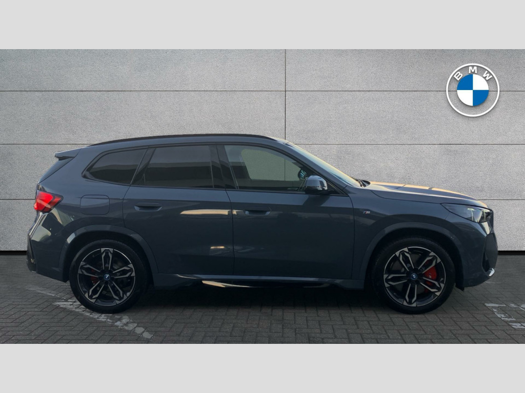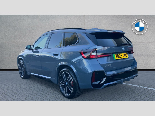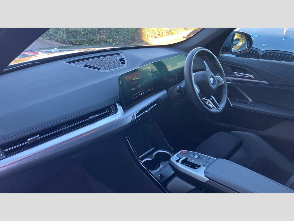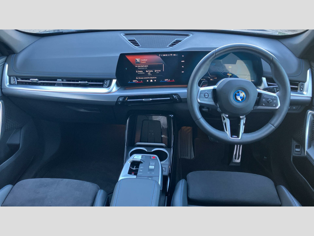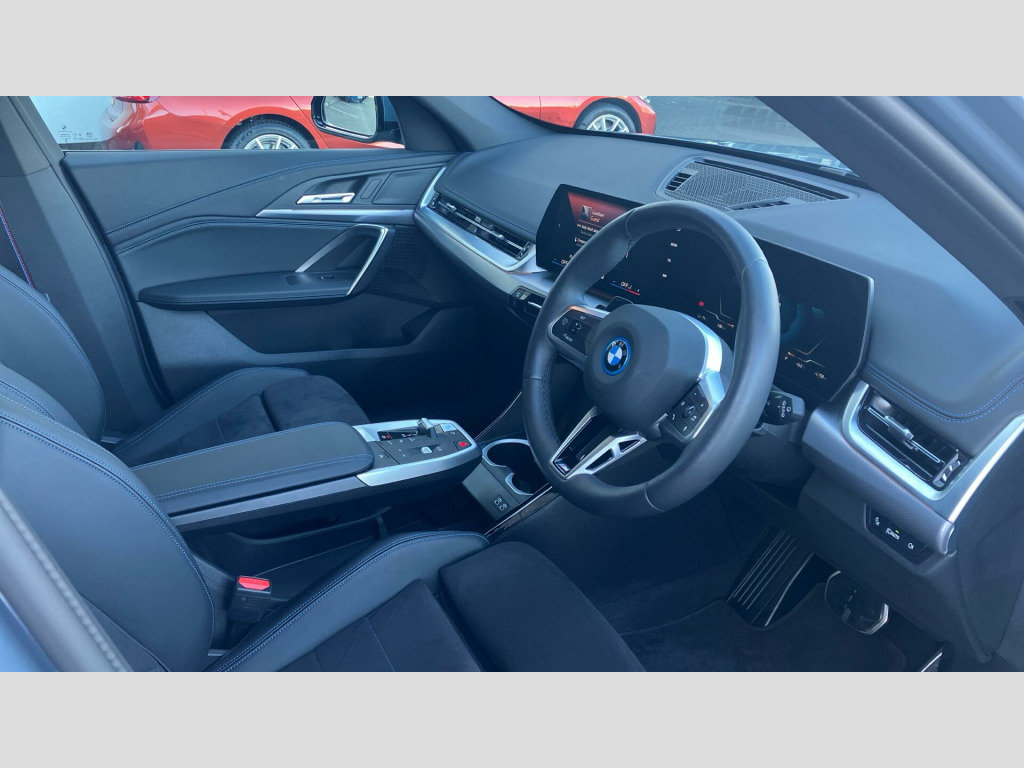 Experience exhilarating performance with the BMW iX1, capable of accelerating from 0 to 62mph in a swift 5.6 seconds, a speed that sets it apart from many other vehicles in its class. This electric SUV also provides generous boot space, making it a practical choice for everyday use and longer journeys alike. The combination of its advanced electric drivetrain, sophisticated M Sport trim, and comprehensive suite of technology and comfort features makes this iX1 a compelling proposition for those seeking a premium electric driving experience. BMW Operating System 9, 19" M Lt/Aly wheels Double-spoke style 8, BMW Individual Lights Shadow Line, M Sport Brakes with Red Calipers, Comfort Access, M Sport Seat Belts, Sun Protection Glass, Ext. mirrors- folding with anti-dazzle, Rear-view Mirror with Auto dimming, High-Beam Assistant, Adaptive LED Headlights, Storage for wireless charging, Indv. high-gloss shadowline- extended, M Sport Spoiler, Control G, Additional M Sport Package Pro Content, M Sport Pro Pack, Technology Pack, Tyre Repair Kit Plus, M Adaptive Suspension, High-gloss Shadowline Roof Rails, Alarm System, Aluminium Hexacube Pale M interior trim, Luxury Instrument Panel, Charging cable Professional (Mode 3), eDrive Exterior Sound, BMW IconicSounds Electric, Child seat i-Size attachment for front p, Sport seats, Heated front seats, Active Guard, Parking Assistant, BMW TeleServices, BMW Emergency Call, Personal eSIM, DAB Radio, High-gloss Shadowline Exterior Trim, Anthracite Headlining, COC additional contents, Active Pedestrian Safety, English / on-board literature II, Driving Assistant Plus preparation, M Sport exterior parts, M Sport interior parts, M Sport Package