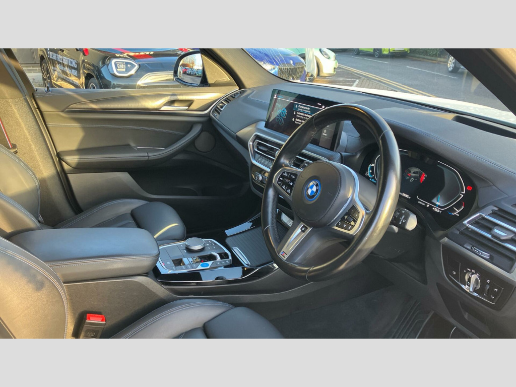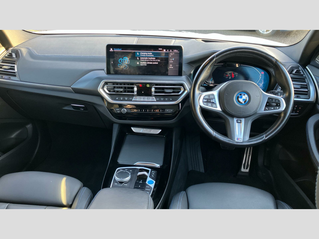 Experience the impressive performance of this BMW iX3, capable of accelerating from 0 to 62mph in just 6.8 seconds, a highlight that sets it apart from many similar vehicles. Its electric powertrain offers a full charging time of 11 hours 20 minutes at home using a 7kW charger, while rapid public charging can achieve 80% capacity in a swift 32 minutes. This model also features large boot space, offering practicality for all your needs. A 12 month warranty and a 12 month MOT are provided on purchase, giving you peace of mind. Towbar, Model Specific Design Elements, 20" 890 M Aero Bicolour Jet Black Alloy, Tyre Repair Kit, Adaptive Suspension, Heated Steering Wheel, Acoustic glass, High-gloss Shadowline Roof Rails, BMW Individual Lights Shadow Line, Alarm System, Comfort Access, M Sport Seat Belts, Aluminium Rhombicle with Pearl Chrome, Charging cable Professional (Mode 3), Flexible Charging Cable (Mode 2), Ambient Lighting, Galvanic Controls, eDrive Exterior Sound, BMW IconicSounds Electric, Luggage Net, Sun Protection Glass, Ext. mirrors- folding with anti-dazzle, Rear-view Mirror with Auto dimming, Sport seats, Driver Seat Lumbar Support, Driver Seat Backrest Width Adjustment, Heated front seats, High-Beam Assistant, Active Protection, Driving Assistant Professional, Active Guard, Parking Assistant Plus, Automatic Air Conditioning, Adaptive LED Headlights, BMW TeleServices, BMW Emergency Call, BMW Online Services, Connected Package Pro (limited duration), Drive Recorder, Enhanced Bluetooth- wireless charging, Live Cockpit Professional, Gesture Control, WiFi Hotspot, Head-Up Display, DAB Radio, Harman/Kardon Surround Sound Audio, Indv. high-gloss shadowline- extended, M Sport Exterior Styling, High-gloss Shadowline Exterior Trim, Anthracite Headlining, Active Pedestrian Safety, Decoding additional functions, Special Steering Bluetooth Wifi, iX3 Pro Package