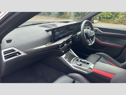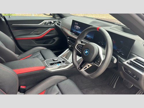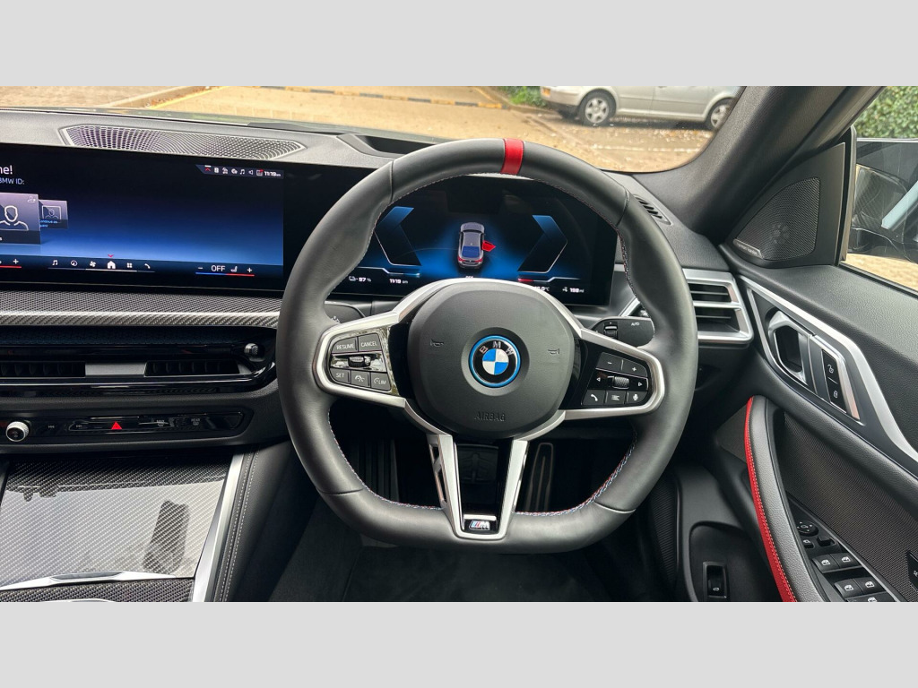 The BMW i4 M50 boasts rapid acceleration, reaching 0-62mph in just 3.9 seconds, demonstrating its superior performance capabilities. The battery has a maximum range of 316 miles when new, meaning fewer stops on long journeys. Charging is convenient, taking 12 hours 30 minutes at home with a 7kW charger, or just 34 minutes to reach 80% at a fast public charging point. The car also features a large boot space, making it a practical choice for those needing ample storage. Having had only one owner, this BMW i4 M50 is ready for its next chapter. 20" 862 Individual Aerodynamic Bicolour, BMW Individual Lights Shadow Line, M Sport Brakes with Red Calipers, Comfort Access, M Sport Seat Belts, Carbon Fibre Interior Trim, Flexible Charging Cable (Mode 2), Front Lumbar Support, High-Beam Assistant, Driving Assistant, Active Cruise Control, Parking Assistant Plus, 3-pin Adapter (BS 1363) 10A, Adaptive LED Headlights, Wireless Charging Tray, Live Cockpit Pro with Head up Display, Harman/Kardon Surround Sound Audio, M Carbon Exterior Styling, Front M Sport Seats, Control E, M Sport Pro Pack, Technology Pack, Comfort Pack, XtraBoost, Tyre Repair Kit, M Adaptive Suspension, Variable Sport Steering, Alarm System, Charging cable Professional (Mode 3), Ambient Lighting, eDrive Exterior Sound, BMW IconicSounds Electric, Sun Protection Glass, Ext. mirrors- folding with anti-dazzle, Rear-view Mirror with Auto dimming, Electric Memory Seats, Extended storage, Heated front seats, Active Guard Plus, Automatic Air Conditioning, BMW TeleServices, BMW Emergency Call, BMW Online Services, Connected Package Pro, Personal eSIM, DAB Radio, M Sport Exterior Styling, High-gloss Shadowline Exterior Trim, Anthracite Headlining, COC additional contents, Active Pedestrian Safety, Control DAS 18