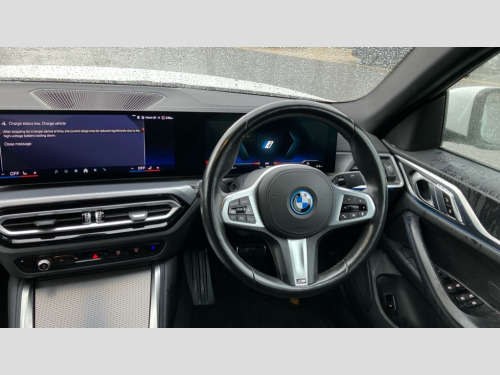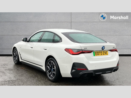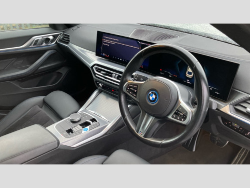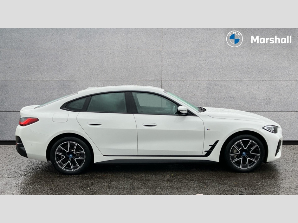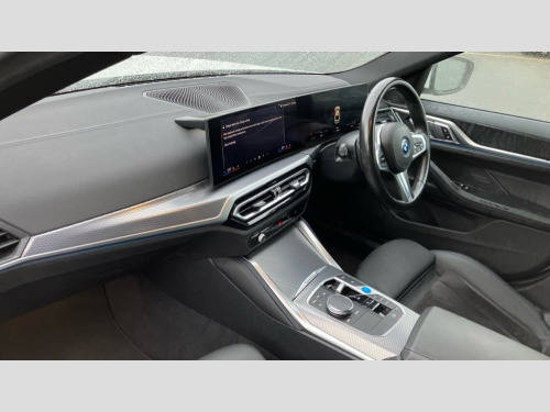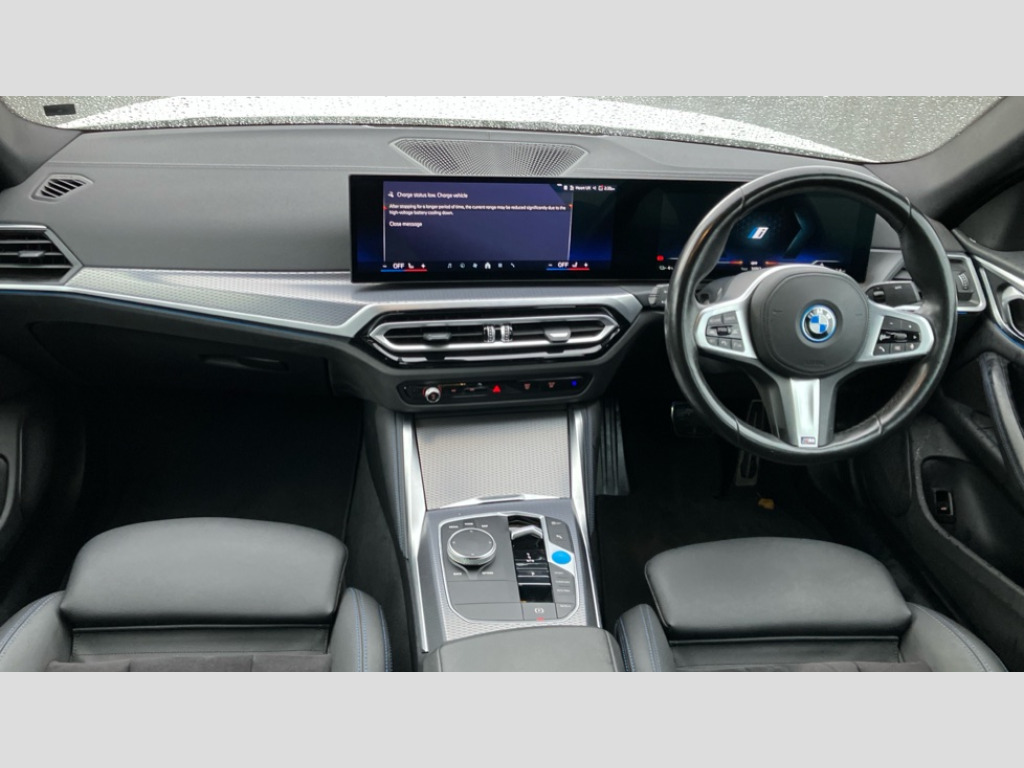 BMW I4 210kW eDrive35 M Sport 70kWh 5dr Auto Active guard plus, Attentiveness assist, Automatic tailgate operation, BMW ConnectedDrive online services, BMW legal emergency call, BMW remote services, BMW Teleservices, Condition based service, Cruise control with brake assist, Drive off assistant, Driving experience switch, Electric Power Steering (EPS) with Servotronic, Engine start/stop button, iDrive controller, Integrated owners handbook, Live cockpit plus with nav function 12.3" instrument cluster and 14.9" centre display, Personal Profile - automatic lock when driving away selectable, Preparation for active cruise control with stop and go, Run flat indicator, Service interval indicator, Smartphone integration, Speed limiter, Widescreen display, AC charging up to 11kW, DC charging up to 150kW, eDrive exterior sound, Electric drive unit, Electronic differential lock, High voltage battery, Mode 3 charging cable, Safety battery terminal clamp, Standard suspension, 2x USB Type C ports in front centre console for charging and data transfer, BMW iconic sound electric, DAB tuner, Auto dimming rear view mirror, Auto dimming with folding wing mirrors, BMW badge on bonnet and tailgate with blue ring around the badge, BMW radiator grille partially with blue accent, BMW radiator grille with mesh grille/end face of the nuggets in quartz silver matt, Body colour door handles, Body colour mirror caps with bottom segment in matt black, Electric adjustable exterior mirrors, Electric windows with trap release and convenient opening/closing feature, Exterior mirror heated, Fading support, Follow me home headlights, Front and rear bumper system, Front apron plastic in body colour, Headlight beam throw control, Heated washer jets, High gloss black mirror triangles, High gloss shadow line exterior trim, I badge with blue highlight on front ornamental grille, I4 charging socket flap, right, rear in body colour, Integrated outside door handles, flush design, flush integrated, handle recess indirectly illuminated, Lateral blue accent including air breather, LED daytime running lights, LED direction indicator lenses, LED eyebrow light, LED front fog lights, LED rear lights, M Sport entry door sill strips, M Sport spoiler, Mirror glass aspheric on driver's side, convex on passenger side, Model logo - Rear and right model designation, Rear left i4 inscription, Number plate panel integrated into front bumper and tailgate, One piece front bumper cover including towing eye cover in body colour, Radiator grille frame in pearl chrome, Rain sensor including auto headlights activation, Rear bumper with blue accent, Rear side wing doors, Rear wiper, Reversing light, Roof fin in body colour, Side frame trim strip in black matt, Side LED indicators, Side sills in high-gloss black with airbreathers in black, Trailer stabilisation logic, Turn indicators in side mirrors, Visible VIN plate, Welcome lighting, Window cavity seal in black matt, 12v power outlet - luggage side, 12V power outlet in front console, 2 front cupholder in centre console with clamping elements and matt black inlay, 3 seat bench in 2nd row, 3 spoke leather M sport multifunction sports steering wheel, 40:20:40 split folding rear seat and rear centre armrest with two cupholders, Adjustable steering column, Ambient door pocket lighting, Ambient inside door handle light in rear, Ambient interior lighting with 11 pre-defined selectable light designs including 6 colours, Ambient light design projected onto the left and right entering and exiting area, Ambient storage compartment lighting in the centre console, Anthracite headlining, Automatic air conditioning with 3 zone control, BMW ID, Compartment in front of cupholder, Contour lighting in instrument panel and door trim panel, Driver seat backrest width adjustment, Dynamic function of contour lighting, Front and rear ambient footwell lighting, Front and rear armrest with integrated door trim, Front and rear door exit lights, Front and rear door pockets, Front sport seats, Glovebox light, Headrests for all seats, Heated front seats, Illuminated armrest storage compartment, Interior light and reading light, Lashing eyelets in boot, Luggage compartment light, Make-up mirror lights, Manual adjustment of seat height, fore/aft position, seat depth, backrest tilt and head restraint height, Rear storage compartment, Single front passenger seat, Storage tray and compartment with cover in centre console, Sunvisors with vanity mirrors and ticket pocket, Through loading system, Toolkit, Velour floor mats, Connected package professional - I4, M Sport exterior styling pack - I4, Storage compartment pack with 12V socket - I4, 3 point seatbelts on all seats, Acoustic protection for pedestrians, Active protection, Anti lock braking system (ABS) with brake assist, Automatic Stability Control (ASC), Battery safety cut-off, Brake drying, Brake energy regeneration, Brake pretensioning, Cornering brake control (CBC), Crash sensor activating central locking release, hazard warning lights, Driver and front passenger airbags, Driver and passenger side airbags, Driver/passenger seat occupancy sensor, Dynamic brake control, Dynamic stability control + (DSC+), Dynamic Traction Control - DTC, Electromechanical parking brake, Front and rear curtain airbags, Front and rear ventilated brake disc, Head airbags for all 4 outer seats, Hill start assistant, ISOFIX child seat mounting on rear outer seats, Manual child lock in rear doors, Recuperation system, Side impact protection, Twin horns, Tyre pressure sensor, Warning triangle and first aid kit, Alarm system, Central locking including 2 vehicle keys with integrated emergency key, Central locking switch for all doors, fuel filler cap and luggage compartment, Electronic vehicle immobiliser, Interior centre lock switch, Locking wheel bolts, Sensatec dashboard, 18" M aerodynamic alloy wheels in bicolour with mixed tyres - style 858M, Tyre repair kit