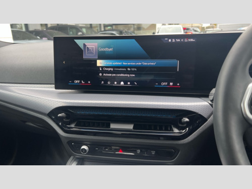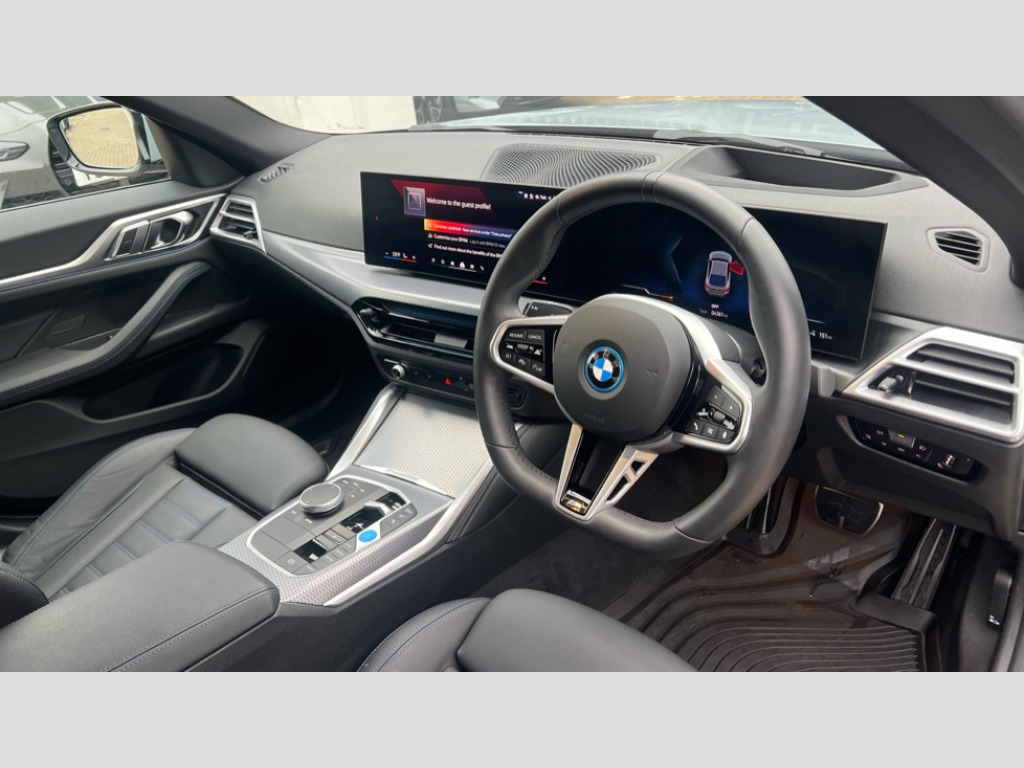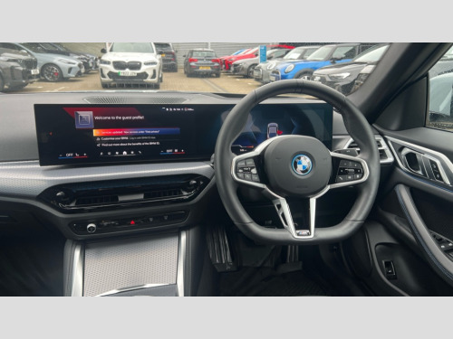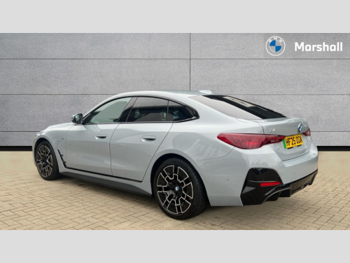 BMW I4 210kW eDrive35 M Sport 70kWh 5dr Auto 4G LTE connectivity, Active guard plus, Attentiveness assist, Automatic tailgate operation, Bluetooth Wi-Fi interface, BMW ConnectedDrive online services, BMW legal emergency call, BMW Maps, BMW remote services, BMW Teleservices, Drive off assistant, Driver profile, Driving experience switch, Electric boot lid, Engine start/stop button, iDrive touch controller, Integrated owners handbook, Language version English, Personal Profile - automatic lock when driving away selectable, Service interval indicator, Widescreen display, AC charging up to 11kW, DC charging up to 150kW, eDrive exterior sound, Electric drive unit, Electronic differential lock, High voltage battery, Plug and charge, Public charging cable Mode 3, Safety battery terminal clamp, 1x USB type A with data transfer and 1.5 Amp charging function in the centre console, 1x USB type C with 3 Amp charging function in the front centre armrest, DAB tuner, Personal eSim, BMW badge on bonnet and tailgate with blue ring around the badge, BMW radiator grille with mesh grille/end face of the nuggets in quartz silver matt, Body colour door handles, Body colour mirror caps with bottom segment in matt black, Electric adjustable exterior mirrors, Electric windows with trap release and convenient opening/closing feature, Exterior mirror heated, Fading support, Follow me home headlights, Front and rear bumper system, Front apron plastic in body colour, Fuel filler flap - right rear in body colour, Headlight beam throw control, Heat protection glazing on front windows and windscreen, Heated washer jets, High gloss black mirror triangles, High gloss shadow line exterior trim, I badge with blue highlight on front ornamental grille, I4 charging socket flap, right, rear in body colour, Integrated outside door handles, flush design, flush integrated, handle recess indirectly illuminated, Lateral blue accent including air breather, LED 3rd brake light, LED daytime running lights, LED direction indicator lenses, LED eyebrow light, LED front fog lights, LED rear fog light, LED rear lights, M entry sills, Mirror glass aspheric on driver's side, convex on passenger side, Model logo - Rear and right model designation, Rear left i4 inscription, Number plate panel integrated into front bumper and tailgate, One piece front bumper cover including towing eye cover in body colour, Radiator grille frame in chrome matt, Rain sensor including auto headlights activation, Rear bumper with blue accent, Rear side wing doors, Rear wiper, Reversing light, Roof fin in body colour, Side frame trim strip in black matt, Side LED indicators, Side sills in high-gloss black with airbreathers in black, Trailer stabilisation logic, Turn indicators in side mirrors, Visible VIN plate, Welcome lighting, Window recess finisher strip in matt black, 12V power socket in front centre console with blanking plug, 2 front cupholder in centre console with clamping elements and matt black inlay, 3 seat bench in 2nd row, 3 spoke flat bottom M sport leather steering wheel, 40:20:40 split folding rear seat and rear centre armrest with two cupholders, Adjustable steering column, Aluminium door sill strips front with BMW i inscription, Ambient inside door handle light, Ambient light design projected onto the left and right entering and exiting area, Ambient lighting front and rear with 9 selectable colours, Ambient storage compartment lighting in the centre console, Anthracite headlining, Automatic air conditioning with 3 zone control, Battery in luggage compartment, BMW ID, Contour lighting in instrument panel and door trim panel, Dynamic function of contour lighting - welcome, goodbye, open doors, phone call, Front ambient footwell lighting, Front and rear armrest with integrated door trim, Front and rear door exit lights, Front and rear door pockets, Glovebox light, Headrests for all seats, Illuminated armrest storage compartment, Interior light and reading light, Lashing eyelets in boot, Light projection of an ambient lighting graphic, Luggage compartment light, Multifunction steering wheel, Rear storage compartment, Single front passenger seat, Storage tray and compartment with cover in centre console, Sunvisors with illuminated vanity mirrors and ticket pocket, Through loading system, Toolkit in luggage compartment, Velour floor mats, Connected package professional - I4, Interior and exterior mirror pack - I4, M Sport exterior styling pack - I4, 3 point seatbelts on all seats, Acoustic protection for pedestrians, Active protection, Anti lock braking system (ABS) with brake assist, Automatic Stability Control (ASC), Battery safety cut-off, Brake drying, Brake energy regeneration, Brake pretensioning, Child lock button on rear side window, Cornering brake control (CBC), Crash sensor, Driver and front passenger airbags, Driver and passenger side airbags, Driver/passenger seat occupancy sensor, DSC - Dynamic Stability Control, Dynamic brake control, Dynamic Traction Control - DTC, Electromechanical parking brake, Front and rear ventilated brake disc, Front passenger airbag deactivation, Head airbags for all 4 outer seats, Hill start assistant, ISOFIX child seat mounting on rear outer seats, M sport blue brake calipers, Recuperation system, Side impact protection, Sport brake calipers, Twin horns, Tyre pressure sensor, Warning triangle and first aid kit, Alarm system, Central locking including 2 vehicle keys with integrated emergency key, Central locking switch, Electronic vehicle immobiliser, Locking wheel bolts, Sensatec dashboard, Tyre repair kit plus