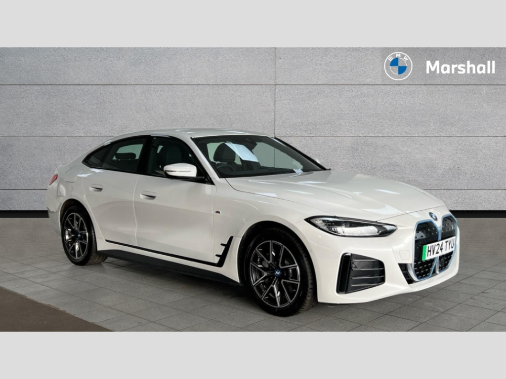 BMW I4 250kW eDrive40 M Sport 83.9kWh 5dr Auto Active guard plus, Attentiveness assist, Automatic tailgate operation, BMW ConnectedDrive online services, BMW legal emergency call, BMW remote services, BMW Teleservices, Condition based service, Cruise control with brake assist, Drive off assistant, Driving experience switch, Electric Power Steering (EPS) with Servotronic, Engine start/stop button, iDrive controller, Integrated owners handbook, Live cockpit plus with nav function 12.3" instrument cluster and 14.9" centre display, Personal Profile - automatic lock when driving away selectable, Preparation for active cruise control with stop and go, Run flat indicator, Service interval indicator, Smartphone integration, Speed limiter, Widescreen display, AC charging up to 11kW, DC charging up to 150kW, eDrive exterior sound, Electric drive unit, Electronic differential lock, High voltage battery, Mode 3 charging cable, Safety battery terminal clamp, Standard suspension, 2x USB Type C ports in front centre console for charging and data transfer, BMW iconic sound electric, DAB tuner, Auto dimming rear view mirror, Auto dimming with folding wing mirrors, BMW badge on bonnet and tailgate with blue ring around the badge, BMW radiator grille partially with blue accent, BMW radiator grille with mesh grille/end face of the nuggets in quartz silver matt, Body colour door handles, Body colour mirror caps with bottom segment in matt black, Electric adjustable exterior mirrors, Electric windows with trap release and convenient opening/closing feature, Exterior mirror heated, Fading support, Follow me home headlights, Front and rear bumper system, Front apron plastic in body colour, Headlight beam throw control, Heated washer jets, High gloss black mirror triangles, High gloss shadow line exterior trim, I badge with blue highlight on front ornamental grille, I4 charging socket flap, right, rear in body colour, Integrated outside door handles, flush design, flush integrated, handle recess indirectly illuminated, Lateral blue accent including air breather, LED daytime running lights, LED direction indicator lenses, LED eyebrow light, LED front fog lights, LED rear lights, M Sport entry door sill strips, M Sport spoiler, Mirror glass aspheric on driver's side, convex on passenger side, Model logo - Rear and right model designation, Rear left i4 inscription, Number plate panel integrated into front bumper and tailgate, One piece front bumper cover including towing eye cover in body colour, Radiator grille frame in pearl chrome, Rain sensor including auto headlights activation, Rear bumper with blue accent, Rear side wing doors, Rear wiper, Reversing light, Roof fin in body colour, Side frame trim strip in black matt, Side LED indicators, Side sills in high-gloss black with airbreathers in black, Trailer stabilisation logic, Turn indicators in side mirrors, Visible VIN plate, Welcome lighting, Window cavity seal in black matt, 12v power outlet - luggage side, 12V power outlet in front console, 2 front cupholder in centre console with clamping elements and matt black inlay, 3 seat bench in 2nd row, 3 spoke leather M sport multifunction sports steering wheel, 40:20:40 split folding rear seat and rear centre armrest with two cupholders, Adjustable steering column, Ambient door pocket lighting, Ambient inside door handle light in rear, Ambient interior lighting with 11 pre-defined selectable light designs including 6 colours, Ambient light design projected onto the left and right entering and exiting area, Ambient storage compartment lighting in the centre console, Anthracite headlining, Automatic air conditioning with 3 zone control, BMW ID, Compartment in front of cupholder, Contour lighting in instrument panel and door trim panel, Driver seat backrest width adjustment, Dynamic function of contour lighting, Front and rear ambient footwell lighting, Front and rear armrest with integrated door trim, Front and rear door exit lights, Front and rear door pockets, Front sport seats, Glovebox light, Headrests for all seats, Heated front seats, Illuminated armrest storage compartment, Interior light and reading light, Lashing eyelets in boot, Luggage compartment light, Make-up mirror lights, Manual adjustment of seat height, fore/aft position, seat depth, backrest tilt and head restraint height, Rear storage compartment, Single front passenger seat, Storage tray and compartment with cover in centre console, Sunvisors with vanity mirrors and ticket pocket, Through loading system, Toolkit, Velour floor mats, Connected package professional - I4, M Sport exterior styling pack - I4, Storage compartment pack with 12V socket - I4, 3 point seatbelts on all seats, Acoustic protection for pedestrians, Active protection, Anti lock braking system (ABS) with brake assist, Automatic Stability Control (ASC), Battery safety cut-off, Brake drying, Brake energy regeneration, Brake pretensioning, Cornering brake control (CBC), Crash sensor activating central locking release, hazard warning lights, Driver and front passenger airbags, Driver and passenger side airbags, Driver/passenger seat occupancy sensor, Dynamic brake control, Dynamic stability control + (DSC+), Dynamic Traction Control - DTC, Electromechanical parking brake, Front and rear curtain airbags, Front and rear ventilated brake disc, Head airbags for all 4 outer seats, Hill start assistant, ISOFIX child seat mounting on rear outer seats, Manual child lock in rear doors, Recuperation system, Side impact protection, Twin horns, Tyre pressure sensor, Warning triangle and first aid kit, Alarm system, Central locking including 2 vehicle keys with integrated emergency key, Central locking switch for all doors, fuel filler cap and luggage compartment, Electronic vehicle immobiliser, Interior centre lock switch, Locking wheel bolts, Sensatec dashboard, 18" M aerodynamic alloy wheels in bicolour with mixed tyres - style 858M, Tyre repair kit