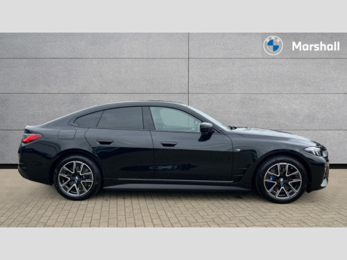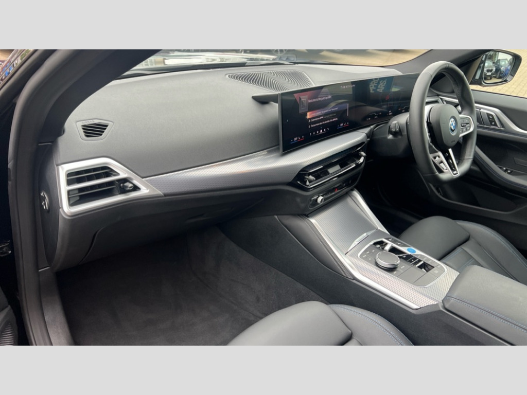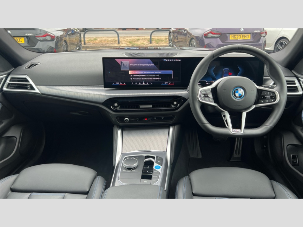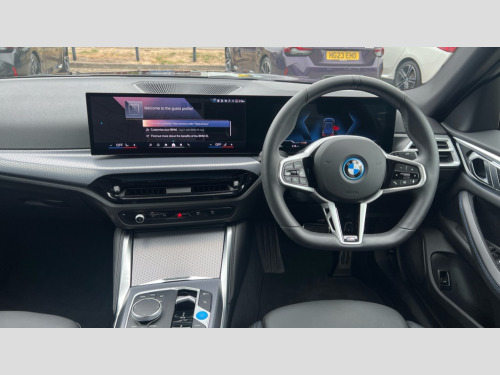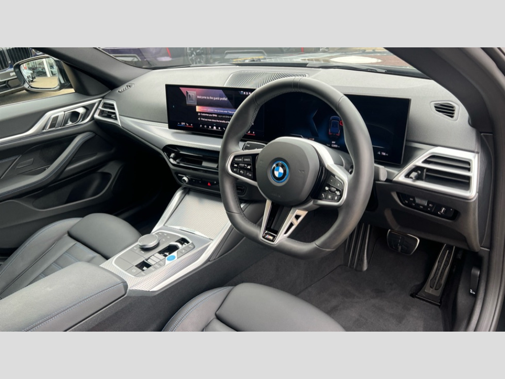 BMW I4 250kW eDrive40 M Sport 83.9kWh 5dr Auto 4G LTE connectivity, Active guard plus, Attentiveness assist, Automatic tailgate operation, Bluetooth Wi-Fi interface, BMW ConnectedDrive online services, BMW legal emergency call, BMW Maps, BMW remote services, BMW Teleservices, Drive off assistant, Driver profile, Driving experience switch, Electric boot lid, Engine start/stop button, iDrive touch controller, Integrated owners handbook, Language version English, Live cockpit plus with nav function 12.3" instrument cluster and 14.9" centre display, Personal Profile - automatic lock when driving away selectable, Service interval indicator, Widescreen display, AC charging up to 11kW, DC charging up to 150kW, eDrive exterior sound, Electric drive unit, Electronic differential lock, High voltage battery, Plug and charge, Public charging cable Mode 3, Safety battery terminal clamp, 1x USB type A with data transfer and 1.5 Amp charging function in the centre console, 1x USB type C with 3 Amp charging function in the front centre armrest, DAB tuner, Personal eSim, BMW badge on bonnet and tailgate with blue ring around the badge, BMW radiator grille with mesh grille/end face of the nuggets in quartz silver matt, Body colour door handles, Body colour mirror caps with bottom segment in matt black, Electric adjustable exterior mirrors, Electric windows with trap release and convenient opening/closing feature, Exterior mirror heated, Fading support, Follow me home headlights, Front and rear bumper system, Front apron plastic in body colour, Fuel filler flap - right rear in body colour, Headlight beam throw control, Heat protection glazing on front windows and windscreen, Heated washer jets, High gloss black mirror triangles, High gloss shadow line exterior trim, I badge with blue highlight on front ornamental grille, I4 charging socket flap, right, rear in body colour, Integrated outside door handles, flush design, flush integrated, handle recess indirectly illuminated, Lateral blue accent including air breather, LED 3rd brake light, LED daytime running lights, LED direction indicator lenses, LED eyebrow light, LED front fog lights, LED rear fog light, LED rear lights, M entry sills, Mirror glass aspheric on driver's side, convex on passenger side, Model logo - Rear and right model designation, Rear left i4 inscription, Number plate panel integrated into front bumper and tailgate, One piece front bumper cover including towing eye cover in body colour, Radiator grille frame in chrome matt, Rain sensor including auto headlights activation, Rear bumper with blue accent, Rear side wing doors, Rear wiper, Reversing light, Roof fin in body colour, Side frame trim strip in black matt, Side LED indicators, Side sills in high-gloss black with airbreathers in black, Trailer stabilisation logic, Turn indicators in side mirrors, Visible VIN plate, Welcome lighting, Window recess finisher strip in matt black, 12V power socket in front centre console with blanking plug, 2 front cupholder in centre console with clamping elements and matt black inlay, 3 seat bench in 2nd row, 3 spoke flat bottom M sport leather steering wheel, 40:20:40 split folding rear seat and rear centre armrest with two cupholders, Adjustable steering column, Aluminium door sill strips front with BMW i inscription, Ambient inside door handle light, Ambient light design projected onto the left and right entering and exiting area, Ambient lighting front and rear with 9 selectable colours, Ambient storage compartment lighting in the centre console, Anthracite headlining, Automatic air conditioning with 3 zone control, Battery in luggage compartment, BMW ID, Contour lighting in instrument panel and door trim panel, Dynamic function of contour lighting - welcome, goodbye, open doors, phone call, Front ambient footwell lighting, Front and rear armrest with integrated door trim, Front and rear door exit lights, Front and rear door pockets, Glovebox light, Headrests for all seats, Illuminated armrest storage compartment, Interior light and reading light, Lashing eyelets in boot, Light projection of an ambient lighting graphic, Luggage compartment light, Multifunction steering wheel, Rear storage compartment, Single front passenger seat, Storage tray and compartment with cover in centre console, Sunvisors with illuminated vanity mirrors and ticket pocket, Through loading system, Toolkit in luggage compartment, Velour floor mats, Connected package professional - I4, Interior and exterior mirror pack - I4, M Sport exterior styling pack - I4, Parking assistant pack - I4, 3 point seatbelts on all seats, Acoustic protection for pedestrians, Active protection, Anti lock braking system (ABS) with brake assist, Automatic Stability Control (ASC), Battery safety cut-off, Brake drying, Brake energy regeneration, Brake pretensioning, Child lock button on rear side window, Cornering brake control (CBC), Crash sensor, Driver and front passenger airbags, Driver and passenger side airbags, Driver/passenger seat occupancy sensor, DSC - Dynamic Stability Control, Dynamic brake control, Dynamic Traction Control - DTC, Electromechanical parking brake, Front and rear ventilated brake disc, Front passenger airbag deactivation, Head airbags for all 4 outer seats, Hill start assistant, ISOFIX child seat mounting on rear outer seats, M sport blue brake calipers, Recuperation system, Side impact protection, Sport brake calipers, Twin horns, Tyre pressure sensor, Warning triangle and first aid kit, Alarm system, Central locking including 2 vehicle keys with integrated emergency key, Central locking switch, Electronic vehicle immobiliser, Locking wheel bolts, Sensatec dashboard, Tyre repair kit plus