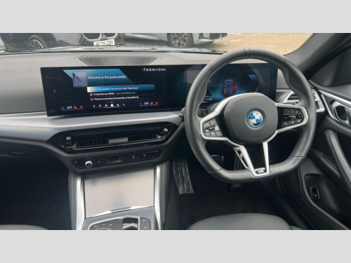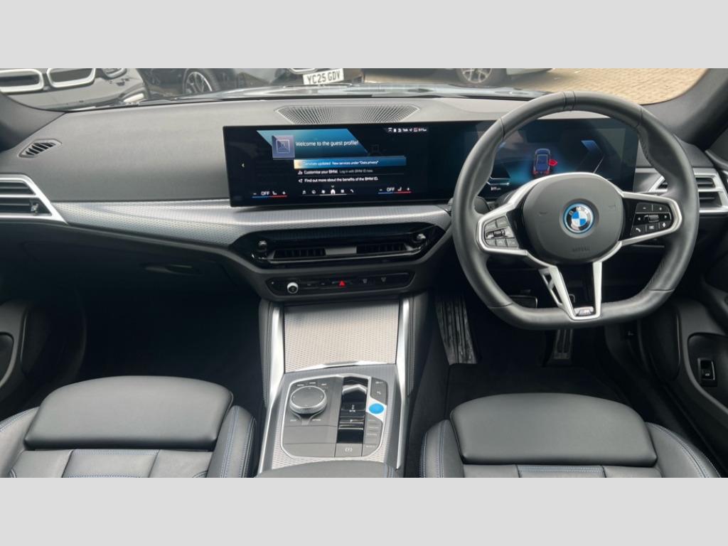 BMW I4 250kW eDrive40 M Sport 83.9kWh 5dr Auto 4G LTE connectivity, Active guard plus, Attentiveness assist, Automatic tailgate operation, Bluetooth Wi-Fi interface, BMW ConnectedDrive online services, BMW legal emergency call, BMW Maps, BMW remote services, BMW Teleservices, Drive off assistant, Driver profile, Driving experience switch, Electric boot lid, Engine start/stop button, iDrive touch controller, Integrated owners handbook, Language version English, Live cockpit plus with nav function 12.3" instrument cluster and 14.9" centre display, Personal Profile - automatic lock when driving away selectable, Service interval indicator, Widescreen display, AC charging up to 11kW, DC charging up to 150kW, eDrive exterior sound, Electric drive unit, Electronic differential lock, High voltage battery, Plug and charge, Public charging cable Mode 3, Safety battery terminal clamp, 1x USB type A with data transfer and 1.5 Amp charging function in the centre console, 1x USB type C with 3 Amp charging function in the front centre armrest, DAB tuner, Personal eSim, BMW badge on bonnet and tailgate with blue ring around the badge, BMW radiator grille with mesh grille/end face of the nuggets in quartz silver matt, Body colour door handles, Body colour mirror caps with bottom segment in matt black, Electric adjustable exterior mirrors, Electric windows with trap release and convenient opening/closing feature, Exterior mirror heated, Fading support, Follow me home headlights, Front and rear bumper system, Front apron plastic in body colour, Fuel filler flap - right rear in body colour, Headlight beam throw control, Heat protection glazing on front windows and windscreen, Heated washer jets, High gloss black mirror triangles, High gloss shadow line exterior trim, I badge with blue highlight on front ornamental grille, I4 charging socket flap, right, rear in body colour, Integrated outside door handles, flush design, flush integrated, handle recess indirectly illuminated, Lateral blue accent including air breather, LED 3rd brake light, LED daytime running lights, LED direction indicator lenses, LED eyebrow light, LED front fog lights, LED rear fog light, LED rear lights, M entry sills, Mirror glass aspheric on driver's side, convex on passenger side, Model logo - Rear and right model designation, Rear left i4 inscription, Number plate panel integrated into front bumper and tailgate, One piece front bumper cover including towing eye cover in body colour, Radiator grille frame in chrome matt, Rain sensor including auto headlights activation, Rear bumper with blue accent, Rear side wing doors, Rear wiper, Reversing light, Roof fin in body colour, Side frame trim strip in black matt, Side LED indicators, Side sills in high-gloss black with airbreathers in black, Trailer stabilisation logic, Turn indicators in side mirrors, Visible VIN plate, Welcome lighting, Window recess finisher strip in matt black, 12V power socket in front centre console with blanking plug, 2 front cupholder in centre console with clamping elements and matt black inlay, 3 seat bench in 2nd row, 3 spoke flat bottom M sport leather steering wheel, 40:20:40 split folding rear seat and rear centre armrest with two cupholders, Adjustable steering column, Aluminium door sill strips front with BMW i inscription, Ambient inside door handle light, Ambient light design projected onto the left and right entering and exiting area, Ambient lighting front and rear with 9 selectable colours, Ambient storage compartment lighting in the centre console, Anthracite headlining, Automatic air conditioning with 3 zone control, Battery in luggage compartment, BMW ID, Contour lighting in instrument panel and door trim panel, Dynamic function of contour lighting - welcome, goodbye, open doors, phone call, Front ambient footwell lighting, Front and rear armrest with integrated door trim, Front and rear door exit lights, Front and rear door pockets, Glovebox light, Headrests for all seats, Illuminated armrest storage compartment, Interior light and reading light, Lashing eyelets in boot, Light projection of an ambient lighting graphic, Luggage compartment light, Multifunction steering wheel, Rear storage compartment, Single front passenger seat, Storage tray and compartment with cover in centre console, Sunvisors with illuminated vanity mirrors and ticket pocket, Through loading system, Toolkit in luggage compartment, Velour floor mats, Connected package professional - I4, Interior and exterior mirror pack - I4, M Sport exterior styling pack - I4, Parking assistant pack - I4, 3 point seatbelts on all seats, Acoustic protection for pedestrians, Active protection, Anti lock braking system (ABS) with brake assist, Automatic Stability Control (ASC), Battery safety cut-off, Brake drying, Brake energy regeneration, Brake pretensioning, Child lock button on rear side window, Cornering brake control (CBC), Crash sensor, Driver and front passenger airbags, Driver and passenger side airbags, Driver/passenger seat occupancy sensor, DSC - Dynamic Stability Control, Dynamic brake control, Dynamic Traction Control - DTC, Electromechanical parking brake, Front and rear ventilated brake disc, Front passenger airbag deactivation, Head airbags for all 4 outer seats, Hill start assistant, ISOFIX child seat mounting on rear outer seats, M sport blue brake calipers, Recuperation system, Side impact protection, Sport brake calipers, Twin horns, Tyre pressure sensor, Warning triangle and first aid kit, Alarm system, Central locking including 2 vehicle keys with integrated emergency key, Central locking switch, Electronic vehicle immobiliser, Locking wheel bolts, Sensatec dashboard, Tyre repair kit plus