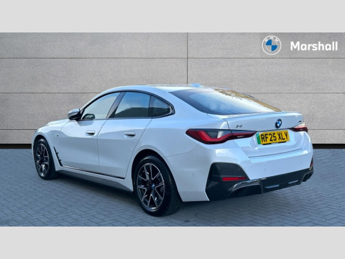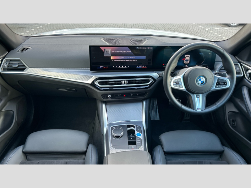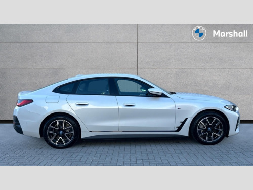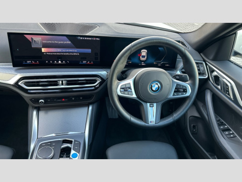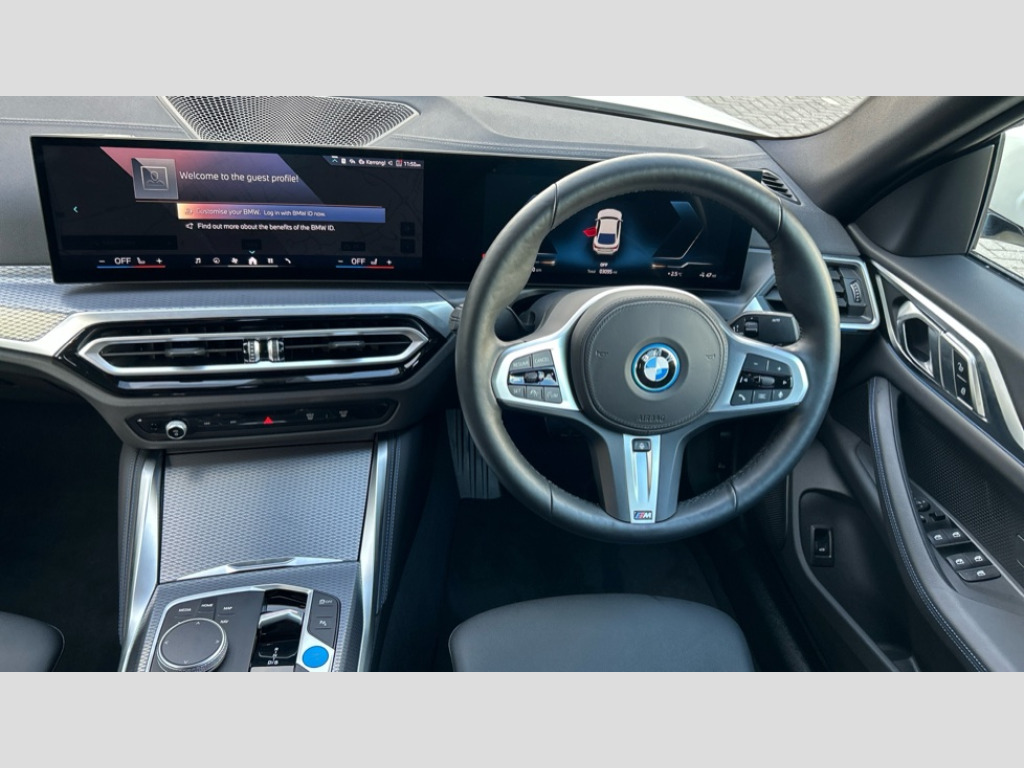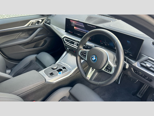 BMW I4 250kW eDrive40 M Sport 83.9kWh 5dr Auto 4G LTE connectivity, Active guard plus, Attentiveness assist, Automatic tailgate operation, Bluetooth Wi-Fi interface, BMW ConnectedDrive online services, BMW legal emergency call, BMW Maps, BMW remote services, BMW Teleservices, Drive off assistant, Driver profile, Driving experience switch, Electric boot lid, Engine start/stop button, iDrive touch controller, Integrated owners handbook, Language version English, Live cockpit plus with nav function 12.3" instrument cluster and 14.9" centre display, Personal Profile - automatic lock when driving away selectable, Service interval indicator, Widescreen display, AC charging up to 11kW, DC charging up to 150kW, eDrive exterior sound, Electric drive unit, Electronic differential lock, High voltage battery, Plug and charge, Public charging cable Mode 3, Safety battery terminal clamp, Silicon carbide inverter, 1x USB type A with data transfer and 1.5 Amp charging function in the centre console, 1x USB type C with 3 Amp charging function in the front centre armrest, DAB tuner, Personal eSim, BMW badge on bonnet and tailgate with blue ring around the badge, BMW radiator grille with mesh grille/end face of the nuggets in quartz silver matt, Body colour door handles, Body colour mirror caps with bottom segment in matt black, Electric adjustable exterior mirrors, Electric windows with trap release and convenient opening/closing feature, Electrochromic rear view mirror, Exterior mirror heated, Fading support, Follow me home headlights, Front and rear bumper system, Front apron plastic in body colour, Fuel filler flap - right rear in body colour, Headlight beam throw control, Heat protection glazing on front windows and windscreen, Heated washer jets, High gloss black mirror triangles, High gloss shadow line exterior trim, I badge with blue highlight on front ornamental grille, I4 charging socket flap, right, rear in body colour, Integrated outside door handles, flush design, flush integrated, handle recess indirectly illuminated, Lateral blue accent including air breather, LED 3rd brake light, LED daytime running lights, LED direction indicator lenses, LED eyebrow light, LED front fog lights, LED rear fog light, LED rear lights, M entry sills, Mirror glass aspheric on driver's side, convex on passenger side, Model logo - Rear and right model designation, Rear left i4 inscription, Number plate panel integrated into front bumper and tailgate, One piece front bumper cover including towing eye cover in body colour, Radiator grille frame in chrome matt, Rain sensor including auto headlights activation, Rear bumper with blue accent, Rear side wing doors, Rear wiper, Reversing light, Roof fin in body colour, Side frame trim strip in black matt, Side LED indicators, Side sills in high-gloss black with airbreathers in black, Trailer stabilisation logic, Turn indicators in side mirrors, Visible VIN plate, Welcome lighting, Window recess finisher strip in matt black, 12V power socket in front centre console with blanking plug, 2 front cupholder in centre console with clamping elements and matt black inlay, 3 seat bench in 2nd row, 3 spoke flat bottom M sport leather steering wheel, 40:20:40 split folding rear seat and rear centre armrest with two cupholders, Adjustable steering column, Aluminium door sill strips front with BMW i inscription, Ambient inside door handle light, Ambient light design projected onto the left and right entering and exiting area, Ambient lighting front and rear with 9 selectable colours, Ambient storage compartment lighting in the centre console, Anthracite headlining, Automatic air conditioning with 3 zone control, Battery in luggage compartment, BMW ID, Contour lighting in instrument panel and door trim panel, Dynamic function of contour lighting - welcome, goodbye, open doors, phone call, Front ambient footwell lighting, Front and rear armrest with integrated door trim, Front and rear door exit lights, Front and rear door pockets, Glovebox light, Headrests for all seats, Illuminated armrest storage compartment, Interior light and reading light, Lashing eyelets in boot, Light projection of an ambient lighting graphic, Luggage compartment light, Multifunction steering wheel, Rear storage compartment, Single front passenger seat, Storage tray and compartment with cover in centre console, Sunvisors with illuminated vanity mirrors and ticket pocket, Through loading system, Toolkit in luggage compartment, Velour floor mats, Connected package professional - I4, Interior and exterior mirror pack - I4, M Sport exterior styling pack - I4, Parking assistant pack - I4, 3 point seatbelts on all seats, Acoustic protection for pedestrians, Active protection, Anti lock braking system (ABS) with brake assist, Automatic Stability Control (ASC), Battery safety cut-off, Brake drying, Brake energy regeneration, Brake pretensioning, Child lock button on rear side window, Cornering brake control (CBC), Crash sensor, Driver and front passenger airbags, Driver and passenger side airbags, Driver/passenger seat occupancy sensor, DSC - Dynamic Stability Control, Dynamic brake control, Dynamic Traction Control - DTC, Electromechanical parking brake, Front and rear ventilated brake disc, Front passenger airbag deactivation, Head airbags for all 4 outer seats, Hill start assistant, ISOFIX child seat mounting on rear outer seats, M sport blue brake calipers, Recuperation system, Side impact protection, Sport brake calipers, Twin horns, Tyre pressure sensor, Warning triangle and first aid kit, Alarm system, Central locking including 2 vehicle keys with integrated emergency key, Central locking switch, Electronic vehicle immobiliser, Locking wheel bolts, Sensatec dashboard, Tyre repair kit plus
