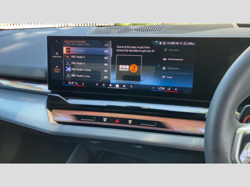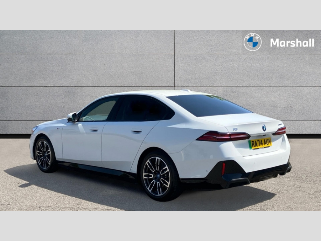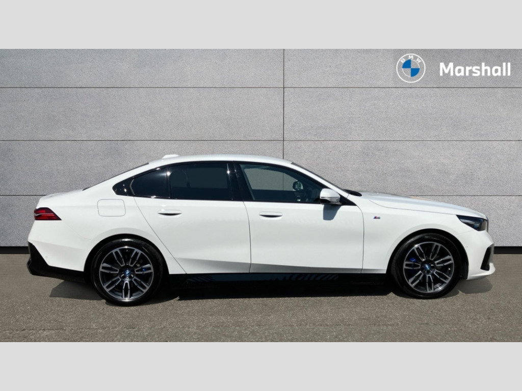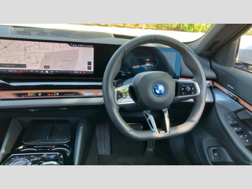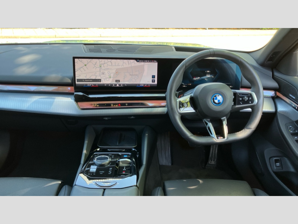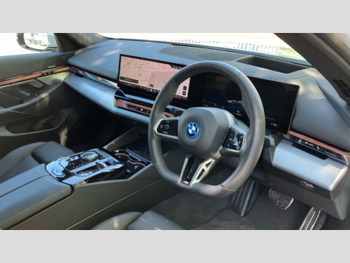 BMW I5 250kW eDrive40 M Sport 84kWh 4dr Auto BMW ConnectedDrive online services, BMW Iconic sounds electric, BMW legal emergency call, BMW Teleservices, Brake pad wear indicator, Driving Assistant Plus Preparation, Front collision warning with brake intervention, Left turn warning with brake function, Multifunctional instrument panel, Oil sensor for level and grade, On board computer inc. average speed, fuel consumption, liquid crystal Info display, journey computer, outside temperature display, personal profile, On-board diagnosis - OBD, PAS, Powered by Operating System 7.0, Run flat indicator, Service interval indicator, AC charging cable professional (mode 3) for public charging, AC charging professional 22kW, DAB tuner, Acoustic glazing, Adaptive LED Headlights, Automatic cornering lights, Automatic windscreen wipers and automatic headlight, BMW selective beam, Body colour door handles, Body coloured bumpers, Dynamic brake lights with LED technology, Electric front and rear windows with fingertip open/close + anti-trap facility and comfort closing function, Follow me home headlight function, Headlight elements in blue, Heated windscreen washer jets, LED daytime running lights, LED third brake light, Light colour close to that of ordinary daylight, Optimum, homogeneous illumination of the road, Rear boot, Rear side wing doors, 2 zone automatic air conditioning, 3 seat bench in 2nd row, 3 spoke leather M steering wheel in BMW M specific design with M badge, Armrest - front and rear integrated door trim, centre console includes storage compartment, rear centre includes 2 cupholders, Electric adjustable front sports seats, Electrically adjustable lumbar support for driver and front passenger, Heated driver and front passenger seats, M Anthracite headlining, M Sport pedal covers in stainless steel, Rear headrests, Single front passenger seat, Through loading system with 40/20/40 rear seat backrest split, Velour floormats, Wireless charging tray, Ambient lighting pack - 5 Series/I5, Connected package professional - 5 Series/I5, Expanded exterior mirror package - 5 series/I5, M high gloss shadow line pack - 5 Series/ I5, M Sport exterior styling pack - 5 Series/I5, Technology plus pack with Parking Assistant Professional - 5 Series/I5, 3 rear three point seatbelts, Acoustic protection for pedestrians, Active protection, Airbag deployment is controlled with respect to the intensity and scope, Anti-lock braking system (ABS), Brake assist, Brake energy regeneration, Cornering brake control (CBC), Crash sensor activating central locking release, hazard warning lights, fuel cut off and interior lighting, Driver and front passenger airbags, Driver central airbag, Driver/front passenger side airbags, DSC - Dynamic Stability Control, Dynamic brake control, Dynamic Traction Control - DTC, Electromechanical parking brake with automatic drive away release and auto hold function, Electronic brake force distribution, Engine drag torque control, Front and rear brake discs with interior ventilation, Front and rear curtain airbags, Front head restraints with anti-whiplash, Head airbags for first and second row seats, Hill start assist, Locking of doors after driving off, M Sport brakes in dark blue metallic painted brake callipers with M designation, Mechanical child proof lock on rear doors, PC iBrake PostCrash approach control warning with light braking function, Side impact protection, Trailer stability control, Two tone horn, Tyre pressure monitoring system, Warning triangle and first aid kit, Alarm system, Comfort access system with BMW digital key plus, Locking wheel bolts including wheel bolt adapter, Tyre repair kit