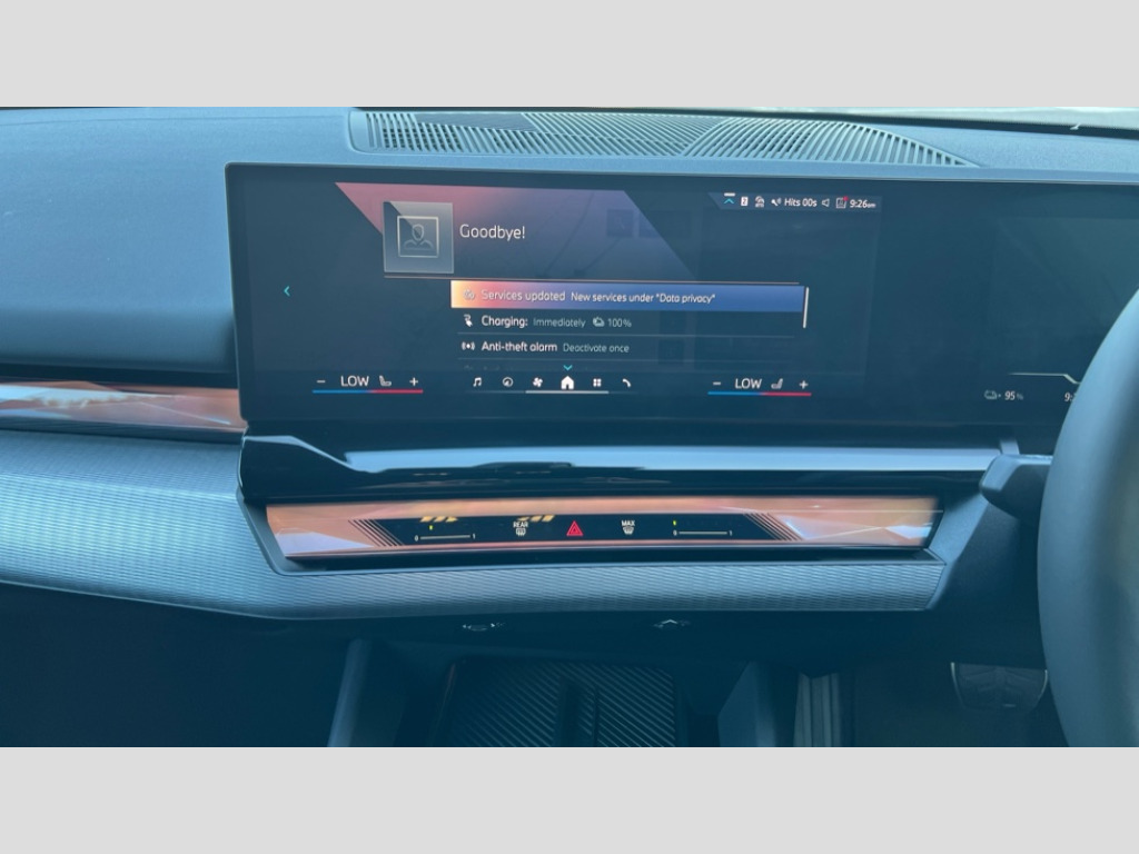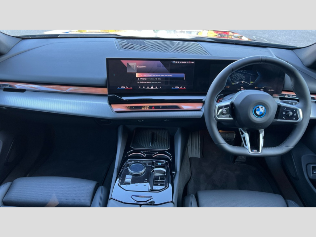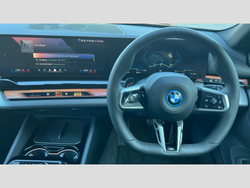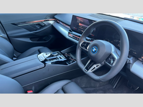 BMW I5 250kW eDrive40 M Sport 84kWh 5dr Auto Automatic tailgate operation, BMW ConnectedDrive online services, BMW Iconic sounds electric, BMW legal emergency call, BMW Teleservices, Brake pad wear indicator, Cruise control with brake assist, Driving Assistant Plus Preparation, Front collision warning with brake intervention, Lane departure warning with active return, Left turn warning with brake function, Multifunctional instrument panel, Oil sensor for level and grade, On board computer inc. average speed, fuel consumption, liquid crystal Info display, journey computer, outside temperature display, personal profile, On-board diagnosis - OBD, PAS, Personal e-SIM, Powered by Operating System 7.0, Run flat indicator, Service interval indicator, Speed limit Info with manual speed limit assist, AC charging cable professional (mode 3) for public charging, AC charging up to 11kW, DAB tuner, Acoustic glazing, Adaptive LED Headlights, Automatic cornering lights, Automatic windscreen wipers and automatic headlight, BMW selective beam, Body colour door handles, Body coloured bumpers, Dynamic brake lights with LED technology, Electric front and rear windows with fingertip open/close + anti-trap facility and comfort closing function, Follow me home headlight function, Headlight elements in blue, Heated windscreen washer jets, LED daytime running lights, LED third brake light, Light colour close to that of ordinary daylight, Optimum, homogeneous illumination of the road, Rear side wing doors, Rear wiper, 2 zone automatic air conditioning, 3 seat bench in 2nd row, 3 spoke leather M steering wheel in BMW M specific design with M badge, Armrest - front and rear integrated door trim, centre console includes storage compartment, rear centre includes 2 cupholders, Electric adjustable front sports seats, Electrically adjustable lumbar support for driver and front passenger, Heated driver and front passenger seats, High-gloss black door switch cluster, power window switch and tailgate button on first and second row seat, M Anthracite headlining, M Sport pedal covers in stainless steel, Rear headrests, Single front passenger seat, Through loading system with 40/20/40 rear seat backrest split, Velour floormats, Wireless charging tray, Ambient lighting pack - 5 Series/I5, Connected package professional - 5 Series/I5, Driving assistance pack - 5 Series/I5, Expanded exterior mirror package - 5 series/I5, M high gloss shadow line pack - 5 Series/ I5, M Sport exterior styling pack - 5 Series/I5, 3 rear three point seatbelts, Acoustic protection for pedestrians, Active protection, Airbag deployment is controlled with respect to the intensity and scope, Anti-lock braking system (ABS), Brake assist, Brake energy regeneration, Cornering brake control (CBC), Crash sensor activating central locking release, hazard warning lights, fuel cut off and interior lighting, Driver and front passenger airbags, Driver central airbag, Driver/front passenger side airbags, DSC - Dynamic Stability Control, Dynamic brake control, Dynamic Traction Control - DTC, Electromechanical parking brake with automatic drive away release and auto hold function, Electronic brake force distribution, Engine drag torque control, Front and rear brake discs with interior ventilation, Front and rear curtain airbags, Front head restraints with anti-whiplash, Head airbags for first and second row seats, Hill start assist, Locking of doors after driving off, M Sport brakes in dark blue metallic painted brake callipers with M designation, Mechanical child proof lock on rear doors, PC iBrake PostCrash approach control warning with light braking function, Side impact protection, Trailer stability control, Two tone horn, Tyre pressure monitoring system, Warning triangle and first aid kit, Alarm system, Locking wheel bolts including wheel bolt adapter, Tyre repair kit