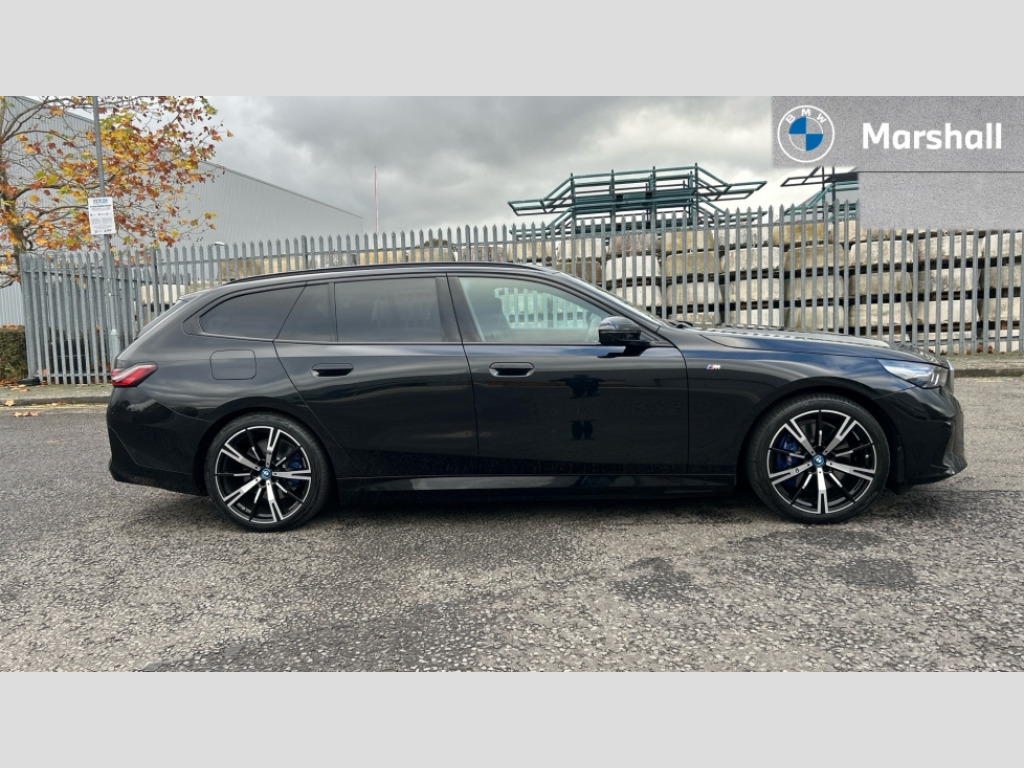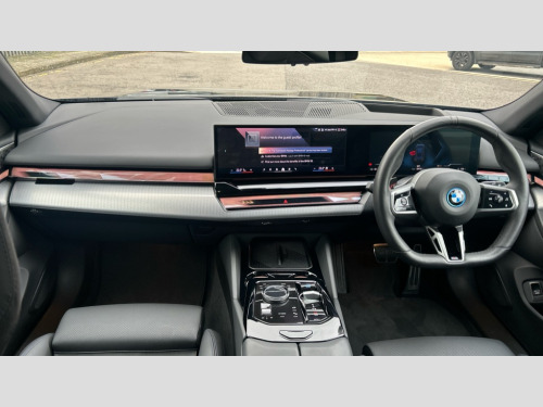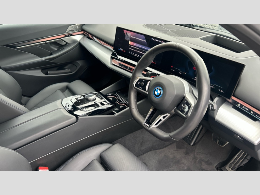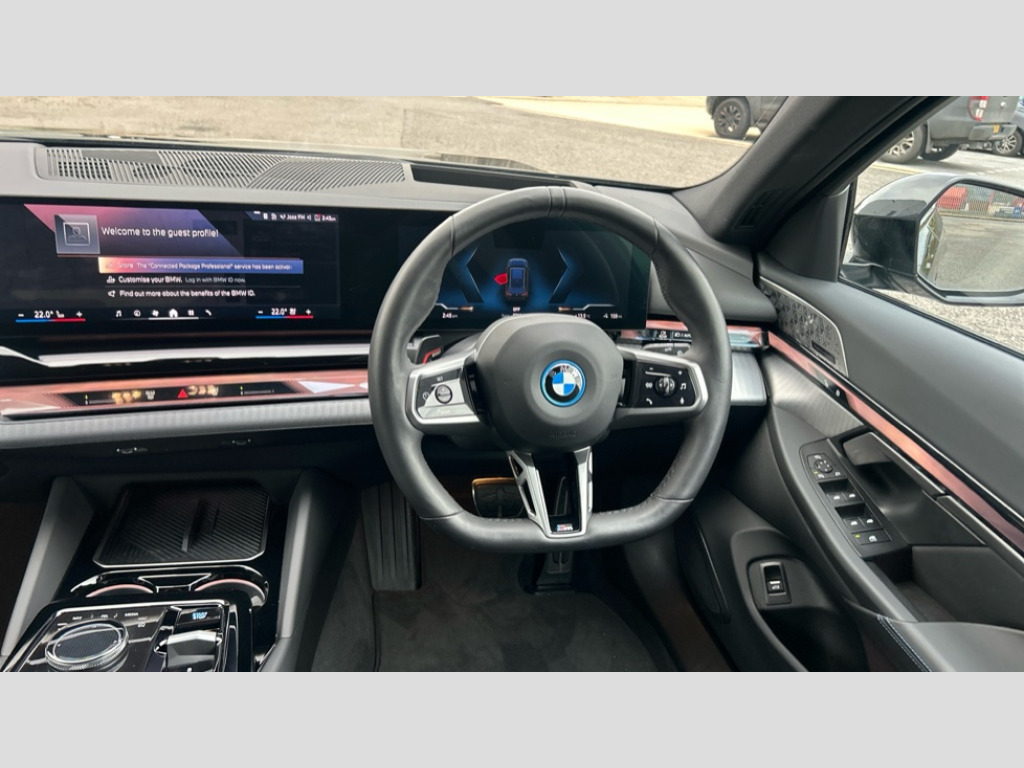 BMW I5 250kW eDrive40 M Sport 84kWh 5dr Auto Automatic tailgate operation, BMW ConnectedDrive online services, BMW Iconic sounds electric, BMW legal emergency call, BMW Teleservices, Brake pad wear indicator, Cruise control with brake assist, Driving Assistant Plus Preparation, Front collision warning with brake intervention, Lane departure warning with active return, Left turn warning with brake function, Multifunctional instrument panel, Oil sensor for level and grade, On board computer inc. average speed, fuel consumption, liquid crystal Info display, journey computer, outside temperature display, personal profile, On-board diagnosis - OBD, PAS, Personal e-SIM, Powered by Operating System 7.0, Run flat indicator, Service interval indicator, Speed limit Info with manual speed limit assist, AC charging cable professional (mode 3) for public charging, AC charging up to 11kW, DAB tuner, Acoustic glazing, Adaptive LED Headlights, Automatic cornering lights, Automatic windscreen wipers and automatic headlight, BMW selective beam, Body colour door handles, Body coloured bumpers, Dynamic brake lights with LED technology, Electric front and rear windows with fingertip open/close + anti-trap facility and comfort closing function, Follow me home headlight function, Headlight elements in blue, Heated windscreen washer jets, LED daytime running lights, LED third brake light, Light colour close to that of ordinary daylight, Optimum, homogeneous illumination of the road, Rear side wing doors, Rear wiper, 2 zone automatic air conditioning, 3 seat bench in 2nd row, 3 spoke leather M steering wheel in BMW M specific design with M badge, Armrest - front and rear integrated door trim, centre console includes storage compartment, rear centre includes 2 cupholders, Electric adjustable front sports seats, Electrically adjustable lumbar support for driver and front passenger, Heated driver and front passenger seats, High-gloss black door switch cluster, power window switch and tailgate button on first and second row seat, M Anthracite headlining, M Sport pedal covers in stainless steel, Rear headrests, Single front passenger seat, Through loading system with 40/20/40 rear seat backrest split, Velour floormats, Wireless charging tray, Ambient lighting pack - 5 Series/I5, Connected package professional - 5 Series/I5, Driving assistance pack - 5 Series/I5, Expanded exterior mirror package - 5 series/I5, M high gloss shadow line pack - 5 Series/ I5, M Sport exterior styling pack - 5 Series/I5, 3 rear three point seatbelts, Acoustic protection for pedestrians, Active protection, Airbag deployment is controlled with respect to the intensity and scope, Anti-lock braking system (ABS), Brake assist, Brake energy regeneration, Cornering brake control (CBC), Crash sensor activating central locking release, hazard warning lights, fuel cut off and interior lighting, Driver and front passenger airbags, Driver central airbag, Driver/front passenger side airbags, DSC - Dynamic Stability Control, Dynamic brake control, Dynamic Traction Control - DTC, Electromechanical parking brake with automatic drive away release and auto hold function, Electronic brake force distribution, Engine drag torque control, Front and rear brake discs with interior ventilation, Front and rear curtain airbags, Front head restraints with anti-whiplash, Head airbags for first and second row seats, Hill start assist, Locking of doors after driving off, M Sport brakes in dark blue metallic painted brake callipers with M designation, Mechanical child proof lock on rear doors, PC iBrake PostCrash approach control warning with light braking function, Side impact protection, Trailer stability control, Two tone horn, Tyre pressure monitoring system, Warning triangle and first aid kit, Alarm system, Locking wheel bolts including wheel bolt adapter, Tyre repair kit