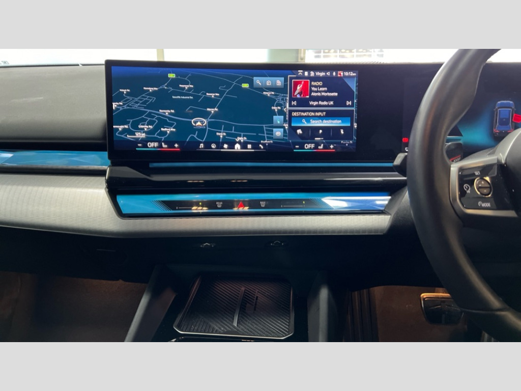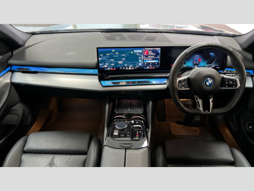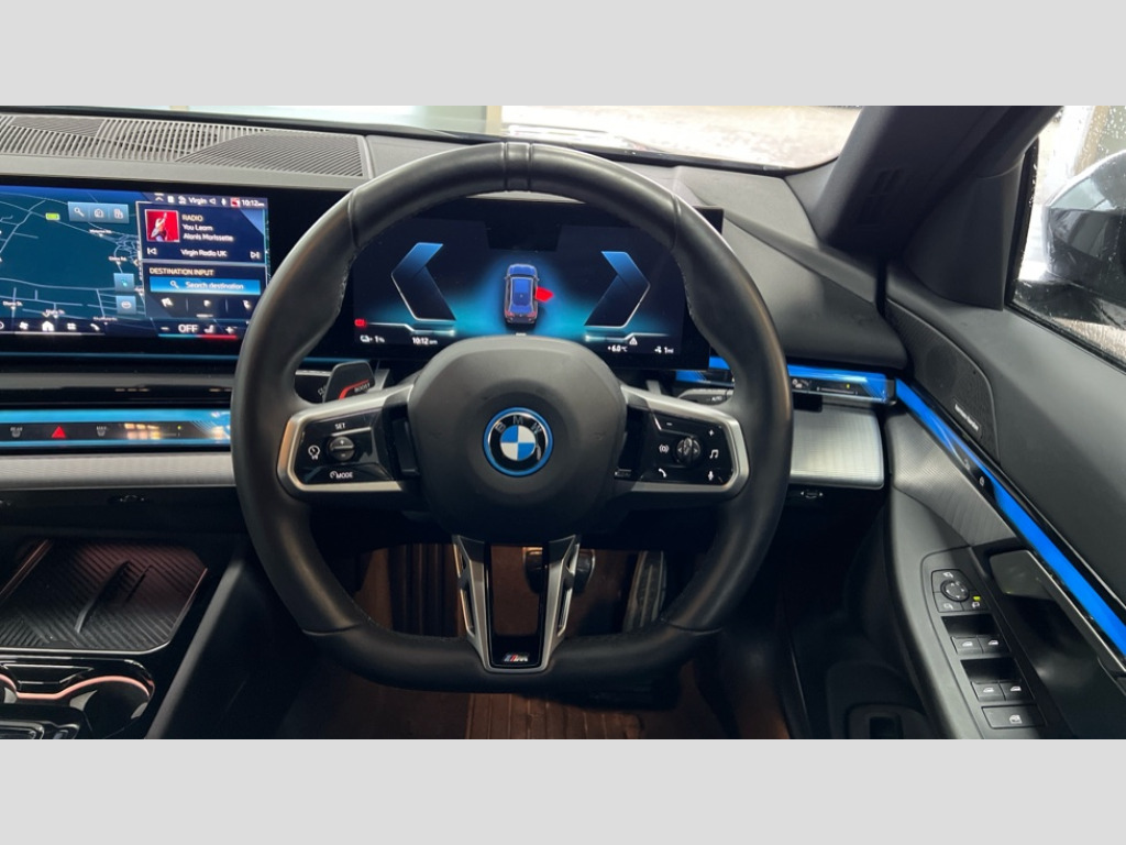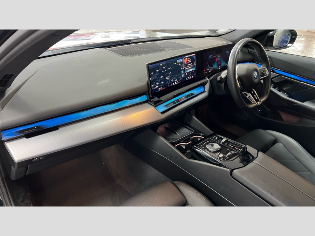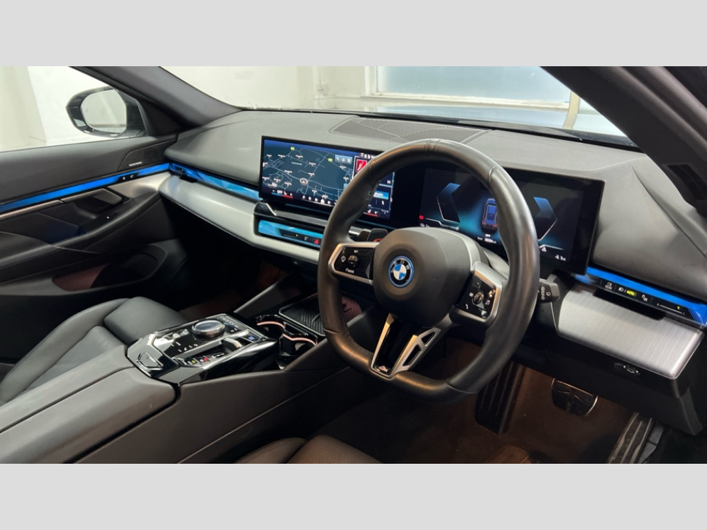 BMW I5 250kW eDrive40 M Sport 84kWh 5dr Auto Automatic tailgate operation, BMW ConnectedDrive online services, BMW Iconic sounds electric, BMW legal emergency call, BMW Teleservices, Brake pad wear indicator, Cruise control with brake assist, Driving Assistant Plus Preparation, Front collision warning with brake intervention, Lane departure warning with active return, Left turn warning with brake function, Multifunctional instrument panel, Oil sensor for level and grade, On board computer inc. average speed, fuel consumption, liquid crystal Info display, journey computer, outside temperature display, personal profile, On-board diagnosis - OBD, PAS, Personal e-SIM, Powered by Operating System 7.0, Run flat indicator, Service interval indicator, Speed limit Info with manual speed limit assist, AC charging cable professional (mode 3) for public charging, AC charging up to 11kW, DAB tuner, Acoustic glazing, Adaptive LED Headlights, Automatic cornering lights, Automatic windscreen wipers and automatic headlight, BMW selective beam, Body colour door handles, Body coloured bumpers, Dynamic brake lights with LED technology, Electric front and rear windows with fingertip open/close + anti-trap facility and comfort closing function, Follow me home headlight function, Headlight elements in blue, Heated windscreen washer jets, LED daytime running lights, LED third brake light, Light colour close to that of ordinary daylight, Optimum, homogeneous illumination of the road, Rear side wing doors, Rear wiper, 2 zone automatic air conditioning, 3 seat bench in 2nd row, 3 spoke leather M steering wheel in BMW M specific design with M badge, Armrest - front and rear integrated door trim, centre console includes storage compartment, rear centre includes 2 cupholders, Electric adjustable front sports seats, Electrically adjustable lumbar support for driver and front passenger, Heated driver and front passenger seats, High-gloss black door switch cluster, power window switch and tailgate button on first and second row seat, M Anthracite headlining, M Sport pedal covers in stainless steel, Rear headrests, Single front passenger seat, Through loading system with 40/20/40 rear seat backrest split, Velour floormats, Wireless charging tray, Ambient lighting pack - 5 Series/I5, Connected package professional - 5 Series/I5, Driving assistance pack - 5 Series/I5, Expanded exterior mirror package - 5 series/I5, M high gloss shadow line pack - 5 Series/ I5, M Sport exterior styling pack - 5 Series/I5, 3 rear three point seatbelts, Acoustic protection for pedestrians, Active protection, Airbag deployment is controlled with respect to the intensity and scope, Anti-lock braking system (ABS), Brake assist, Brake energy regeneration, Cornering brake control (CBC), Crash sensor activating central locking release, hazard warning lights, fuel cut off and interior lighting, Driver and front passenger airbags, Driver central airbag, Driver/front passenger side airbags, DSC - Dynamic Stability Control, Dynamic brake control, Dynamic Traction Control - DTC, Electromechanical parking brake with automatic drive away release and auto hold function, Electronic brake force distribution, Engine drag torque control, Front and rear brake discs with interior ventilation, Front and rear curtain airbags, Front head restraints with anti-whiplash, Head airbags for first and second row seats, Hill start assist, Locking of doors after driving off, M Sport brakes in dark blue metallic painted brake callipers with M designation, Mechanical child proof lock on rear doors, PC iBrake PostCrash approach control warning with light braking function, Side impact protection, Trailer stability control, Two tone horn, Tyre pressure monitoring system, Warning triangle and first aid kit, Alarm system, Locking wheel bolts including wheel bolt adapter, Tyre repair kit