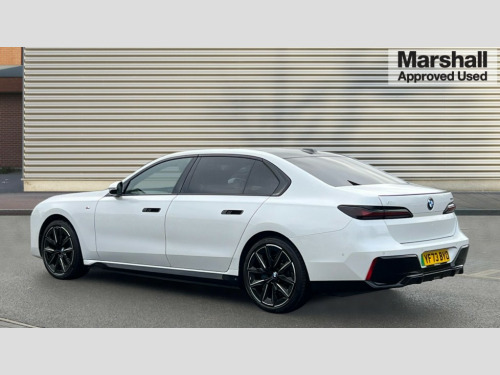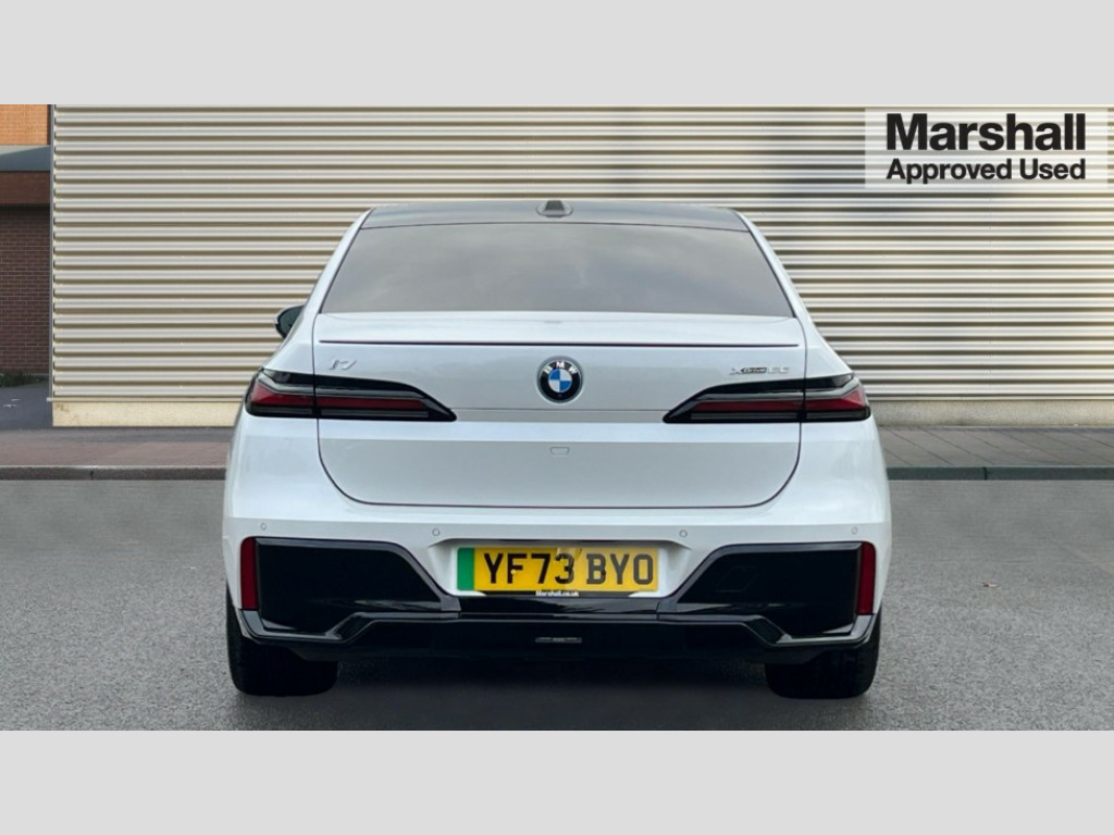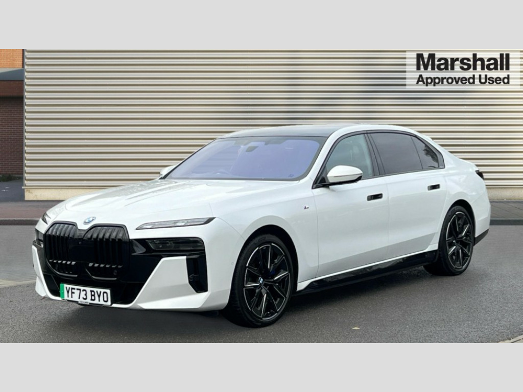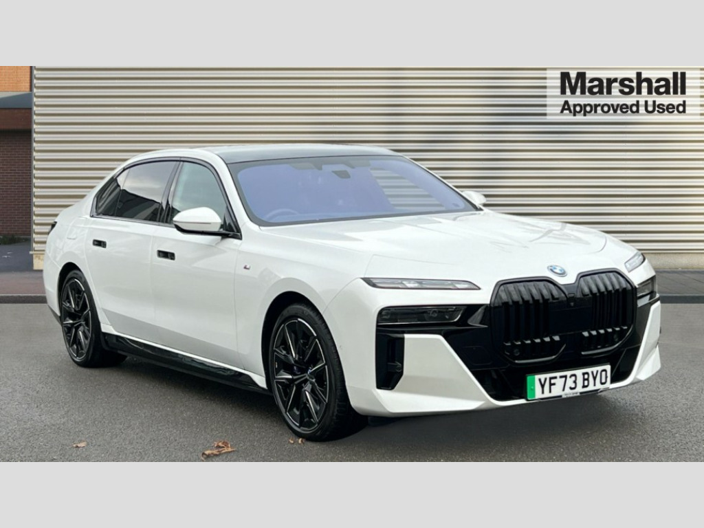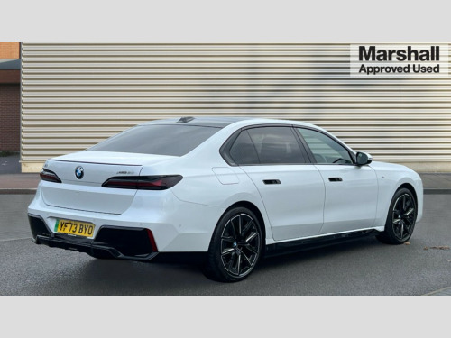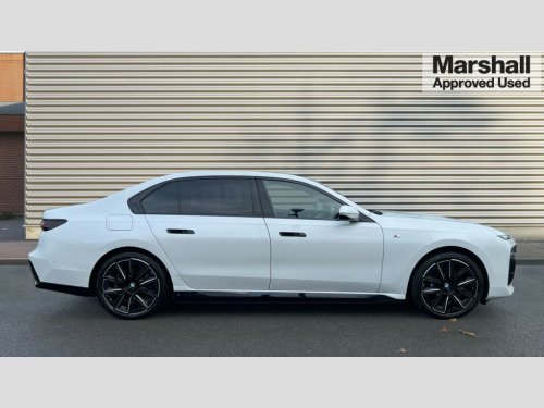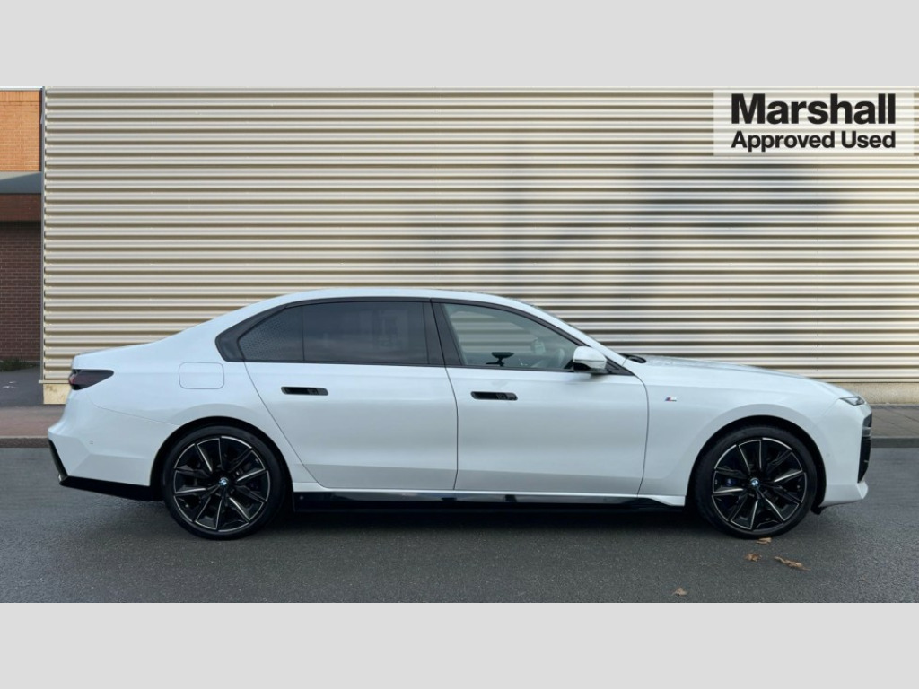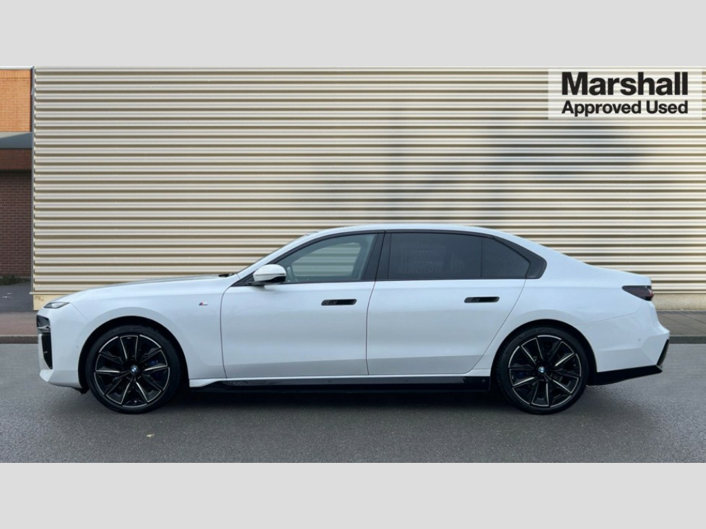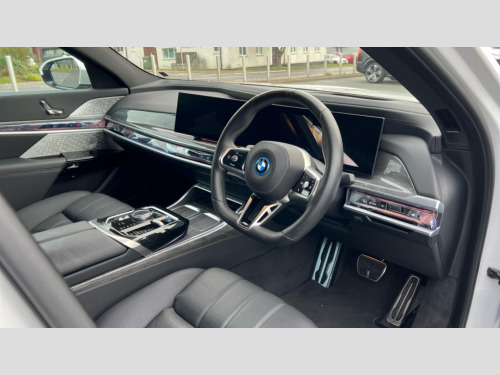 BMW I7 400kW xDrive60 M Sport Pro 105.7kWh 4dr Auto Active Guard, Attentiveness assist, BMW ConnectedDrive - Online, BMW gesture control, BMW Iconic sounds electric, BMW iDrive, BMW interaction bar, BMW legal emergency call, BMW Natural interaction, BMW Teleservices, BMW Touch command, Brake pad wear indicator, Comfort access system with smart opener, Condition based service, Driving Assistant Plus Preparation, Driving control panel, Electric boot lid - electrically opening/closing rear tailgate, Executive drive pro, Instrument panel joint diffuser in black, Integral active steering, Live Cockpit Pro with head up display including 12.3" instrument cluster and 14.9" central display, My Modes, PAS, Rollback prevention, Run flat indicator, Smartphone wireless charging plate, AC charging professional 22kW, Adaptive 2-axle air suspension, BMW xDrive system, 2x USB Type C ports in front centre console for charging and data transfer, 2x USB Type C ports in rear centre console for charging, BMW theatre screen, DAB Digital radio, Personal eSim, Automatic front and rear doors, BMW badge on front and rear, BMW radiator grille, Climate comfort windscreen, Daytime running lights, Deletion of front/front side sills and side rear apron, Door handle flush to surface including lock barrel on driver side, Dynamic brake lights, Electric adjustable door mirrors, Electric front and rear windows with fingertip open/close + anti-trap all round and comfort closing function, Electric heated door mirrors, Entry sills, Extended high gloss shadowline exterior trim, Exterior mirror cap, Front and rear bumper panel, Front windscreen wiper in wet-arm technology, Ground lighting, Heated rear window, High beam assistant, Iconic glow crystal headlights, Iconic Glow Illuminated Kidney Grille, Interiror rear view mirror, M Sport exterior styling, M Sport spoiler, Model badge, Number plate lights, Number plate panel, Rain sensor + automatic driving lights control, Rear boot, Rear side wing doors, Roof aerial housing in black, Side window frames, Sun protection glass, Tailpipe trims, Third brake light, Towing eye, Trailer stabilisation logic, Two-part front light, Welcome lighting, Window recess finisher strip, Window washer nozzle for reversing assist camera, 12V power sockets, 2 upper retaining strap clips in parcel shelf, 3 seat bench in 2nd row, 3 spoke leather M steering wheel in BMW M specific design with M badge, 4 coat hooks in B-pillar and roof grab handle in rear, Ambient interior lighting, Bag hooks on luggage compartment trim panel, BMW ID, Central folding rear headrests, Comfort cushion in rear seats, Contour illuminated front and rear door pocket, Door sill finishers with BMW designation, Electric seat adjustment with memory, Electrically opening glove compartment, Footrests and pedals in plastic, Footwell courtesy lights front and rear, Four lashing eyes in luggage compartment, Four zone automatic air conditioning, Front and rear cupholders x 2, Front and rear reading lights, Front armrest, Front headrests, Grab handles, Heated front and rear seats, Illuminated front and rear centre armrest storage compartment, Illuminated glove compartment, Interior lighting, ISOFIX attachment point for both outer rear seats, Luggage compartment light, Luggage compartment removable panel, M sport interior styling, Multifunction steering wheel, Reach and rake adjustable steering column, Rear centre armrest, Rear door entry light, Rear door exit lights, Single front passenger seat, Soft close doors, Standard driver and front passenger seat, Stationary cooling and heating, Storage compartment in central/rear centre console, rear centre armrest, Storage compartment with cover on left, without cover on right in side trim panel, Sun visors for driver and front passenger with illuminated vanity mirror with slide cover, Through loading system, Velour floormats, Wireless charging tray, Connected Package Professional - I7, Expanded exterior mirror package - I7, Park assistant pro pack - I7, Skylounge pack - I7, 3 point seatbelts on all seats, Acoustic protection for pedestrians, Active protection, Anti-lock braking system (ABS), Automatic Stability Control (ASC), Brake assist, Brake drying, Braking readiness, Child locks on rear doors, Cornering brake control (CBC), Crash Sensor - activates hazard/interior lighting + unlocks doors, Driver and front passenger airbags, Driver central airbag, Driver/front passenger side airbags, DSC - Dynamic Stability Control, Dynamic brake control, Electromechanical parking brake + auto hold function, Front and rear brake discs, Head airbags for first and second row seats, Integrated braking system, PC iBrake PostCrash approach control warning with light braking function, Rear airbags, Tyre pressure monitoring system, Tyre pressure sensors, Warning triangle and first aid kit, Closing system with central locking, Electronic vehicle immobiliser, Fuel filler flap/charging socket flap in body colour, Locking wheel bolts, Remote central locking, Thatcham Cat.1 alarm, Vehicle key, Front centre console decorative trims, Tyre repair kit