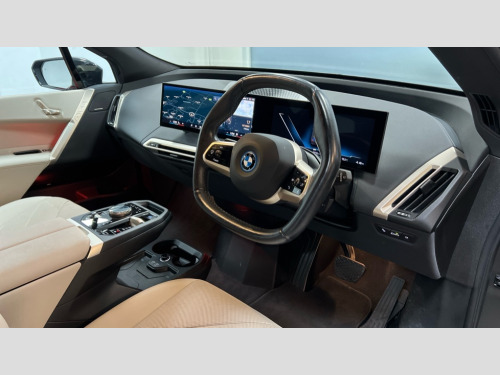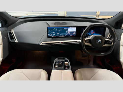 BMW Ix 240kW xDrive40 M Sport 76.6kWh 5dr Auto Attentiveness assist, BMW ConnectedDrive online services, BMW Iconic sounds electric, BMW Live cockpit plus with navigation function and BMW maps, BMW Natural interaction, BMW Teleservices, Brake pad wear indicator warning light, Condition based service, Electric Power Steering (EPS) with Servotronic, Electric tailgate, Engine start/stop button, iDrive controller, Integrated owners handbook, Live Cockpit Professional with head up display including 12.3" instrument cluster and 14.9" central display, Service interval indicator, Speed limiter, AC charging up to 11kW, BMW xDrive system, DC charging up to 150kW, Double wishbone front axle, eDrive exterior sound, Electric drive unit, High voltage 71kWh battery, Mode 2 flexible charger, Mode 3 charging cable, DAB Tuner enables digital radio reception, Harman/Kardon surround sound audio system with 18 speakers and 655W, Personal eSim, USB connections (2 x Type C in cupholder area and 2 x Type C on rear of front seats), Automatic beam throw control, BMW emblem on engine compartment lid and tailgate, Body colour door mirrors, Body colour plastic front apron, Body colour roof fin, Charging flap in rear right side panel, Climate comfort windscreen, Dynamic brake lights, Electric integrated door handles flush with the door surface, Follow me home headlight function, Frameless interior mirror, Front and rear bumper system with replaceable deformation elements, Front and rear electric windows, Fuel filler flap - right rear in body colour, Heated windscreen washer jets, High beam assistant, Integrated direction indicators, LED daytime running lights, LED licence plate lights, LED rear lights, Licence plate panel integrated into front bumper and tailgate, M Sport exterior styling, M sport specific bumpers, Mirror base in black matt, Model logo - iX on left of tailgate and xDrive model inscription and model designation on right of tailgate, One piece front bumper cover including towing eye cover in body colour, Rain sensor + automatic driving lights control, Rear side wing doors, Rear window wiper, Side frame decorative moulding black high gloss, Third brake light featuring LED technology, Welcome light carpet, Window cavity cover in black high gloss, 12V - Power sockets with front centre console and luggage compartment, 2 Integrated head restraints in the outer seats, one height-adjustable head restraint for the centre seat, 2 spoke polygonal steering wheel, 3 seat bench in 2nd row, 40:20:40 split folding rear seat backrests, Ambient door pocket lighting in front, Ambient interior lighting, Anthracite headlining, Area lighting in the door trim panel, BMW ID, Door entry lights in the front door trim panel, Dynamic function of contour lighting - welcome, goodbye, open doors, phone call, Electric adjustable steering column, Fixed luggage compartment cover, Four cupholders (2 front and 2 in rear centre arm rest), Four lashing eyes in luggage compartment, Four zone automatic air conditioning, Front and rear door pockets, Glove box with electric unlocking (button next to glove box lid), Headrests for all seats, Interior door handle lighting in front and rear, Interior light - Front/rear reading light, glovebox, centre console storage, front footwell, makeup mirro, Luggage compartment and Fire place light, Luggage compartment floor panel with integral storage tray, Multifunction hooks, Rear centre armrest, Seat back with flap pocket, Single front passenger seat, Split folding rear seats, Stationary cooling, Storage tray and compartment with cover in centre console, Sun visors, Wireless charging tray, Connected package professional - iX, Driving assistant professional pack - iX, Expanded exterior mirror pack - iX, Active protection, Anti-lock braking system (ABS), BMW emergency call, Brake energy regeneration, Child locks on rear doors, Child seat ISOFIX attachment rear outer seats, Cornering brake control (CBC), Crash sensor, Driver and front passenger airbags, Driver and passenger side airbags, DSC - Dynamic Stability Control with extended contents, Electromechanical parking brake, Front brake discs with interior ventilation, Head airbags for 1st and 2nd seat row, Hill start assistant, Integrated sport braking system, Passive protection for pedestrians, Rear brake discs with interior ventilation, Recuperation system, Seat occupancy detection for driver and passenger side, Side impact protection, Three point seat belts for all four seats, Two tone horn, Tyre pressure sensor, Warning triangle and first aid kit, Alarm system, Closing system with central locking, Engine immobiliser, Interior centre lock switch, Keyless engine start, Locking wheel bolts, Two vehicle keys, Diagonal stitching on seats, Tool kit, Tyre repair kit