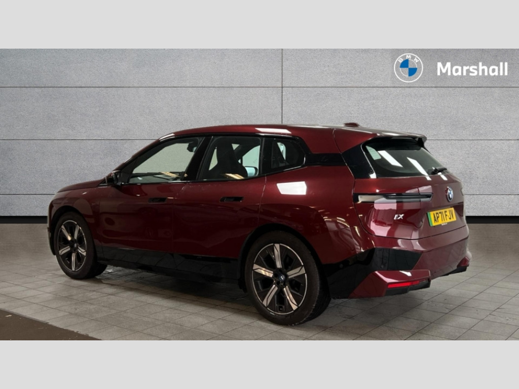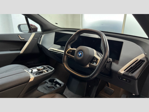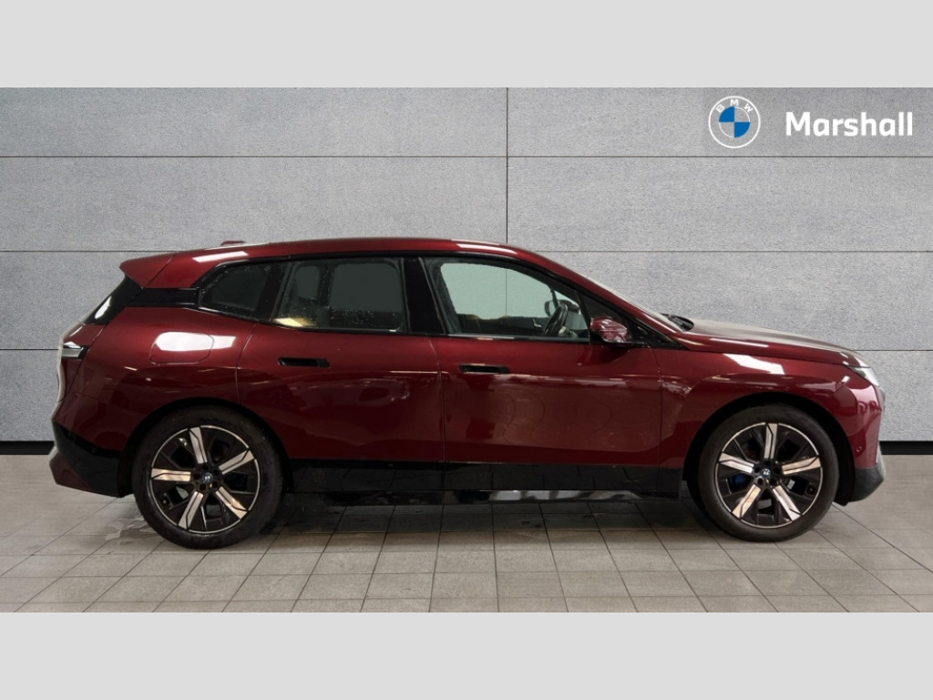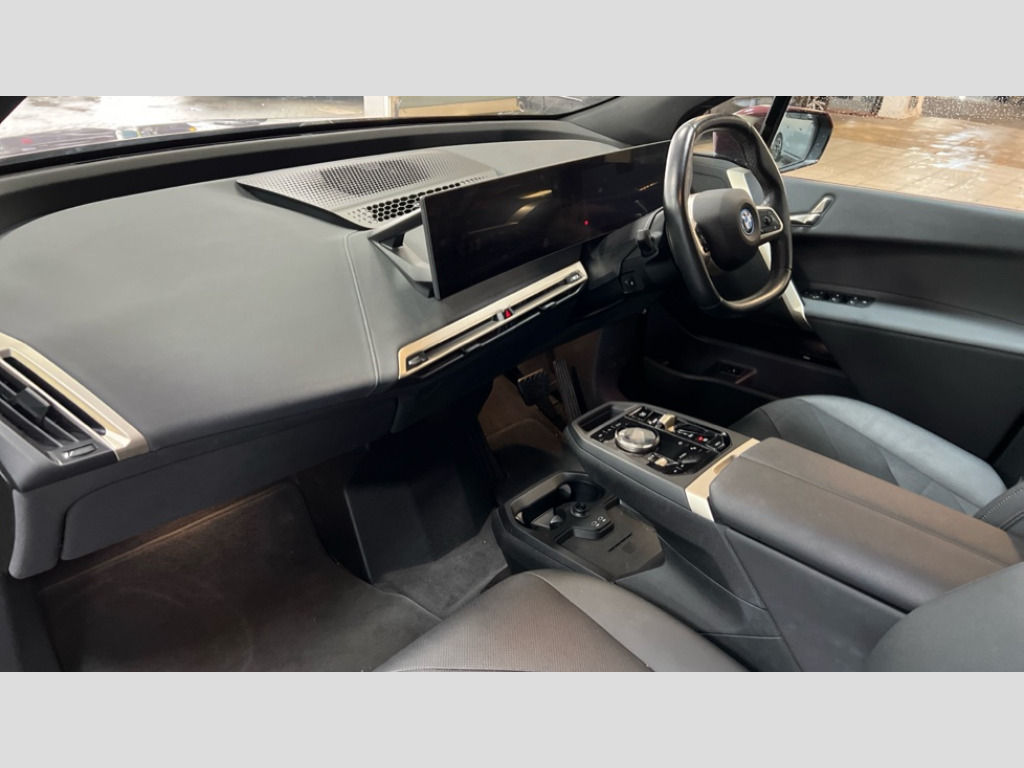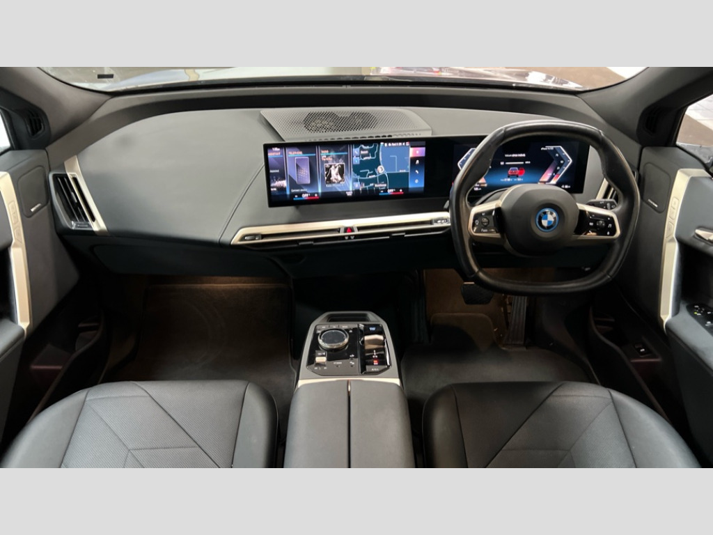 BMW Ix 240kW xDrive40 M Sport 76.6kWh 5dr Auto Attentiveness assist, BMW ConnectedDrive online services, BMW Iconic sounds electric, BMW Natural interaction, BMW Teleservices, Brake pad wear indicator warning light, Condition based service, Electric Power Steering (EPS) with Servotronic, Engine start/stop button, iDrive controller, Integrated owners handbook, Live Cockpit Professional with head up display including 12.3" instrument cluster and 14.9" central display, Service interval indicator, Speed limiter, AC charging up to 11kW, BMW xDrive system, DC charging up to 150kW, Double wishbone front axle, eDrive exterior sound, Electric drive unit, Flexible charger, High voltage 71kWh battery, Mode 3 charging cable, DAB Tuner enables digital radio reception, Harman/Kardon surround sound audio system with 18 speakers and 655W, Personal eSim, USB connections (2 x Type C in cupholder area and 2 x Type C on rear of front seats), Body colour plastic front apron, Body colour roof fin, Charging flap in rear right side panel, Climate comfort windscreen, Daylight driving lights, Dynamic brake lights, Electric integrated door handles flush with the door surface, Follow me home headlight function, Frameless interior mirror, Front and rear electric windows, Fuel filler flap - right rear in body colour, Heated windscreen washer jets, High beam assistant, Integrated direction indicators, LED rear lights, Licence plate panel integrated into front bumper and tailgate, M sport specific bumpers, Mirror base in black matt, Model logo - iX on left of tailgate and xDrive model inscription and model designation on right of tailgate, One piece front bumper cover including towing eye cover in body colour, Rain sensor + automatic driving lights control, Rear side wing doors, Rear window wiper, Side frame decorative moulding black high gloss, Third brake light featuring LED technology, Welcome light carpet, Window cavity cover in black high gloss, 12V - Power sockets with front centre console and luggage compartment, 2 Integrated head restraints in the outer seats, one height-adjustable head restraint for the centre seat, 2 spoke polygonal steering wheel, 3 seat bench in 2nd row, 40:20:40 split folding rear seat backrests, Adjustable steering column, Ambient interior lighting, Anthracite headlining, BMW ID, Driver and front passenger heated seats, Fixed luggage compartment cover, Four cupholders (2 front and 2 in rear centre arm rest), Four lashing eyes in luggage compartment, Four zone automatic air conditioning, Front and rear door pockets, Glove box with electric unlocking (button next to glove box lid), Headrests for all seats, High gloss black shadow line, Interior light - Front/rear reading light, glovebox, centre console storage, front footwell, makeup mirro, Luggage compartment and Fire place light, Luggage compartment floor panel with integral storage tray, Multifunction hooks, Rear centre armrest, Seat back with flap pocket, Single front passenger seat, Split folding rear seats, Stationary cooling, Storage tray and compartment with cover in centre console, Sun visors, Wireless charging tray, Connected package professional - iX, Driving assistant professional pack - iX, Expanded exterior mirror pack - iX, M Sport aerodynamics bodystyling pack - iX, Active protection, Anti-lock braking system (ABS), BMW emergency call, Brake energy regeneration, Child locks on rear doors, Child seat ISOFIX attachment rear outer seats, Crash sensor, Driver and front passenger airbags, Driver and passenger side airbags, DSC - Dynamic Stability Control with extended contents, Electromechanical parking brake, Front brake discs with interior ventilation, Head airbags for 1st and 2nd seat row, Hill start assistant, Integrated sport braking system, Passive protection for pedestrians, Rear brake discs with interior ventilation, Recuperation system, Seat occupancy detection for driver and passenger side, Side impact protection, Three point seat belts for all four seats, Two tone horn, Tyre pressure sensor, Warning triangle and first aid kit, Alarm system, Closing system with central locking, Engine immobiliser, Interior centre lock switch, Keyless engine start, Locking wheel bolts, Two vehicle keys, Diagonal stitching on seats, Tool kit, Tyre repair kit