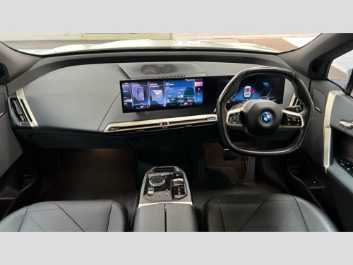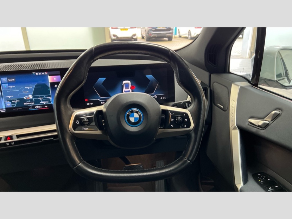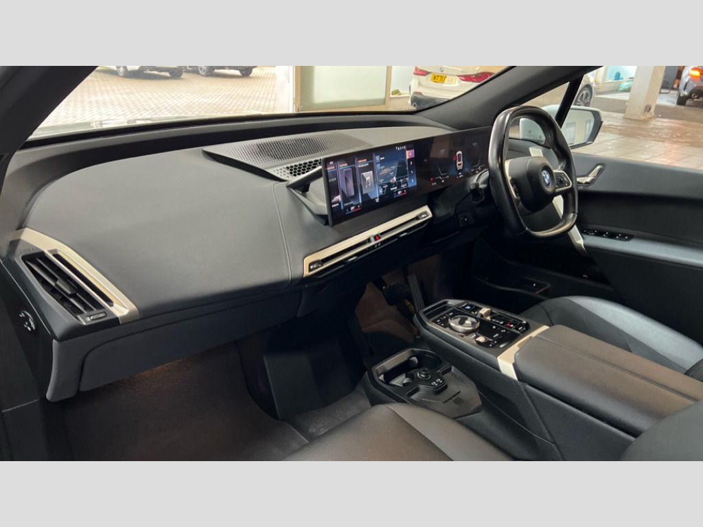 BMW Ix 240kW xDrive40 M Sport 76.6kWh 5dr Auto Attentiveness assist, BMW ConnectedDrive online services, BMW Iconic sounds electric, BMW Live cockpit plus with navigation function and BMW maps, BMW Natural interaction, BMW Teleservices, Brake pad wear indicator warning light, Condition based service, Electric Power Steering (EPS) with Servotronic, Electric tailgate, Engine start/stop button, iDrive controller, Integrated owners handbook, Live Cockpit Professional with head up display including 12.3" instrument cluster and 14.9" central display, Service interval indicator, Speed limiter, AC charging up to 11kW, BMW xDrive system, DC charging up to 150kW, Double wishbone front axle, eDrive exterior sound, Electric drive unit, High voltage 71kWh battery, Mode 2 flexible charger, Mode 3 charging cable, DAB Tuner enables digital radio reception, Harman/Kardon surround sound audio system with 18 speakers and 655W, Personal eSim, USB connections (2 x Type C in cupholder area and 2 x Type C on rear of front seats), Automatic beam throw control, BMW emblem on engine compartment lid and tailgate, Body colour door mirrors, Body colour plastic front apron, Body colour roof fin, Charging flap in rear right side panel, Climate comfort windscreen, Dynamic brake lights, Electric integrated door handles flush with the door surface, Follow me home headlight function, Frameless interior mirror, Front and rear bumper system with replaceable deformation elements, Front and rear electric windows, Fuel filler flap - right rear in body colour, Heated windscreen washer jets, High beam assistant, Integrated direction indicators, LED daytime running lights, LED licence plate lights, LED rear lights, Licence plate panel integrated into front bumper and tailgate, M Sport exterior styling, M sport specific bumpers, Mirror base in black matt, Model logo - iX on left of tailgate and xDrive model inscription and model designation on right of tailgate, One piece front bumper cover including towing eye cover in body colour, Rain sensor + automatic driving lights control, Rear side wing doors, Rear window wiper, Side frame decorative moulding black high gloss, Third brake light featuring LED technology, Welcome light carpet, Window cavity cover in black high gloss, 12V - Power sockets with front centre console and luggage compartment, 2 Integrated head restraints in the outer seats, one height-adjustable head restraint for the centre seat, 2 spoke polygonal steering wheel, 3 seat bench in 2nd row, 40:20:40 split folding rear seat backrests, Ambient door pocket lighting in front, Ambient interior lighting, Anthracite headlining, Area lighting in the door trim panel, BMW ID, Door entry lights in the front door trim panel, Driver and front passenger heated seats, Dynamic function of contour lighting - welcome, goodbye, open doors, phone call, Electric adjustable steering column, Fixed luggage compartment cover, Four cupholders (2 front and 2 in rear centre arm rest), Four lashing eyes in luggage compartment, Four zone automatic air conditioning, Front and rear door pockets, Glove box with electric unlocking (button next to glove box lid), Headrests for all seats, Interior door handle lighting in front and rear, Interior light - Front/rear reading light, glovebox, centre console storage, front footwell, makeup mirro, Luggage compartment and Fire place light, Luggage compartment floor panel with integral storage tray, Multifunction hooks, Rear centre armrest, Seat back with flap pocket, Single front passenger seat, Split folding rear seats, Stationary cooling, Storage tray and compartment with cover in centre console, Sun visors, Wireless charging tray, Connected package professional - iX, Driving assistant professional pack - iX, Expanded exterior mirror pack - iX, Active protection, Anti-lock braking system (ABS), BMW emergency call, Brake energy regeneration, Child locks on rear doors, Child seat ISOFIX attachment rear outer seats, Cornering brake control (CBC), Crash sensor, Driver and front passenger airbags, Driver and passenger side airbags, DSC - Dynamic Stability Control with extended contents, Electromechanical parking brake, Front brake discs with interior ventilation, Head airbags for 1st and 2nd seat row, Hill start assistant, Integrated sport braking system, Passive protection for pedestrians, Rear brake discs with interior ventilation, Recuperation system, Seat occupancy detection for driver and passenger side, Side impact protection, Three point seat belts for all four seats, Two tone horn, Tyre pressure sensor, Warning triangle and first aid kit, Alarm system, Closing system with central locking, Engine immobiliser, Interior centre lock switch, Keyless engine start, Locking wheel bolts, Two vehicle keys, Diagonal stitching on seats, Tool kit, Tyre repair kit