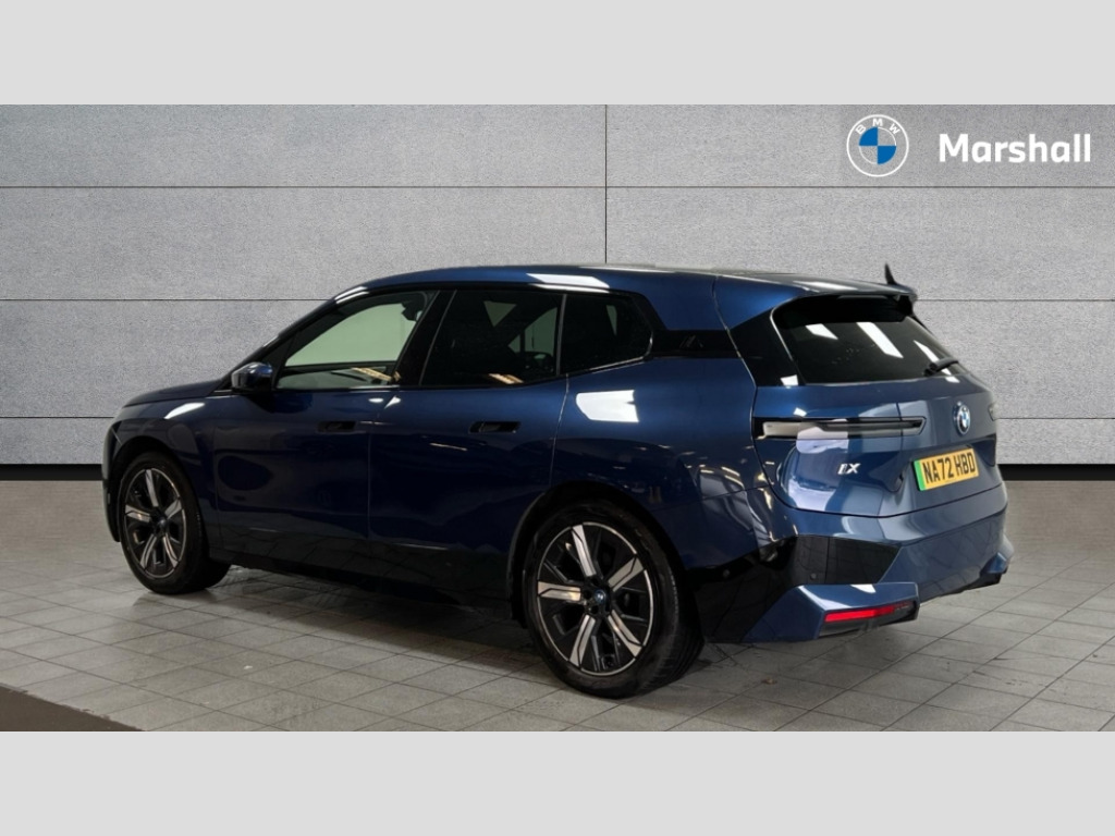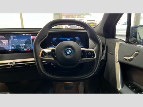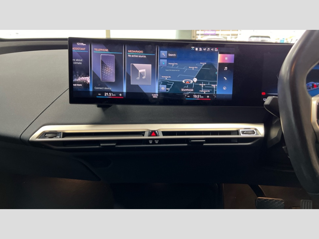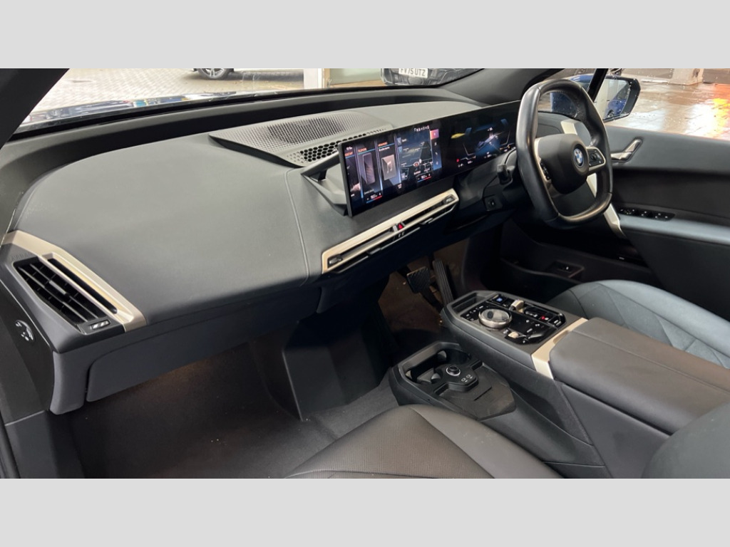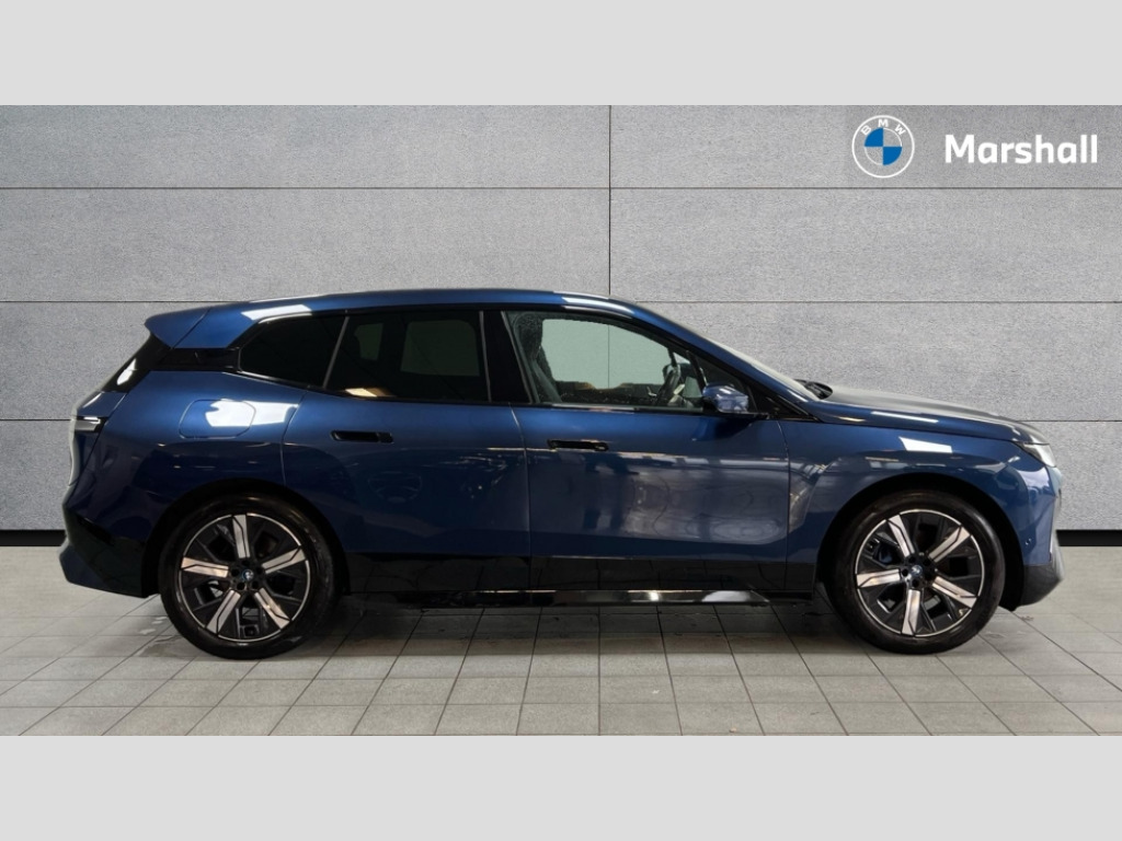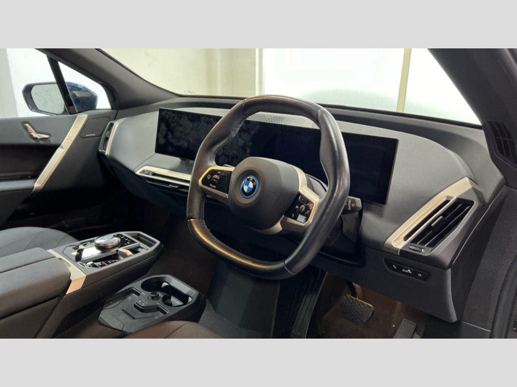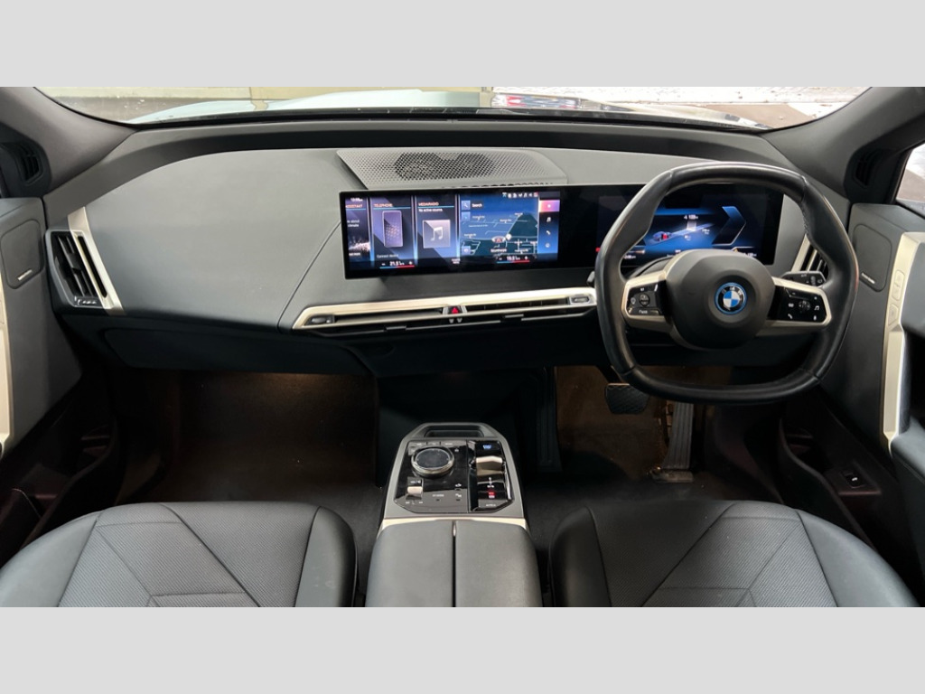BMW Ix 240kW xDrive40 M Sport Edition 76.6kWh 5dr Auto Attentiveness assist, BMW ConnectedDrive online services, BMW Iconic sounds electric, BMW Live cockpit plus with navigation function and BMW maps, BMW Natural interaction, BMW Teleservices, Brake pad wear indicator warning light, Condition based service, Connected eDrive Services, Electric Power Steering (EPS) with Servotronic, Electric tailgate, Engine start/stop button, iDrive controller, Integrated owners handbook, Live Cockpit Professional with head up display including 12.3" instrument cluster and 14.9" central display, Service interval indicator, Speed limiter, AC charging up to 11kW, BMW xDrive system, DC charging up to 150kW, Double wishbone front axle, eDrive exterior sound, Electric drive unit, High voltage 71kWh battery, Mode 2 flexible charger, Mode 3 charging cable, DAB Tuner enables digital radio reception, Harman/Kardon surround sound audio system with 18 speakers and 655W, Personal eSim, USB connections (2 x Type C in cupholder area and 2 x Type C on rear of front seats), Welcome sound, BMW emblem on engine compartment lid and tailgate, Body colour plastic front apron, Body colour roof fin, Charging flap in rear right side panel, Climate comfort windscreen, Daylight driving lights, Dynamic brake lights, Electric integrated door handles flush with the door surface, Follow me home headlight function, Frameless interior mirror, Front and rear bumper system with replaceable deformation elements, Front and rear electric windows, Fuel filler flap - right rear in body colour, Heated windscreen washer jets, High beam assistant, High gloss shadow line, Integrated direction indicators, LED rear lights, Licence plate panel integrated into front bumper and tailgate, M Sport exterior styling, Mirror base in black matt, Model logo - iX on left of tailgate and xDrive model inscription and model designation on right of tailgate, One piece front bumper cover including towing eye cover in body colour, Rain sensor + automatic driving lights control, Rear side wing doors, Rear window wiper, Side frame decorative moulding black high gloss, Sky Lounge panoramic glass sunroof, Sun protection glass, Third brake light featuring LED technology, Towbar, Welcome light carpet, Window cavity cover in black high gloss, 12V - Power sockets with front centre console and luggage compartment, 2 Integrated head restraints in the outer seats, one height-adjustable head restraint for the centre seat, 2 spoke polygonal steering wheel, 3 seat bench in 2nd row, 40:20:40 split folding rear seat backrests, Ambient door pocket lighting in front, Ambient interior lighting, Anthracite headlining, Area lighting in the door trim panel, BMW ID, Door entry lights in the front door trim panel, Driver and front passenger heated seats, Dynamic function of contour lighting - welcome, goodbye, open doors, phone call, Electric adjustable steering column, Fixed luggage compartment cover, Four cupholders (2 front and 2 in rear centre arm rest), Four lashing eyes in luggage compartment, Four zone automatic air conditioning, Front and rear door pockets, Glove box with electric unlocking (button next to glove box lid), Headrests for all seats, Heat comfort system - heated front/rear seats, side armrests, steering wheel, infrared heated front/rear door trims and lower instrument panel, Interior door handle lighting in front and rear, Interior light - Front/rear reading light, glovebox, centre console storage, front footwell, makeup mirro, Luggage compartment and Fire place light, Luggage compartment floor panel with integral storage tray, Multifunction hooks, Rear centre armrest, Seat back with flap pocket, Single front passenger seat, Stationary cooling, Storage tray and compartment with cover in centre console, Sun visors, Wireless charging tray, Connected package professional - iX, Driving assistant professional pack - iX, Expanded exterior mirror pack - iX, Active protection, Anti-lock braking system (ABS), BMW emergency call, Brake energy regeneration, Child locks on rear doors, Child seat ISOFIX attachment rear outer seats, Cornering brake control (CBC), Crash sensor, Driver and front passenger airbags, Driver and passenger side airbags, DSC - Dynamic Stability Control with extended contents, Electromechanical parking brake, Front brake discs with interior ventilation, Head airbags for 1st and 2nd seat row, Hill start assistant, Integrated sport braking system, Passive protection for pedestrians, Rear brake discs with interior ventilation, Recuperation system, Seat occupancy detection for driver and passenger side, Side impact protection, Three point seat belts for all four seats, Two tone horn, Tyre pressure sensor, Warning triangle and first aid kit, Alarm system, Closing system with central locking, Comfort access system with smart opener includes touch free opening and closing of the tailgate, Engine immobiliser, Interior centre lock switch, Keyless engine start, Locking wheel bolts, Two vehicle keys, Diagonal stitching on seats, Tool kit, Tyre repair kit