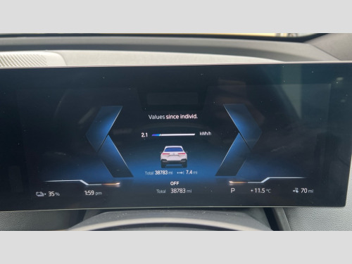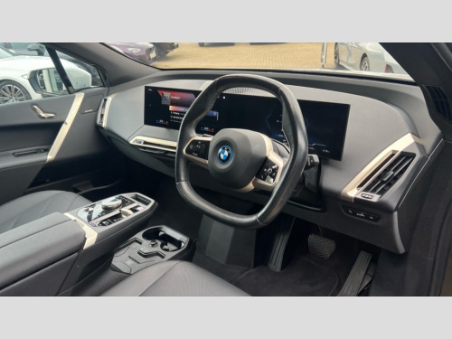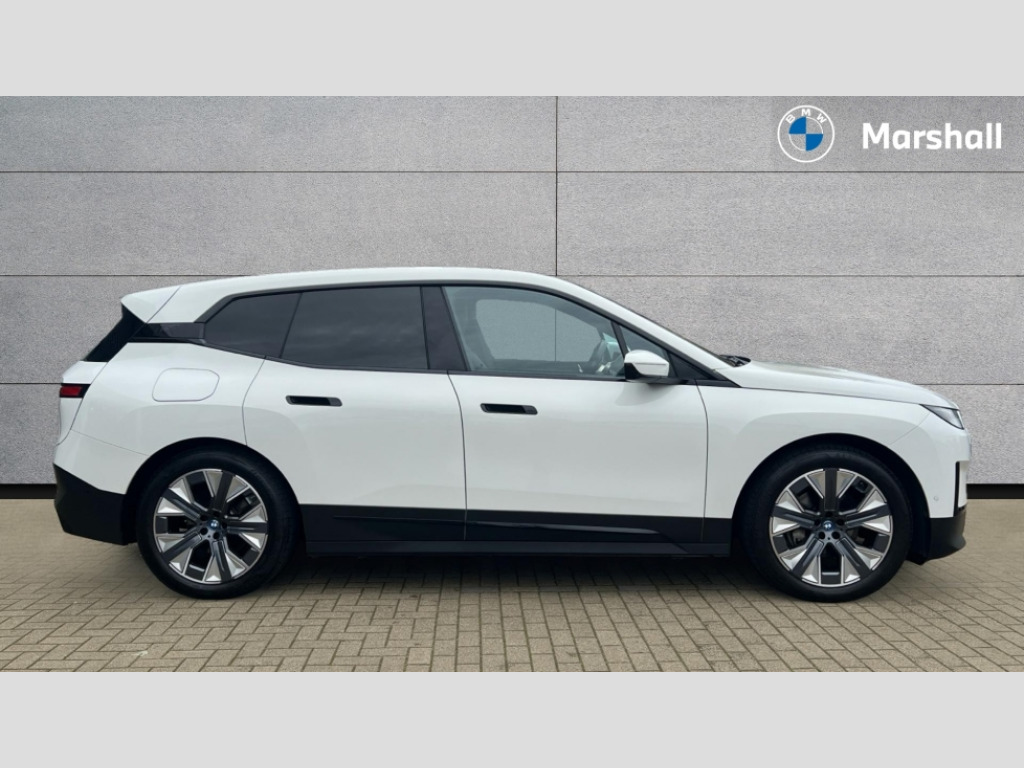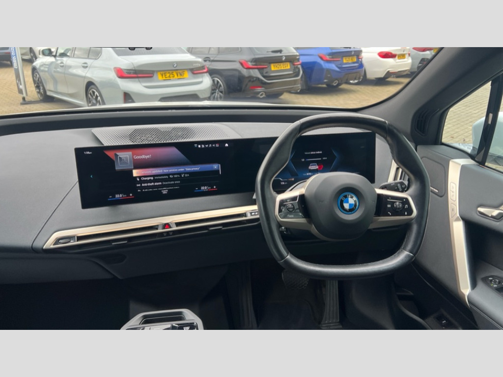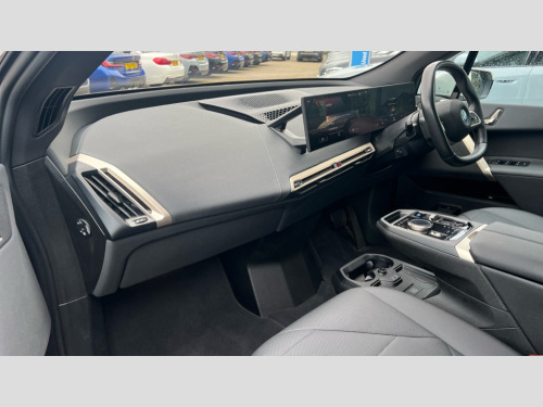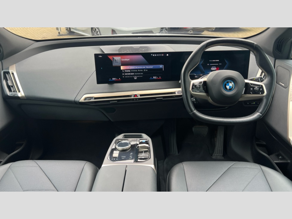 BMW Ix 240kW xDrive40 Sport Edition 76.6kWh 5dr Auto Attentiveness assist, BMW ConnectedDrive online services, BMW Iconic sounds electric, BMW Live cockpit plus with navigation function and BMW maps, BMW Natural interaction, BMW Teleservices, Brake pad wear indicator warning light, Condition based service, Connected eDrive Services, Electric Power Steering (EPS) with Servotronic, Electric tailgate, Engine start/stop button, iDrive controller, Integrated owners handbook, Live Cockpit Professional with head up display including 12.3" instrument cluster and 14.9" central display, Service interval indicator, Speed limiter, AC charging up to 11kW, BMW xDrive system, DC charging up to 150kW, Double wishbone front axle, eDrive exterior sound, Electric drive unit, High voltage 71kWh battery, Mode 2 flexible charger, Mode 3 charging cable, DAB Tuner enables digital radio reception, Harman/Kardon surround sound audio system with 18 speakers and 655W, Personal eSim, USB connections (2 x Type C in cupholder area and 2 x Type C on rear of front seats), Welcome sound, BMW emblem on engine compartment lid and tailgate, Body colour plastic front apron, Body colour roof fin, Charging flap in rear right side panel, Climate comfort windscreen, Daylight driving lights, Dynamic brake lights, Electric integrated door handles flush with the door surface, Follow me home headlight function, Frameless interior mirror, Front and rear bumper system with replaceable deformation elements, Front and rear electric windows, Fuel filler flap - right rear in body colour, Heated windscreen washer jets, High beam assistant, High gloss shadow line, Integrated direction indicators, LED rear lights, Licence plate panel integrated into front bumper and tailgate, Mirror base in black matt, Model logo - iX on left of tailgate and xDrive model inscription and model designation on right of tailgate, One piece front bumper cover including towing eye cover in body colour, Rain sensor + automatic driving lights control, Rear side wing doors, Rear window wiper, Side frame decorative moulding black high gloss, Sky Lounge panoramic glass sunroof, Sun protection glass, Third brake light featuring LED technology, Towbar, Welcome light carpet, Window cavity cover in black high gloss, 12V - Power sockets with front centre console and luggage compartment, 2 Integrated head restraints in the outer seats, one height-adjustable head restraint for the centre seat, 2 spoke polygonal steering wheel, 3 seat bench in 2nd row, 40:20:40 split folding rear seat backrests, Ambient door pocket lighting in front, Ambient interior lighting, Area lighting in the door trim panel, BMW ID, Door entry lights in the front door trim panel, Driver and front passenger heated seats, Dynamic function of contour lighting - welcome, goodbye, open doors, phone call, Electric adjustable steering column, Fixed luggage compartment cover, Four cupholders (2 front and 2 in rear centre arm rest), Four lashing eyes in luggage compartment, Four zone automatic air conditioning, Front and rear door pockets, Glove box with electric unlocking (button next to glove box lid), Headrests for all seats, Heat comfort system - heated front/rear seats, side armrests, steering wheel, infrared heated front/rear door trims and lower instrument panel, Interior door handle lighting in front and rear, Interior light - Front/rear reading light, glovebox, centre console storage, front footwell, makeup mirro, Luggage compartment and Fire place light, Luggage compartment floor panel with integral storage tray, Multifunction hooks, Rear centre armrest, Seat back with flap pocket, Single front passenger seat, Stationary cooling, Storage tray and compartment with cover in centre console, Sun visors, Wireless charging tray, Connected package professional - iX, Driving assistant professional pack - iX, Expanded exterior mirror pack - iX, Active protection, Anti-lock braking system (ABS), BMW emergency call, Brake energy regeneration, Child locks on rear doors, Child seat ISOFIX attachment rear outer seats, Cornering brake control (CBC), Crash sensor, Driver and front passenger airbags, Driver and passenger side airbags, DSC - Dynamic Stability Control with extended contents, Electromechanical parking brake, Front brake discs with interior ventilation, Head airbags for 1st and 2nd seat row, Hill start assistant, Integrated brake system, Passive protection for pedestrians, Rear brake discs with interior ventilation, Recuperation system, Seat occupancy detection for driver and passenger side, Side impact protection, Three point seat belts for all four seats, Two tone horn, Tyre pressure sensor, Warning triangle and first aid kit, Alarm system, Closing system with central locking, Comfort access system with smart opener includes touch free opening and closing of the tailgate, Engine immobiliser, Interior centre lock switch, Keyless engine start, Locking wheel bolts, Two vehicle keys, Diagonal stitching on seats, Tool kit, Tyre repair kit
