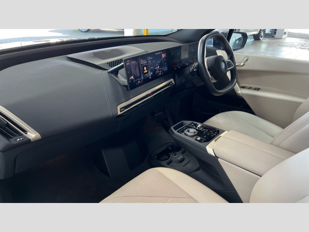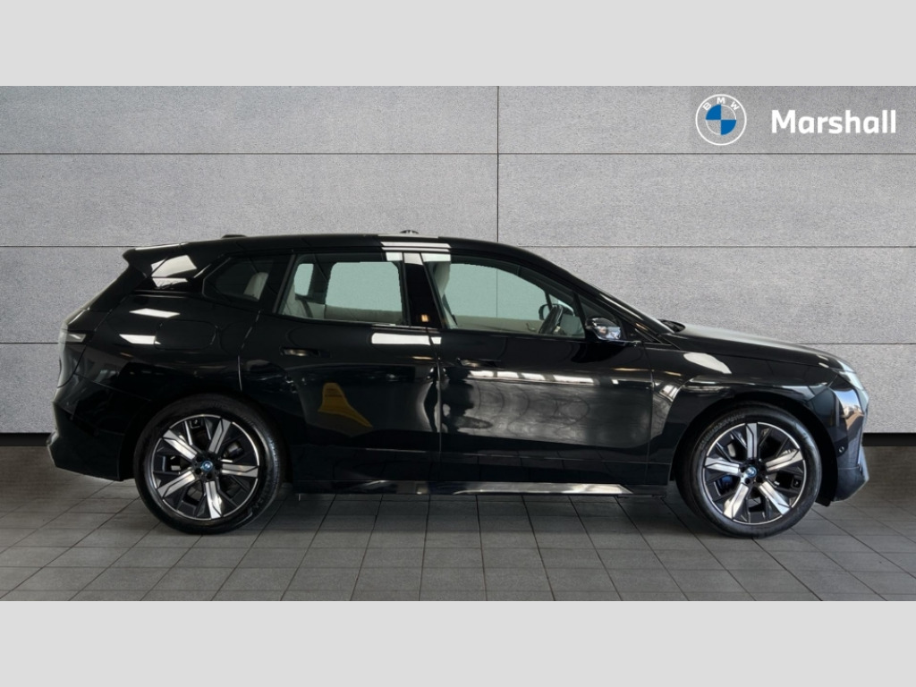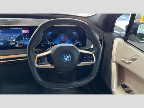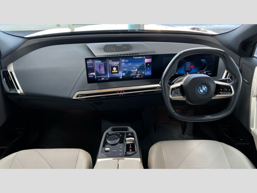 BMW Ix 385kW xDrive50 M Sport 111.5kWh 5dr Auto Attentiveness assist, BMW ConnectedDrive online services, BMW Iconic sounds electric, BMW Natural interaction, BMW Teleservices, Brake pad wear indicator warning light, Condition based service, Engine start/stop button, iDrive controller, Integral active steering, Integrated owners handbook, Live Cockpit Professional with head up display including 12.3" instrument cluster and 14.9" central display, Service interval indicator, Speed limiter, AC charging up to 11kW, BMW xDrive system, DC charging up to 195kW, Double wishbone front axle, eDrive exterior sound, Electric drive unit, Flexible charger, Front and rear air suspension, High voltage 105kWh battery, Mode 3 charging cable, DAB Tuner enables digital radio reception, Harman/Kardon surround sound audio system with 18 speakers and 655W, Personal eSim, USB connections (2 x Type C in cupholder area and 2 x Type C on rear of front seats), Body colour plastic front apron, Body colour roof fin, Charging flap in rear right side panel, Climate comfort windscreen, Daylight driving lights, Dynamic brake lights, Electric integrated door handles flush with the door surface, Follow me home headlight function, Frameless interior mirror, Front and rear electric windows, Fuel filler flap - right rear in body colour, Heated windscreen washer jets, High beam assistant, Integrated direction indicators, LED rear lights, Licence plate panel integrated into front bumper and tailgate, M sport specific bumpers, Mirror base in black matt, Model logo - iX on left of tailgate and xDrive model inscription and model designation on right of tailgate, One piece front bumper cover including towing eye cover in body colour, Rain sensor + automatic driving lights control, Rear side wing doors, Rear window wiper, Side frame decorative moulding black high gloss, Third brake light featuring LED technology, Welcome light carpet, Window cavity cover in black high gloss, 12V - Power sockets with front centre console and luggage compartment, 2 Integrated head restraints in the outer seats, one height-adjustable head restraint for the centre seat, 2 spoke polygonal steering wheel, 3 seat bench in 2nd row, 40:20:40 split folding rear seat backrests, Adjustable steering column, Ambient interior lighting, Anthracite headlining, BMW ID, Driver and front passenger heated seats, Fixed luggage compartment cover, Four cupholders (2 front and 2 in rear centre arm rest), Four lashing eyes in luggage compartment, Four zone automatic air conditioning, Front and rear door pockets, Glove box with electric unlocking (button next to glove box lid), Headrests for all seats, High gloss black shadow line, Interior light - Front/rear reading light, glovebox, centre console storage, front footwell, makeup mirro, Luggage compartment and Fire place light, Luggage compartment floor panel with integral storage tray, Multifunction hooks, Rear centre armrest, Seat back with flap pocket, Single front passenger seat, Split folding rear seats, Stationary cooling, Storage tray and compartment with cover in centre console, Sun visors, Wireless charging tray, Connected package professional - iX, Driving assistant professional pack - iX, Expanded exterior mirror pack - iX, M Sport aerodynamics bodystyling pack - iX, Active protection, Anti-lock braking system (ABS), BMW emergency call, Brake energy regeneration, Child locks on rear doors, Child seat ISOFIX attachment rear outer seats, Crash sensor, Driver and front passenger airbags, Driver and passenger side airbags, DSC - Dynamic Stability Control with extended contents, Electromechanical parking brake, Front brake discs with interior ventilation, Head airbags for 1st and 2nd seat row, Hill start assistant, Integrated sport braking system, Passive protection for pedestrians, Rear brake discs with interior ventilation, Recuperation system, Seat occupancy detection for driver and passenger side, Side impact protection, Three point seat belts for all four seats, Two tone horn, Tyre pressure sensor, Warning triangle and first aid kit, Alarm system, Closing system with central locking, Engine immobiliser, Interior centre lock switch, Keyless engine start, Locking wheel bolts, Two vehicle keys, Diagonal stitching on seats, Tool kit, Tyre repair kit