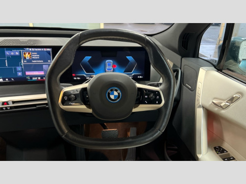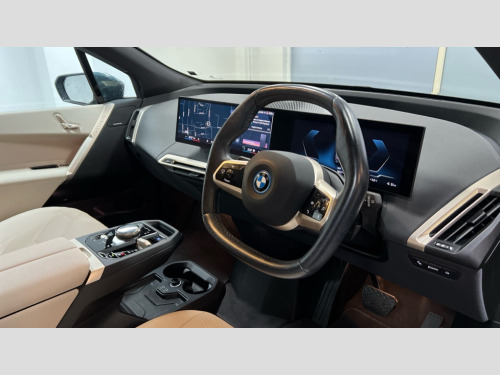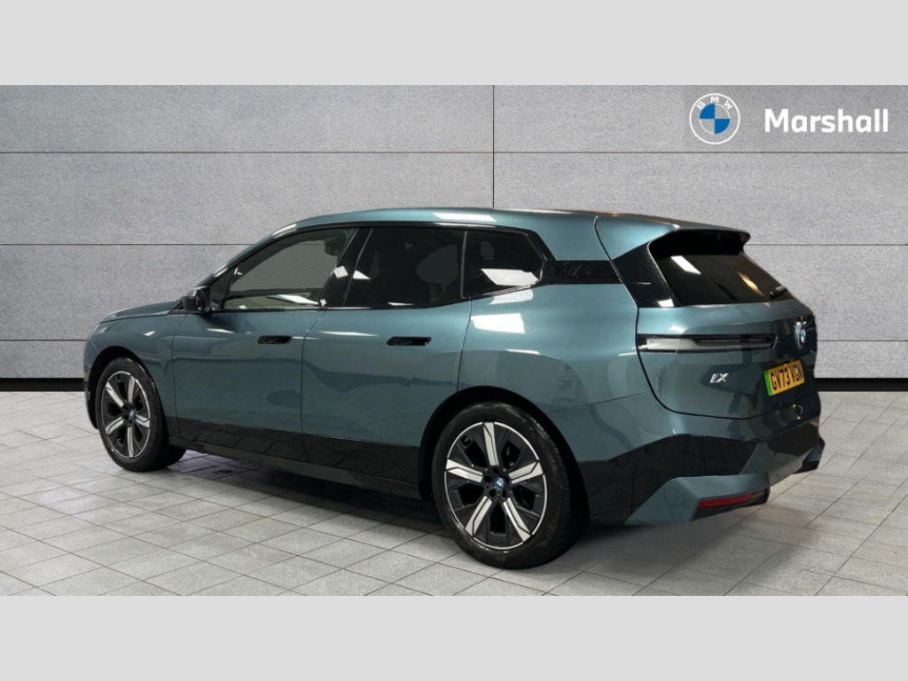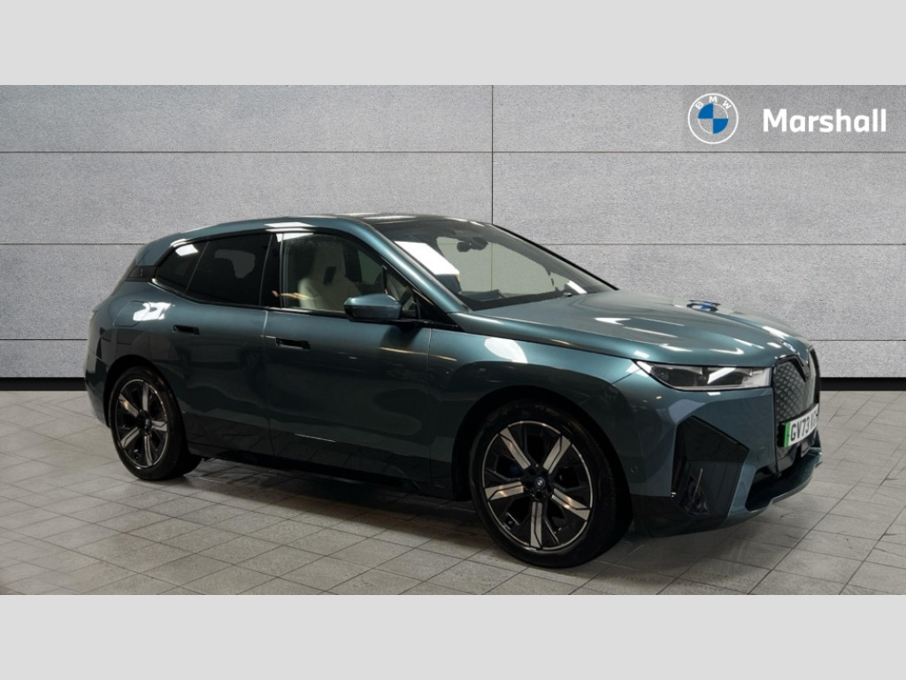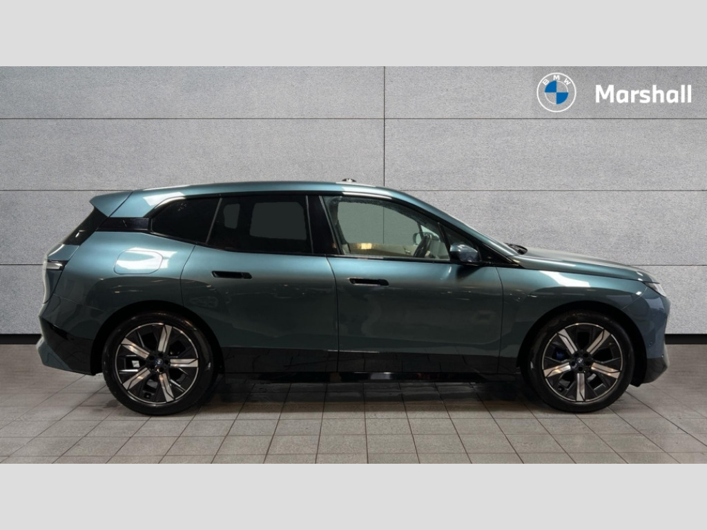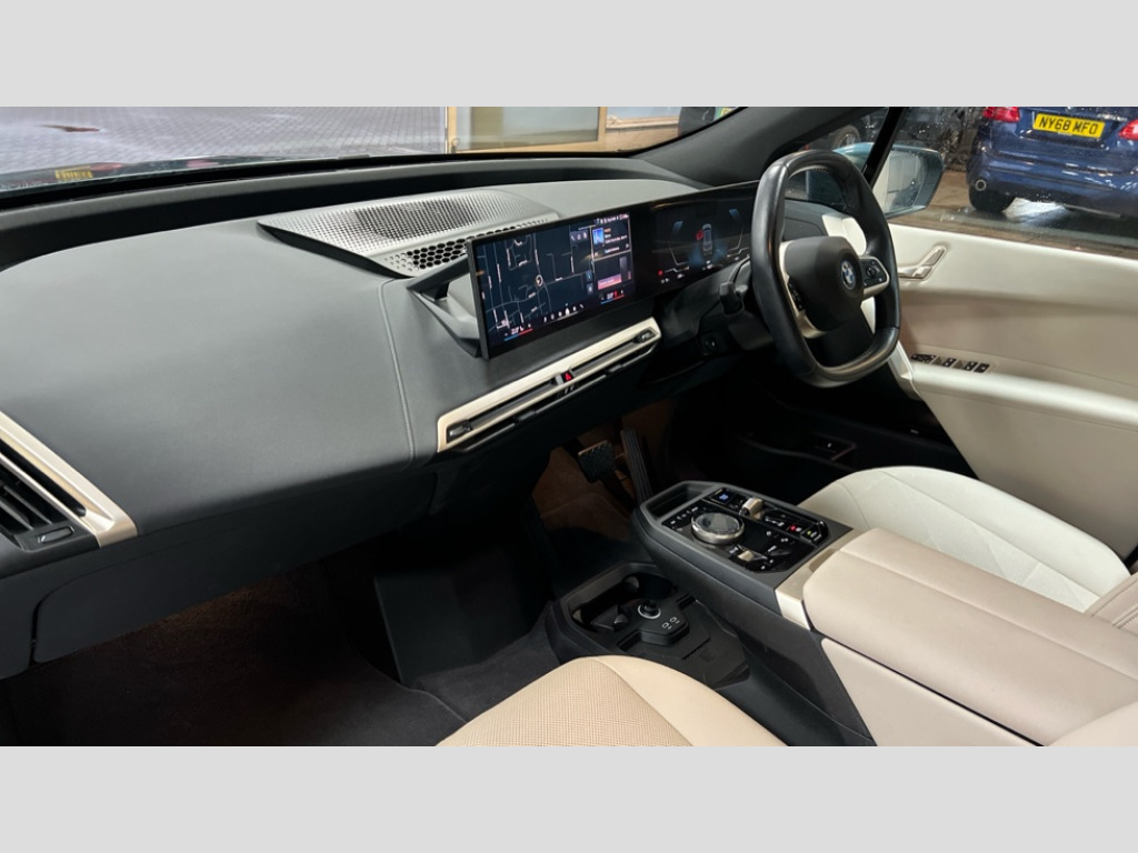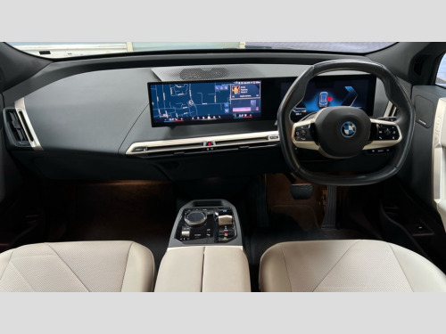 BMW Ix 385kW xDrive50 M Sport 111.5kWh 5dr Auto Attentiveness assist, BMW ConnectedDrive online services, BMW Iconic sounds electric, BMW Live cockpit plus with navigation function and BMW maps, BMW Natural interaction, BMW Teleservices, Brake pad wear indicator warning light, Condition based service, Electric Power Steering (EPS) with Servotronic, Electric tailgate, Engine start/stop button, iDrive controller, Integrated owners handbook, Live Cockpit Professional with head up display including 12.3" instrument cluster and 14.9" central display, Service interval indicator, Speed limiter, AC charging up to 11kW, BMW xDrive system, DC charging up to 195kW, Double wishbone front axle, eDrive exterior sound, Electric drive unit, High voltage 105kWh battery, Mode 3 charging cable, DAB Tuner enables digital radio reception, Harman/Kardon surround sound audio system with 18 speakers and 655W, Personal eSim, USB connections (2 x Type C in cupholder area and 2 x Type C on rear of front seats), Automatic beam throw control, BMW emblem on engine compartment lid and tailgate, Body colour door mirrors, Body colour plastic front apron, Body colour roof fin, Charging flap in rear right side panel, Climate comfort windscreen, Dynamic brake lights, Electric integrated door handles flush with the door surface, Follow me home headlight function, Frameless interior mirror, Front and rear bumper system with replaceable deformation elements, Front and rear electric windows, Fuel filler flap - right rear in body colour, Heated windscreen washer jets, High beam assistant, Integrated direction indicators, LED daytime running lights, LED licence plate lights, LED rear lights, Licence plate panel integrated into front bumper and tailgate, M Sport exterior styling, M sport specific bumpers, Mirror base in black matt, Model logo - iX on left of tailgate and xDrive model inscription and model designation on right of tailgate, One piece front bumper cover including towing eye cover in body colour, Rain sensor + automatic driving lights control, Rear side wing doors, Rear window wiper, Side frame decorative moulding black high gloss, Sky Lounge panoramic glass sunroof, Sun protection glass, Third brake light featuring LED technology, Welcome light carpet, Window cavity cover in black high gloss, 12V - Power sockets with front centre console and luggage compartment, 2 Integrated head restraints in the outer seats, one height-adjustable head restraint for the centre seat, 2 spoke polygonal steering wheel, 3 seat bench in 2nd row, 40:20:40 split folding rear seat backrests, Ambient door pocket lighting in front, Ambient interior lighting, Anthracite headlining, Area lighting in the door trim panel, BMW ID, Door entry lights in the front door trim panel, Dynamic function of contour lighting - welcome, goodbye, open doors, phone call, Electric adjustable steering column, Fixed luggage compartment cover, Four cupholders (2 front and 2 in rear centre arm rest), Four lashing eyes in luggage compartment, Four zone automatic air conditioning, Front and rear door pockets, Glove box with electric unlocking (button next to glove box lid), Headrests for all seats, Interior door handle lighting in front and rear, Interior light - Front/rear reading light, glovebox, centre console storage, front footwell, makeup mirro, Luggage compartment and Fire place light, Luggage compartment floor panel with integral storage tray, Multifunction hooks, Rear centre armrest, Seat back with flap pocket, Single front passenger seat, Split folding rear seats, Stationary cooling, Storage tray and compartment with cover in centre console, Sun visors, Wireless charging tray, Connected package professional - iX, Driving assistant professional pack - iX, Expanded exterior mirror pack - iX, Active protection, Anti-lock braking system (ABS), BMW emergency call, Brake energy regeneration, Child locks on rear doors, Child seat ISOFIX attachment rear outer seats, Cornering brake control (CBC), Crash sensor, Driver and front passenger airbags, Driver and passenger side airbags, DSC - Dynamic Stability Control with extended contents, Electromechanical parking brake, Front brake discs with interior ventilation, Head airbags for 1st and 2nd seat row, Hill start assistant, Integrated sport braking system, Passive protection for pedestrians, Rear brake discs with interior ventilation, Recuperation system, Seat occupancy detection for driver and passenger side, Side impact protection, Three point seat belts for all four seats, Two tone horn, Tyre pressure sensor, Warning triangle and first aid kit, Alarm system, Closing system with central locking, Engine immobiliser, Interior centre lock switch, Keyless engine start, Locking wheel bolts, Two vehicle keys, Diagonal stitching on seats, Tool kit, Tyre repair kit