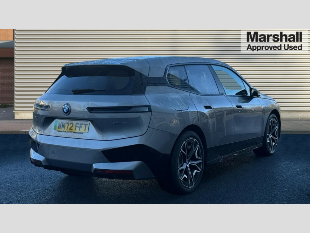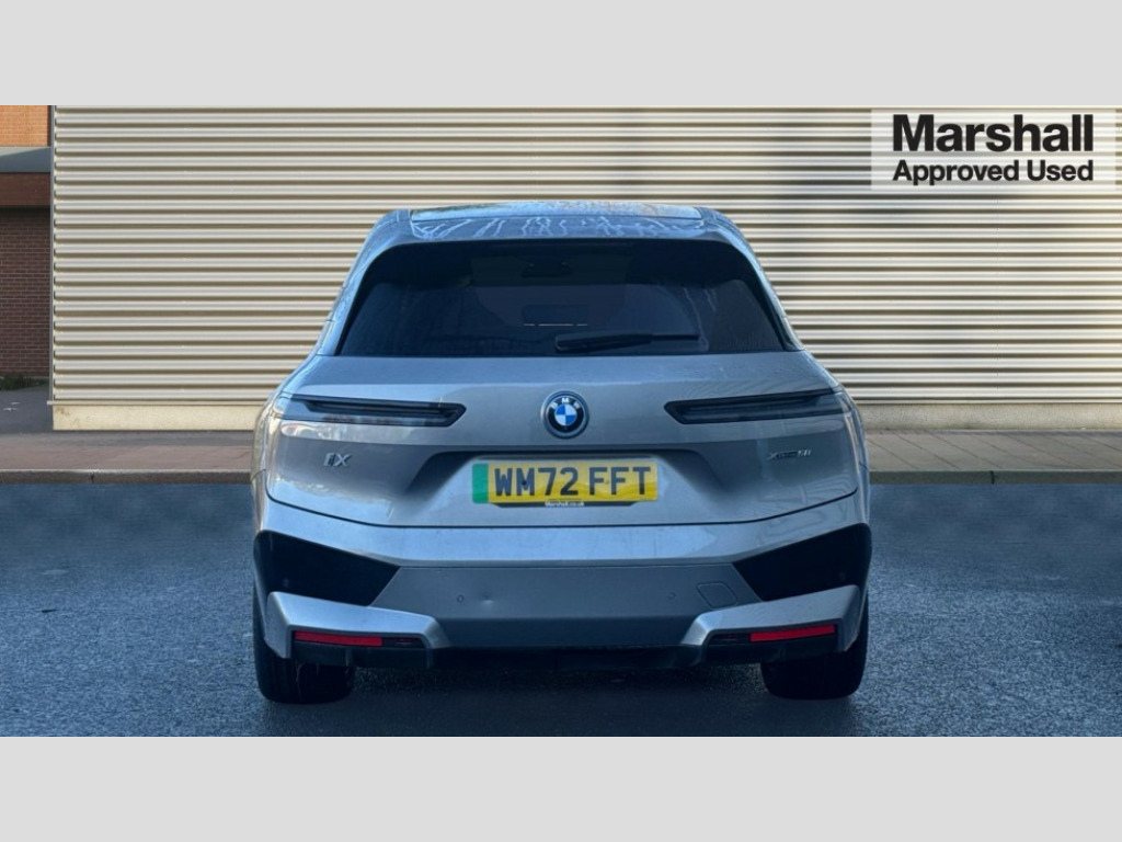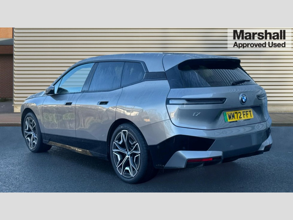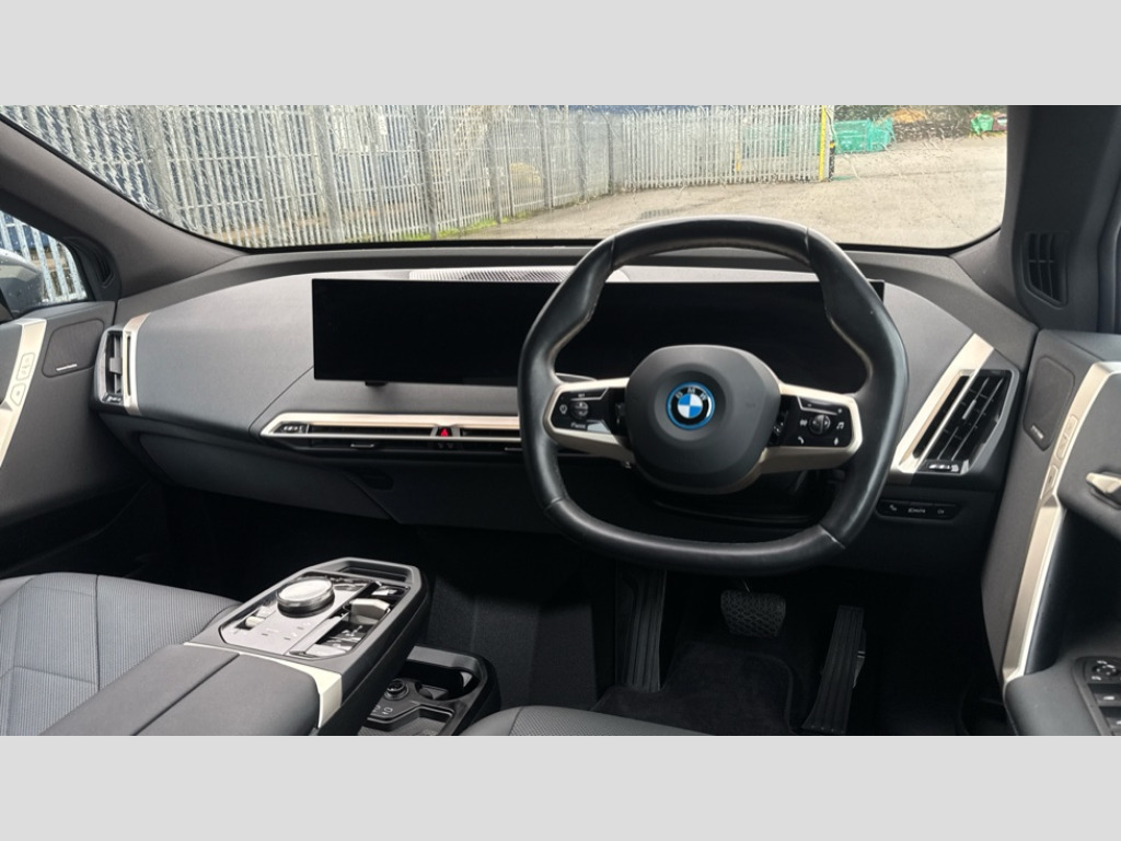 BMW Ix 385kW xDrive50 M Sport Edition 111.5kWh 5dr Auto Attentiveness assist, BMW ConnectedDrive online services, BMW Iconic sounds electric, BMW Live cockpit plus with navigation function and BMW maps, BMW Natural interaction, BMW Teleservices, Brake pad wear indicator warning light, Condition based service, Connected eDrive Services, Electric Power Steering (EPS) with Servotronic, Electric tailgate, Engine start/stop button, iDrive controller, Integrated owners handbook, Live Cockpit Professional with head up display including 12.3" instrument cluster and 14.9" central display, Service interval indicator, Speed limiter, AC charging up to 11kW, BMW xDrive system, DC charging up to 195kW, Double wishbone front axle, eDrive exterior sound, Electric drive unit, High voltage 105kWh battery, Mode 2 flexible charger, Mode 3 charging cable, DAB Tuner enables digital radio reception, Harman/Kardon surround sound audio system with 18 speakers and 655W, Personal eSim, USB connections (2 x Type C in cupholder area and 2 x Type C on rear of front seats), Welcome sound, Automatic beam throw control, BMW emblem on engine compartment lid and tailgate, Body colour door mirrors, Body colour plastic front apron, Body colour roof fin, Charging flap in rear right side panel, Climate comfort windscreen, Dynamic brake lights, Electric integrated door handles flush with the door surface, Follow me home headlight function, Frameless interior mirror, Front and rear bumper system with replaceable deformation elements, Front and rear electric windows, Fuel filler flap - right rear in body colour, Heated windscreen washer jets, High beam assistant, High gloss black shadow line exterior trim, Integrated direction indicators, LED daytime running lights, LED licence plate lights, LED rear lights, Licence plate panel integrated into front bumper and tailgate, M Sport exterior styling, Mirror base in black matt, Model logo - iX on left of tailgate and xDrive model inscription and model designation on right of tailgate, One piece front bumper cover including towing eye cover in body colour, Rain sensor + automatic driving lights control, Rear side wing doors, Rear window wiper, Side frame decorative moulding black high gloss, Sky Lounge panoramic glass sunroof, Sun protection glass, Third brake light featuring LED technology, Towbar, Welcome light carpet, Window cavity cover in black high gloss, 12V - Power sockets with front centre console and luggage compartment, 2 Integrated head restraints in the outer seats, one height-adjustable head restraint for the centre seat, 2 spoke polygonal steering wheel, 3 seat bench in 2nd row, 40:20:40 split folding rear seat backrests, Ambient door pocket lighting in front, Ambient interior lighting, Anthracite headlining, Area lighting in the door trim panel, BMW ID, Door entry lights in the front door trim panel, Driver and front passenger heated seats, Dynamic function of contour lighting - welcome, goodbye, open doors, phone call, Electric adjustable steering column, Fixed luggage compartment cover, Four cupholders (2 front and 2 in rear centre arm rest), Four lashing eyes in luggage compartment, Four zone automatic air conditioning, Front and rear door pockets, Glove box with electric unlocking (button next to glove box lid), Headrests for all seats, Heat comfort system - heated front/rear seats, side armrests, steering wheel, infrared heated front/rear door trims and lower instrument panel, Interior door handle lighting in front and rear, Interior light - Front/rear reading light, glovebox, centre console storage, front footwell, makeup mirro, Luggage compartment and Fire place light, Luggage compartment floor panel with integral storage tray, Multifunction hooks, Rear centre armrest, Seat back with flap pocket, Single front passenger seat, Soft close doors, Stationary cooling, Storage tray and compartment with cover in centre console, Sun visors, Wireless charging tray, Connected package professional - iX, Driving assistant professional pack - iX, Expanded exterior mirror pack - iX, Active protection, Anti-lock braking system (ABS), BMW emergency call, Brake energy regeneration, Child locks on rear doors, Child seat ISOFIX attachment rear outer seats, Cornering brake control (CBC), Crash sensor, Driver and front passenger airbags, Driver and passenger side airbags, DSC - Dynamic Stability Control with extended contents, Electromechanical parking brake, Front brake discs with interior ventilation, Head airbags for 1st and 2nd seat row, Hill start assistant, Integrated sport braking system, Passive protection for pedestrians, Rear brake discs with interior ventilation, Recuperation system, Seat occupancy detection for driver and passenger side, Side impact protection, Three point seat belts for all four seats, Two tone horn, Tyre pressure sensor, Warning triangle and first aid kit, Alarm system, Closing system with central locking, Comfort access system with includes touch free opening and closing of the tailgate, Engine immobiliser, Interior centre lock switch, Keyless engine start, Locking wheel bolts, Two vehicle keys, Diagonal stitching on seats, Tool kit, Tyre repair kit