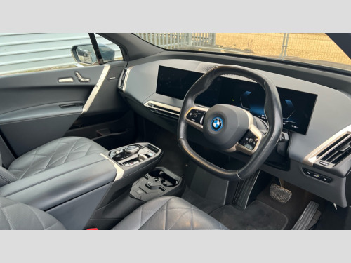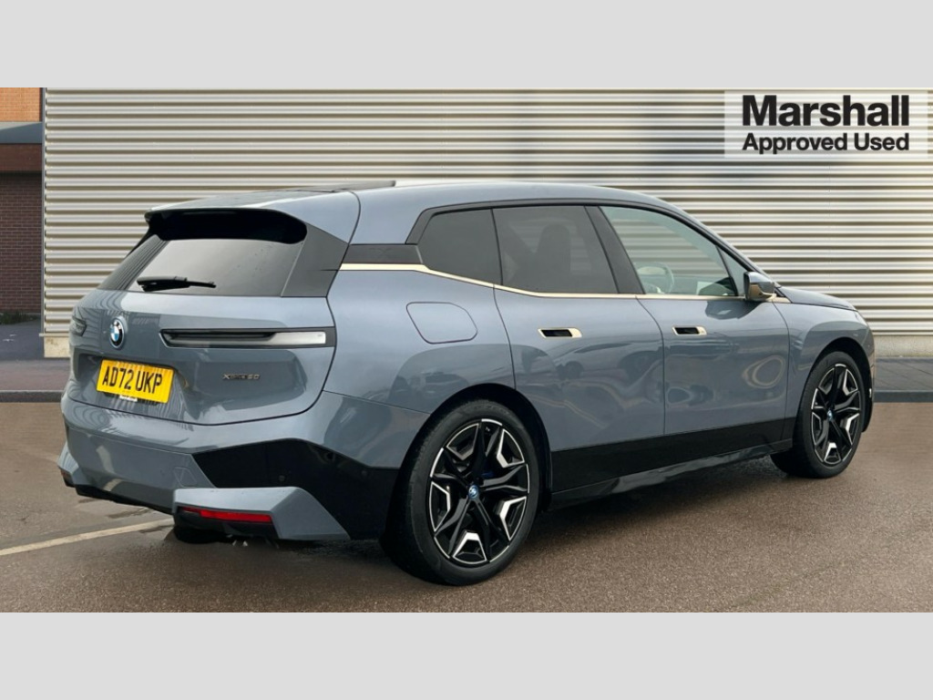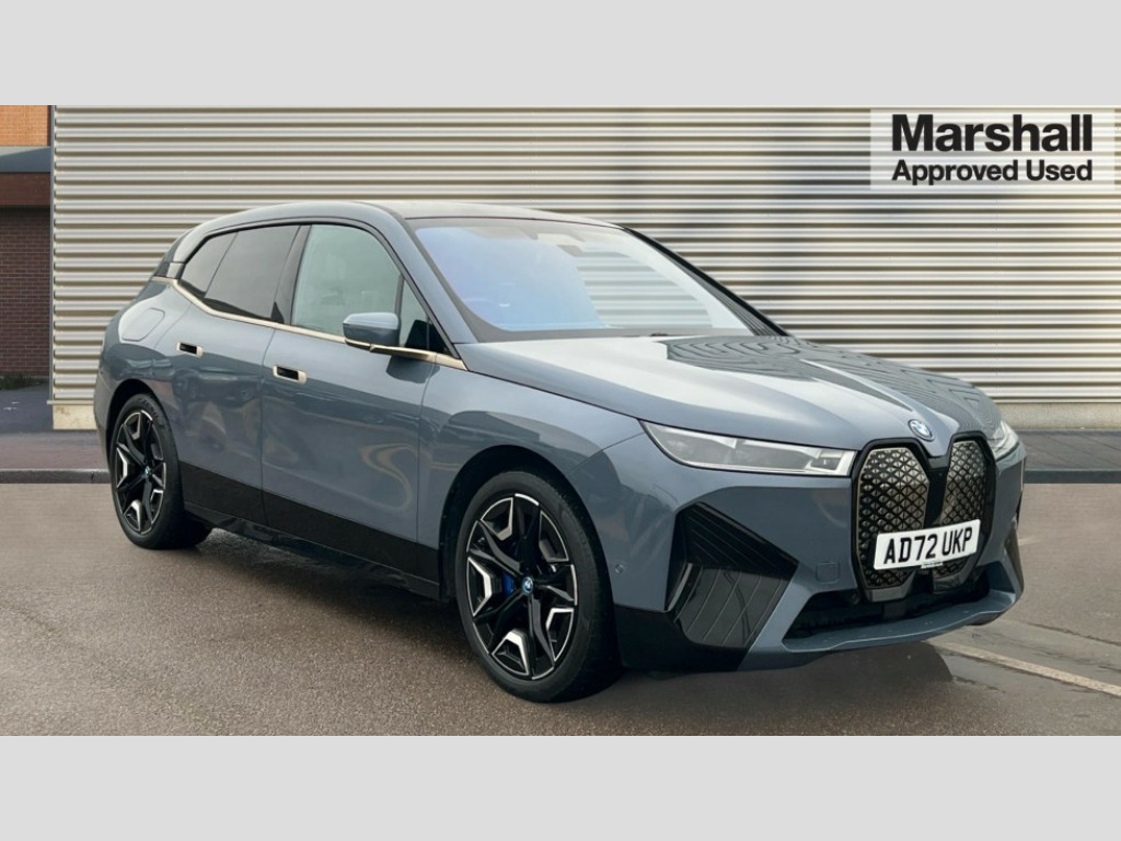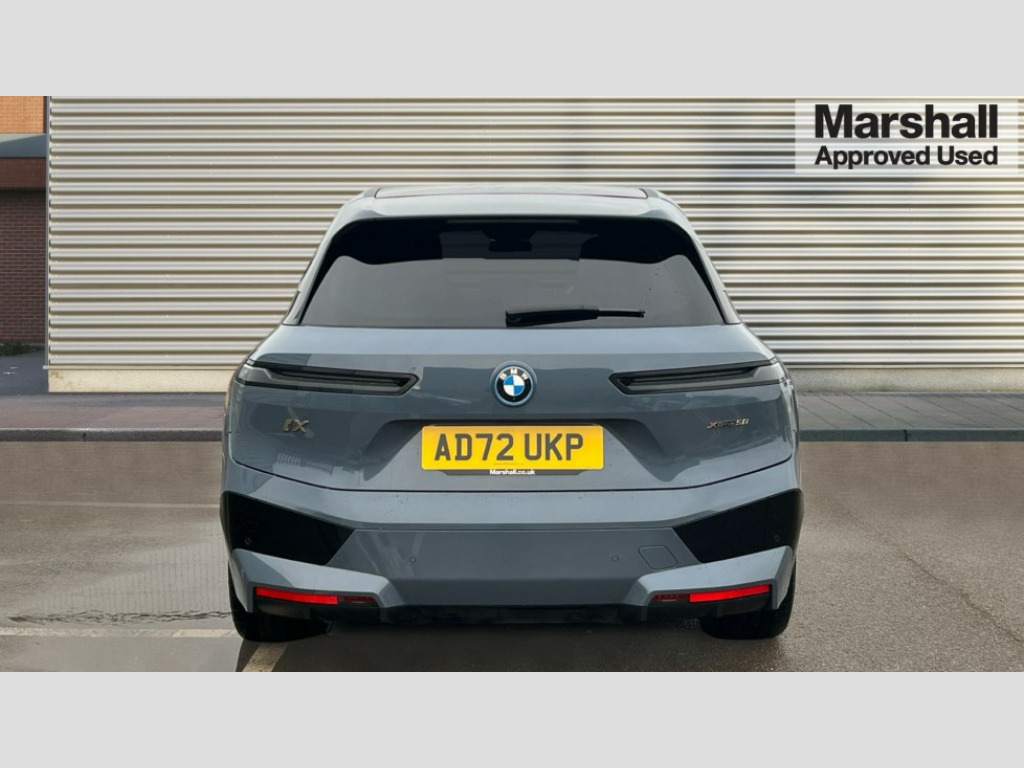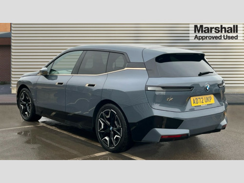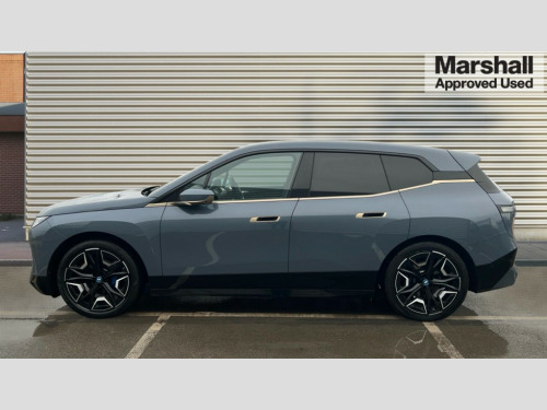 BMW Ix 385kW xDrive50 M Sport Edition 111.5kWh 5dr Auto Attentiveness assist, BMW ConnectedDrive online services, BMW Iconic sounds electric, BMW Live cockpit plus with navigation function and BMW maps, BMW Natural interaction, BMW Teleservices, Brake pad wear indicator warning light, Condition based service, Connected eDrive Services, Electric Power Steering (EPS) with Servotronic, Electric tailgate, Engine start/stop button, iDrive controller, Integrated owners handbook, Live Cockpit Professional with head up display including 12.3" instrument cluster and 14.9" central display, Service interval indicator, Speed limiter, AC charging up to 11kW, BMW xDrive system, DC charging up to 195kW, Double wishbone front axle, eDrive exterior sound, Electric drive unit, High voltage 105kWh battery, Mode 2 flexible charger, Mode 3 charging cable, DAB Tuner enables digital radio reception, Harman/Kardon surround sound audio system with 18 speakers and 655W, Personal eSim, USB connections (2 x Type C in cupholder area and 2 x Type C on rear of front seats), Welcome sound, Automatic beam throw control, BMW emblem on engine compartment lid and tailgate, Body colour door mirrors, Body colour plastic front apron, Body colour roof fin, Charging flap in rear right side panel, Climate comfort windscreen, Dynamic brake lights, Electric integrated door handles flush with the door surface, Follow me home headlight function, Frameless interior mirror, Front and rear bumper system with replaceable deformation elements, Front and rear electric windows, Fuel filler flap - right rear in body colour, Heated windscreen washer jets, High beam assistant, High gloss black shadow line exterior trim, Integrated direction indicators, LED daytime running lights, LED licence plate lights, LED rear lights, Licence plate panel integrated into front bumper and tailgate, M Sport exterior styling, Mirror base in black matt, Model logo - iX on left of tailgate and xDrive model inscription and model designation on right of tailgate, One piece front bumper cover including towing eye cover in body colour, Rain sensor + automatic driving lights control, Rear side wing doors, Rear window wiper, Side frame decorative moulding black high gloss, Sky Lounge panoramic glass sunroof, Sun protection glass, Third brake light featuring LED technology, Towbar, Welcome light carpet, Window cavity cover in black high gloss, 12V - Power sockets with front centre console and luggage compartment, 2 Integrated head restraints in the outer seats, one height-adjustable head restraint for the centre seat, 2 spoke polygonal steering wheel, 3 seat bench in 2nd row, 40:20:40 split folding rear seat backrests, Ambient door pocket lighting in front, Ambient interior lighting, Anthracite headlining, Area lighting in the door trim panel, BMW ID, Door entry lights in the front door trim panel, Driver and front passenger heated seats, Dynamic function of contour lighting - welcome, goodbye, open doors, phone call, Electric adjustable steering column, Fixed luggage compartment cover, Four cupholders (2 front and 2 in rear centre arm rest), Four lashing eyes in luggage compartment, Four zone automatic air conditioning, Front and rear door pockets, Glove box with electric unlocking (button next to glove box lid), Headrests for all seats, Heat comfort system - heated front/rear seats, side armrests, steering wheel, infrared heated front/rear door trims and lower instrument panel, Interior door handle lighting in front and rear, Interior light - Front/rear reading light, glovebox, centre console storage, front footwell, makeup mirro, Luggage compartment and Fire place light, Luggage compartment floor panel with integral storage tray, Multifunction hooks, Rear centre armrest, Seat back with flap pocket, Single front passenger seat, Soft close doors, Stationary cooling, Storage tray and compartment with cover in centre console, Sun visors, Wireless charging tray, Connected package professional - iX, Driving assistant professional pack - iX, Expanded exterior mirror pack - iX, Active protection, Anti-lock braking system (ABS), BMW emergency call, Brake energy regeneration, Child locks on rear doors, Child seat ISOFIX attachment rear outer seats, Cornering brake control (CBC), Crash sensor, Driver and front passenger airbags, Driver and passenger side airbags, DSC - Dynamic Stability Control with extended contents, Electromechanical parking brake, Front brake discs with interior ventilation, Head airbags for 1st and 2nd seat row, Hill start assistant, Integrated sport braking system, Passive protection for pedestrians, Rear brake discs with interior ventilation, Recuperation system, Seat occupancy detection for driver and passenger side, Side impact protection, Three point seat belts for all four seats, Two tone horn, Tyre pressure sensor, Warning triangle and first aid kit, Alarm system, Closing system with central locking, Comfort access system with includes touch free opening and closing of the tailgate, Engine immobiliser, Interior centre lock switch, Keyless engine start, Locking wheel bolts, Two vehicle keys, Diagonal stitching on seats, Tool kit, Tyre repair kit