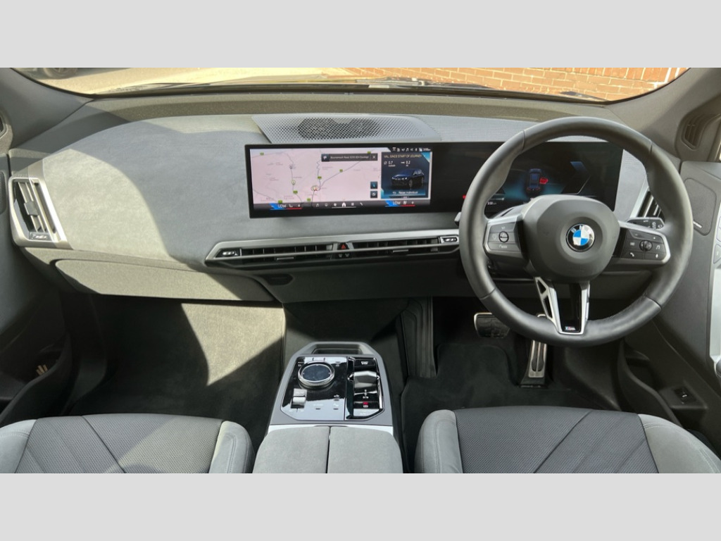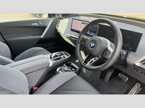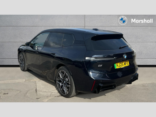 BMW Ix 400kW xDrive60 M Sport 112kWh 5dr Auto Attentiveness assist, BMW ConnectedDrive online services, BMW Iconic sounds electric, BMW Live cockpit plus with navigation function and BMW maps, BMW Natural interaction, BMW Teleservices, Brake pad wear indicator warning light, Condition based service, Drive off assistant, Electric Power Steering (EPS) with Servotronic, Electric tailgate, Engine start/stop button, Great Britian/Ireland verison, iDrive controller, Integrated owners handbook, Language version English, Live Cockpit Professional with head up display including 12.3" instrument cluster and 14.9" central display, On board documentation English, Parking assistant with ultrasound based assistance system, reversing assistant, lateral parking aid and rear view camera, Service interval indicator, Speed limiter, AC charging up to 11kW, BMW xDrive system, DC charging up to 150kW, Double wishbone front axle, eDrive exterior sound, Electric drive unit, High voltage 71kWh battery, Mode 3 charging cable, DAB Tuner enables digital radio reception, Personal eSim, USB connections (2 x Type C in cupholder area and 2 x Type C on rear of front seats), Adaptive LED headlights with high beam assist, Automatic beam throw control, BMW emblem on engine compartment lid and tailgate, Body colour door mirrors, Body colour plastic front apron, Body colour roof fin, Body coloured bumpers, Charging flap in rear right side panel, Dynamic brake lights, Electric integrated door handles flush with the door surface, Fading support, Follow me home headlight function, Frameless interior mirror, Front and rear bumper system with replaceable deformation elements, Front and rear electric windows, Fuel filler flap - right rear in body colour, Heated windscreen washer jets, Integrated direction indicators, LED daytime running lights, LED licence plate lights, LED rear lights, Licence plate panel integrated into front bumper and tailgate, M Sport exterior styling, M sport specific bumpers, Mirror base in black matt, Model logo - iX on left of tailgate and xDrive model inscription and model designation on right of tailgate, One piece front bumper cover including towing eye cover in body colour, Rain sensor + automatic driving lights control, Rear side wing doors, Rear window wiper, Side frame decorative moulding black high gloss, Third brake light featuring LED technology, Trailer stabilisation logic, Welcome light carpet, Window cavity cover in black high gloss, 12V - Power sockets with front centre console and luggage compartment, 2 Integrated head restraints in the outer seats, one height-adjustable head restraint for the centre seat, 3 seat bench in 2nd row, 3 spoke M sport leather multifunction steering wheel, 40:20:40 split folding rear seat backrests, Ambient door pocket lighting in front, Ambient interior lighting, Anthracite headlining, Area lighting in the door trim panel, BMW ID, Door entry lights in the front door trim panel, Dynamic function of contour lighting - welcome, goodbye, open doors, phone call, Electric adjustable steering column, Fixed luggage compartment cover, Four cupholders (2 front and 2 in rear centre arm rest), Four lashing eyes in luggage compartment, Front and rear door pockets, Glove box with electric unlocking (button next to glove box lid), Headrests for all seats, Interior door handle lighting in front and rear, Interior light - Front/rear reading light, glovebox, centre console storage, front footwell, makeup mirro, Luggage compartment and Fire place light, Luggage compartment floor panel with integral storage tray, Luggage compartment separating nets, M Interior accents in dark silver, Mobile phone tray in the front centre console in good view of the driver, Multifunction hooks, Rear centre armrest, Seat back with flap pocket, Single front passenger seat, Split folding rear seats, Stationary cooling, Storage space underneath the floor insert, Storage tray and compartment with cover in centre console, Sun visors, Velour floor mats, Wireless charging tray, Connected package professional - iX, Driving assistant professional pack - iX, Expanded exterior mirror pack - iX, Active protection, Anti-lock braking system (ABS), Automatic Stability Control (ASC), BMW emergency call, Brake drying, Brake energy regeneration, Child locks on rear doors, Child seat ISOFIX attachment rear outer seats, Cornering brake control (CBC), Crash sensor, Driver and front passenger airbags, Driver and passenger side airbags, DSC - Dynamic Stability Control with extended contents, Dynamic brake control, Dynamic Traction Control - DTC, Electromechanical parking brake, Electronic differential lock control (EDLC), Front brake discs with interior ventilation, Head airbags for 1st and 2nd seat row, Hill descent control, Hill start assistant, Integrated brake system, Integrated sport braking system, Passive protection for pedestrians, Rear brake discs with interior ventilation, Recuperation system, Seat occupancy detection for driver and passenger side, Side impact protection, Three point seat belts for all four seats, Two tone horn, Tyre pressure sensor, Warning triangle and first aid kit, Alarm system, Closing system with central locking, Comfort access system with BMW digital key plus, Engine immobiliser, Interior camera, Interior centre lock switch, Keyless engine start, Locking wheel bolts, Diagonal stitching on seats, Tool kit, Tyre repair kit