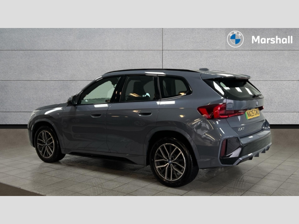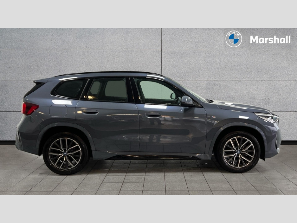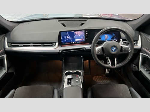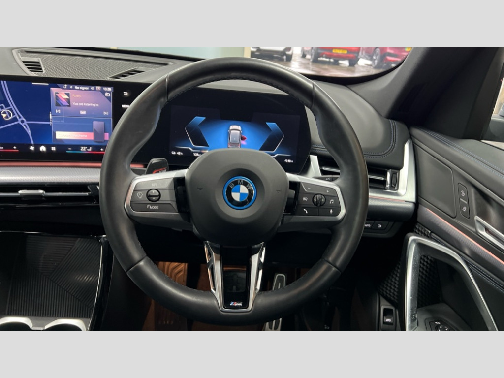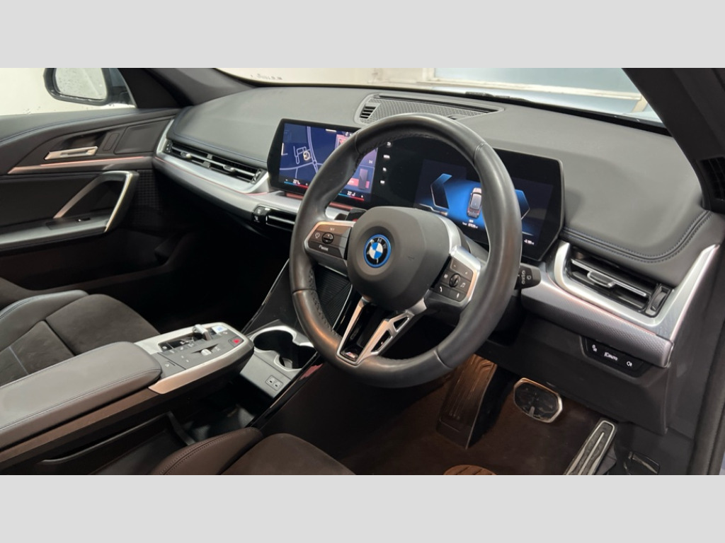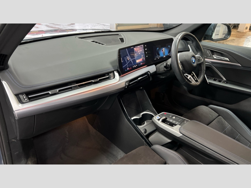 BMW Ix1 150kW eDrive20 M Sport 65kWh 5dr Auto Attentiveness assist, BMW Live Cockpit Plus with 10.25" instrument cluster and 10.7" display, BMW Online services, BMW Operating system 9 with BMW Maps, real-time traffic information, in-car experiences, remote services and smartphone integration, BMW Teleservices, Brake pad wear indicator, Condition based service, Connected eDrive Services, Drive off assistant, Electrically opening/closing tailgate with opening/closing with remote control and contactless opening and closing, iDrive controller, Language version English, My Modes, Parking Assistant with Reversing Assistant, active PDC, Lateral Parking Aid, Rear View Camera and Park Distance Control, Personal Profile - automatic lock when driving away selectable, Servotronic PAS, Tyre puncture warning system, Widescreen display, eDrive exterior sound, EU6 emissions management, Fast charging cable professional mode 3 for public charging, M Adaptive suspension, Performance Control, BMW Personal eSim, DAB Digital radio, Badge on engine compartment lid and tailgate, Body colour door mirrors, Dynamic brake lights, Electric adjustable heated door mirrors, Electric windows - front and rear, with open/close fingertip control, anti-trap facility and comfort closing, Folding door handles integrated flush with surface, Follow me home headlights, Front and rear bumper panel with M specific design, in body colour with inserts in black high gloss, Front door exit lights, Heated rear window, High gloss shadowline, Invisible exhaust tailpipe, Key with M identification, LED 3rd brake light integrated in rear spoiler, LED daytime running lights, LED number plate light, M identification on the sides, M roof rails high gloss shadow line, M specific radiator grille in satinated aluminium, Matt black roof strips, Model inscription on right tailgate, Rain sensor including auto headlights activation, Rear cover painted in BMW I blue, Rear side wing doors, Rear wiper, Sill cover in body colour, Trailer stabilisation logic, Window washer nozzle for rear view camera, Windscreen wipers front with heated washer nozzles, 12V - Power sockets with front centre console and luggage compartment, 2 bag hooks in luggage compartment, 2 cup holders in front, 2 x USB Type C ports for charging in front centre console + 2 x USB Type C ports for charging in rear centre console, 3 rear headrests, 3 seat bench in 2nd row, 3 upper retaining strap clips integrated into rear panels of seat backrests, 4 grab handles, 40:20:40 split folding rear seats, Ambient interior lighting, Anthracite headlining, Anthracite Velour front and rear floormats, Bottle trays in all doors, Child seat ISOFIX attachment for two outer rear seats and front passenger seat with anchorage points, Clothes hook rear, Driver and front passenger heated seats, Dual zone automatic air conditioning, Front and rear door pockets, Front and rear footwell lighting, Front centre console storage compartment, Front/rear adjustable head restraints, Glove compartment, Interior door handle recess light on all doors, Light on right in luggage compartment, M sport leather steering wheel, Manual steering column height and depth adjustment, Middle centre console storage compartment, One piece parcel shelf opens together with tailgate and removable, Rear armrest in door trim panel, Single front passenger seat, Sport leather multifunction steering wheel with thumbrests and operation of instrument display, audio, telephone and driver assistance, Storage compartment net in left side trim panel, Storage compartment with folding cover under centre console armrest cushion, Storage tray in right side trim panel, Tilt adjustment incl. cargo function of 2nd row of seats, Vanity mirror lights, ABS/EBD, Automatic hold function, Automatic Stability Control (ASC), BMW emergency call, Braking readiness, Cornering brake control (CBC), Crash Sensor - activates hazard/interior lighting + unlocks doors, Driver/Front Passenger airbags, Driver/front passenger side airbags, Dry braking, Dynamic brake control, Dynamic stability control + (DSC+), Electromechanical parking brake, Energy recovery system, First aid kit, Front and rear brake discs, Front and rear head airbags, Front passenger airbag deactivation, Integrated brake system, PC iBrake PostCrash approach control warning with light braking function, Rear door child safety locks, Three point seat belts in all seats, Tyre pressure monitor, Warning triangle, Alarm system with tilt sensor, monitoring doors, bonnet interior and tailgate, Closing system with central locking, Locking wheel bolts, Luxury instrument panel, Tyre repair kit plus