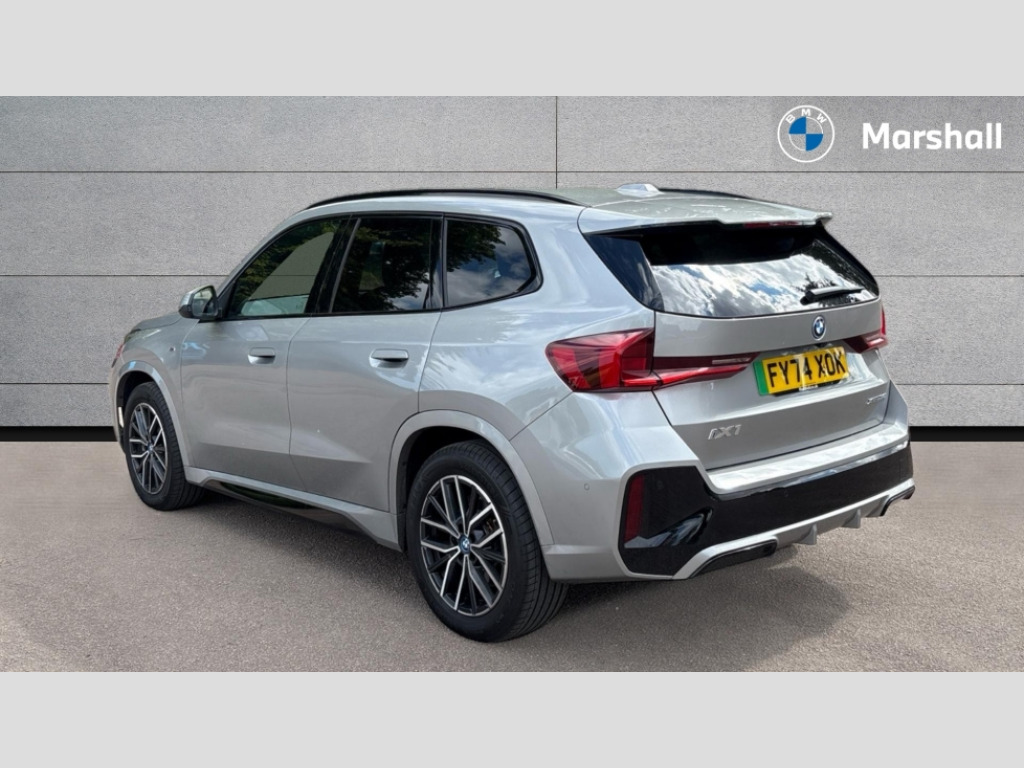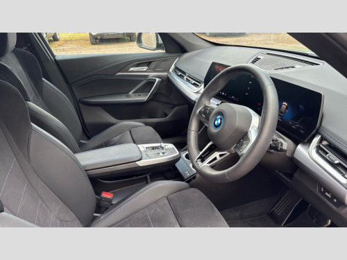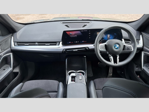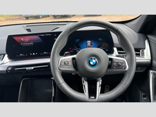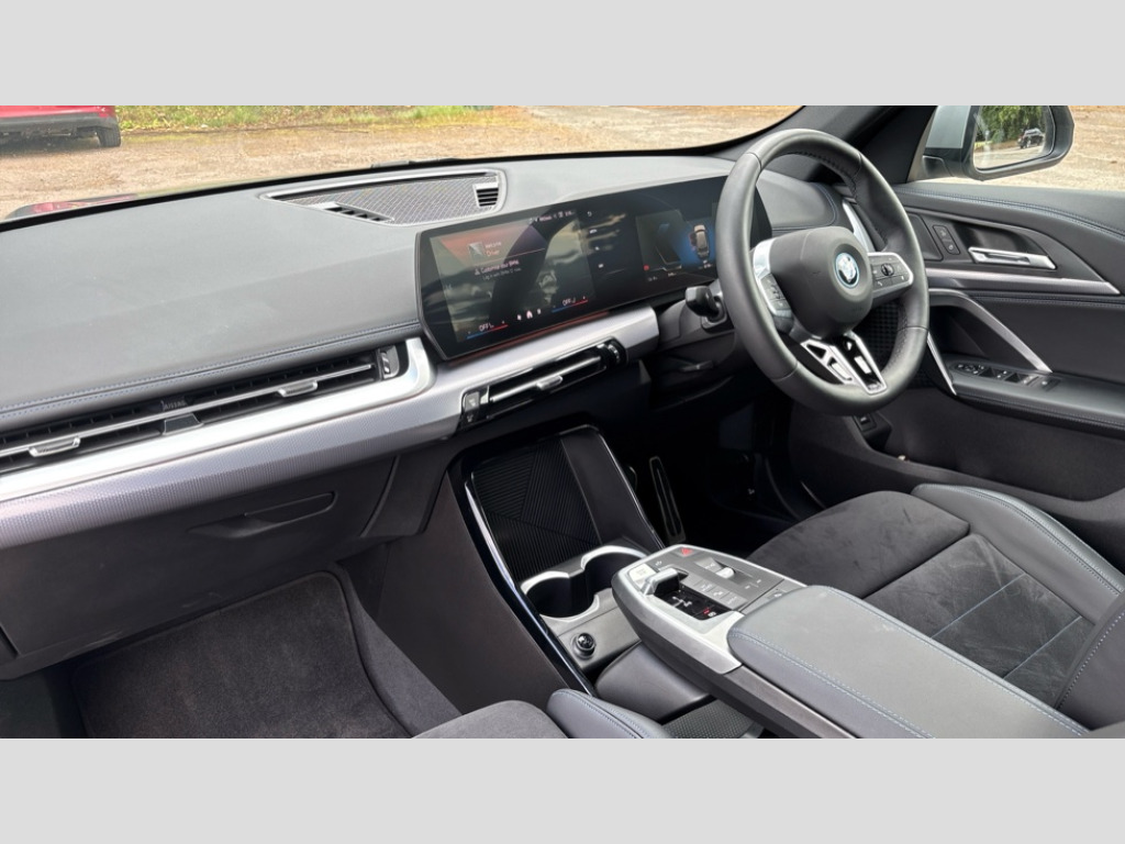 BMW Ix1 230kW xDrive30 M Sport 65kWh 5dr Auto Attentiveness assist, BMW Live Cockpit Plus with 10.25" instrument cluster and 10.7" display, BMW Online services, BMW Operating system 9 with BMW Maps, real-time traffic information, in-car experiences, remote services and smartphone integration, BMW Teleservices, Brake pad wear indicator, Condition based service, Connected eDrive Services, Drive off assistant, Electrically opening/closing tailgate with opening/closing with remote control and contactless opening and closing, iDrive controller, Language version English, My Modes, Parking Assistant with Reversing Assistant, active PDC, Lateral Parking Aid, Rear View Camera and Park Distance Control, Personal Profile - automatic lock when driving away selectable, Servotronic PAS, Tyre puncture warning system, Widescreen display, eDrive exterior sound, EU6 emissions management, Fast charging cable professional mode 3 for public charging, M Adaptive suspension, Performance Control, xDrive intelligent four wheel drive system, BMW iconic sound electric, BMW Personal eSim, DAB Digital radio, Badge on engine compartment lid and tailgate, Dynamic brake lights, Electric adjustable heated door mirrors, Electric windows - front and rear, with open/close fingertip control, anti-trap facility and comfort closing, Folding door handles integrated flush with surface, Follow me home headlights, Front and rear bumper panel with M specific design, in body colour with inserts in black high gloss, Front door exit lights, Front entry sills aluminium inserts with M inscription, Heated rear window, High gloss shadowline, Invisible exhaust tailpipe, Key with M identification, LED 3rd brake light integrated in rear spoiler, LED daytime running lights, LED number plate light, M identification on the sides, M roof rails high gloss shadow line, M specific radiator grille in satinated aluminium, Matt black roof strips, Rain sensor including auto headlights activation, Rear cover painted in BMW I blue, Rear side wing doors, Rear wiper, Side sill covers with M specific design in body colour, Trailer stabilisation logic, Window washer nozzle for rear view camera, Windscreen wipers front with heated washer nozzles, 12V - Power sockets with front centre console and luggage compartment, 2 bag hooks in luggage compartment, 2 cup holders in front, 2 x USB Type C ports for charging in front centre console + 2 x USB Type C ports for charging in rear centre console, 3 rear headrests, 3 seat bench in 2nd row, 3 upper retaining strap clips integrated into rear panels of seat backrests, 40:20:40 split folding rear seats, Ambient interior lighting, Anthracite headlining, Anthracite Velour front and rear floormats, Bottle trays in all doors, Child seat ISOFIX attachment for two outer rear seats and front passenger seat with anchorage points, Clothes hook rear, Driver and front passenger heated seats, Dual zone automatic air conditioning, Front and rear door pockets, Front centre console storage compartment, Front/rear adjustable head restraints, Glove compartment, Light on right in luggage compartment, M sport leather steering wheel, Manual steering column height and depth adjustment, Middle centre console storage compartment, One piece parcel shelf opens together with tailgate and removable, Rear armrest in door trim panel, Single front passenger seat, Sport leather multifunction steering wheel with thumbrests and operation of instrument display, audio, telephone and driver assistance, Storage compartment net in left side trim panel, Storage compartment with folding cover under centre console armrest cushion, Storage tray in right side trim panel, Tilt adjustment incl. cargo function of 2nd row of seats, ABS/EBD, Automatic hold function, Automatic Stability Control (ASC), BMW emergency call, Braking readiness, Cornering brake control (CBC), Crash Sensor - activates hazard/interior lighting + unlocks doors, Driver/Front Passenger airbags, Driver/front passenger side airbags, Dry braking, Dynamic brake control, Dynamic stability control + (DSC+), Electromechanical parking brake, Energy recovery system, First aid kit, Front and rear brake discs, Front and rear head airbags, Front passenger airbag deactivation, Integrated brake system, PC iBrake PostCrash approach control warning with light braking function, Rear door child safety locks, Three point seat belts in all seats, Tyre pressure monitor, Warning triangle, Alarm system with tilt sensor, monitoring doors, bonnet interior and tailgate, Closing system with central locking, Locking wheel bolts, Luxury instrument panel, Tyre repair kit (including Tyre sealant and 12V Compressor)