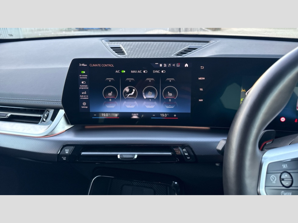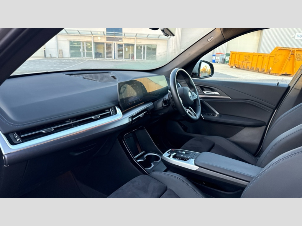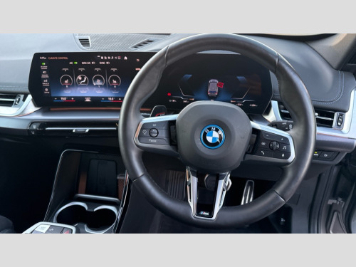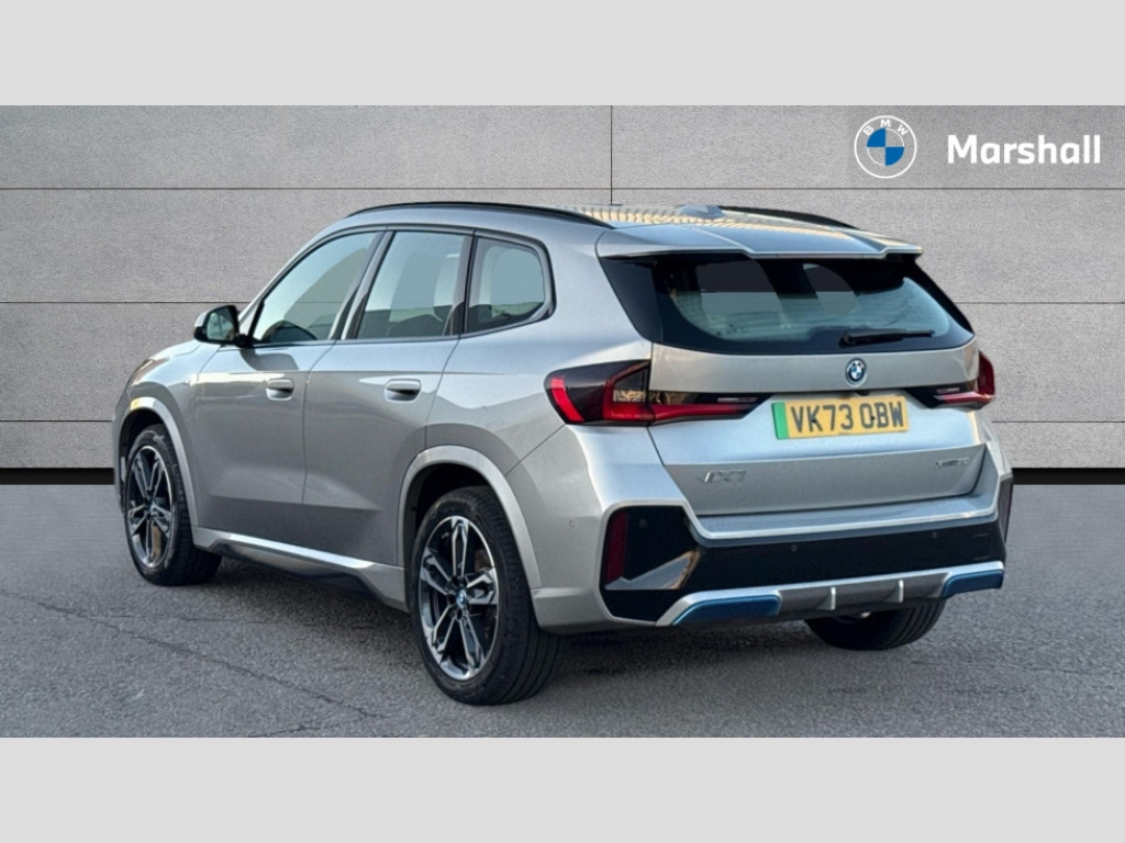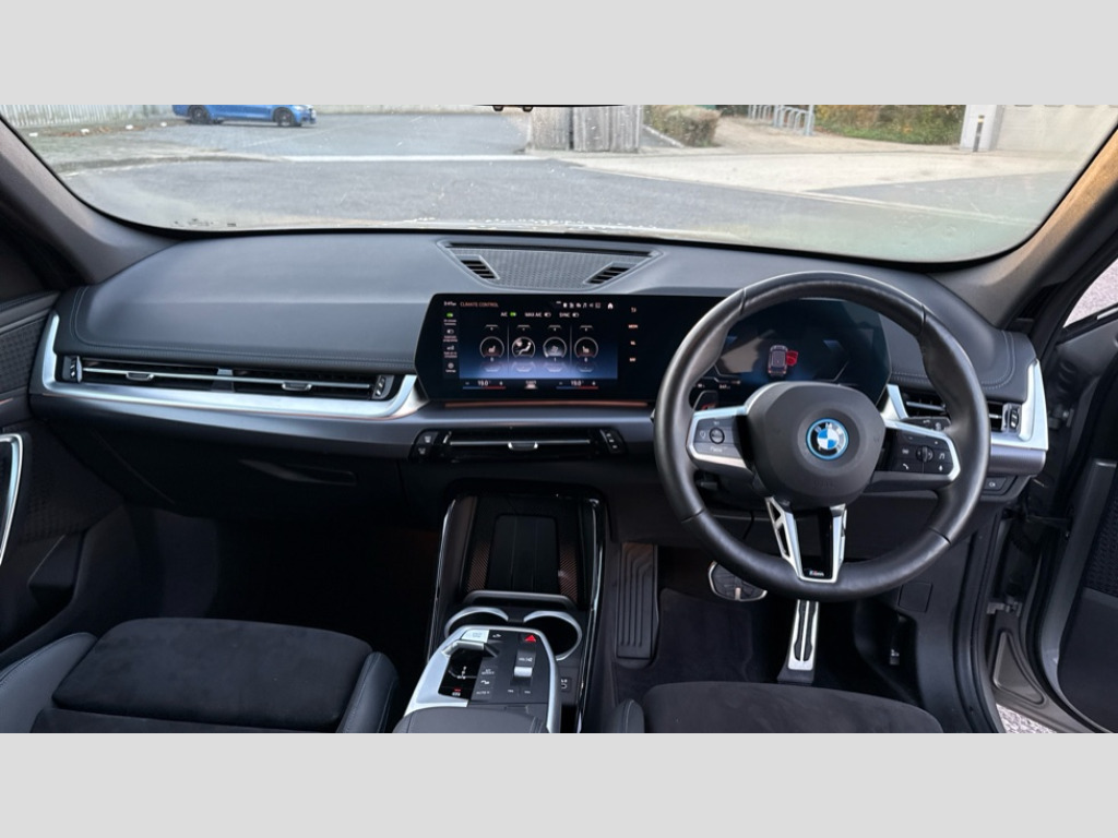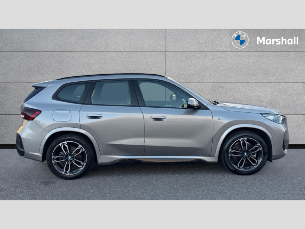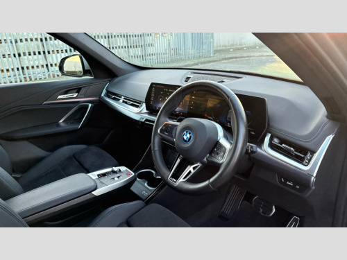 BMW Ix1 230kW xDrive30 M Sport 65kWh 5dr Auto Attentiveness assist, BMW Live Cockpit Plus with 10.25" instrument cluster and 10.7" display, BMW Online services, BMW Operating system 9 with BMW Maps, real-time traffic information, in-car experiences, remote services and smartphone integration, BMW Teleservices, Brake pad wear indicator, Condition based service, Connected eDrive Services, Drive off assistant, Electrically opening/closing tailgate with opening/closing with remote control and contactless opening and closing, iDrive controller, Language version English, My Modes, Parking Assistant with Reversing Assistant, active PDC, Lateral Parking Aid, Rear View Camera and Park Distance Control, Personal Profile - automatic lock when driving away selectable, Servotronic PAS, Tyre puncture warning system, Widescreen display, eDrive exterior sound, EU6 emissions management, Fast charging cable professional mode 3 for public charging, M Adaptive suspension, Performance Control, xDrive intelligent four wheel drive system, BMW iconic sound electric, DAB Digital radio, Badge on engine compartment lid and tailgate, Dynamic brake lights, Electric adjustable heated door mirrors, Electric windows - front and rear, with open/close fingertip control, anti-trap facility and comfort closing, Folding door handles integrated flush with surface, Follow me home headlights, Front and rear bumper panel with M specific design, in body colour with inserts in black high gloss, Front door exit lights, Front entry sills aluminium inserts with M inscription, Heated rear window, High gloss shadow line incl A/B/C-pillar panel/window frame/recess finish strip/window rail front door/mirror frame/cover panel in high gloss black, Invisible exhaust tailpipe, Key with M identification, LED 3rd brake light integrated in rear spoiler, LED daytime running lights, LED number plate light, M identification on the sides, M roof rails high gloss shadow line, M specific radiator grille in satinated aluminium, Matt black roof strips, Rain sensor including auto headlights activation, Rear cover painted in BMW I blue, Rear side wing doors, Rear wiper, Side sill covers with M specific design in body colour, Trailer stabilisation logic, Windscreen washer nozzle for rear view camera, Windscreen wipers front with heated washer nozzles, 12V - Power sockets with front centre console and luggage compartment, 2 bag hooks in luggage compartment, 2 cup holders in front, 2 x USB Type C ports for charging and data transmission (front centre console) and 2 x USB Type C ports for charging (rear centre console), 3 rear headrests, 3 seat bench in 2nd row, 3 upper retaining strap clips integrated into rear panels of seat backrests, 40:20:40 split folding rear seats, Ambient interior lighting, Anthracite headlining, Anthracite Velour front and rear floormats, Bottle trays in all doors, Child seat ISOFIX attachment for two outer rear seats and front passenger seat with anchorage points, Clothes hook rear, Driver and front passenger heated seats, Dual zone automatic air conditioning, Front and rear door pockets, Front centre console storage compartment, Front/rear adjustable head restraints, Glove compartment, Light on right in luggage compartment, M sport leather steering wheel, Manual steering column height and depth adjustment, Map pockets, Middle centre console storage compartment, One piece parcel shelf opens together with tailgate and removable, Rear armrest in door trim panel, Single front passenger seat, Sport leather multifunction steering wheel with thumbrests and operation of instrument display, audio, telephone and driver assistance, Storage compartment net in left side trim panel, Storage compartment with folding cover under centre console armrest cushion, Storage tray in right side trim panel, Tilt adjustment incl. cargo function of 2nd row of seats, ABS/EBD, Automatic hold function, Automatic Stability Control (ASC), BMW emergency call, Braking readiness, Cornering brake control (CBC), Crash Sensor - activates hazard/interior lighting + unlocks doors, Driver/Front Passenger airbags, Driver/front passenger side airbags, Dry braking, Dynamic brake control, Dynamic stability control + (DSC+), Electromechanical parking brake, Energy recovery system, First aid kit, Front and rear brake discs, Front and rear head airbags, Front passenger airbag deactivation, Integrated brake system, PC iBrake PostCrash approach control warning with light braking function, Rear door child safety locks, Three point seat belts in all seats, Tyre pressure monitor, Warning triangle, Alarm system with tilt sensor, monitoring doors, bonnet interior and tailgate, Closing system with central locking, Locking wheel bolts, Luxury instrument panel, Tyre repair kit (including Tyre sealant and 12V Compressor)