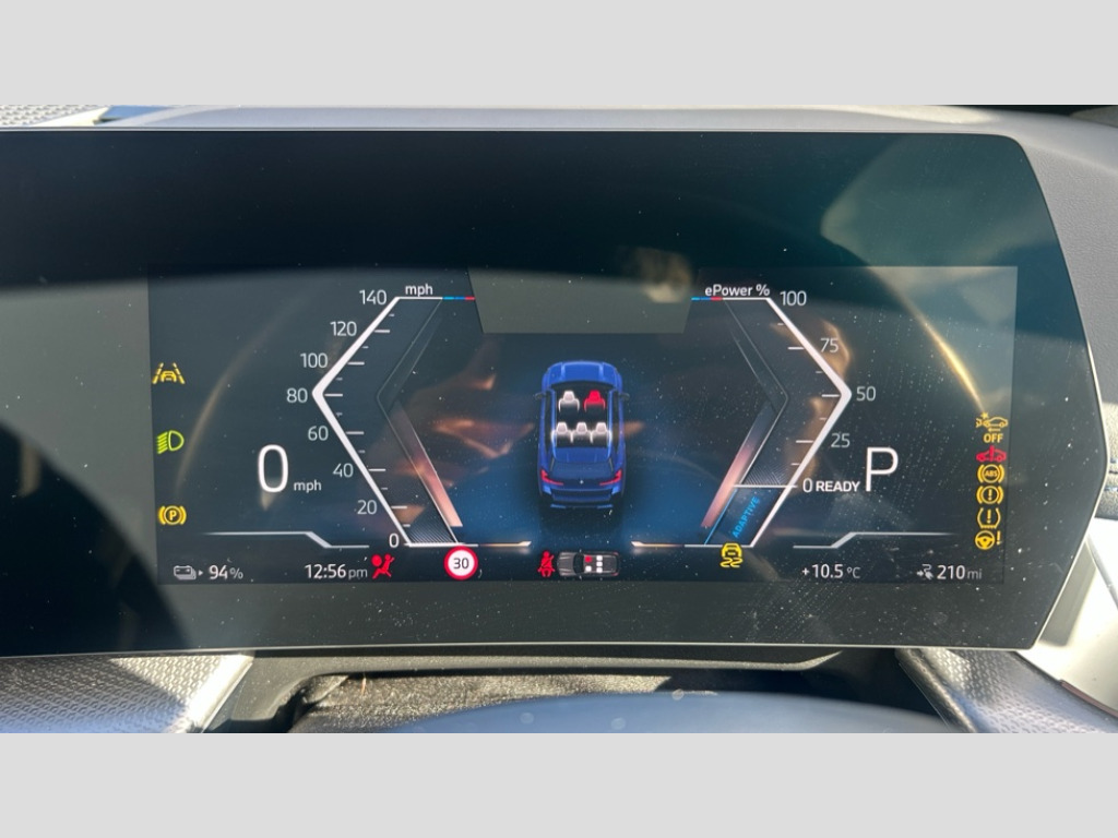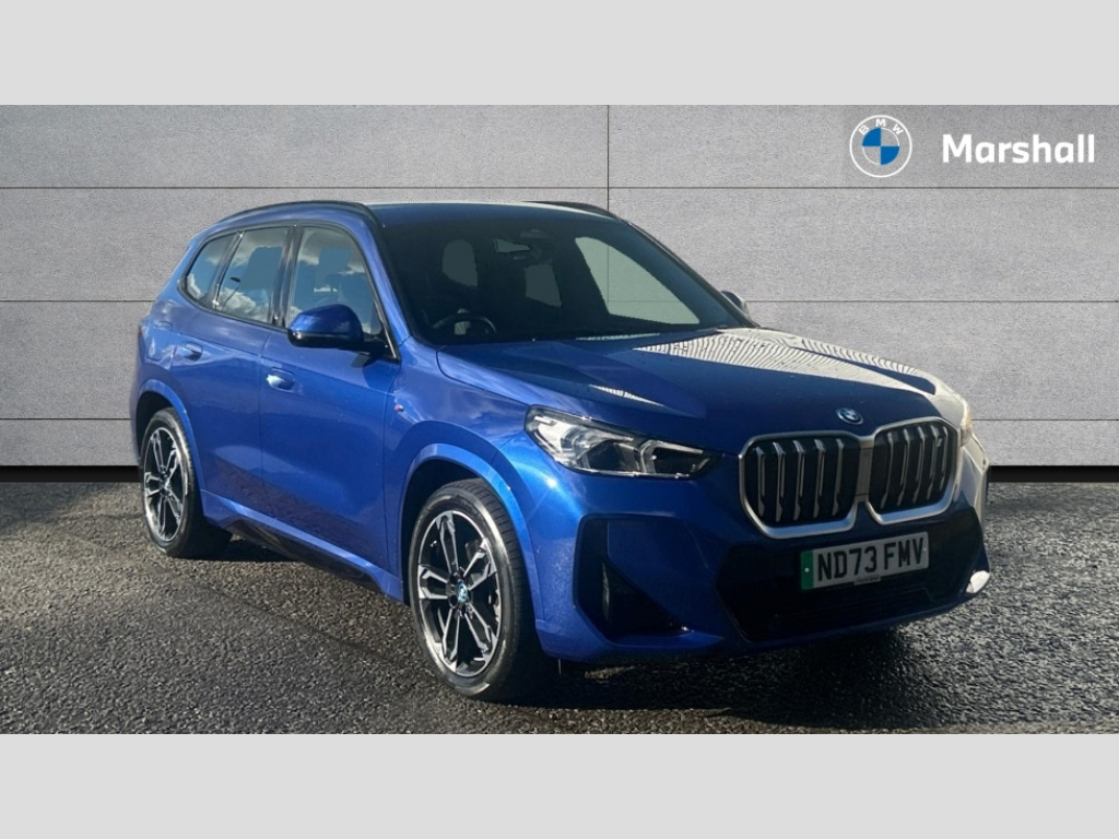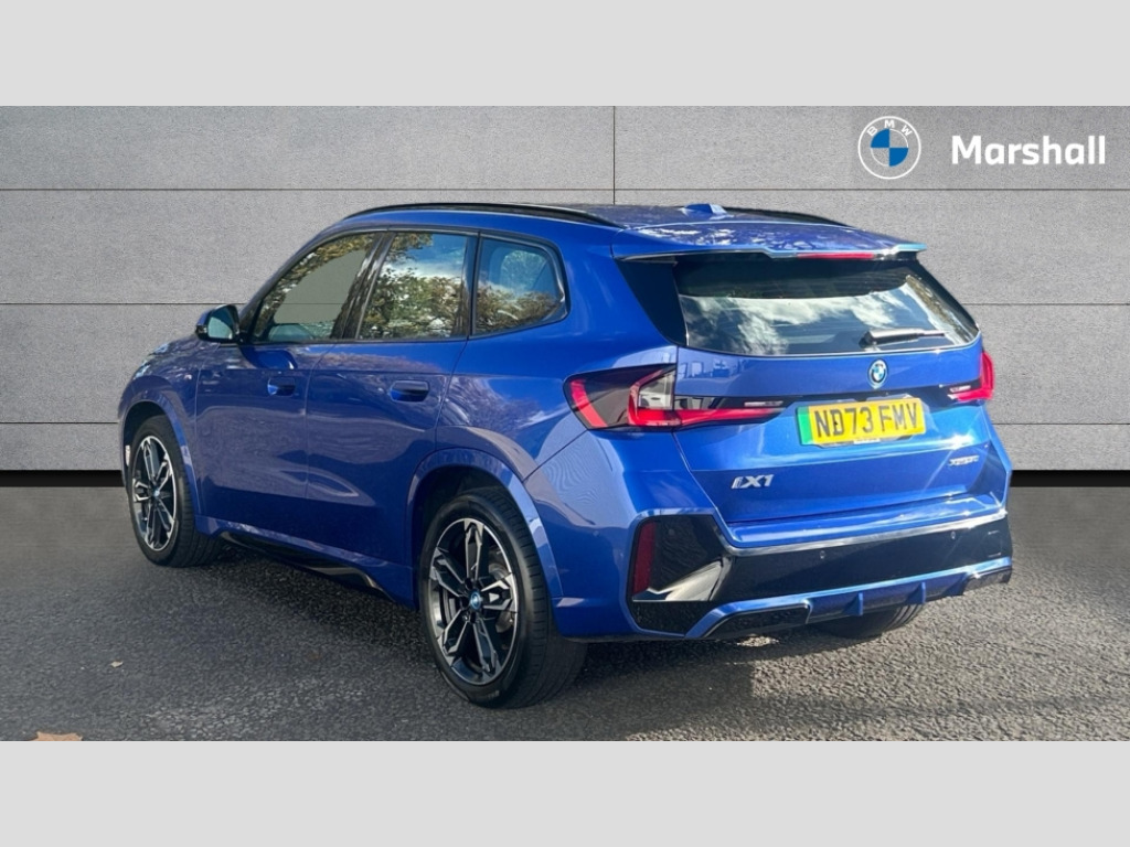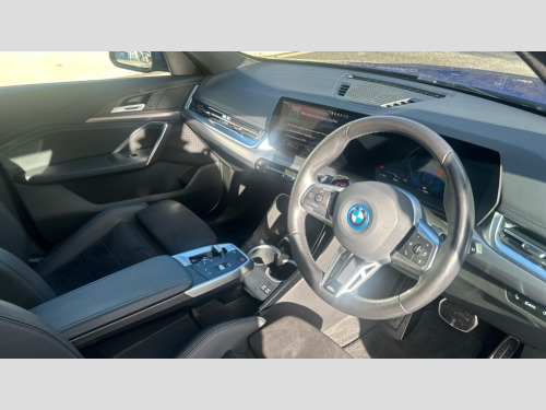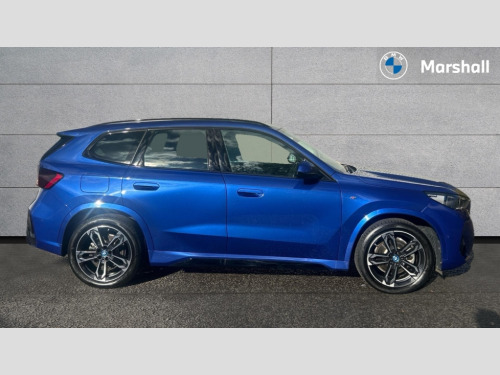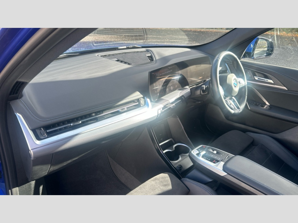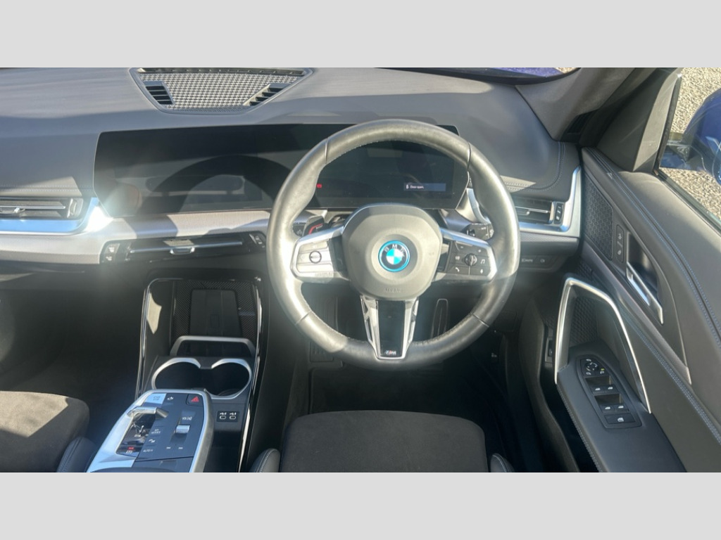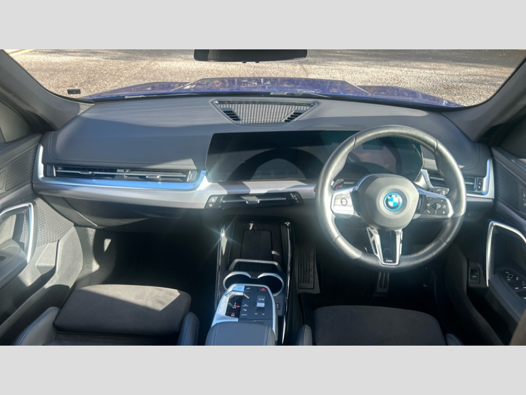 BMW Ix1 230kW xDrive30 M Sport 65kWh 5dr Auto Attentiveness assist, BMW Live Cockpit Plus with 10.25" instrument cluster and 10.7" display, BMW Online services, BMW Operating system 9 with BMW Maps, real-time traffic information, in-car experiences, remote services and smartphone integration, BMW Teleservices, Brake pad wear indicator, Condition based service, Connected eDrive Services, Drive off assistant, Electrically opening/closing tailgate with opening/closing with remote control and contactless opening and closing, iDrive controller, Language version English, My Modes, Parking Assistant with Reversing Assistant, active PDC, Lateral Parking Aid, Rear View Camera and Park Distance Control, Personal Profile - automatic lock when driving away selectable, Servotronic PAS, Tyre puncture warning system, Widescreen display, eDrive exterior sound, EU6 emissions management, Fast charging cable professional mode 3 for public charging, M Adaptive suspension, Performance Control, xDrive intelligent four wheel drive system, BMW iconic sound electric, DAB Digital radio, Badge on engine compartment lid and tailgate, Dynamic brake lights, Electric adjustable heated door mirrors, Electric windows - front and rear, with open/close fingertip control, anti-trap facility and comfort closing, Folding door handles integrated flush with surface, Follow me home headlights, Front and rear bumper panel with M specific design, in body colour with inserts in black high gloss, Front door exit lights, Front entry sills aluminium inserts with M inscription, Heated rear window, High gloss shadow line incl A/B/C-pillar panel/window frame/recess finish strip/window rail front door/mirror frame/cover panel in high gloss black, Invisible exhaust tailpipe, Key with M identification, LED 3rd brake light integrated in rear spoiler, LED daytime running lights, LED number plate light, M identification on the sides, M roof rails high gloss shadow line, M specific radiator grille in satinated aluminium, Matt black roof strips, Rain sensor including auto headlights activation, Rear cover painted in BMW I blue, Rear side wing doors, Rear wiper, Side sill covers with M specific design in body colour, Trailer stabilisation logic, Windscreen washer nozzle for rear view camera, Windscreen wipers front with heated washer nozzles, 12V - Power sockets with front centre console and luggage compartment, 2 bag hooks in luggage compartment, 2 cup holders in front, 2 x USB Type C ports for charging and data transmission (front centre console) and 2 x USB Type C ports for charging (rear centre console), 3 rear headrests, 3 seat bench in 2nd row, 3 upper retaining strap clips integrated into rear panels of seat backrests, 40:20:40 split folding rear seats, Ambient interior lighting, Anthracite headlining, Anthracite Velour front and rear floormats, Bottle trays in all doors, Child seat ISOFIX attachment for two outer rear seats and front passenger seat with anchorage points, Clothes hook rear, Driver and front passenger heated seats, Dual zone automatic air conditioning, Front and rear door pockets, Front centre console storage compartment, Front/rear adjustable head restraints, Glove compartment, Light on right in luggage compartment, M sport leather steering wheel, Manual steering column height and depth adjustment, Map pockets, Middle centre console storage compartment, One piece parcel shelf opens together with tailgate and removable, Rear armrest in door trim panel, Single front passenger seat, Sport leather multifunction steering wheel with thumbrests and operation of instrument display, audio, telephone and driver assistance, Storage compartment net in left side trim panel, Storage compartment with folding cover under centre console armrest cushion, Storage tray in right side trim panel, Tilt adjustment incl. cargo function of 2nd row of seats, ABS/EBD, Automatic hold function, Automatic Stability Control (ASC), BMW emergency call, Braking readiness, Cornering brake control (CBC), Crash Sensor - activates hazard/interior lighting + unlocks doors, Driver/Front Passenger airbags, Driver/front passenger side airbags, Dry braking, Dynamic brake control, Dynamic stability control + (DSC+), Electromechanical parking brake, Energy recovery system, First aid kit, Front and rear brake discs, Front and rear head airbags, Front passenger airbag deactivation, Integrated brake system, PC iBrake PostCrash approach control warning with light braking function, Rear door child safety locks, Three point seat belts in all seats, Tyre pressure monitor, Warning triangle, Alarm system with tilt sensor, monitoring doors, bonnet interior and tailgate, Closing system with central locking, Locking wheel bolts, Luxury instrument panel, Tyre repair kit (including Tyre sealant and 12V Compressor)