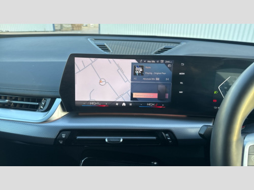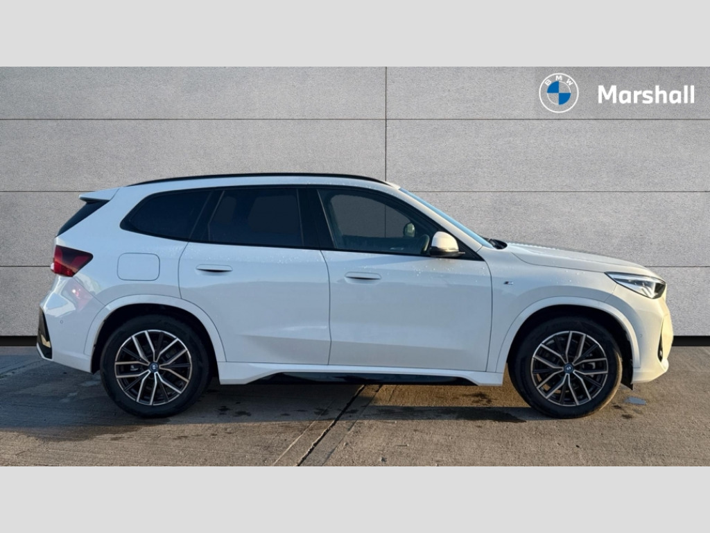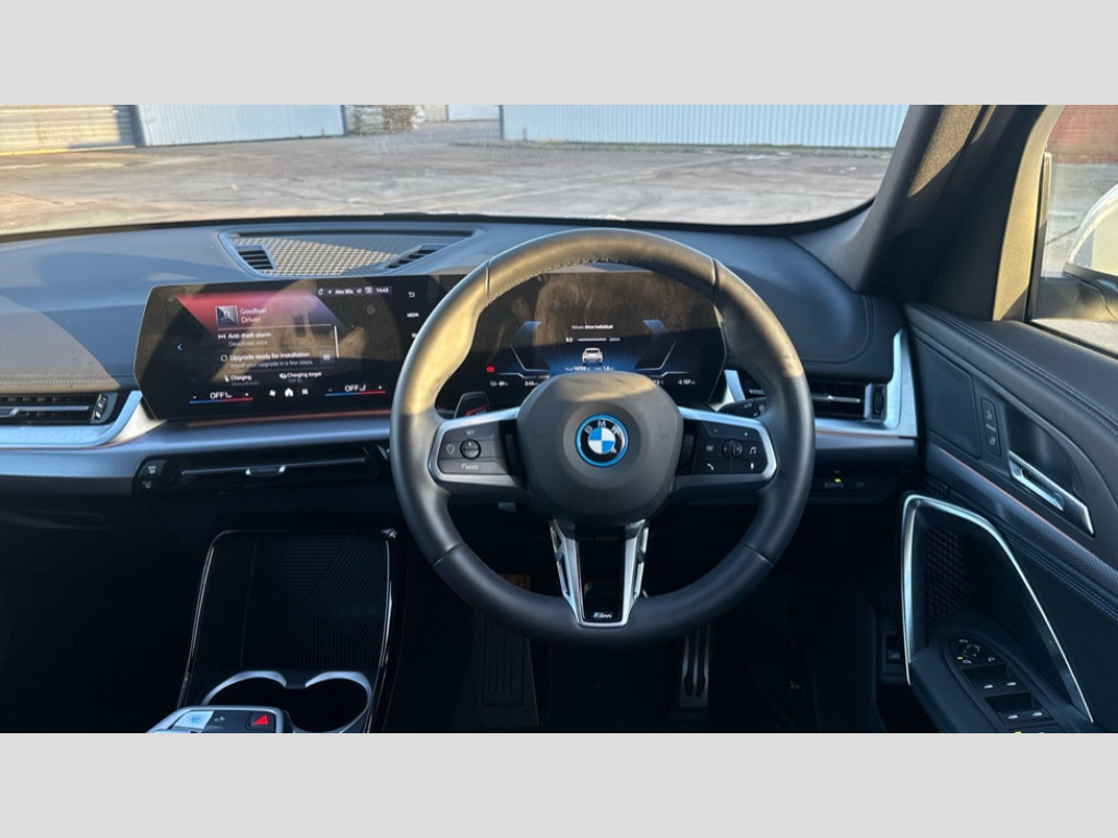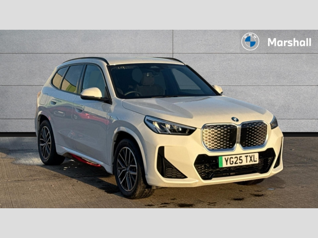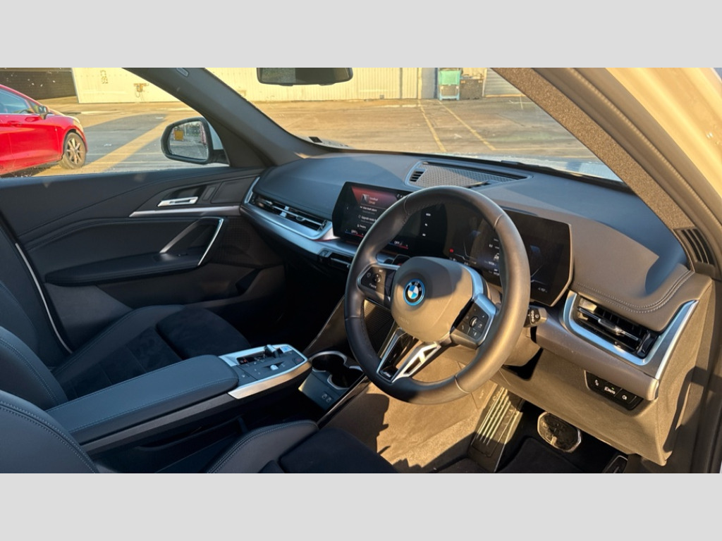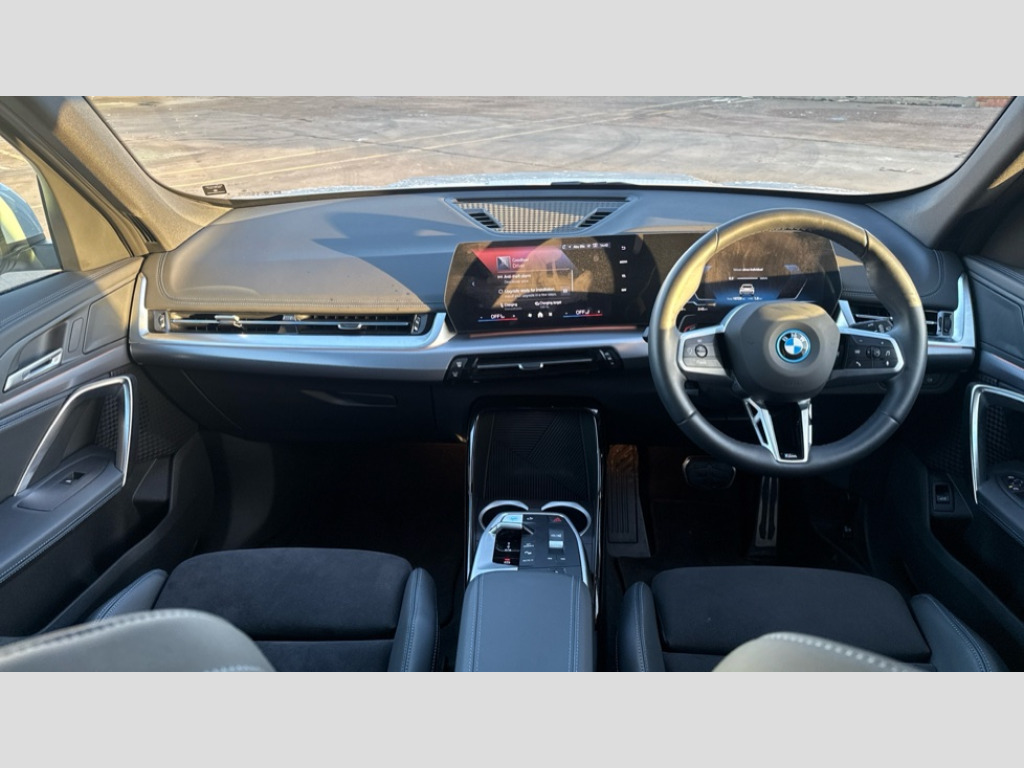 BMW Ix1 230kW xDrive30 M Sport 65kWh 5dr Auto Attentiveness assist, BMW Live Cockpit Plus with 10.25" instrument cluster and 10.7" display, BMW Online services, BMW Operating system 9 with BMW Maps, real-time traffic information, in-car experiences, remote services and smartphone integration, BMW Teleservices, Brake pad wear indicator, Condition based service, Connected eDrive Services, Drive off assistant, Electrically opening/closing tailgate with opening/closing with remote control and contactless opening and closing, iDrive controller, Language version English, My Modes, Parking Assistant with Reversing Assistant, active PDC, Lateral Parking Aid, Rear View Camera and Park Distance Control, Personal Profile - automatic lock when driving away selectable, Servotronic PAS, Tyre puncture warning system, Widescreen display, eDrive exterior sound, EU6 emissions management, Fast charging cable professional mode 3 for public charging, M Adaptive suspension, Performance Control, xDrive intelligent four wheel drive system, BMW iconic sound electric, BMW Personal eSim, DAB Digital radio, Badge on engine compartment lid and tailgate, Body colour door mirrors, Dynamic brake lights, Electric adjustable heated door mirrors, Electric windows - front and rear, with open/close fingertip control, anti-trap facility and comfort closing, Folding door handles integrated flush with surface, Follow me home headlights, Front and rear bumper panel with M specific design, in body colour with inserts in black high gloss, Front door exit lights, Heated rear window, High gloss shadowline, Invisible exhaust tailpipe, Key with M identification, LED 3rd brake light integrated in rear spoiler, LED daytime running lights, LED number plate light, M identification on the sides, M roof rails high gloss shadow line, M specific radiator grille in satinated aluminium, Matt black roof strips, Model inscription on right tailgate, Rain sensor including auto headlights activation, Rear cover painted in BMW I blue, Rear side wing doors, Rear wiper, Sill cover in body colour, Trailer stabilisation logic, Windscreen washer nozzle for rear view camera, Windscreen wipers front with heated washer nozzles, 12V - Power sockets with front centre console and luggage compartment, 2 bag hooks in luggage compartment, 2 cup holders in front, 2 x USB Type C ports for charging in front centre console + 2 x USB Type C ports for charging in rear centre console, 3 rear headrests, 3 seat bench in 2nd row, 3 upper retaining strap clips integrated into rear panels of seat backrests, 4 grab handles, 40:20:40 split folding rear seats, Ambient interior lighting, Anthracite headlining, Anthracite Velour front and rear floormats, Bottle trays in all doors, Child seat ISOFIX attachment for two outer rear seats and front passenger seat with anchorage points, Clothes hook rear, Driver and front passenger heated seats, Dual zone automatic air conditioning, Front and rear door pockets, Front and rear footwell lighting, Front centre console storage compartment, Front/rear adjustable head restraints, Glove compartment, Interior door handle recess light on all doors, Light on right in luggage compartment, M sport leather steering wheel, Manual steering column height and depth adjustment, Middle centre console storage compartment, One piece parcel shelf opens together with tailgate and removable, Rear armrest in door trim panel, Single front passenger seat, Sport leather multifunction steering wheel with thumbrests and operation of instrument display, audio, telephone and driver assistance, Storage compartment net in left side trim panel, Storage compartment with folding cover under centre console armrest cushion, Storage tray in right side trim panel, Tilt adjustment incl. cargo function of 2nd row of seats, Vanity mirror lights, ABS/EBD, Automatic hold function, Automatic Stability Control (ASC), BMW emergency call, Braking readiness, Cornering brake control (CBC), Crash Sensor - activates hazard/interior lighting + unlocks doors, Driver/Front Passenger airbags, Driver/front passenger side airbags, Dry braking, Dynamic brake control, Dynamic stability control + (DSC+), Electromechanical parking brake, Energy recovery system, First aid kit, Front and rear brake discs, Front and rear head airbags, Front passenger airbag deactivation, Integrated brake system, PC iBrake PostCrash approach control warning with light braking function, Rear door child safety locks, Three point seat belts in all seats, Tyre pressure monitor, Warning triangle, Alarm system with tilt sensor, monitoring doors, bonnet interior and tailgate, Closing system with central locking, Locking wheel bolts, Luxury instrument panel, Tyre repair kit plus