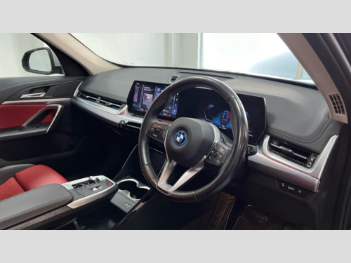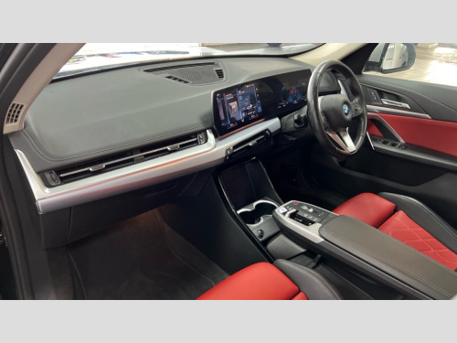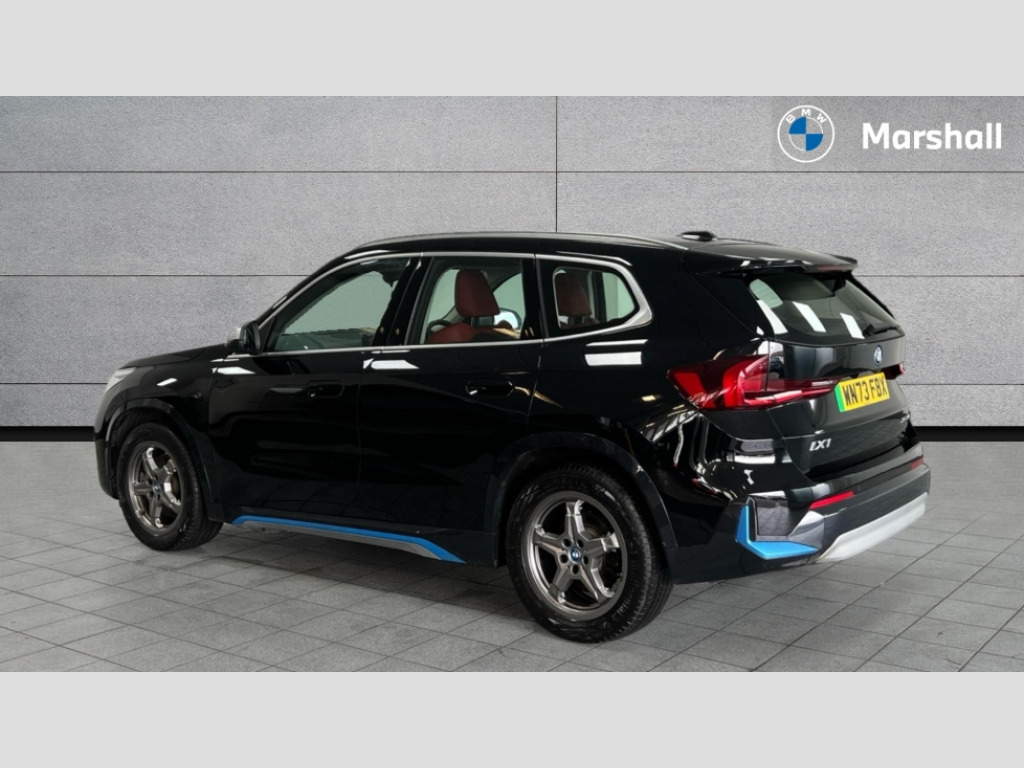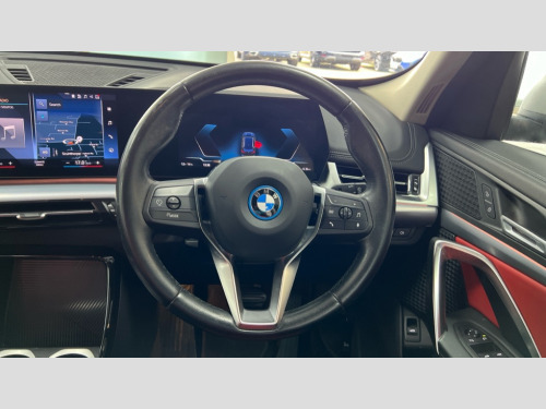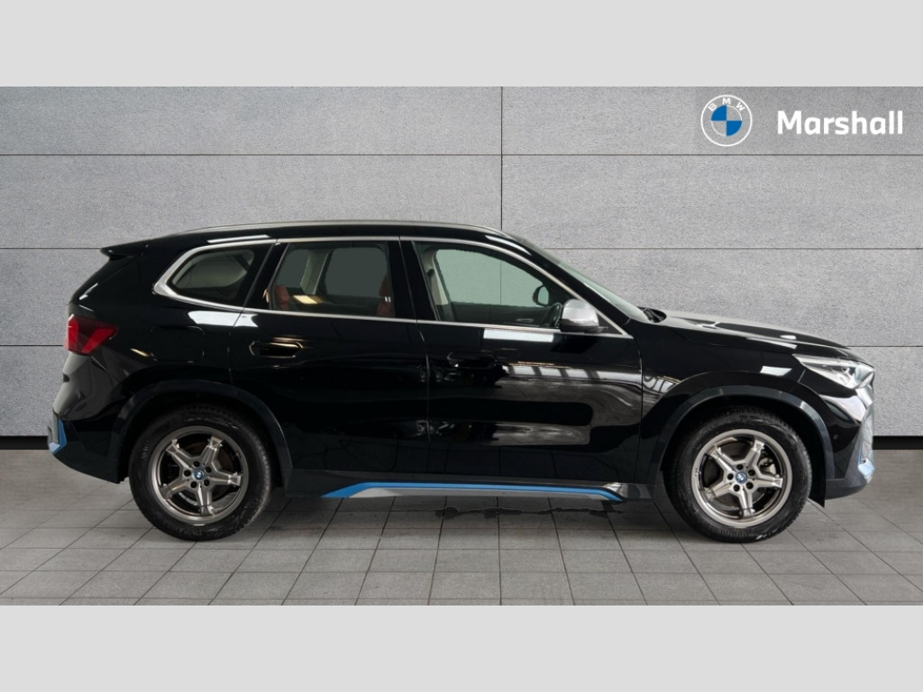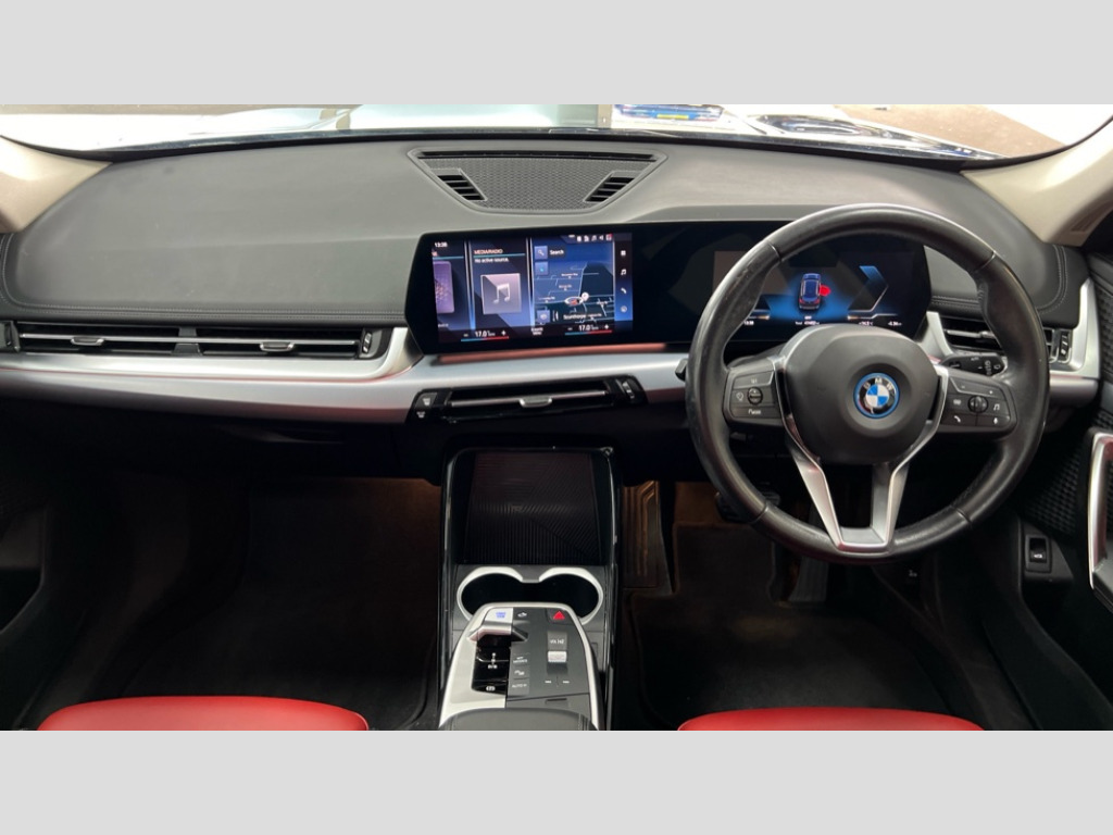 BMW Ix1 230kW xDrive30 xLine 65kWh 5dr Auto Attentiveness assist, BMW Online services, BMW Teleservices, Brake pad wear indicator, Condition based service, Connected eDrive Services, Drive off assistant, Electrically opening/closing tailgate with opening/closing with remote control and contactless opening and closing, iDrive controller, Language version English, My Modes, Personal Profile - automatic lock when driving away selectable, Servotronic PAS, Tyre puncture warning system, Widescreen display, eDrive exterior sound, Fast charging cable professional mode 3 for public charging, M Adaptive suspension, Mode 2 flexible charger, Performance Control, xDrive intelligent four wheel drive system, BMW iconic sound electric, DAB Digital radio, Aluminium satinated roof rails, Badge on engine compartment lid and tailgate, BMW i blue door sill inserts, BMW individual exterior line aluminium satinated window frame and window guide rail in front door/pillar trim/door mirrors in high gloss black, Contoured rear roof spoiler in vehicle colour with side aeroblades in black high-gloss, Dynamic brake lights, Electric adjustable heated door mirrors, Electric windows - front and rear, with open/close fingertip control, anti-trap facility and comfort closing, Folding door handles integrated flush with surface, Follow me home headlights, Front and rear visual underride protection in pearl chrome, Front bumper panel with air inlet in matt black, Front door exit lights, Front entry sills aluminium inserts with BMW inscription, Heated rear window, Invisible exhaust tailpipe, LED 3rd brake light integrated in rear spoiler, LED daytime running lights, LED number plate light, Mirror caps painted in contrasting colour dark grey, Model inscription on right tailgate, Radiator grille frame in aluminium matt, Radiator grille struts in aluminium matt, Rain sensor including auto headlights activation, Rear bumper panel with two L-shaped trims In pearl chrome, Rear side wing doors, Rear wiper, Roof trim strips painted in body colour, Trailer stabilisation logic, Windscreen washer nozzle for rear view camera, Windscreen wipers with front and rear heated washer nozzles, 12V - Power sockets with front centre console and luggage compartment, 2 cup holders in front, 2 x USB Type C ports for charging and data transmission (front centre console) and 2 x USB Type C ports for charging (rear centre console), 3 rear headrests, 3 seat bench in 2nd row, 3 upper retaining strap clips integrated into rear panels of seat backrests, 40:20:40 split folding rear seats, Ambient interior lighting, Anthracite Velour front and rear floormats, Bottle trays in all doors, Child seat ISOFIX attachment for two outer rear seats and front passenger seat with anchorage points, Clothes hook rear, Driver and front passenger heated seats, Dual zone automatic air conditioning, Front and rear door pockets, Front centre console storage compartment, Front sports seats, Front/rear adjustable head restraints, Glove compartment, Light on right in luggage compartment, Manual steering column height and depth adjustment, Map pockets, Middle centre console storage compartment, Rear armrest in door trim panel, Single front passenger seat, Sport leather multifunction steering wheel with thumbrests and operation of instrument display, audio, telephone and driver assistance, Storage compartment with folding cover under centre console armrest cushion, Trim elements on steering wheel spokes in pearl chrome, Connected Package Professional - iX1, ABS/EBD, Automatic hold function, Automatic Stability Control (ASC), Black belt painted in contrasting colour dark grey, BMW emergency call, Braking readiness, Cornering brake control (CBC), Crash Sensor - activates hazard/interior lighting + unlocks doors, Driver/Front Passenger airbags, Driver/front passenger side airbags, Dry braking, Dynamic brake control, Dynamic stability control + (DSC+), Electromechanical parking brake, Energy recovery system, Front and rear brake discs, Front and rear head airbags, Front passenger airbag deactivation, Integrated brake system, PC iBrake PostCrash approach control warning with light braking function, Rear door child safety locks, Three point seat belts in all seats, Tyre pressure monitor, Warning triangle, Alarm system with tilt sensor, monitoring doors, bonnet interior and tailgate, Closing system with central locking, Locking wheel bolts, Luxury instrument panel, Tyre repair kit (including Tyre sealant and 12V Compressor)