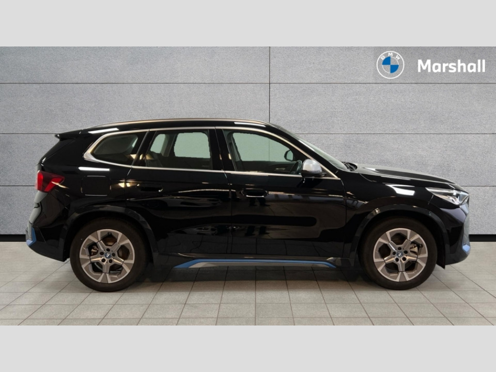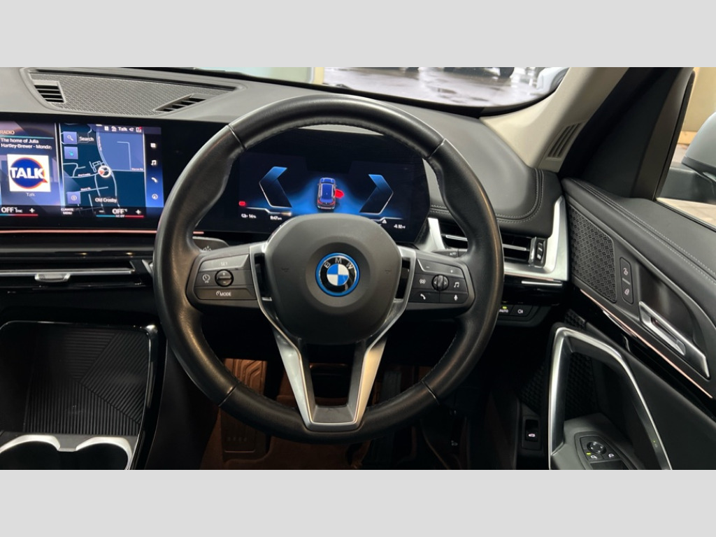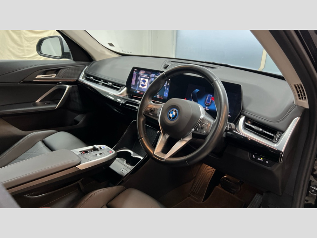 BMW Ix1 230kW xDrive30 xLine 65kWh 5dr Auto Attentiveness assist, BMW Live Cockpit Plus with 10.25" instrument cluster and 10.7" display, BMW Online services, BMW Operating system 9 with BMW Maps, real-time traffic information, in-car experiences, remote services and smartphone integration, BMW Teleservices, Brake pad wear indicator, Condition based service, Connected eDrive Services, Drive off assistant, Electrically opening/closing tailgate with opening/closing with remote control and contactless opening and closing, iDrive controller, Language version English, My Modes, Parking Assistant with Reversing Assistant, active PDC, Lateral Parking Aid, Rear View Camera and Park Distance Control, Personal Profile - automatic lock when driving away selectable, Servotronic PAS, Tyre puncture warning system, Widescreen display, eDrive exterior sound, EU6 emissions management, Fast charging cable professional mode 3 for public charging, M Adaptive suspension, Performance Control, xDrive intelligent four wheel drive system, BMW iconic sound electric, DAB Digital radio, Aluminium satinated roof rails, Badge on engine compartment lid and tailgate, BMW i blue door sill inserts, BMW individual exterior line aluminium satinated window frame and window guide rail in front door/pillar trim/door mirrors in high gloss black, Dynamic brake lights, Electric adjustable heated door mirrors, Electric windows - front and rear, with open/close fingertip control, anti-trap facility and comfort closing, Folding door handles integrated flush with surface, Follow me home headlights, Front and rear visual underride protection in pearl chrome, Front bumper panel with air inlet in matt black, Front door exit lights, Front entry sills aluminium inserts with BMW inscription, Heated rear window, Invisible exhaust tailpipe, LED 3rd brake light integrated in rear spoiler, LED daytime running lights, LED number plate light, Mirror caps painted in contrasting colour dark grey, Radiator grille frame in aluminium matt, Radiator grille struts in aluminium matt, Rain sensor including auto headlights activation, Rear bumper panel with two L-shaped trims In pearl chrome, Rear side wing doors, Rear wiper, Roof trim strips painted in body colour, Trailer stabilisation logic, Windscreen washer nozzle for rear view camera, Windscreen wipers front with heated washer nozzles, 12V - Power sockets with front centre console and luggage compartment, 2 bag hooks in luggage compartment, 2 cup holders in front, 2 x USB Type C ports for charging and data transmission (front centre console) and 2 x USB Type C ports for charging (rear centre console), 3 rear headrests, 3 seat bench in 2nd row, 3 upper retaining strap clips integrated into rear panels of seat backrests, 40:20:40 split folding rear seats, Ambient interior lighting, Anthracite Velour front and rear floormats, Bottle trays in all doors, Child seat ISOFIX attachment for two outer rear seats and front passenger seat with anchorage points, Clothes hook rear, Driver and front passenger heated seats, Dual zone automatic air conditioning, Front and rear door pockets, Front centre console storage compartment, Front/rear adjustable head restraints, Glove compartment, Light on right in luggage compartment, Manual steering column height and depth adjustment, Map pockets, Middle centre console storage compartment, One piece parcel shelf opens together with tailgate and removable, Rear armrest in door trim panel, Single front passenger seat, Sport leather multifunction steering wheel with thumbrests and operation of instrument display, audio, telephone and driver assistance, Storage compartment net in left side trim panel, Storage compartment with folding cover under centre console armrest cushion, Storage tray in right side trim panel, Tilt adjustment incl. cargo function of 2nd row of seats, Trim elements on steering wheel spokes in pearl chrome, ABS/EBD, Automatic hold function, Automatic Stability Control (ASC), Black belt painted in contrasting colour dark grey, BMW emergency call, Braking readiness, Cornering brake control (CBC), Crash Sensor - activates hazard/interior lighting + unlocks doors, Driver/Front Passenger airbags, Driver/front passenger side airbags, Dry braking, Dynamic brake control, Dynamic stability control + (DSC+), Electromechanical parking brake, Energy recovery system, First aid kit, Front and rear brake discs, Front and rear head airbags, Front passenger airbag deactivation, Integrated brake system, PC iBrake PostCrash approach control warning with light braking function, Rear door child safety locks, Three point seat belts in all seats, Tyre pressure monitor, Warning triangle, Alarm system with tilt sensor, monitoring doors, bonnet interior and tailgate, Closing system with central locking, Locking wheel bolts, Luxury instrument panel, Tyre repair kit (including Tyre sealant and 12V Compressor)