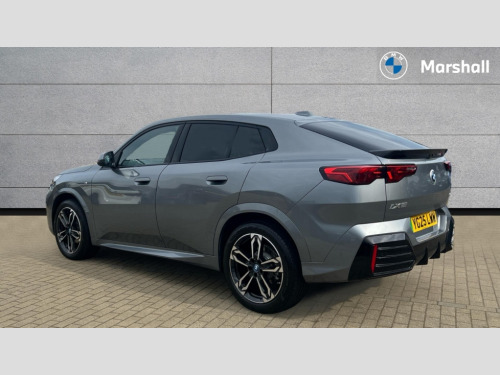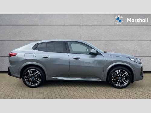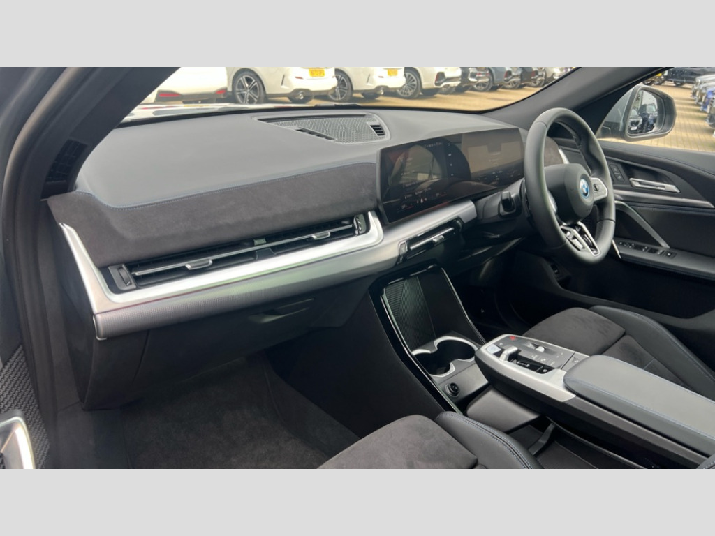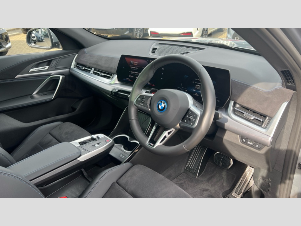 BMW Ix2 150kW eDrive20 M Sport 65kWh 5dr Auto 4G LTE connectivity, Attentiveness assist, Bluetooth / Wi-Fi interface with hands free system, BMW ConnectedDrive store and BMW Remote softwre upgrade, BMW Intelligent Personal Assistant, BMW Live Cockpit Plus - Widescreen display with 10.25" instrument cluster and 10.7" CID display, BMW Maps, BMW Operating System 9 with variable, confirgurable widgets, BMW Teleservices, Brake pad wear indicator, Condition based service, Connected drive services, Drive off assistant, Electrically opening/closing tailgate with opening/closing with remote control and contactless opening and closing, Gear display in instrument cluster including recommended gear, iDrive controller, Language version English, My modes (Personal / Efficient / Sport), Parking assistant with reversing assistant, active PDC, lateral parking aid and rear view camera, Personal Profile, Servotronic PAS, Smartphone integration for Apple CarPlay/Android Auto, Speed limiter, Touch operation on control display, Dynamic stability control, eDrive exterior sound, Fast charging cable professional mode 3 for public charging, M Adaptive suspension, Performance Control, BMW Personal eSim, DAB Digital radio, Tuner with diversity reception and RDS, AM radio and FM radio, B-pillar and front/rear door trim panels and exterior mirrors in matt black with mirror cap in vehicle colour, BMW radiator grille with mesh grid in black high gloss, radiator grille frame in pearl chrome, Dynamic brake lights, Electric adjustable heated door mirrors, Electric windows - front and rear, with open/close fingertip control, anti-trap facility and comfort closing, Folding door handles integrated flush with surface, Front bumper cover with air inlet trims for air curtains in matt black, Front door exit lights, Heated rear window, High Gloss Black rear spoiler, Home light, Invisible exhaust tailpipe, LED 3rd brake light integrated in rear window frame, LED daytime running lights, LED number plate light, M identification on the sides, Matt black roof strips, Model badge X2 on left tailgate, motorisation on right, Rain sensor including auto headlights activation, Rear side wing doors, Rear wiper, Side sill trim panel in black matt grained, Trailer stabilisation logic, Welcome lighting, Window recess finisher strips and side window frames in matt black, Windscreen washer nozzle for rear view camera, Windscreen wipers front with heated washer nozzles, 12V - Power sockets with front centre console and luggage compartment, 12V socket in right side trim panel, 2 bag hooks in luggage compartment, 2 cup holders in front centre console, 2 front reading lights, 2 x USB Type C ports for charging and data transmission (front centre console) and 2 x USB Type C ports for charging (rear centre console), 3 rear headrests, 3 seat bench in 2nd row, 3 upper retaining strap clips integrated into rear panels of seat backrests, 40:20:40 split folding rear seats, Ambient interior lighting, Anthracite front and rear floor mats, Bottle trays in all doors, Child seat ISOFIX attachment for two outer rear seats and front passenger seat with anchorage points, Driver and front passenger heated seats, Dual zone automatic air conditioning, Flat air vents on instrument panel in high gloss black, adjustable seats with elements in pearl chrome, Footrest and pedals in stainless steel look, Front and rear door pockets, Front and rear footwell lights, Front armrest with integrated control panel, Front centre console storage compartment, Front/rear adjustable head restraints, Glove compartment, Interior door handle recess light on all doors, Light on right in luggage compartment, M headliner Anthracite-A pillar trim panels,headliner in anthracite & B,C,D pillar upper trim panels,sun visors,grab handles,microphone cover in black, M leather steering wheel, Map pockets on the seats (version depending on equipment), Middle centre console storage compartment, One piece parcel shelf opens together with tailgate and removable, Rear armrest in door trim panel, Rear coat hooks, Selector lever with toggle operation, Single front passenger seat, Storage compartment lighting in centre console and storage tray in centre stack, Storage compartment net in left side trim panel, Storage compartment with folding cover under centre console armrest cushion, Storage tray in right side trim panel, Sun visors with illuminated vanity mirrors, Tilt adjustment incl. cargo function of 2nd row of seats, ABS, Automatic hold function, BMW emergency call, Braking readiness, Child lock for rear electric windows, Cornering brake control (CBC), Crash Sensor - activates hazard/interior lighting + unlocks doors, Driver/Front Passenger airbags, Driver/front passenger side airbags, Dry braking, Dynamic brake control, Electromechanical parking brake, Energy recovery system, First aid kit, Front and rear brake discs, Front centre airbag between driver and front passenger seats, Front passenger airbag deactivation, Head airbags for all 4 outer seats, Integrated brake system, Locking of doors after driving off, PC iBrake PostCrash approach control warning with light braking function, Rear door child safety locks, Three point seat belts in all seats, Tyre pressure monitor, Warning triangle, Alarm system with tilt sensor, monitoring doors, bonnet interior and tailgate, Closing system with central locking including 2 vehicle keys with integrated emergency key, Locking wheel bolts, Front centre console trim in high gloss black, Luxury instrument panel, Tyre repair kit plus