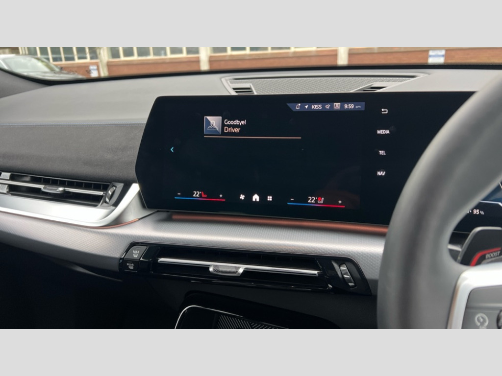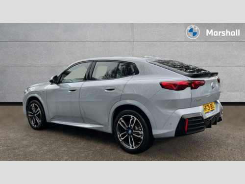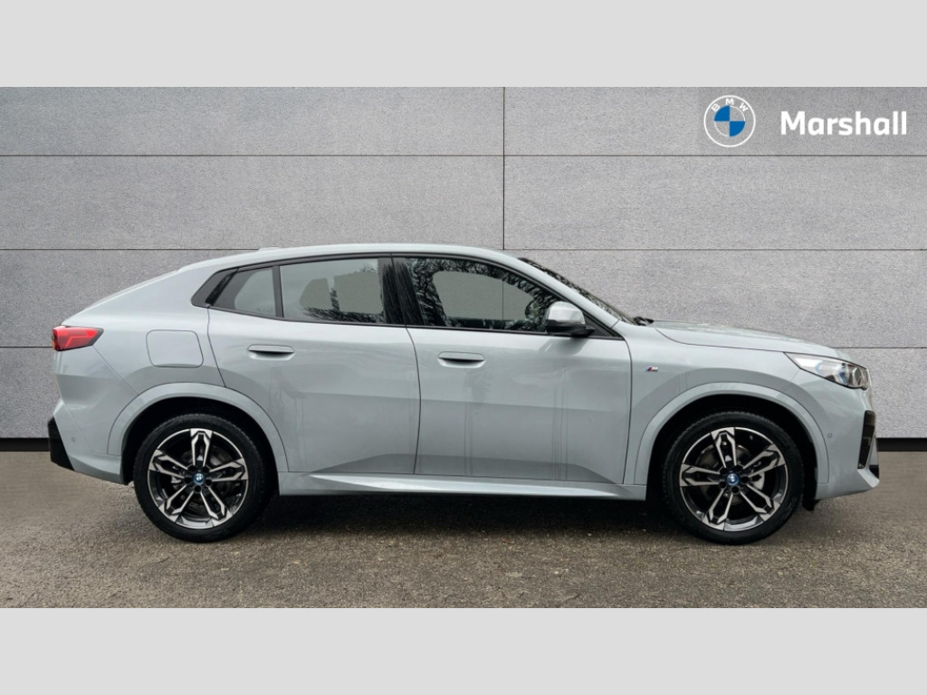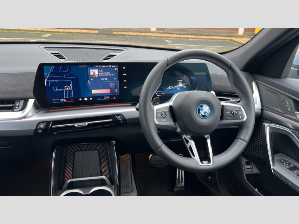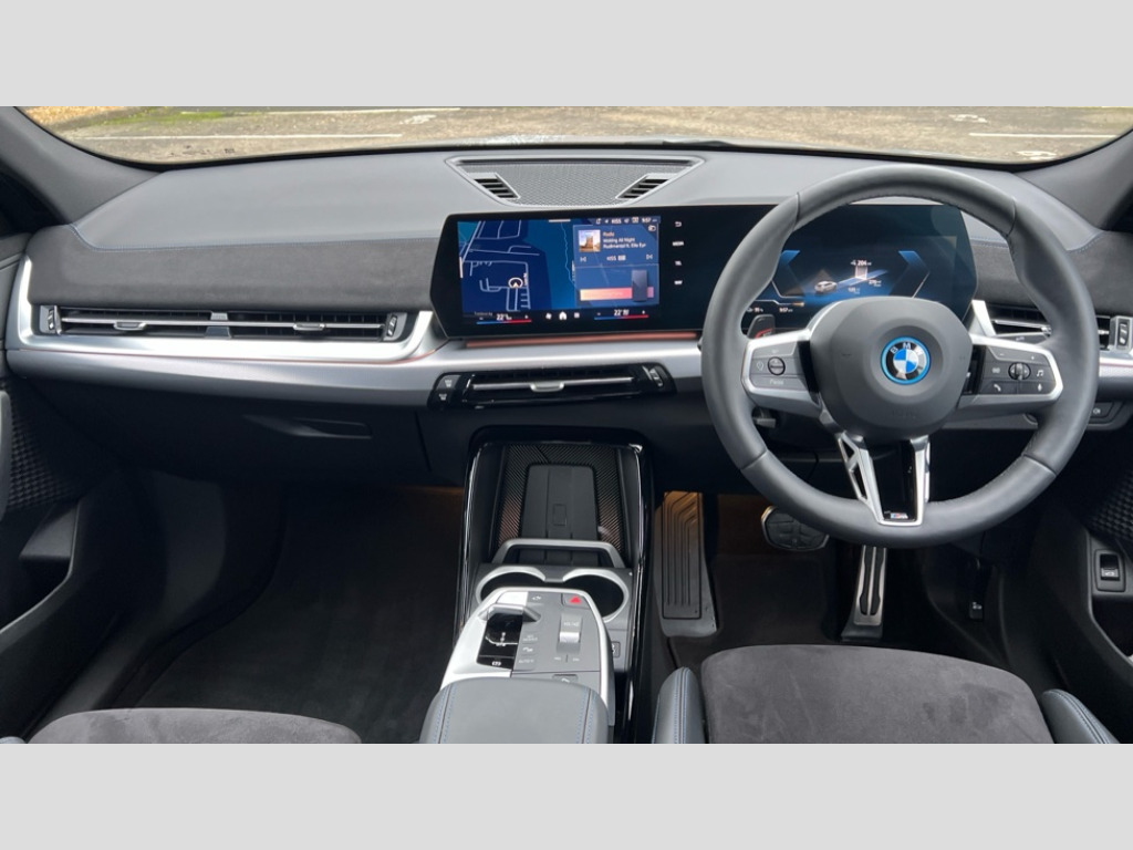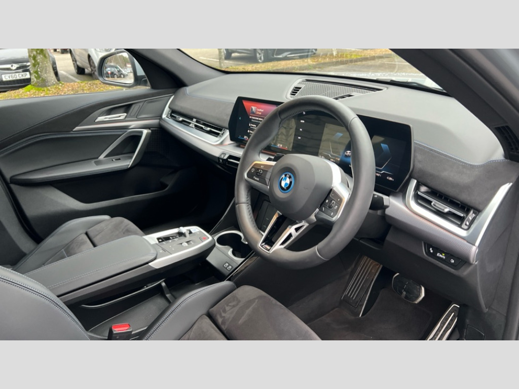 BMW Ix2 150kW eDrive20 M Sport 65kWh 5dr Auto 4G LTE connectivity, Attentiveness assist, Bluetooth / Wi-Fi interface with hands free system, BMW ConnectedDrive store and BMW Remote softwre upgrade, BMW Intelligent Personal Assistant, BMW Live Cockpit Plus - Widescreen display with 10.25" instrument cluster and 10.7" CID display, BMW Maps, BMW Operating System 9 with variable, confirgurable widgets, BMW Teleservices, Brake pad wear indicator, Condition based service, Connected drive services, Drive off assistant, Electrically opening/closing tailgate with opening/closing with remote control and contactless opening and closing, Gear display in instrument cluster including recommended gear, iDrive controller, Language version English, My modes (Personal / Efficient / Sport), Parking assistant with reversing assistant, active PDC, lateral parking aid and rear view camera, Personal Profile, Servotronic PAS, Smartphone integration for Apple CarPlay/Android Auto, Speed limiter, Touch operation on control display, Dynamic stability control, eDrive exterior sound, Fast charging cable professional mode 3 for public charging, M Adaptive suspension, Performance Control, BMW Personal eSim, DAB Digital radio, Tuner with diversity reception and RDS, AM radio and FM radio, B-pillar and front/rear door trim panels and exterior mirrors in matt black with mirror cap in vehicle colour, BMW radiator grille with mesh grid in black high gloss, radiator grille frame in pearl chrome, Dynamic brake lights, Electric adjustable heated door mirrors, Electric windows - front and rear, with open/close fingertip control, anti-trap facility and comfort closing, Folding door handles integrated flush with surface, Front bumper cover with air inlet trims for air curtains in matt black, Front door exit lights, Heated rear window, High Gloss Black rear spoiler, Home light, Invisible exhaust tailpipe, LED 3rd brake light integrated in rear window frame, LED daytime running lights, LED number plate light, Matt black roof strips, Model badge X2 on left tailgate, motorisation on right, Rain sensor including auto headlights activation, Rear side wing doors, Rear wiper, Side sill trim panel in black matt grained, Trailer stabilisation logic, Welcome lighting, Window recess finisher strips and side window frames in matt black, Window washer nozzle for rear view camera, Windscreen wipers front with heated washer nozzles, 12V - Power sockets with front centre console and luggage compartment, 12V socket in right side trim panel, 2 bag hooks in luggage compartment, 2 cup holders in front centre console, 2 front reading lights, 2 x USB Type C ports for charging and data transmission (front centre console) and 1 USB Type C ports for charging (rear centre console), 3 rear headrests, 3 seat bench in 2nd row, 3 upper retaining strap clips integrated into rear panels of seat backrests, 40:20:40 split folding rear seats, Ambient interior lighting, Anthracite front and rear floor mats, Bottle trays in all doors, Child seat ISOFIX attachment for two outer rear seats and front passenger seat with anchorage points, Driver and front passenger heated seats, Dual zone automatic air conditioning, Flat air vents on instrument panel in high gloss black, adjustable seats with elements in pearl chrome, Footrest and pedals in stainless steel look, Front and rear door pockets, Front and rear footwell lights, Front armrest with integrated control panel, Front centre console storage compartment, Front/rear adjustable head restraints, Glove compartment, Interior door handle recess light on all doors, Light on right in luggage compartment, M headliner Anthracite-A pillar trim panels,headliner in anthracite & B,C,D pillar upper trim panels,sun visors,grab handles,microphone cover in black, M leather steering wheel, Map pockets on the seats (version depending on equipment), Middle centre console storage compartment, One piece parcel shelf opens together with tailgate and removable, Rear armrest in door trim panel, Rear coat hooks, Selector lever with toggle operation, Single front passenger seat, Storage compartment lighting in centre console and storage tray in centre stack, Storage compartment net in left side trim panel, Storage compartment with folding cover under centre console armrest cushion, Storage tray in right side trim panel, Sun visors with illuminated vanity mirrors, Tilt adjustment incl. cargo function of 2nd row of seats, ABS, Automatic hold function, BMW emergency call, Braking readiness, Child lock for rear electric windows, Cornering brake control (CBC), Crash Sensor - activates hazard/interior lighting + unlocks doors, Driver/Front Passenger airbags, Driver/front passenger side airbags, Dry braking, Dynamic brake control, Electromechanical parking brake, Energy recovery system, First aid kit, Front and rear brake discs, Front centre airbag between driver and front passenger seats, Front passenger airbag deactivation, Head airbags for all 4 outer seats, Integrated brake system, Locking of doors after driving off, PC iBrake PostCrash approach control warning with light braking function, Rear door child safety locks, Three point seat belts in all seats, Tyre pressure monitor, Warning triangle, Alarm system with tilt sensor, monitoring doors, bonnet interior and tailgate, Closing system with central locking including 2 vehicle keys with integrated emergency key, Locking wheel bolts, Front centre console trim in high gloss black, Luxury instrument panel, Tyre repair kit plus