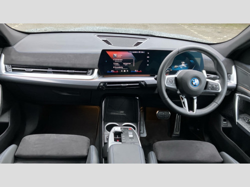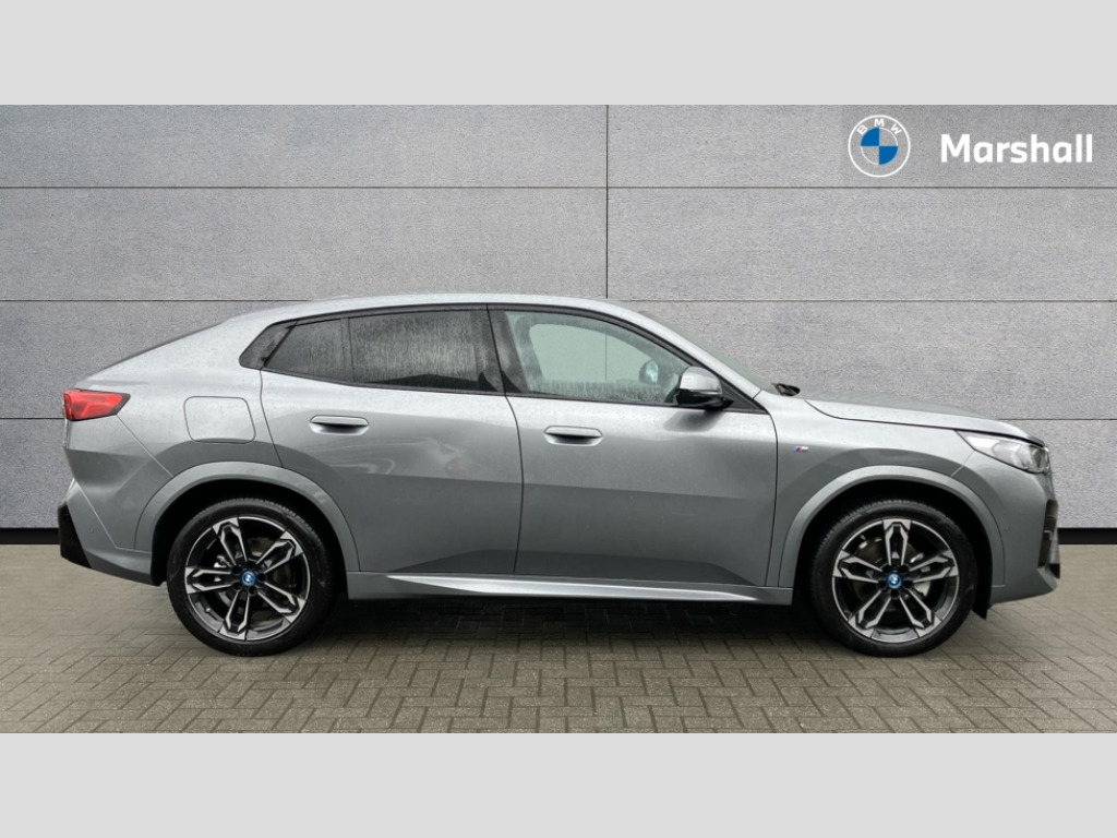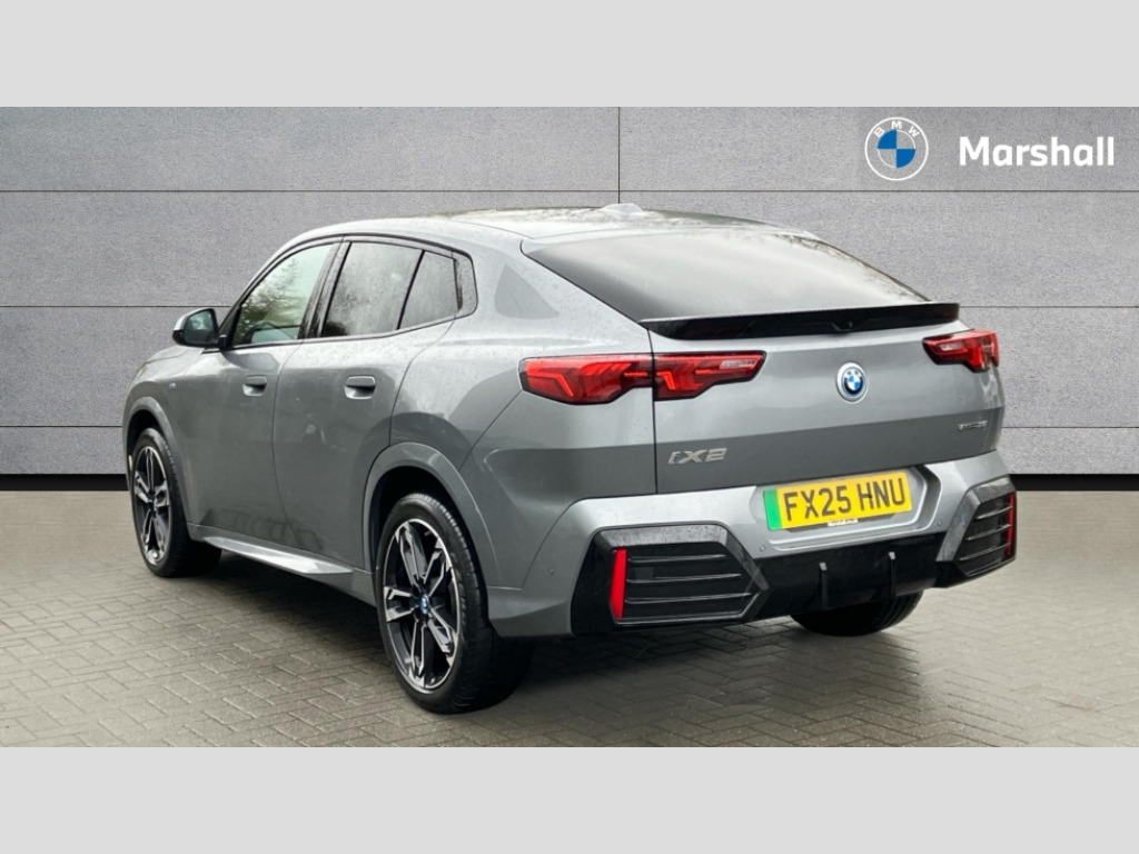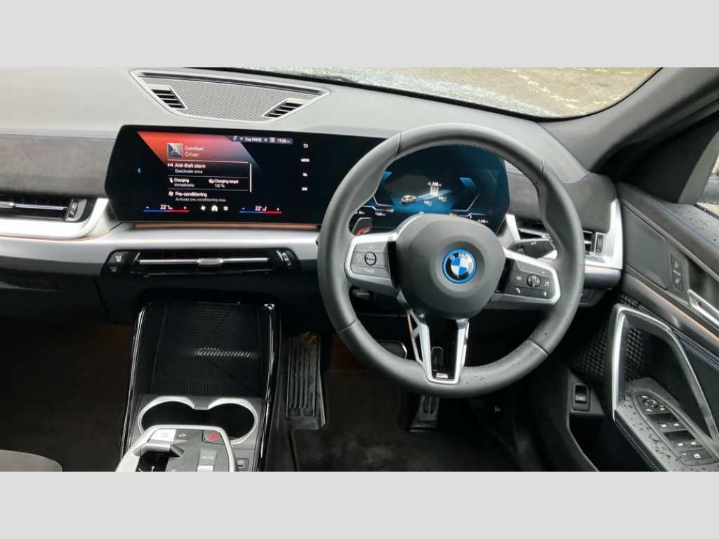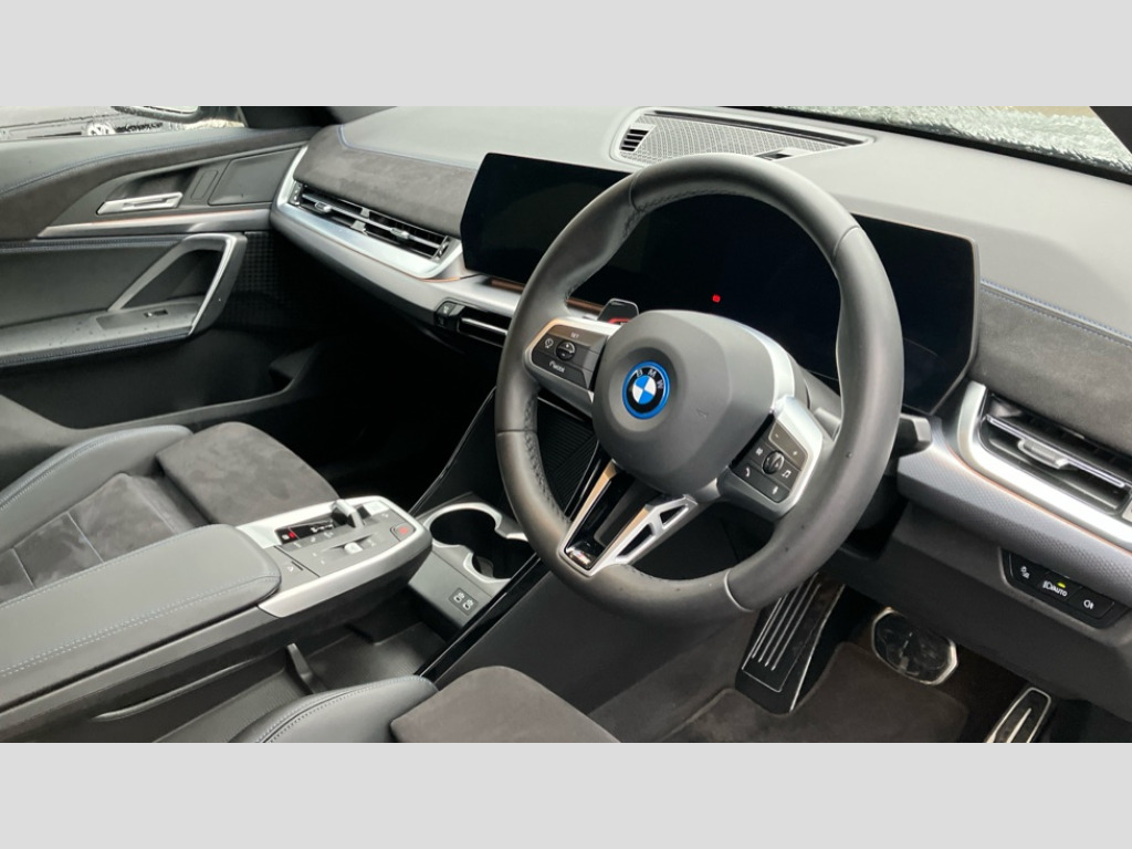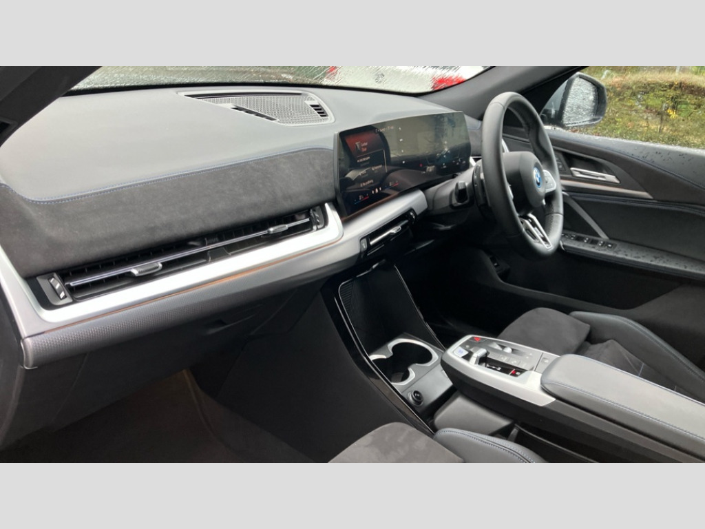 BMW Ix2 150kW eDrive20 M Sport 65kWh 5dr Auto 4G LTE connectivity, Attentiveness assist, Bluetooth / Wi-Fi interface with hands free system, BMW ConnectedDrive store and BMW Remote softwre upgrade, BMW Intelligent Personal Assistant, BMW Live Cockpit Plus - Widescreen display with 10.25" instrument cluster and 10.7" CID display, BMW Maps, BMW Operating System 9 with variable, confirgurable widgets, BMW Teleservices, Brake pad wear indicator, Condition based service, Connected drive services, Drive off assistant, Electrically opening/closing tailgate with opening/closing with remote control and contactless opening and closing, Gear display in instrument cluster including recommended gear, iDrive controller, Language version English, My modes (Personal / Efficient / Sport), Parking assistant with reversing assistant, active PDC, lateral parking aid and rear view camera, Personal Profile, Servotronic PAS, Smartphone integration for Apple CarPlay/Android Auto, Speed limiter, Touch operation on control display, Dynamic stability control, eDrive exterior sound, Fast charging cable professional mode 3 for public charging, M Adaptive suspension, Performance Control, BMW Personal eSim, DAB Digital radio, Tuner with diversity reception and RDS, AM radio and FM radio, B-pillar and front/rear door trim panels and exterior mirrors in matt black with mirror cap in vehicle colour, BMW radiator grille with mesh grid in black high gloss, radiator grille frame in pearl chrome, Dynamic brake lights, Electric adjustable heated door mirrors, Electric windows - front and rear, with open/close fingertip control, anti-trap facility and comfort closing, Folding door handles integrated flush with surface, Front bumper cover with air inlet trims for air curtains in matt black, Front door exit lights, Heated rear window, High Gloss Black rear spoiler, Home light, Invisible exhaust tailpipe, LED 3rd brake light integrated in rear window frame, LED daytime running lights, LED number plate light, Matt black roof strips, Model badge X2 on left tailgate, motorisation on right, Rain sensor including auto headlights activation, Rear side wing doors, Rear wiper, Side sill trim panel in black matt grained, Trailer stabilisation logic, Welcome lighting, Window recess finisher strips and side window frames in matt black, Window washer nozzle for rear view camera, Windscreen wipers front with heated washer nozzles, 12V - Power sockets with front centre console and luggage compartment, 12V socket in right side trim panel, 2 bag hooks in luggage compartment, 2 cup holders in front centre console, 2 front reading lights, 2 x USB Type C ports for charging and data transmission (front centre console) and 1 USB Type C ports for charging (rear centre console), 3 rear headrests, 3 seat bench in 2nd row, 3 upper retaining strap clips integrated into rear panels of seat backrests, 40:20:40 split folding rear seats, Ambient interior lighting, Anthracite front and rear floor mats, Bottle trays in all doors, Child seat ISOFIX attachment for two outer rear seats and front passenger seat with anchorage points, Driver and front passenger heated seats, Dual zone automatic air conditioning, Flat air vents on instrument panel in high gloss black, adjustable seats with elements in pearl chrome, Footrest and pedals in stainless steel look, Front and rear door pockets, Front and rear footwell lights, Front armrest with integrated control panel, Front centre console storage compartment, Front/rear adjustable head restraints, Glove compartment, Interior door handle recess light on all doors, Light on right in luggage compartment, M headliner Anthracite-A pillar trim panels,headliner in anthracite & B,C,D pillar upper trim panels,sun visors,grab handles,microphone cover in black, M leather steering wheel, Map pockets on the seats (version depending on equipment), Middle centre console storage compartment, One piece parcel shelf opens together with tailgate and removable, Rear armrest in door trim panel, Rear coat hooks, Selector lever with toggle operation, Single front passenger seat, Storage compartment lighting in centre console and storage tray in centre stack, Storage compartment net in left side trim panel, Storage compartment with folding cover under centre console armrest cushion, Storage tray in right side trim panel, Sun visors with illuminated vanity mirrors, Tilt adjustment incl. cargo function of 2nd row of seats, ABS, Automatic hold function, BMW emergency call, Braking readiness, Child lock for rear electric windows, Cornering brake control (CBC), Crash Sensor - activates hazard/interior lighting + unlocks doors, Driver/Front Passenger airbags, Driver/front passenger side airbags, Dry braking, Dynamic brake control, Electromechanical parking brake, Energy recovery system, First aid kit, Front and rear brake discs, Front centre airbag between driver and front passenger seats, Front passenger airbag deactivation, Head airbags for all 4 outer seats, Integrated brake system, Locking of doors after driving off, PC iBrake PostCrash approach control warning with light braking function, Rear door child safety locks, Three point seat belts in all seats, Tyre pressure monitor, Warning triangle, Alarm system with tilt sensor, monitoring doors, bonnet interior and tailgate, Closing system with central locking including 2 vehicle keys with integrated emergency key, Locking wheel bolts, Front centre console trim in high gloss black, Luxury instrument panel, Tyre repair kit plus