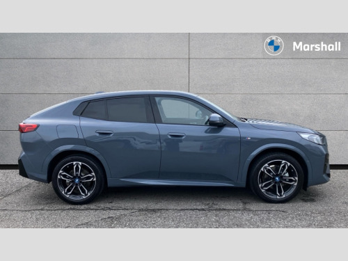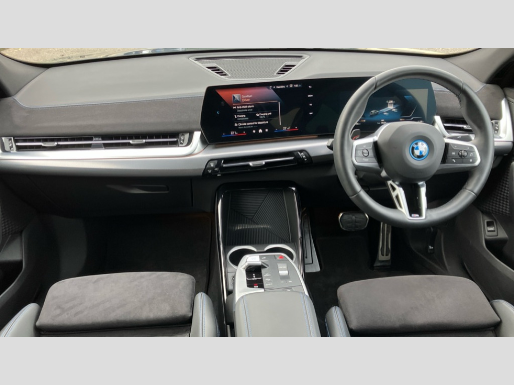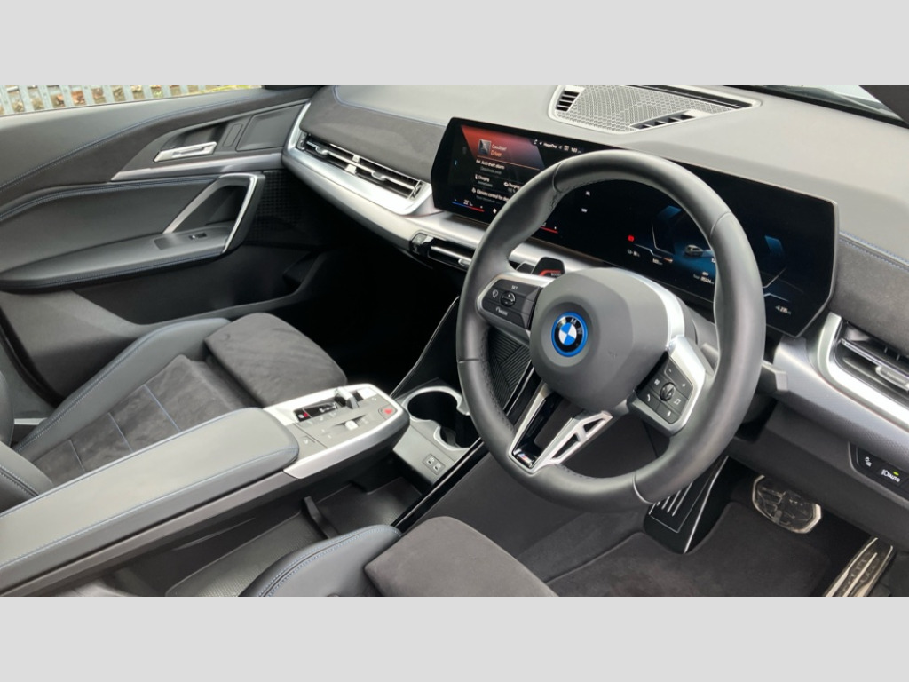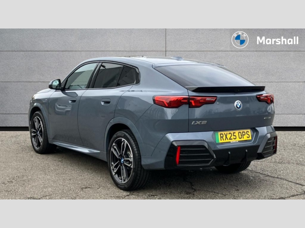 BMW Ix2 150kW eDrive20 M Sport 65kWh 5dr Auto 4G LTE connectivity, Attentiveness assist, Bluetooth / Wi-Fi interface with hands free system, BMW ConnectedDrive store and BMW Remote softwre upgrade, BMW Intelligent Personal Assistant, BMW Live Cockpit Plus - Widescreen display with 10.25" instrument cluster and 10.7" CID display, BMW Maps, BMW Operating System 9 with variable, confirgurable widgets, BMW Teleservices, Brake pad wear indicator, Condition based service, Connected drive services, Drive off assistant, Electrically opening/closing tailgate with opening/closing with remote control and contactless opening and closing, Gear display in instrument cluster including recommended gear, iDrive controller, Language version English, My modes (Personal / Efficient / Sport), Parking assistant with reversing assistant, active PDC, lateral parking aid and rear view camera, Personal Profile, Servotronic PAS, Smartphone integration for Apple CarPlay/Android Auto, Speed limiter, Touch operation on control display, Dynamic stability control, eDrive exterior sound, Fast charging cable professional mode 3 for public charging, M Adaptive suspension, Performance Control, BMW Personal eSim, DAB Digital radio, Tuner with diversity reception and RDS, AM radio and FM radio, B-pillar and front/rear door trim panels and exterior mirrors in matt black with mirror cap in vehicle colour, BMW radiator grille with mesh grid in black high gloss, radiator grille frame in pearl chrome, Dynamic brake lights, Electric adjustable heated door mirrors, Electric windows - front and rear, with open/close fingertip control, anti-trap facility and comfort closing, Folding door handles integrated flush with surface, Front bumper cover with air inlet trims for air curtains in matt black, Front door exit lights, Heated rear window, High Gloss Black rear spoiler, Home light, Invisible exhaust tailpipe, LED 3rd brake light integrated in rear window frame, LED daytime running lights, LED number plate light, Matt black roof strips, Model badge X2 on left tailgate, motorisation on right, Rain sensor including auto headlights activation, Rear side wing doors, Rear wiper, Side sill trim panel in black matt grained, Trailer stabilisation logic, Welcome lighting, Window recess finisher strips and side window frames in matt black, Window washer nozzle for rear view camera, Windscreen wipers front with heated washer nozzles, 12V - Power sockets with front centre console and luggage compartment, 12V socket in right side trim panel, 2 bag hooks in luggage compartment, 2 cup holders in front centre console, 2 front reading lights, 2 x USB Type C ports for charging and data transmission (front centre console) and 1 USB Type C ports for charging (rear centre console), 3 rear headrests, 3 seat bench in 2nd row, 3 upper retaining strap clips integrated into rear panels of seat backrests, 40:20:40 split folding rear seats, Ambient interior lighting, Anthracite front and rear floor mats, Bottle trays in all doors, Child seat ISOFIX attachment for two outer rear seats and front passenger seat with anchorage points, Driver and front passenger heated seats, Dual zone automatic air conditioning, Flat air vents on instrument panel in high gloss black, adjustable seats with elements in pearl chrome, Footrest and pedals in stainless steel look, Front and rear door pockets, Front and rear footwell lights, Front armrest with integrated control panel, Front centre console storage compartment, Front/rear adjustable head restraints, Glove compartment, Interior door handle recess light on all doors, Light on right in luggage compartment, M headliner Anthracite-A pillar trim panels,headliner in anthracite & B,C,D pillar upper trim panels,sun visors,grab handles,microphone cover in black, M leather steering wheel, Map pockets on the seats (version depending on equipment), Middle centre console storage compartment, One piece parcel shelf opens together with tailgate and removable, Rear armrest in door trim panel, Rear coat hooks, Selector lever with toggle operation, Single front passenger seat, Storage compartment lighting in centre console and storage tray in centre stack, Storage compartment net in left side trim panel, Storage compartment with folding cover under centre console armrest cushion, Storage tray in right side trim panel, Sun visors with illuminated vanity mirrors, Tilt adjustment incl. cargo function of 2nd row of seats, ABS, Automatic hold function, BMW emergency call, Braking readiness, Child lock for rear electric windows, Cornering brake control (CBC), Crash Sensor - activates hazard/interior lighting + unlocks doors, Driver/Front Passenger airbags, Driver/front passenger side airbags, Dry braking, Dynamic brake control, Electromechanical parking brake, Energy recovery system, First aid kit, Front and rear brake discs, Front centre airbag between driver and front passenger seats, Front passenger airbag deactivation, Head airbags for all 4 outer seats, Integrated brake system, Locking of doors after driving off, PC iBrake PostCrash approach control warning with light braking function, Rear door child safety locks, Three point seat belts in all seats, Tyre pressure monitor, Warning triangle, Alarm system with tilt sensor, monitoring doors, bonnet interior and tailgate, Closing system with central locking including 2 vehicle keys with integrated emergency key, Locking wheel bolts, Front centre console trim in high gloss black, Luxury instrument panel, Tyre repair kit plus