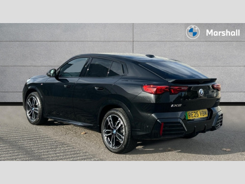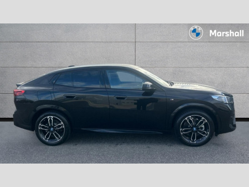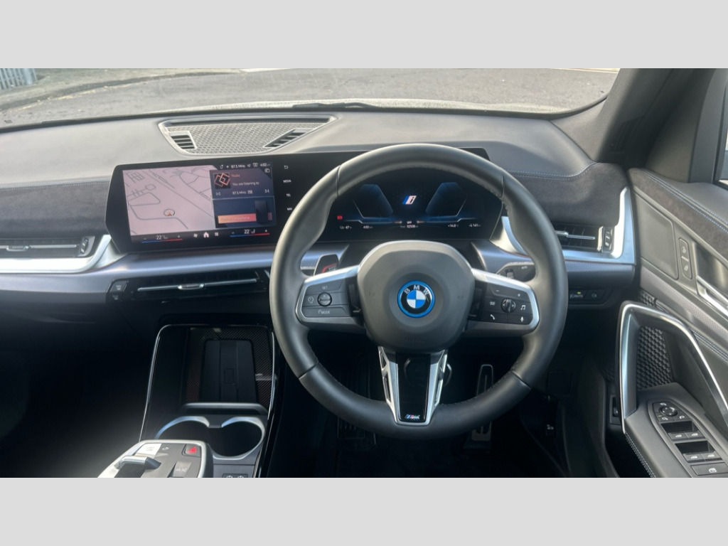 BMW Ix2 230kW xDrive30 M Sport 65kWh 5dr Auto 4G LTE connectivity, Attentiveness assist, Bluetooth / Wi-Fi interface with hands free system, BMW ConnectedDrive store and BMW Remote softwre upgrade, BMW Intelligent Personal Assistant, BMW Live Cockpit Plus - Widescreen display with 10.25" instrument cluster and 10.7" CID display, BMW Maps, BMW Operating System 9 with variable, confirgurable widgets, BMW Teleservices, Brake pad wear indicator, Condition based service, Connected drive services, Drive off assistant, Electrically opening/closing tailgate with opening/closing with remote control and contactless opening and closing, Gear display in instrument cluster including recommended gear, iDrive controller, Language version English, My modes (Personal / Efficient / Sport), Parking assistant with reversing assistant, active PDC, lateral parking aid and rear view camera, Personal Profile, Servotronic PAS, Smartphone integration for Apple CarPlay/Android Auto, Speed limiter, Touch operation on control display, Dynamic stability control, eDrive exterior sound, Fast charging cable professional mode 3 for public charging, M Adaptive suspension, Performance Control, BMW iconic sound electric, BMW Personal eSim, DAB Digital radio, Tuner with diversity reception and RDS, AM radio and FM radio, B-pillar and front/rear door trim panels and exterior mirrors in matt black with mirror cap in vehicle colour, BMW radiator grille with mesh grid in black high gloss, radiator grille frame in pearl chrome, Dynamic brake lights, Electric adjustable heated door mirrors, Electric windows - front and rear, with open/close fingertip control, anti-trap facility and comfort closing, Folding door handles integrated flush with surface, Front bumper cover with air inlet trims for air curtains in matt black, Front door exit lights, Heated rear window, High Gloss Black rear spoiler, Home light, Invisible exhaust tailpipe, LED 3rd brake light integrated in rear window frame, LED daytime running lights, LED number plate light, M identification on the sides, Matt black roof strips, Model badge X2 on left tailgate, motorisation on right, Rain sensor including auto headlights activation, Rear side wing doors, Rear wiper, Side sill trim panel in black matt grained, Trailer stabilisation logic, Welcome lighting, Window recess finisher strips and side window frames in matt black, Windscreen washer nozzle for rear view camera, Windscreen wipers front with heated washer nozzles, 12V - Power sockets with front centre console and luggage compartment, 12V socket in right side trim panel, 2 bag hooks in luggage compartment, 2 cup holders in front centre console, 2 front reading lights, 2 x USB Type C ports for charging and data transmission (front centre console) and 2 x USB Type C ports for charging (rear centre console), 3 rear headrests, 3 seat bench in 2nd row, 3 upper retaining strap clips integrated into rear panels of seat backrests, 40:20:40 split folding rear seats, Ambient interior lighting, Anthracite front and rear floor mats, Bottle trays in all doors, Child seat ISOFIX attachment for two outer rear seats and front passenger seat with anchorage points, Driver and front passenger heated seats, Dual zone automatic air conditioning, Flat air vents on instrument panel in high gloss black, adjustable seats with elements in pearl chrome, Footrest and pedals in stainless steel look, Front and rear door pockets, Front and rear footwell lights, Front armrest with integrated control panel, Front centre console storage compartment, Front/rear adjustable head restraints, Glove compartment, Interior door handle recess light on all doors, Light on right in luggage compartment, M headliner Anthracite-A pillar trim panels,headliner in anthracite & B,C,D pillar upper trim panels,sun visors,grab handles,microphone cover in black, M leather steering wheel, Map pockets on the seats (version depending on equipment), Middle centre console storage compartment, One piece parcel shelf opens together with tailgate and removable, Rear armrest in door trim panel, Rear coat hooks, Selector lever with toggle operation, Single front passenger seat, Storage compartment lighting in centre console and storage tray in centre stack, Storage compartment net in left side trim panel, Storage compartment with folding cover under centre console armrest cushion, Storage tray in right side trim panel, Sun visors with illuminated vanity mirrors, Tilt adjustment incl. cargo function of 2nd row of seats, ABS, Automatic hold function, BMW emergency call, Braking readiness, Child lock for rear electric windows, Cornering brake control (CBC), Crash Sensor - activates hazard/interior lighting + unlocks doors, Driver/Front Passenger airbags, Driver/front passenger side airbags, Dry braking, Dynamic brake control, Electromechanical parking brake, Energy recovery system, First aid kit, Front and rear brake discs, Front centre airbag between driver and front passenger seats, Front passenger airbag deactivation, Head airbags for all 4 outer seats, Integrated brake system, Locking of doors after driving off, PC iBrake PostCrash approach control warning with light braking function, Rear door child safety locks, Three point seat belts in all seats, Tyre pressure monitor, Warning triangle, Alarm system with tilt sensor, monitoring doors, bonnet interior and tailgate, Closing system with central locking including 2 vehicle keys with integrated emergency key, Locking wheel bolts, Front centre console trim in high gloss black, Luxury instrument panel, Tyre repair kit plus